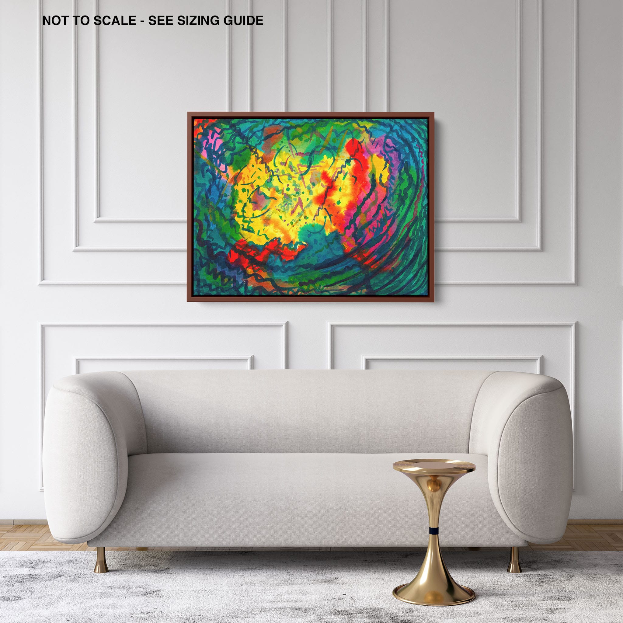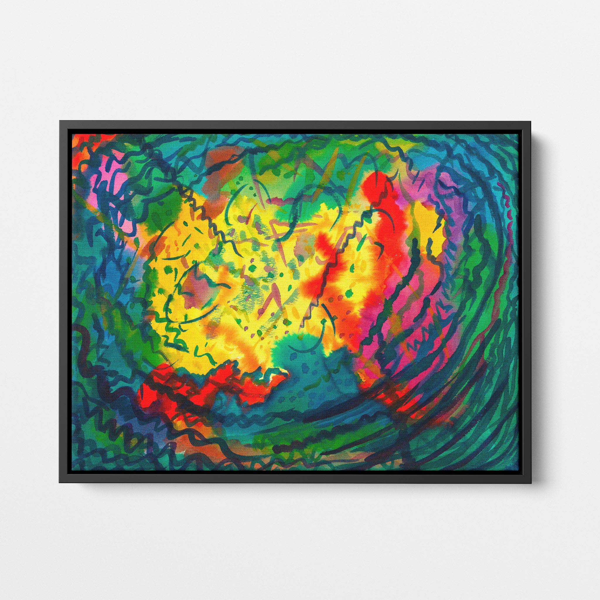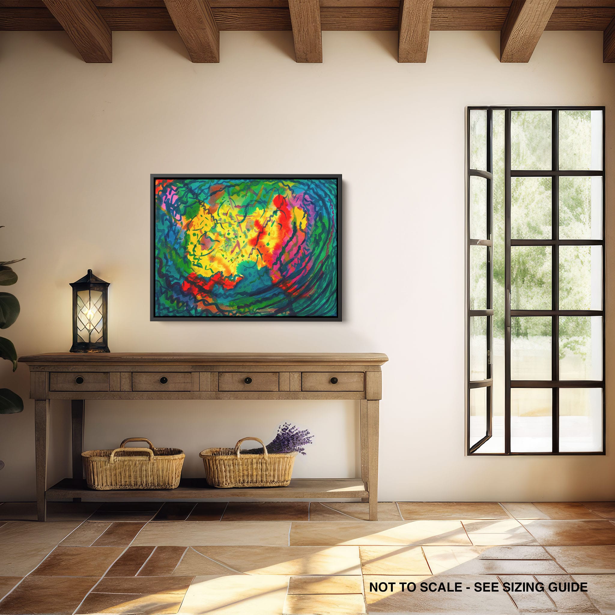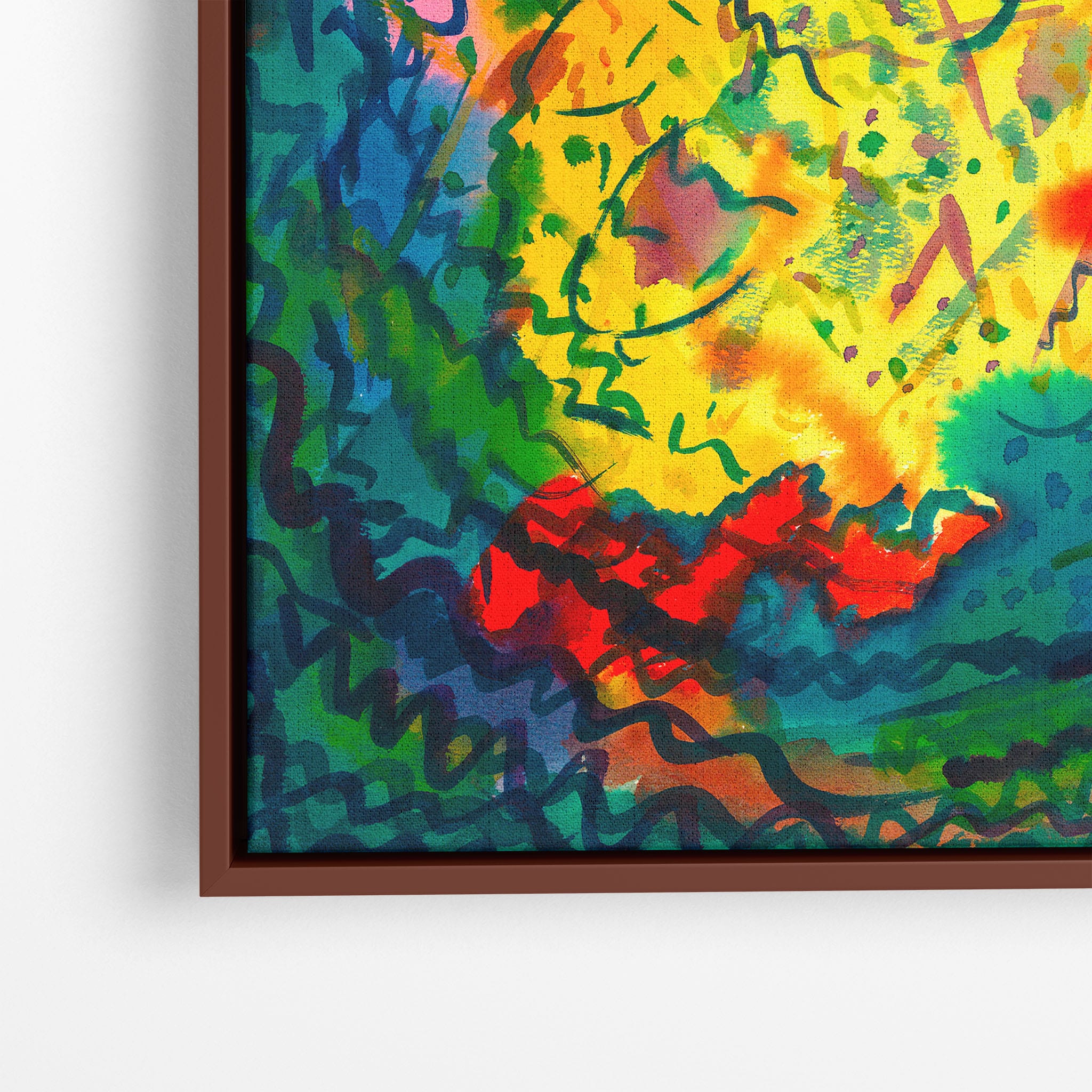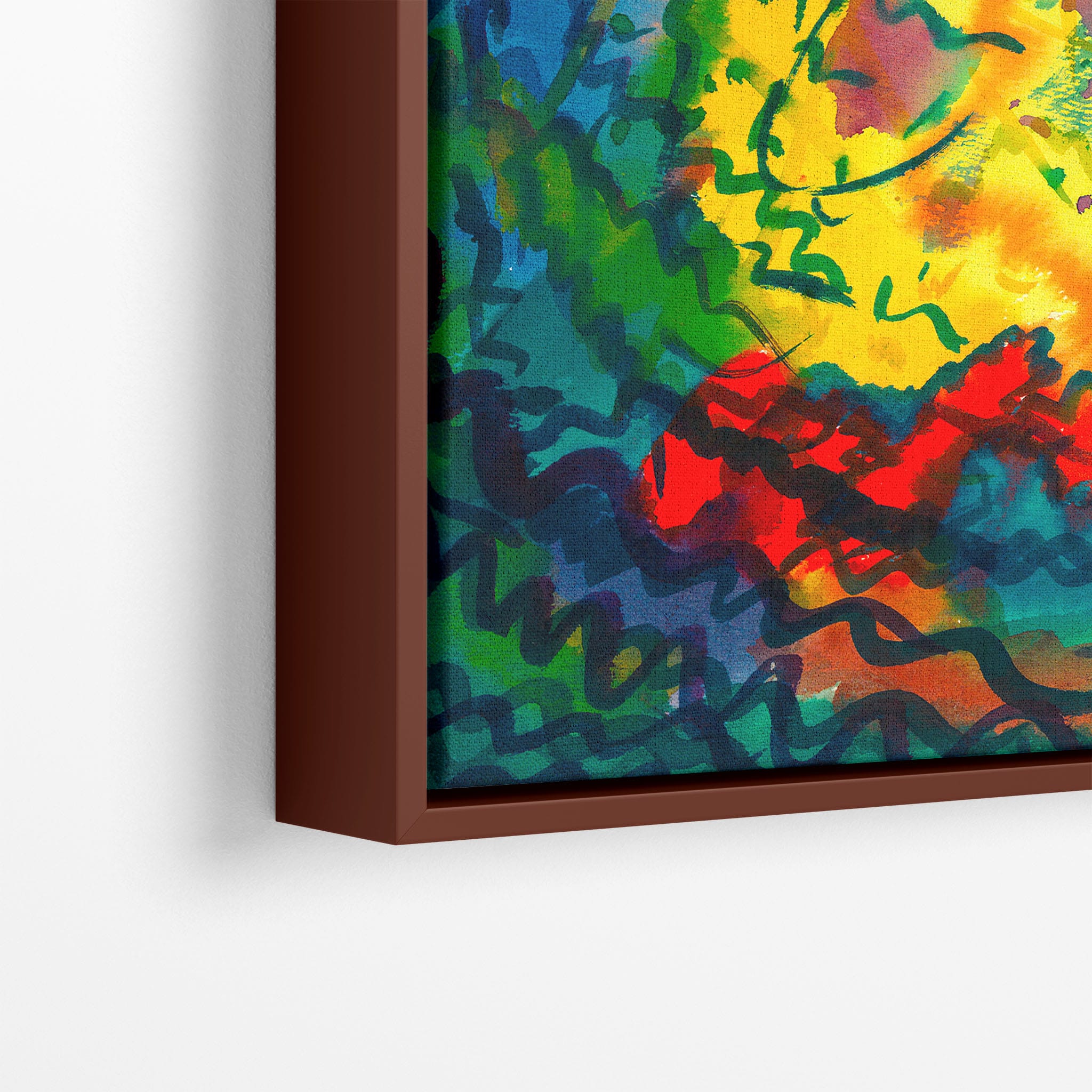 This artwork is titled "Auflösung" by Karl Wiener, painted in 1928. A vivid explosion of color radiates from the center, where brilliant yellows and reds dissolve into surrounding layers of blues, greens, and purples. Swirling dark lines spiral outward, as if capturing the moment of disintegration or release, reflecting the meaning of the title—“dissolution.” The spontaneous washes and dynamic outlines suggest energy escaping containment, both chaotic and harmonic. Rendered in watercolor, the blending and bleeding of pigment add an organic depth and motion. This fine art reproduction, sourced from a high-resolution photograph of the original, preserves the visual intensity and tactile flow. A bold piece for lovers of expressive color, abstraction, and 20th-century avant-garde aesthetics.