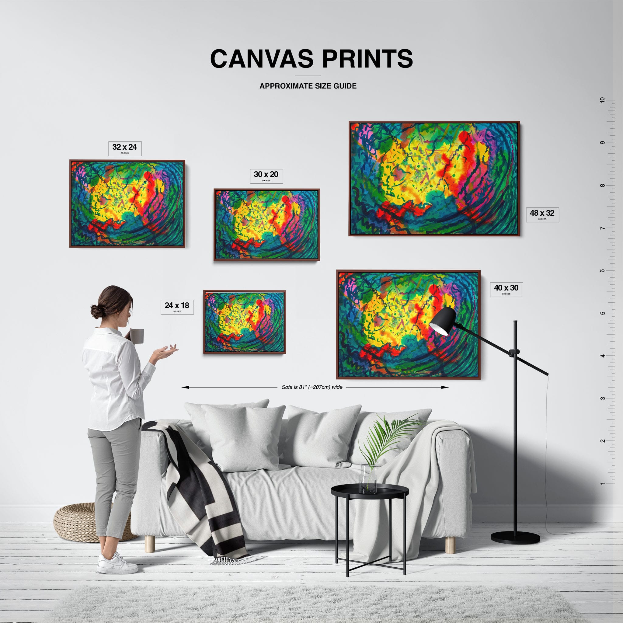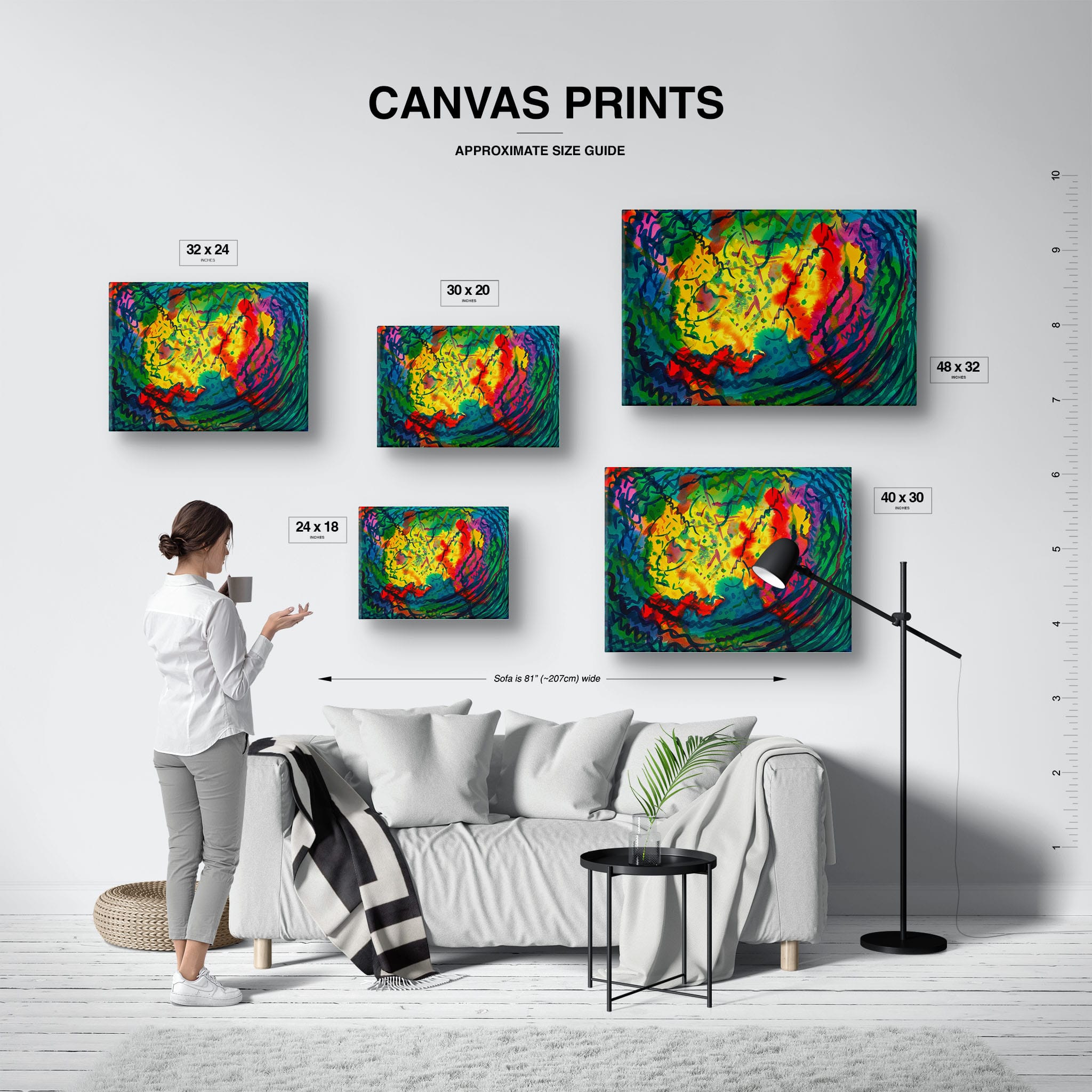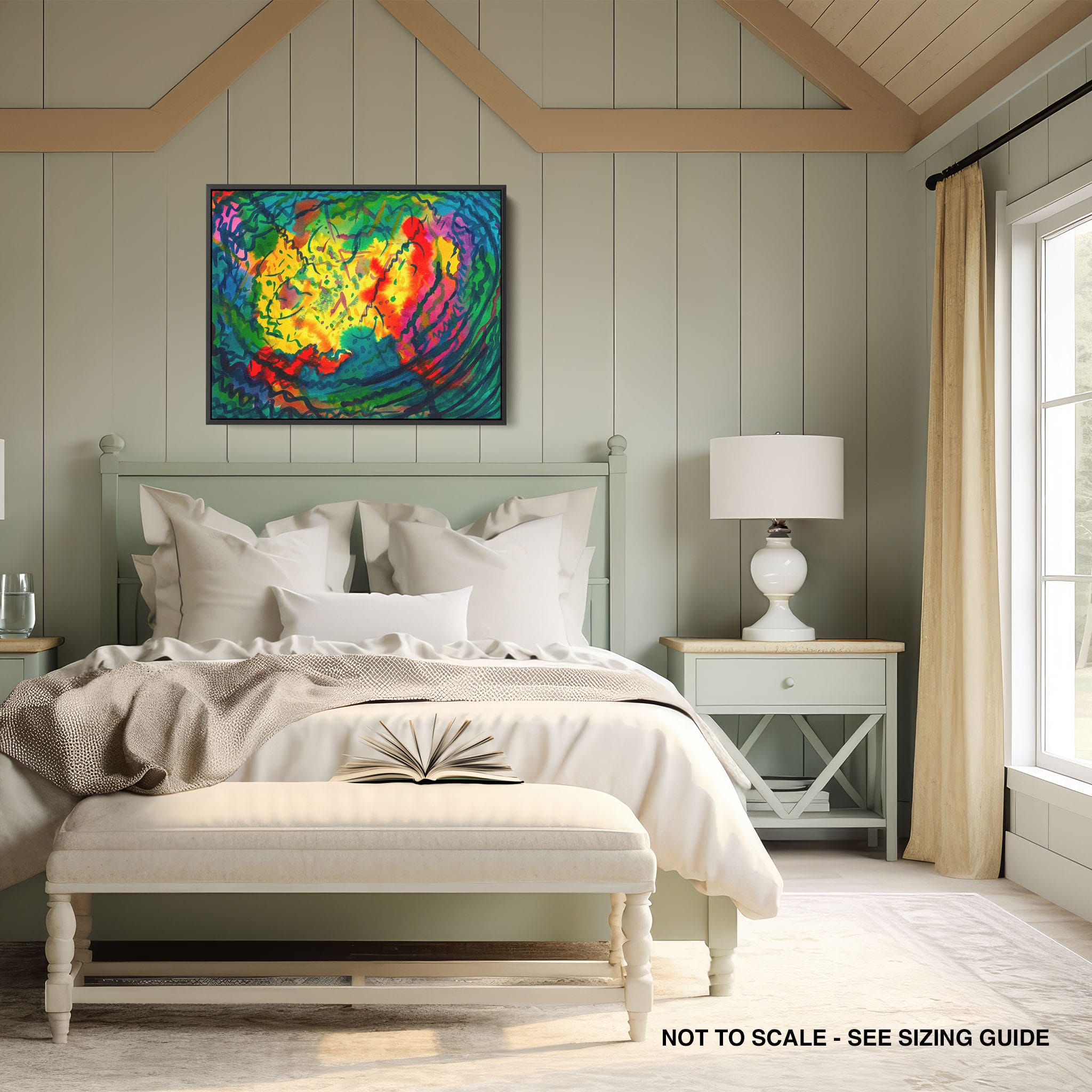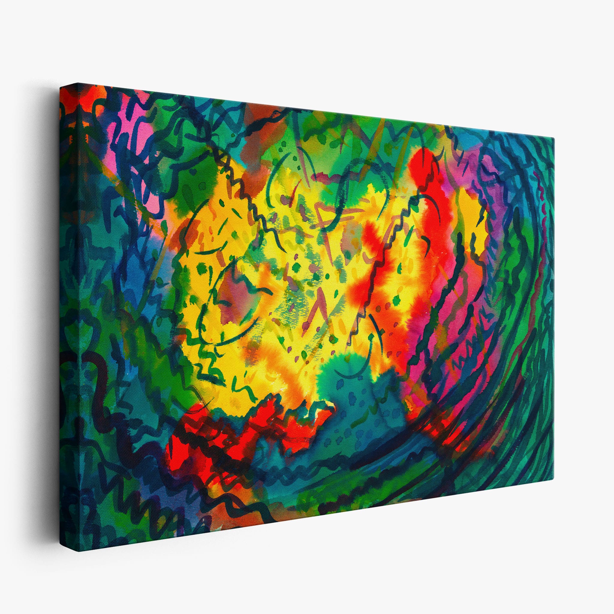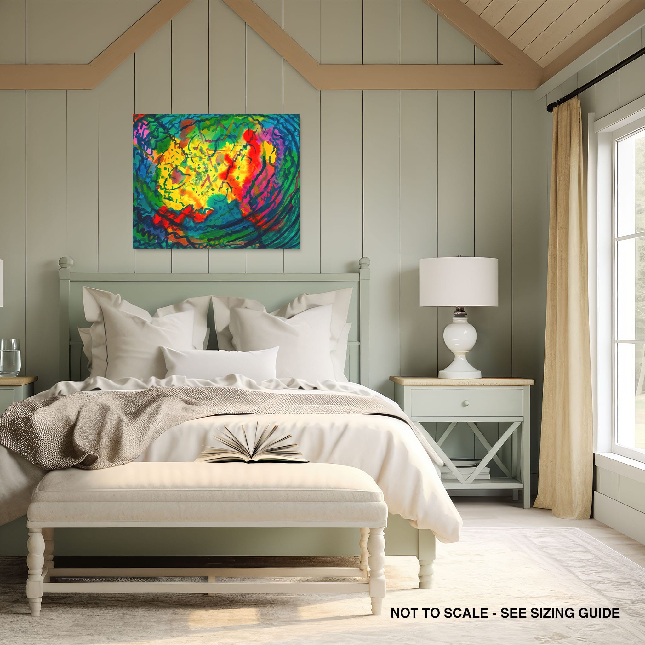 This artwork is titled "Auflösung" by Karl Wiener, painted in 1928. A vivid explosion of color radiates from the center, where brilliant yellows and reds dissolve into surrounding layers of blues, greens, and purples. Swirling dark lines spiral outward, as if capturing the moment of disintegration or release, reflecting the meaning of the title—“dissolution.” The spontaneous washes and dynamic outlines suggest energy escaping containment, both chaotic and harmonic. Rendered in watercolor, the blending and bleeding of pigment add an organic depth and motion. This fine art reproduction, sourced from a high-resolution photograph of the original, preserves the visual intensity and tactile flow. A bold piece for lovers of expressive color, abstraction, and 20th-century avant-garde aesthetics.