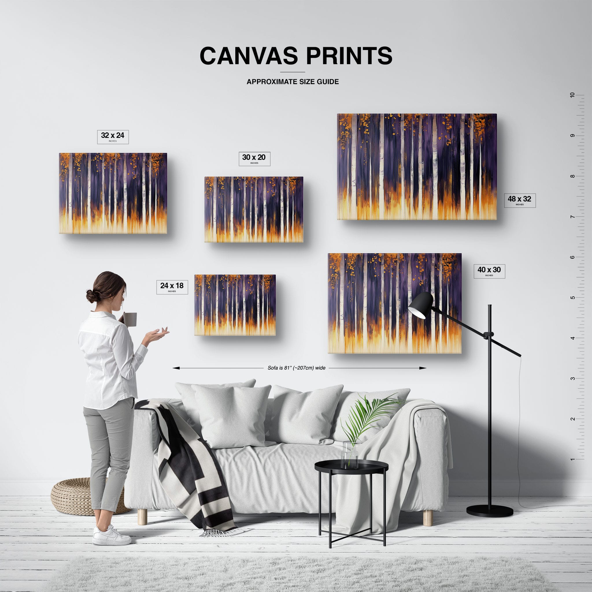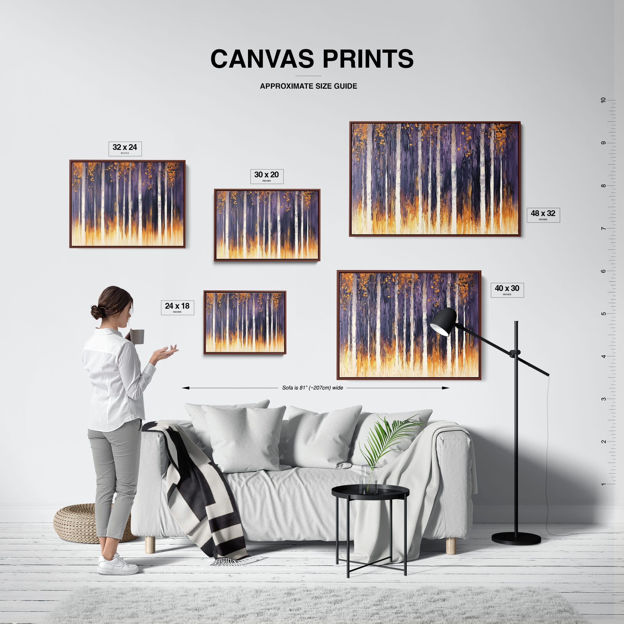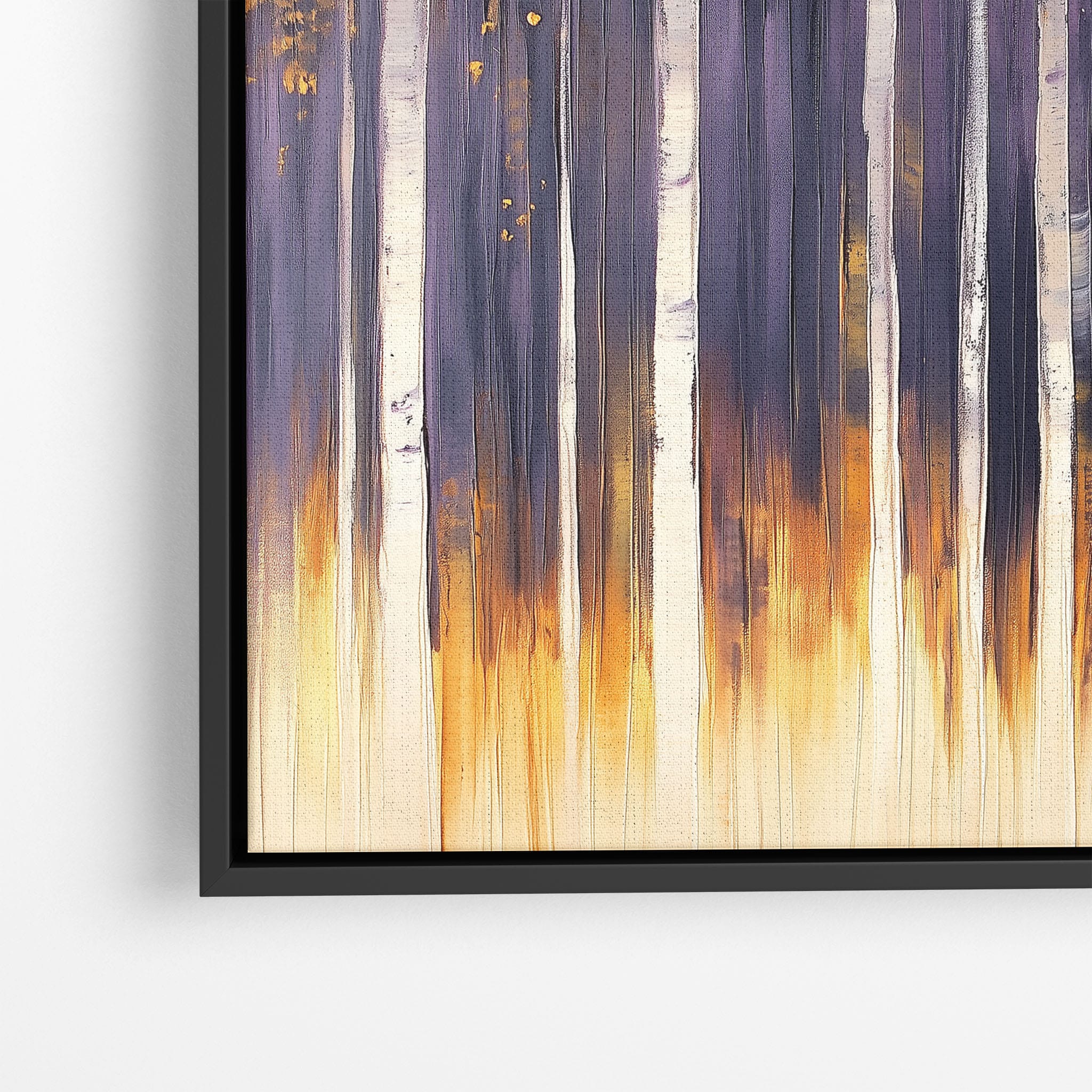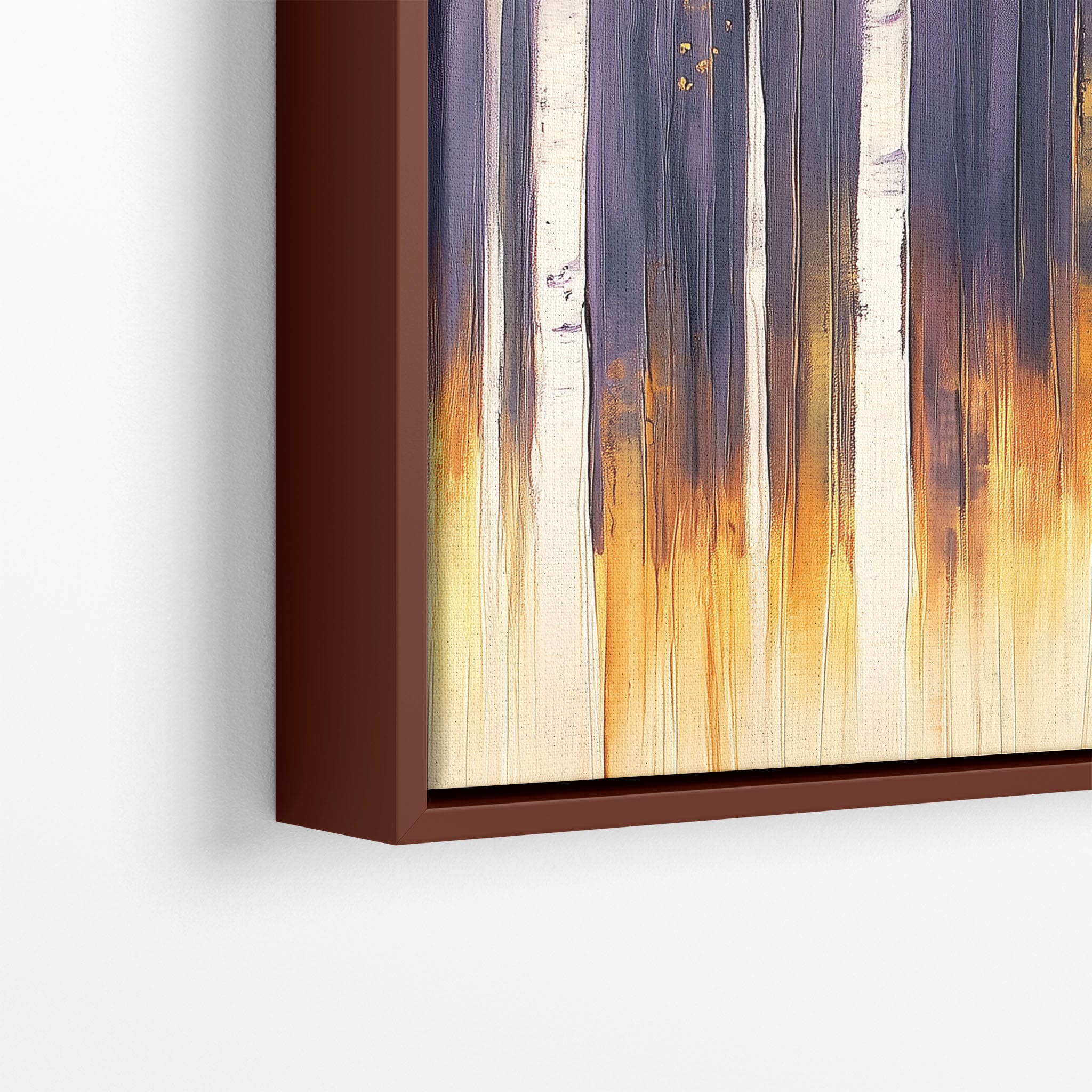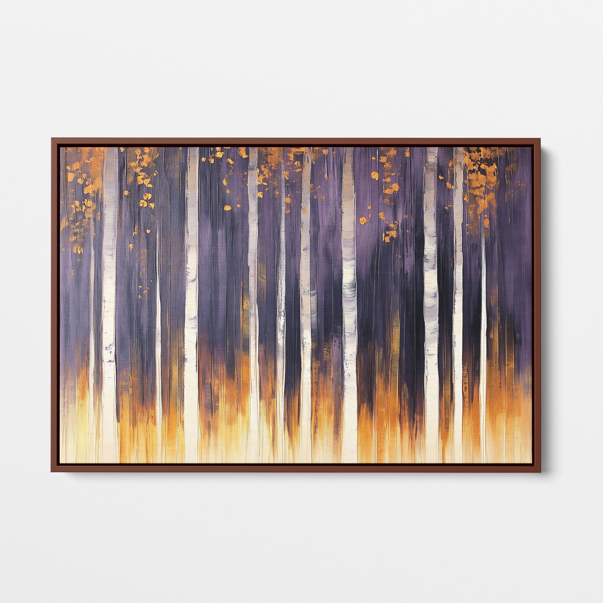 This painting captures an ethereal forest scene, illuminated by the fiery tones of autumn. Rich purples blend into vibrant oranges and golds, creating a visual spectacle that feels both serene and lively. This abstract expressionist work uses bold strokes and a modern approach to encapsulate the essence of fall, making it an eye-catching statement piece for any room. Ideal for those who appreciate nature's transient beauty and the artistry that can capture such fleeting moments. Add a touch of warmth and color to your living space with this compelling piece.