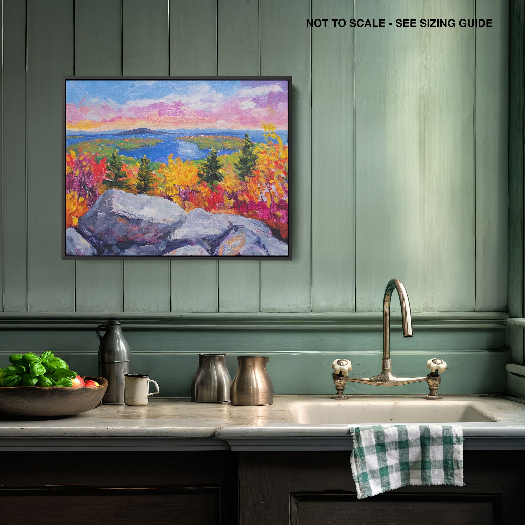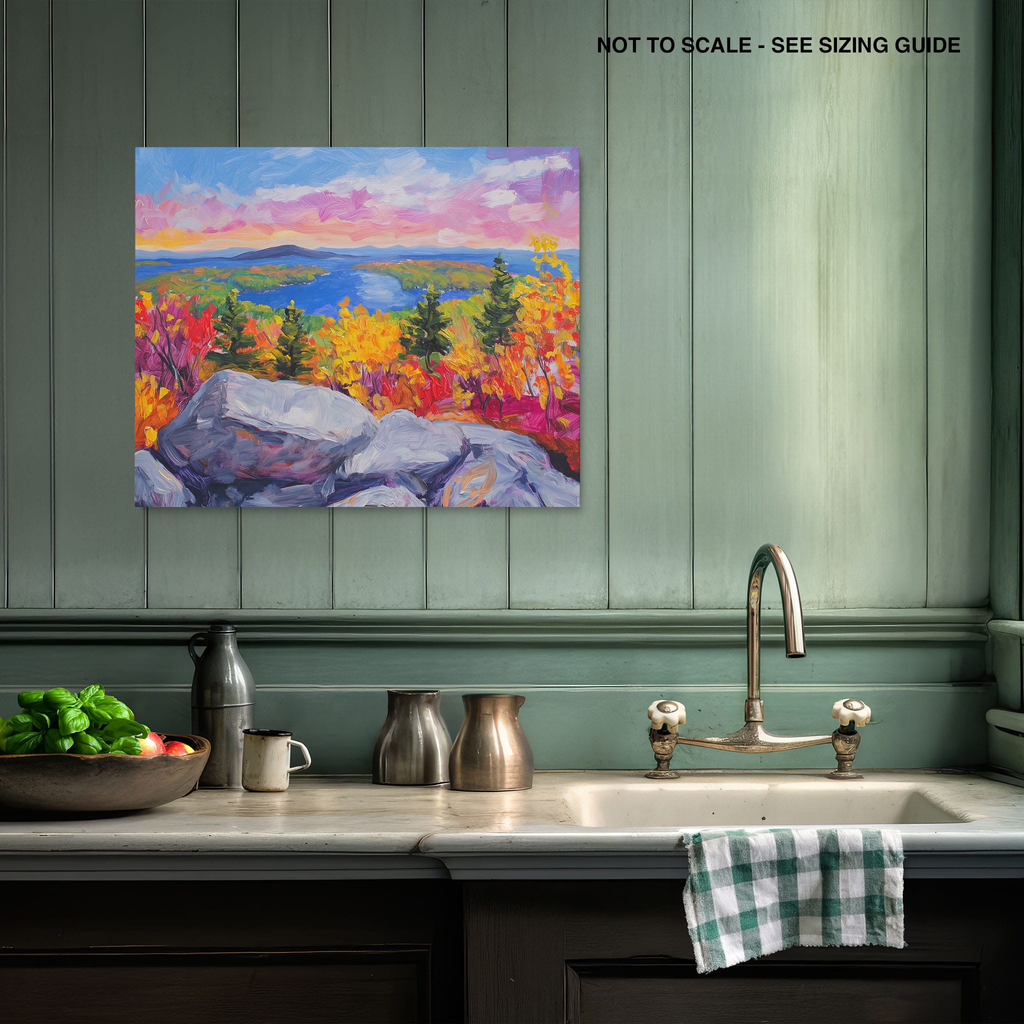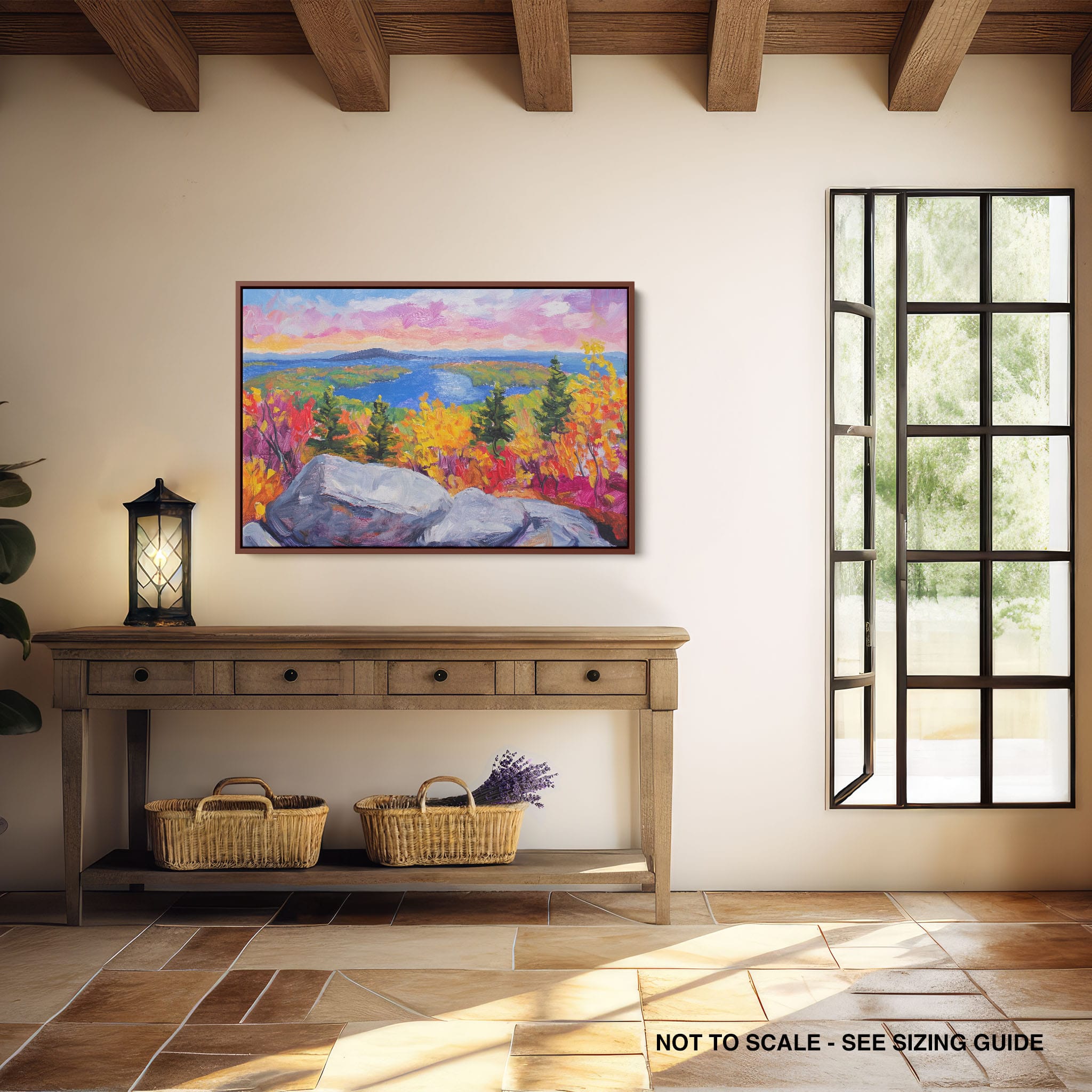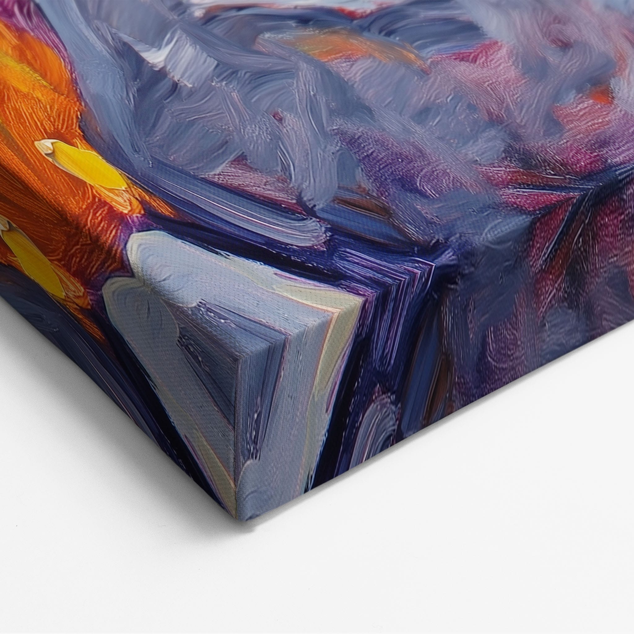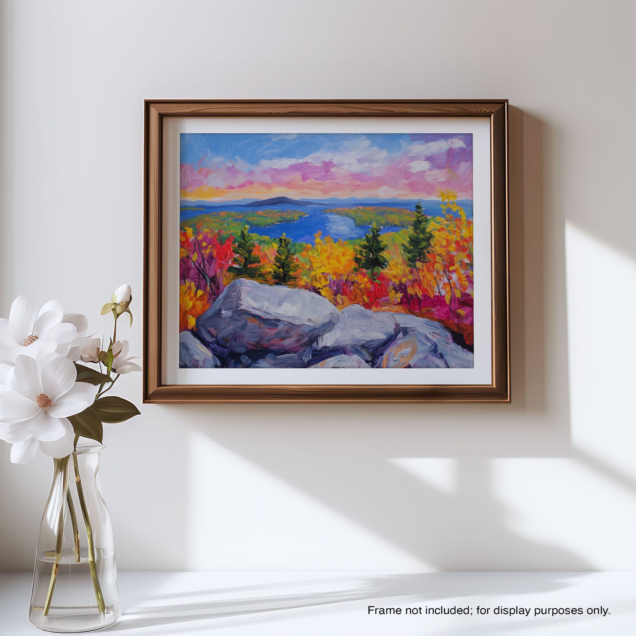 This vibrant oil painting captures a stirring landscape scene, brushing bold and dynamic colors across a forest’s autumn transformation. With expressive brushstrokes that evoke the energetic textures of nature, this work exudes the essence of Impressionism and Expressionism. The scene is set against a serene lake and a vast, captivating sky, contrasting the fiery foliage with calming blues. Perfect for any modern art lover looking to add a splash of color and emotion to their space, this piece sure resonates with those who appreciate the wild, untamed beauty of nature.