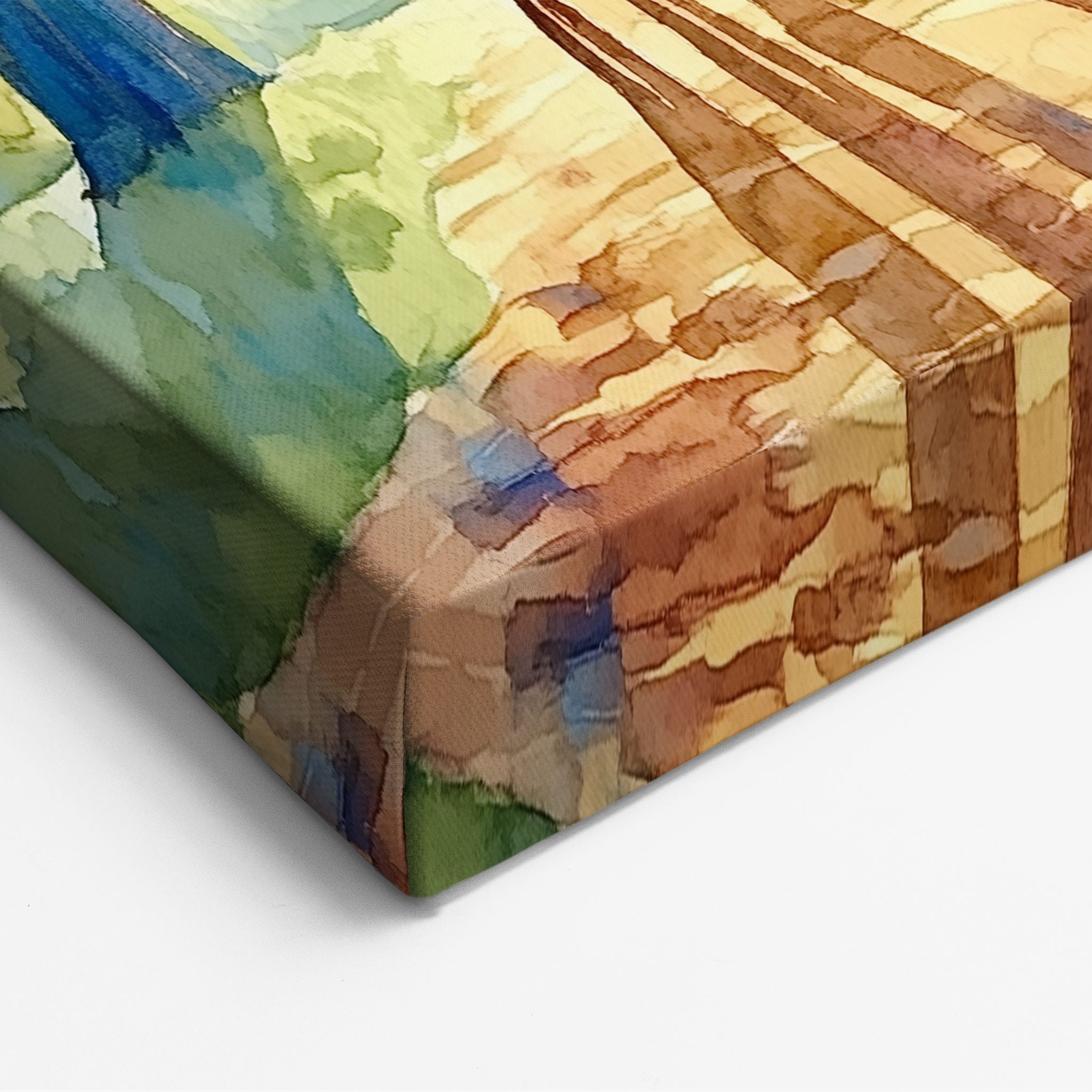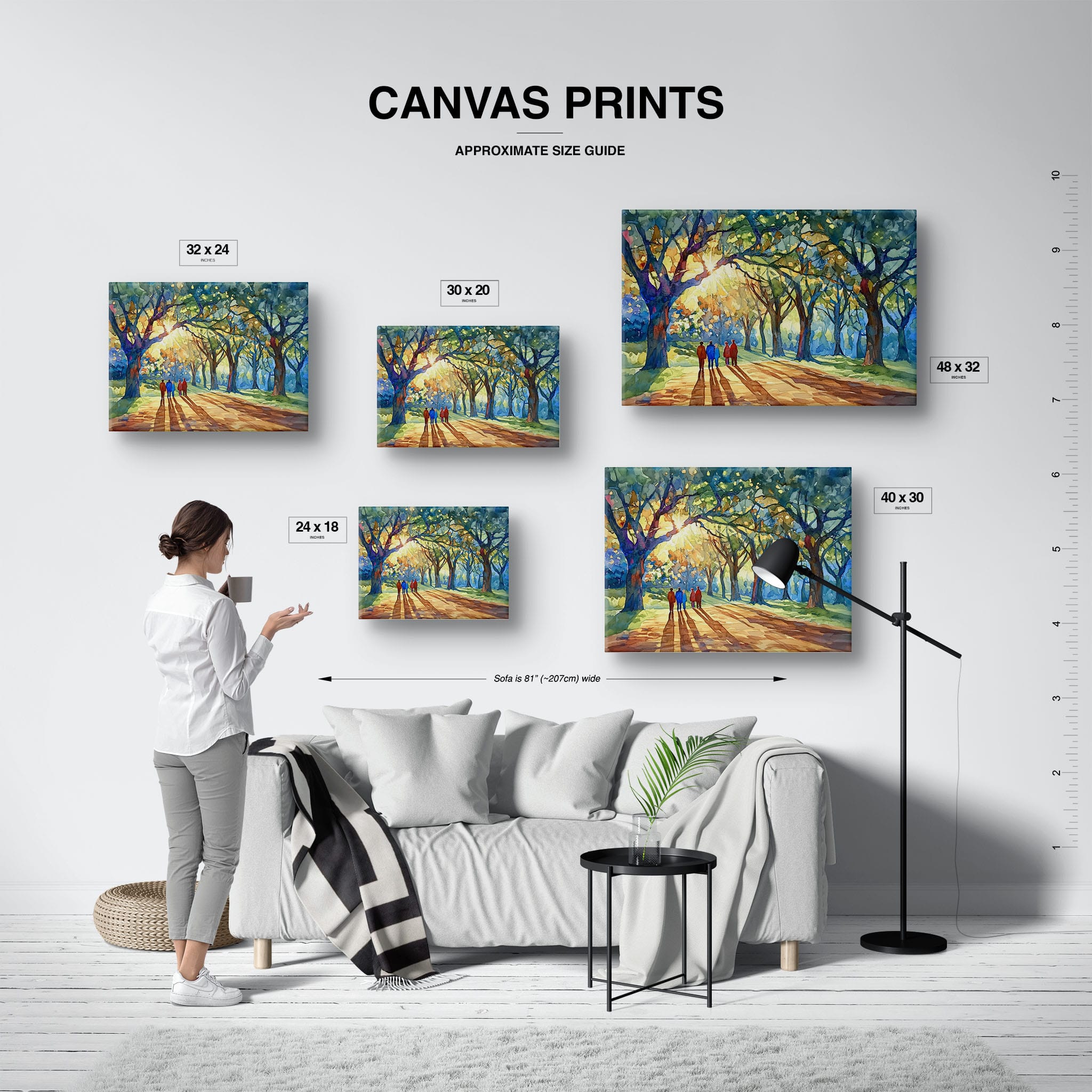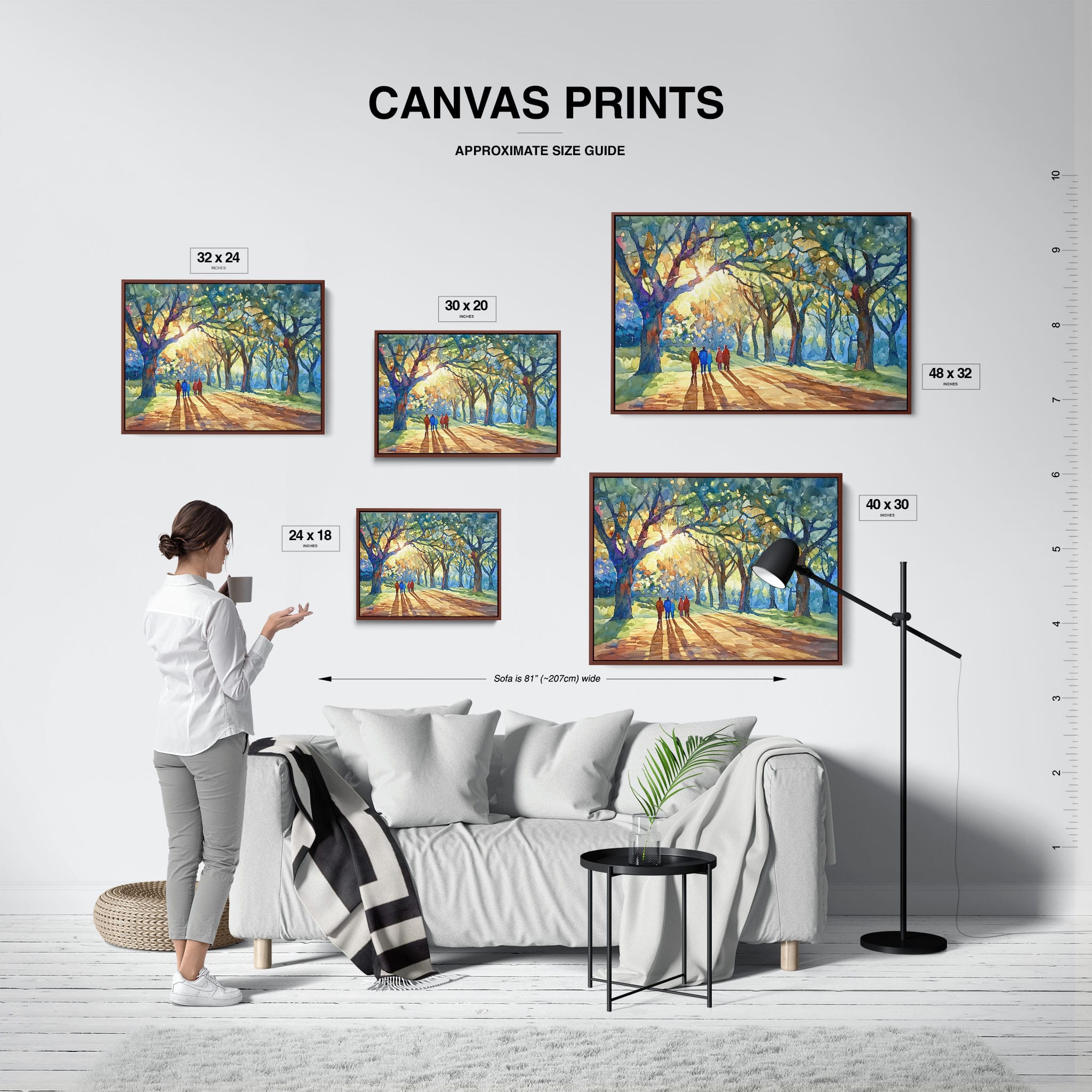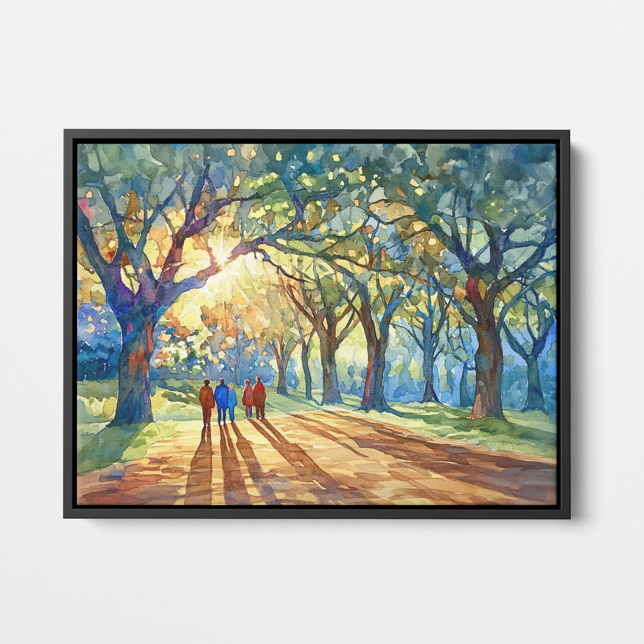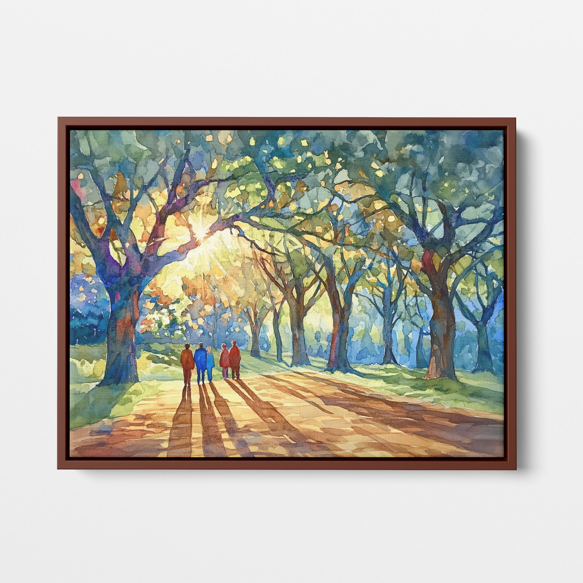 This enchanting digital watercolor painting captures a serene moment as three figures amble through a vivid autumnal landscape, their long shadows stretching across a sunlit park path. Its impressionistic style brings each brushstroke to life, showcasing a beautiful interplay of light and color. The whimsical portrayal of the fleeting nature of an autumn day offers a visual retreat for nature lovers and art aficionados alike. Perfect for adding a splash of vibrant colors and serene vibes to any space, this artwork is a must-have for those looking to brighten their surroundings with a piece of seasonal poetry.