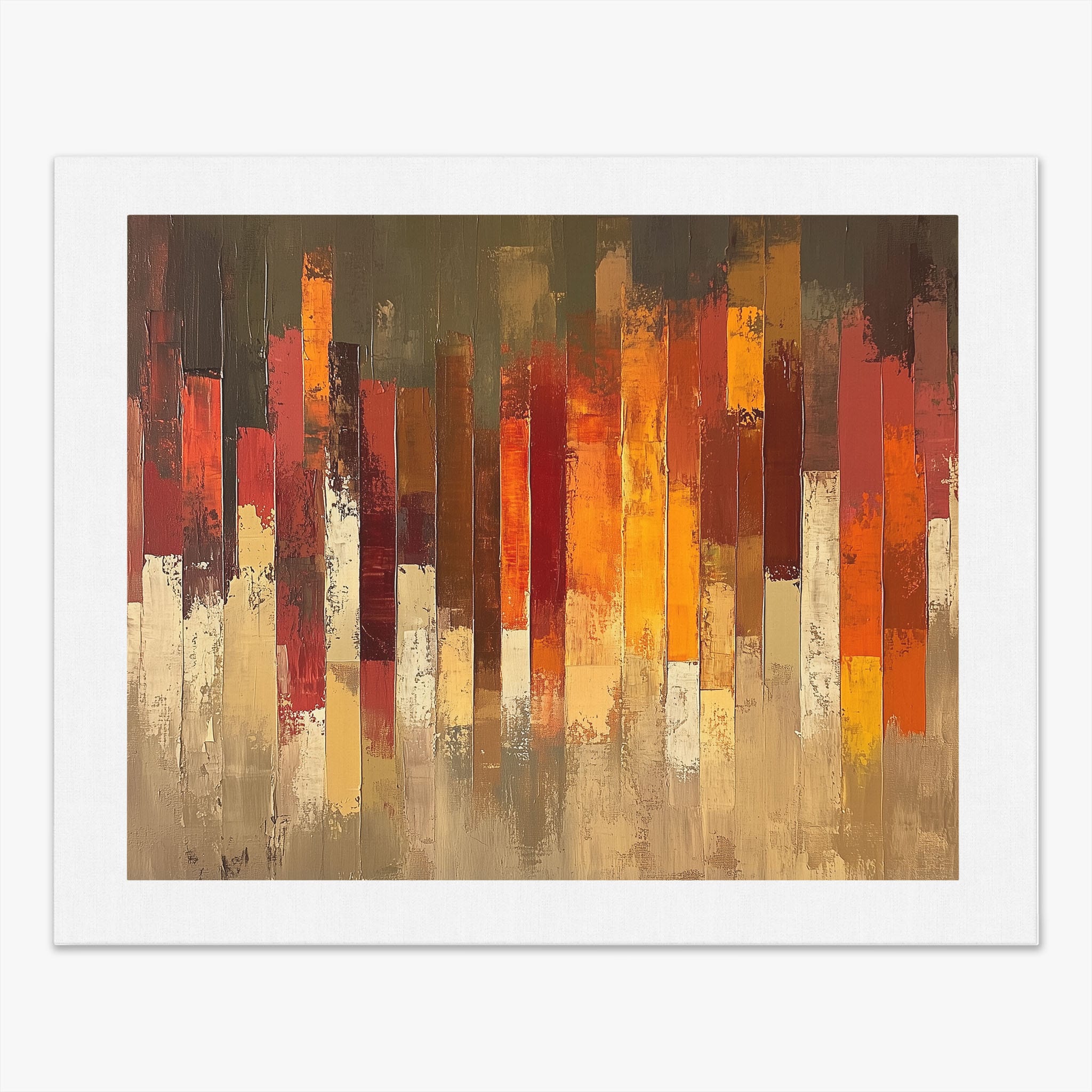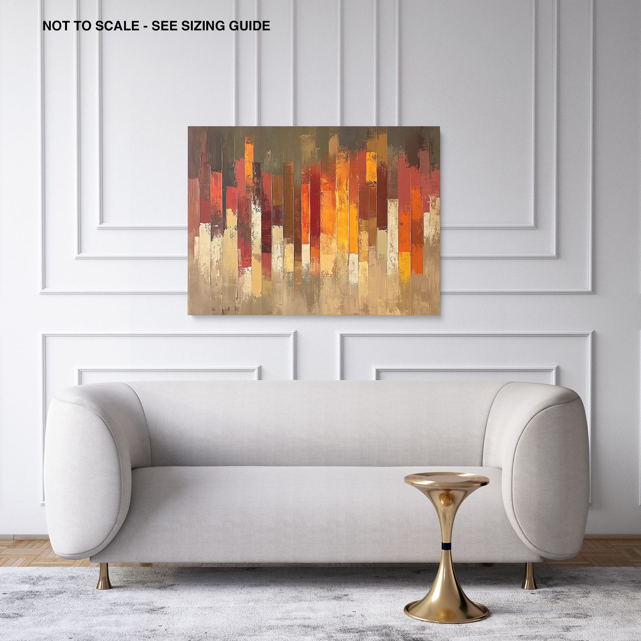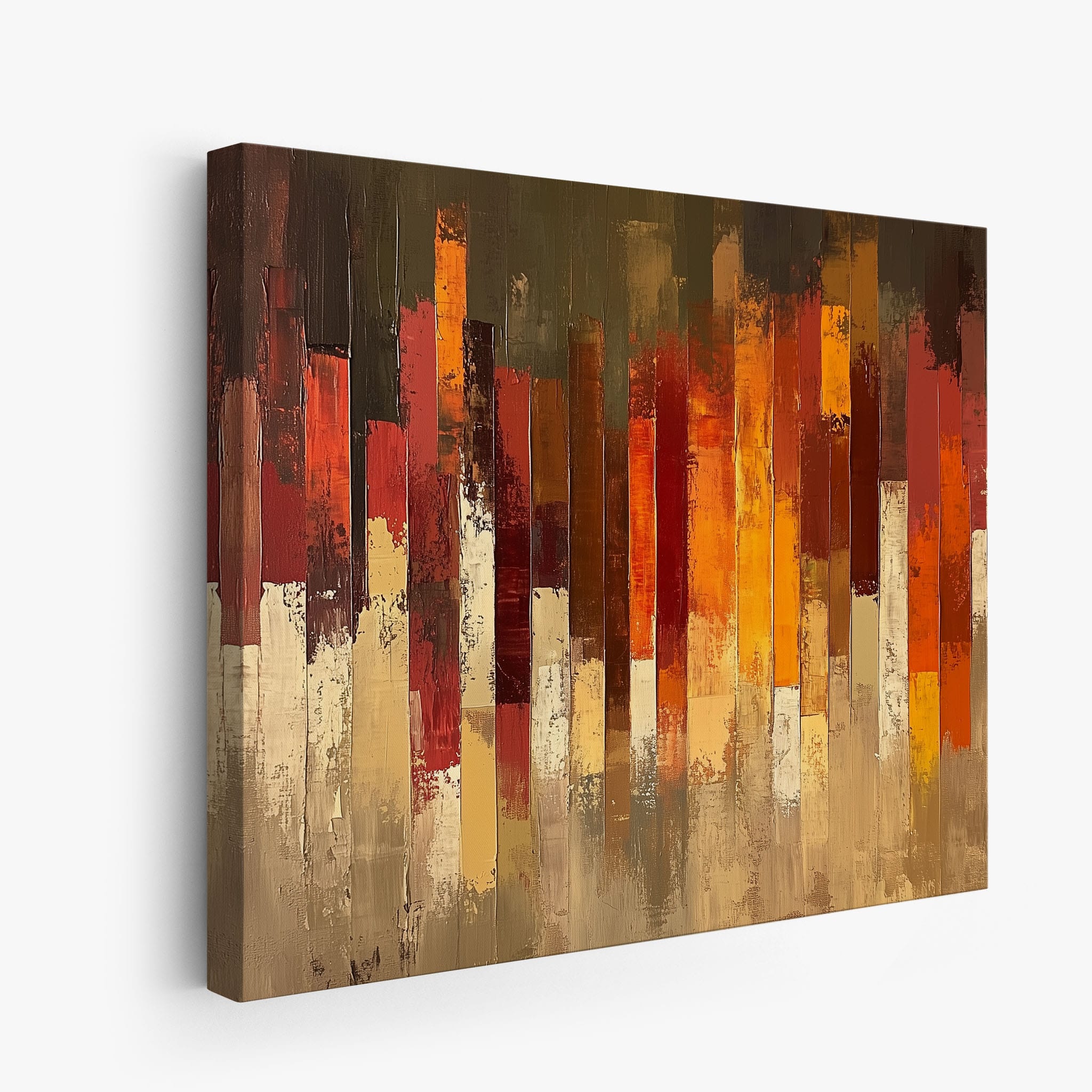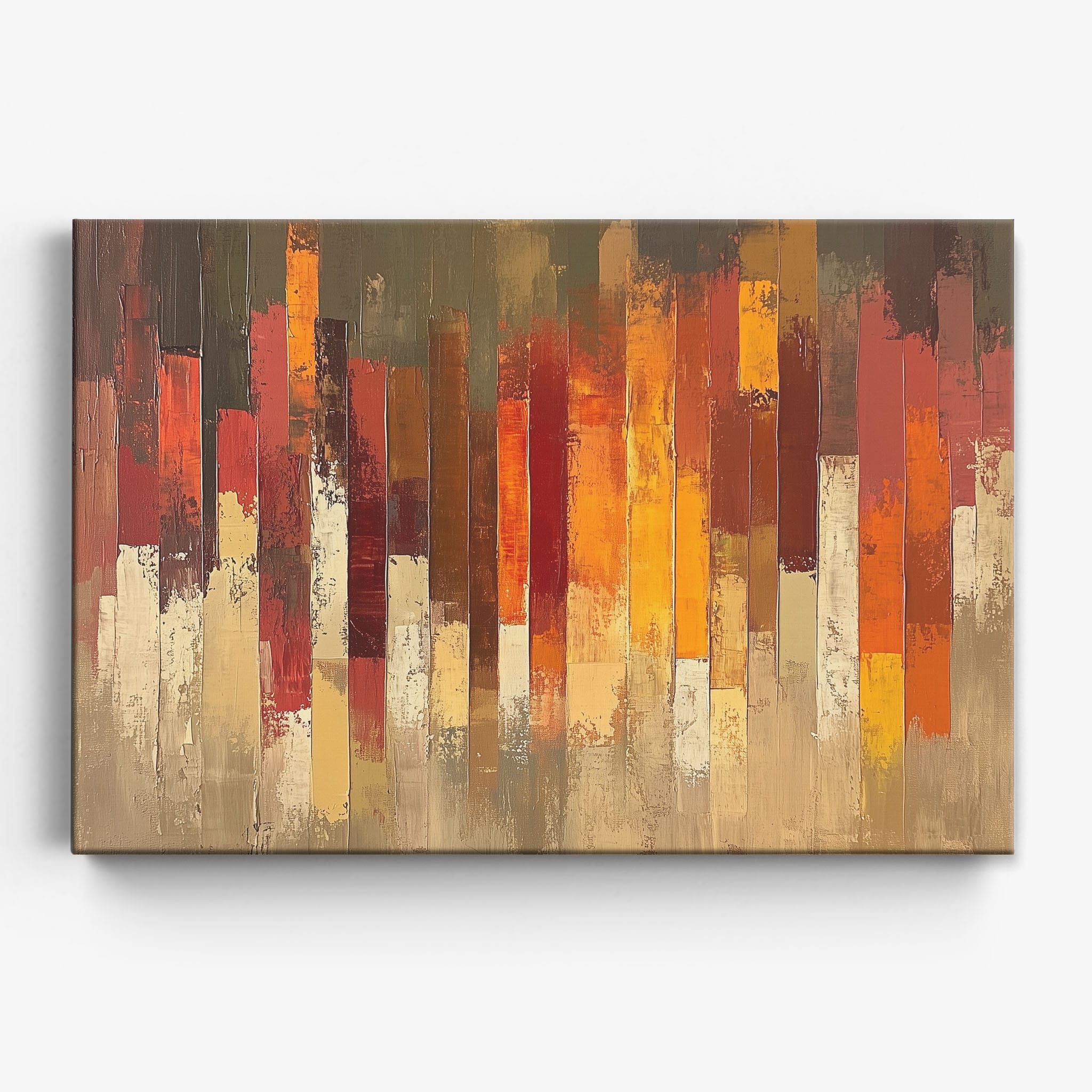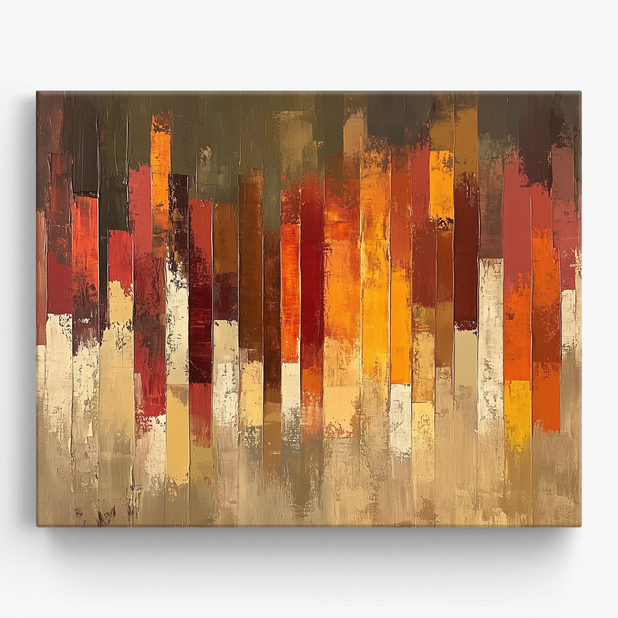 This vibrant painting captures an abstract rendering of autumn colors in bold strokes and a lively composition. The artwork utilizes a mix of red, orange, and earth tones that dance across the canvas, creating a sense of movement and passion. The textures are rich and tactile, inviting viewers to explore the depths of each layer. Perfect for modern decor enthusiasts, this piece delivers both a visual impact and a sophisticated appeal. Add a touch of expressive modern art to your space with this captivating piece that effortlessly combines style and emotional resonance.