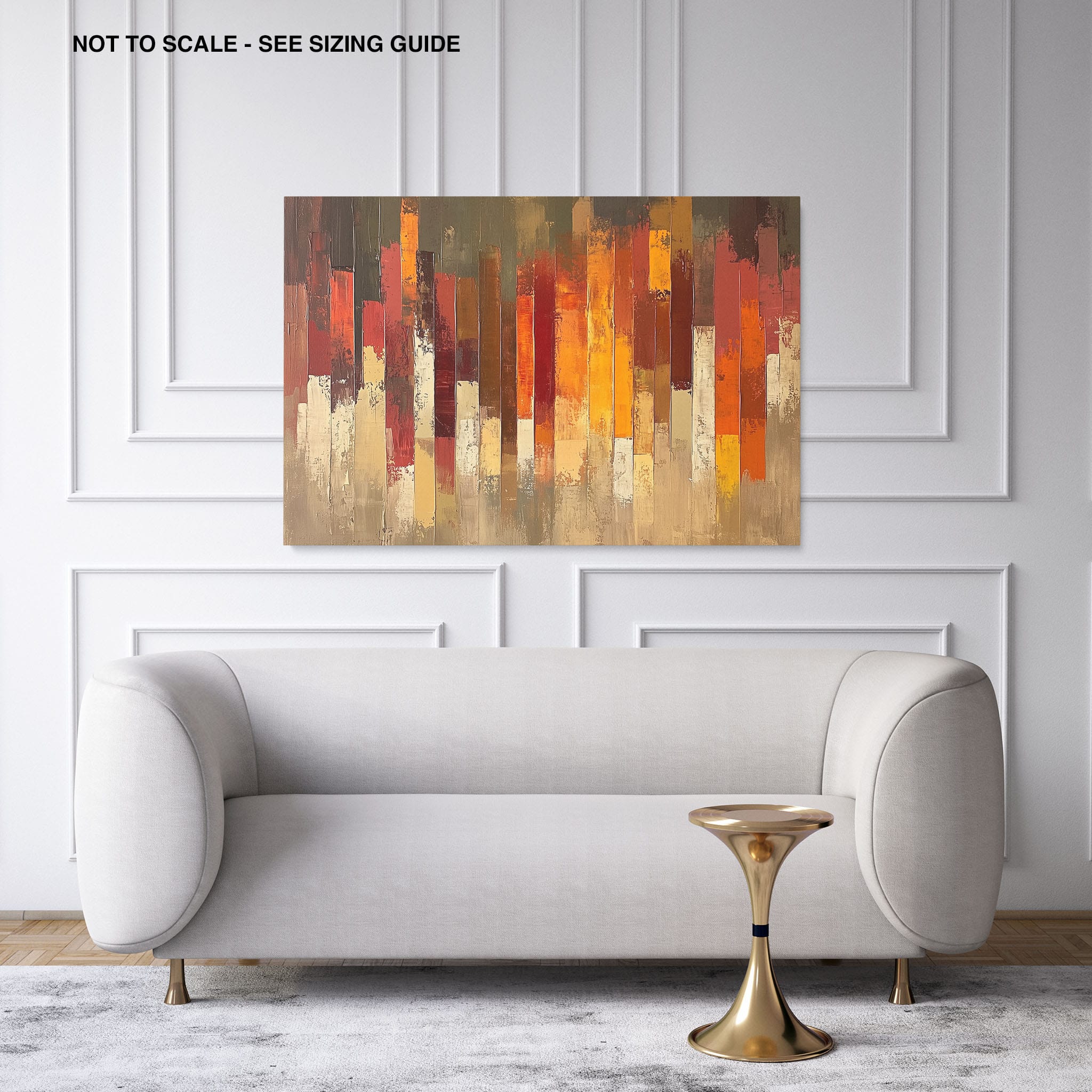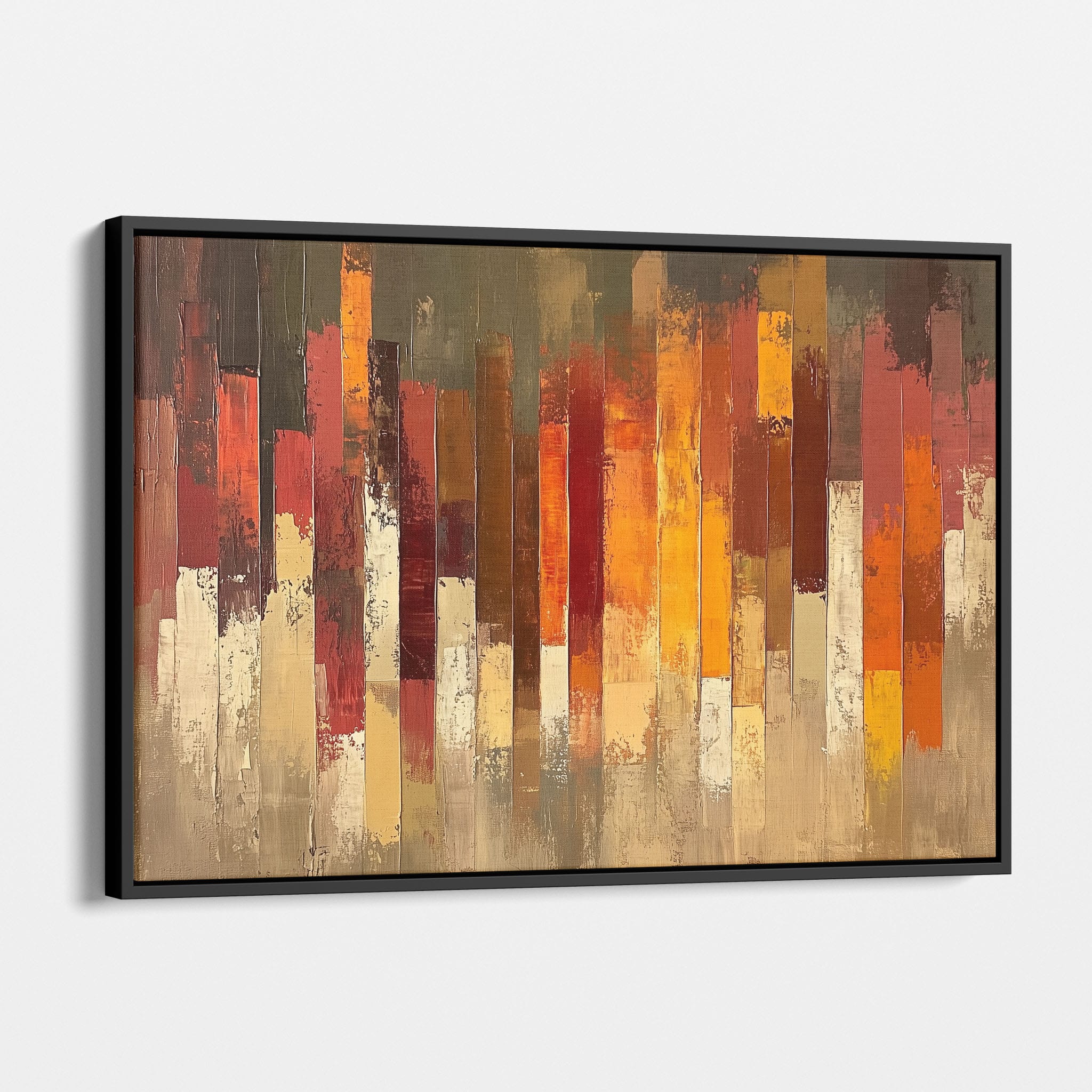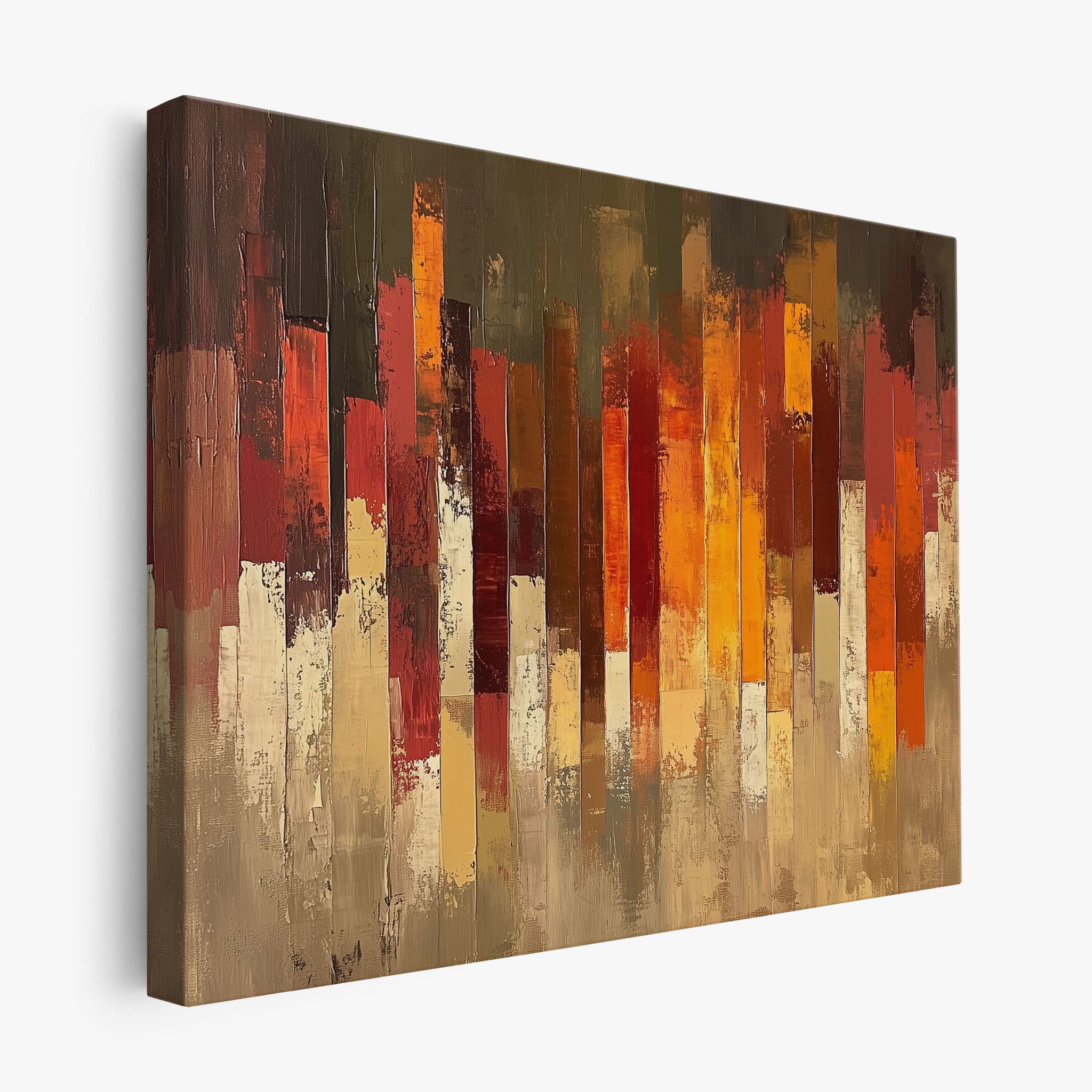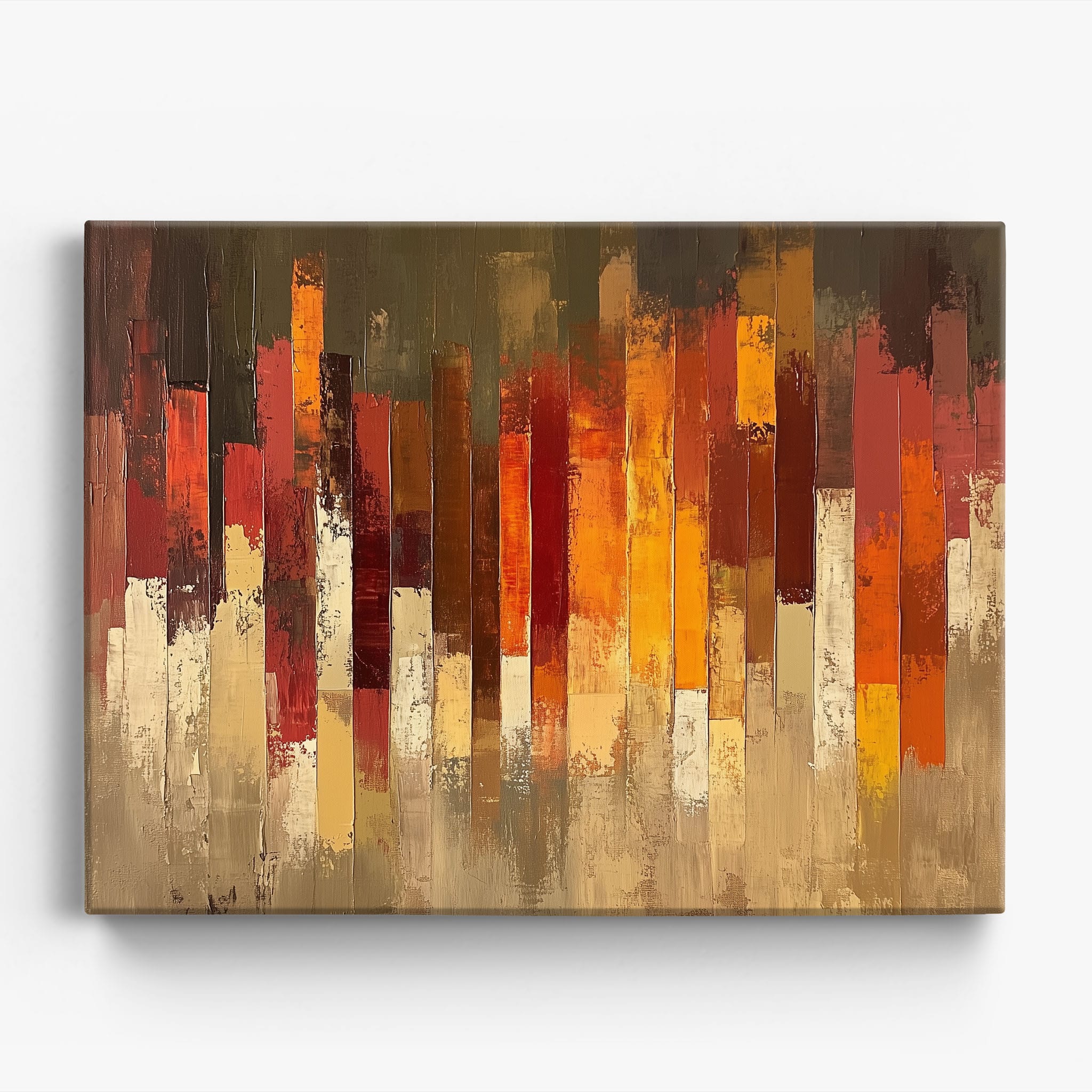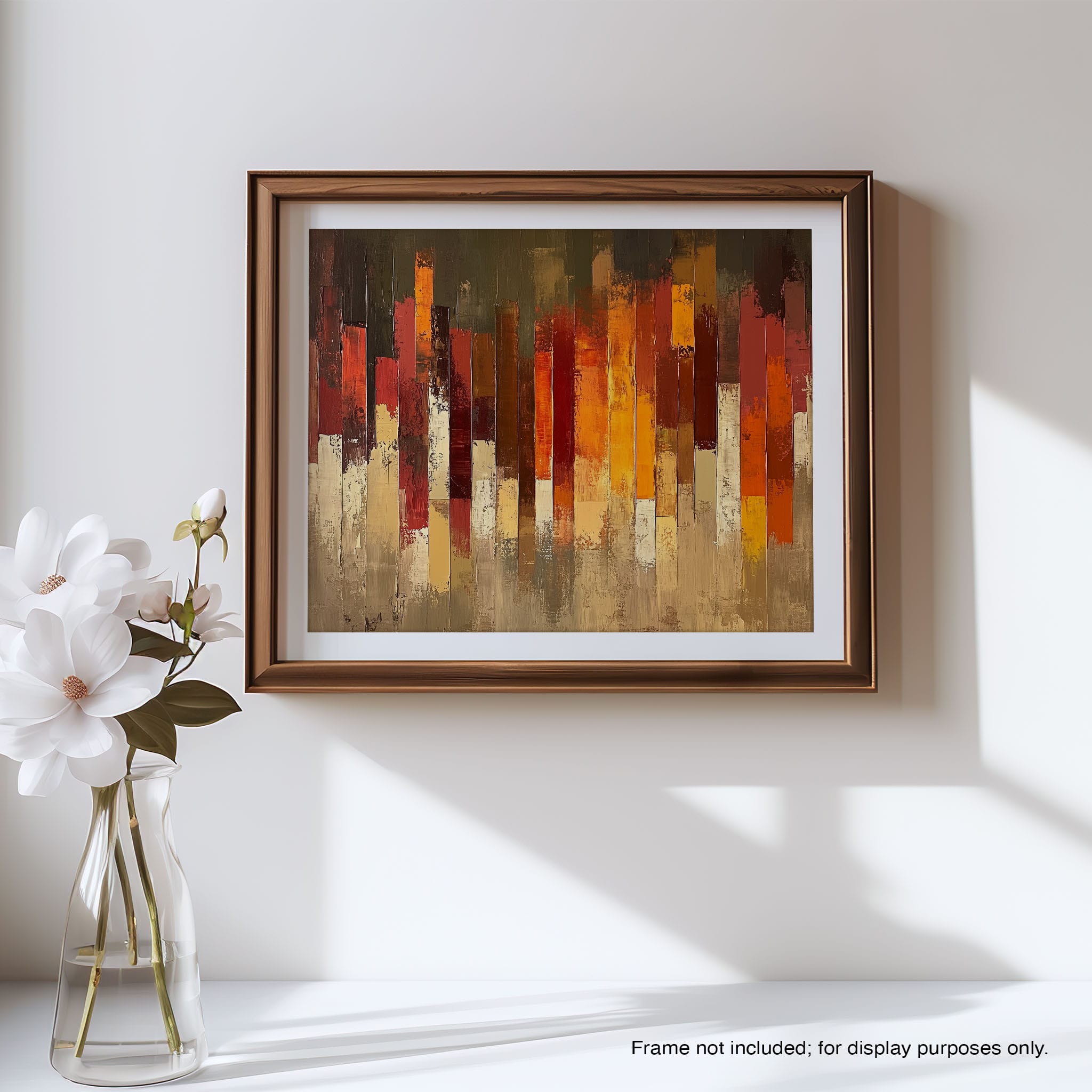 This vibrant painting captures an abstract rendering of autumn colors in bold strokes and a lively composition. The artwork utilizes a mix of red, orange, and earth tones that dance across the canvas, creating a sense of movement and passion. The textures are rich and tactile, inviting viewers to explore the depths of each layer. Perfect for modern decor enthusiasts, this piece delivers both a visual impact and a sophisticated appeal. Add a touch of expressive modern art to your space with this captivating piece that effortlessly combines style and emotional resonance.