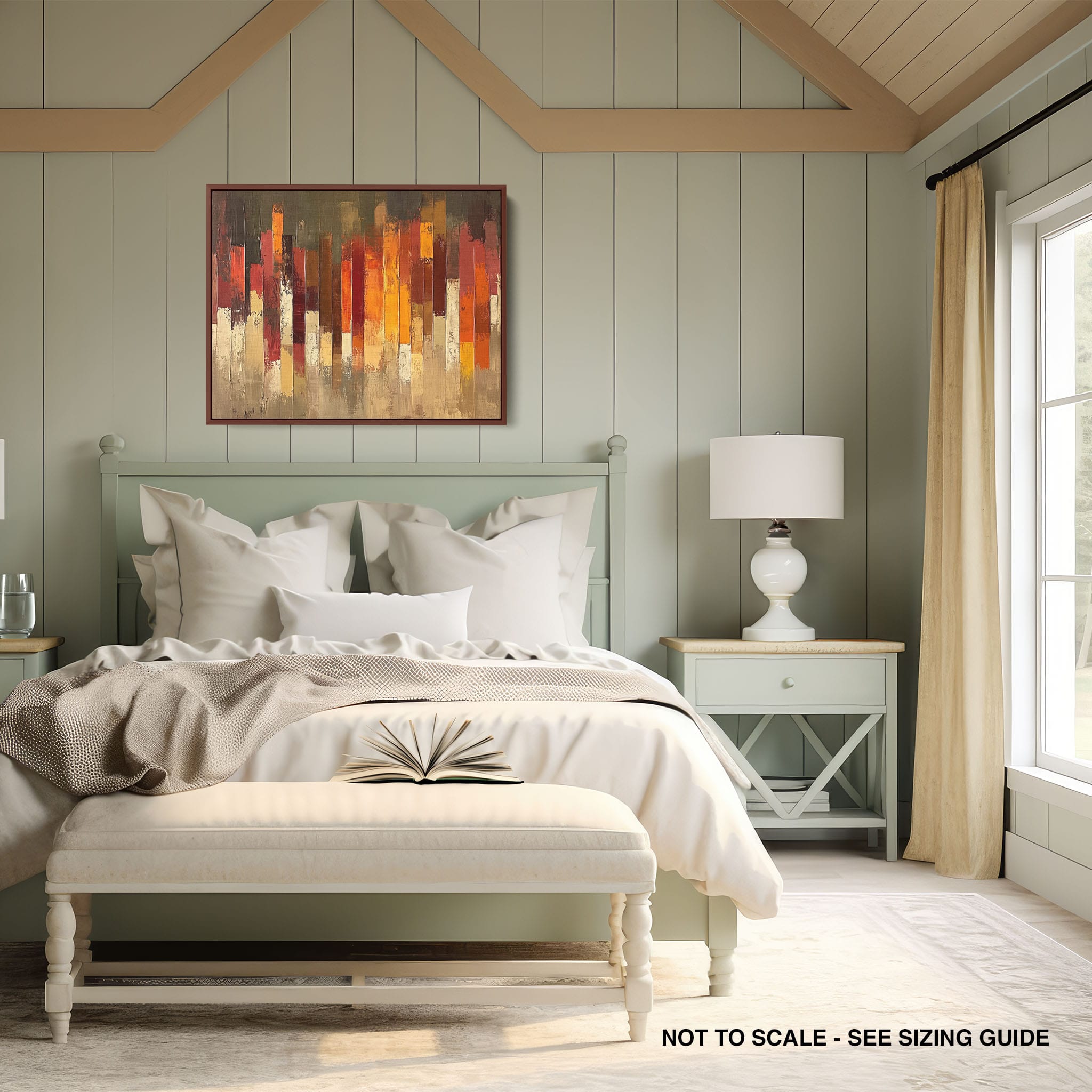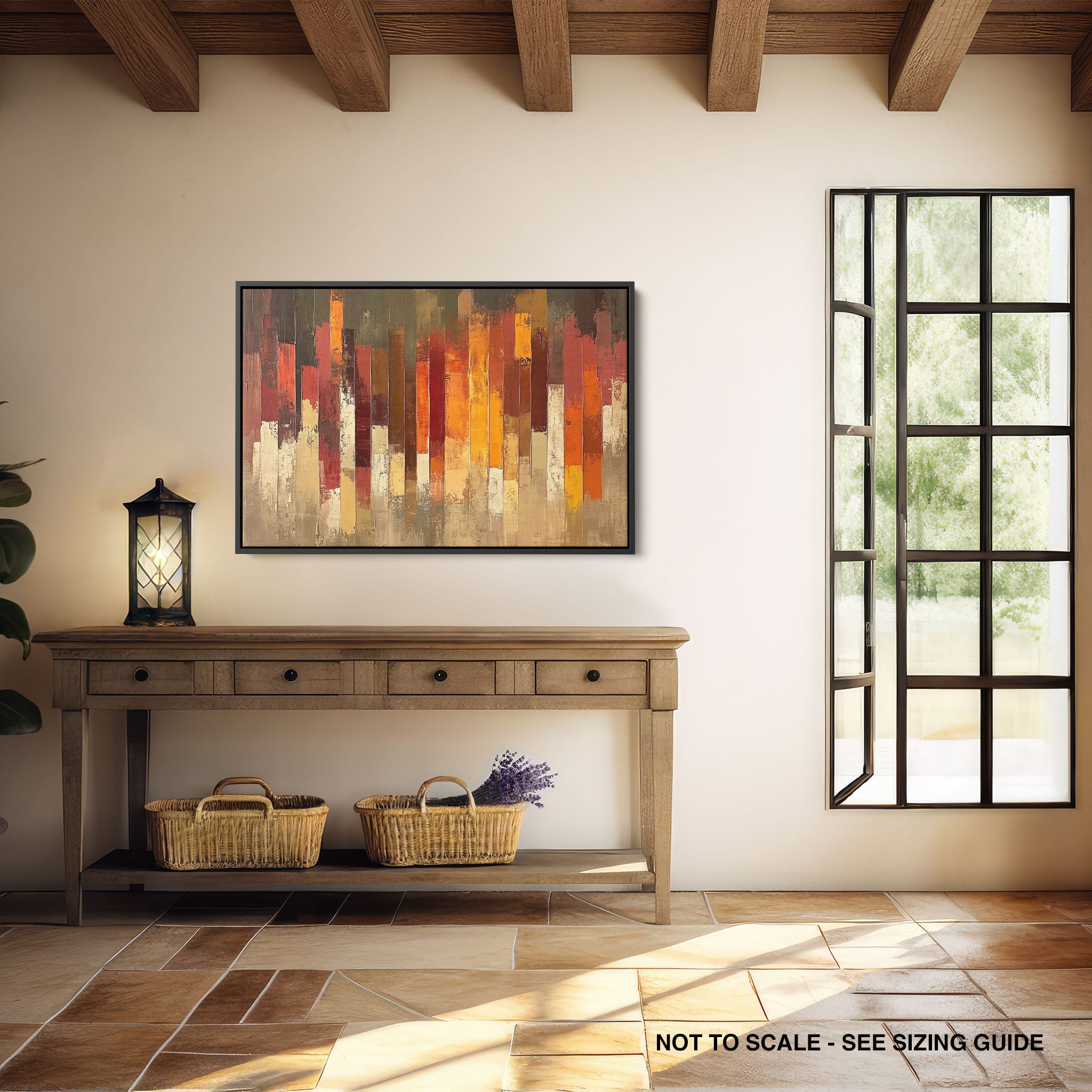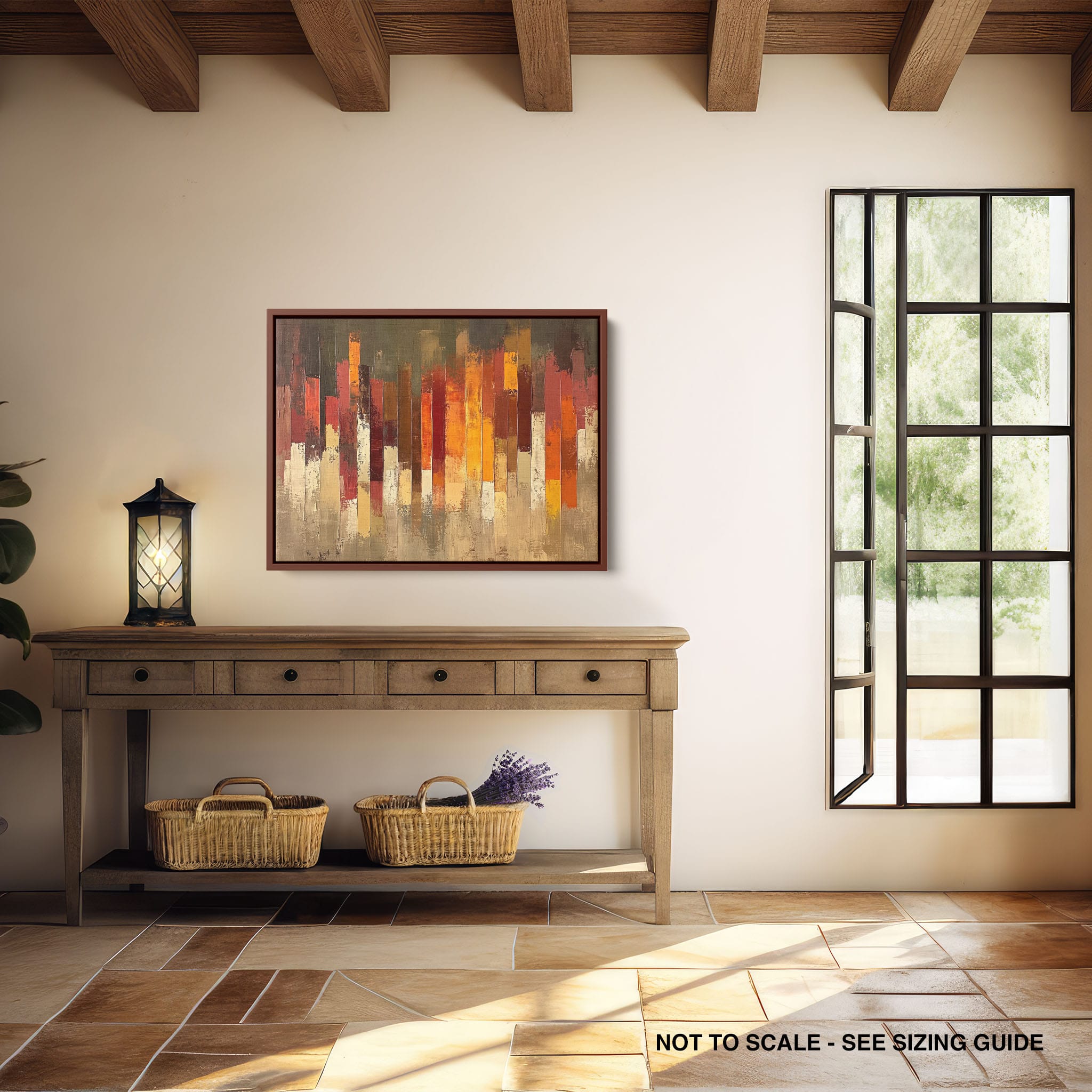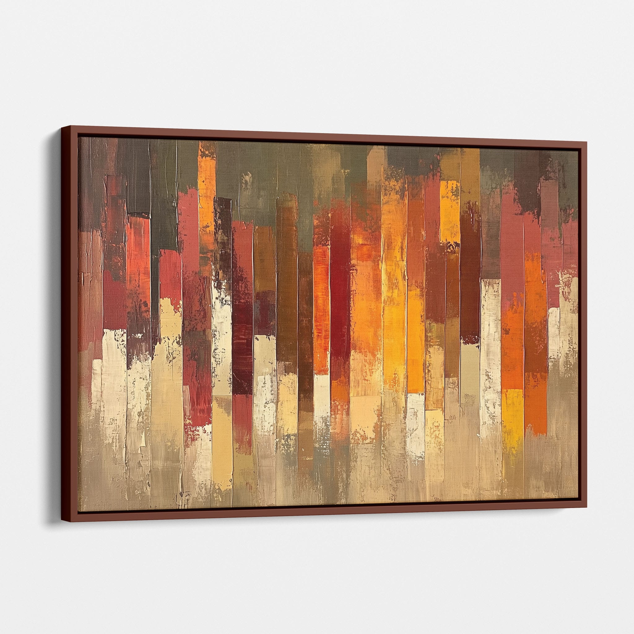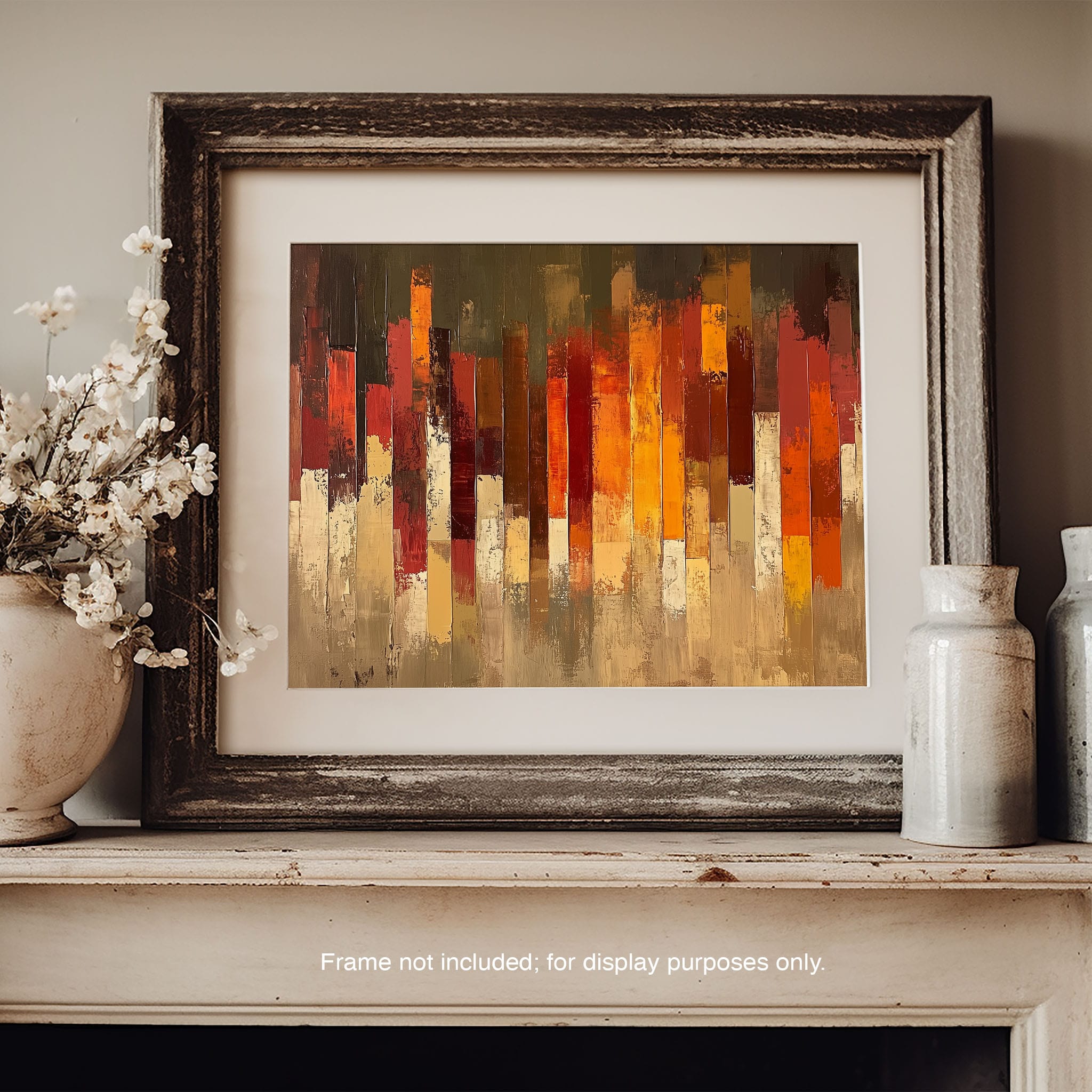 This vibrant painting captures an abstract rendering of autumn colors in bold strokes and a lively composition. The artwork utilizes a mix of red, orange, and earth tones that dance across the canvas, creating a sense of movement and passion. The textures are rich and tactile, inviting viewers to explore the depths of each layer. Perfect for modern decor enthusiasts, this piece delivers both a visual impact and a sophisticated appeal. Add a touch of expressive modern art to your space with this captivating piece that effortlessly combines style and emotional resonance.