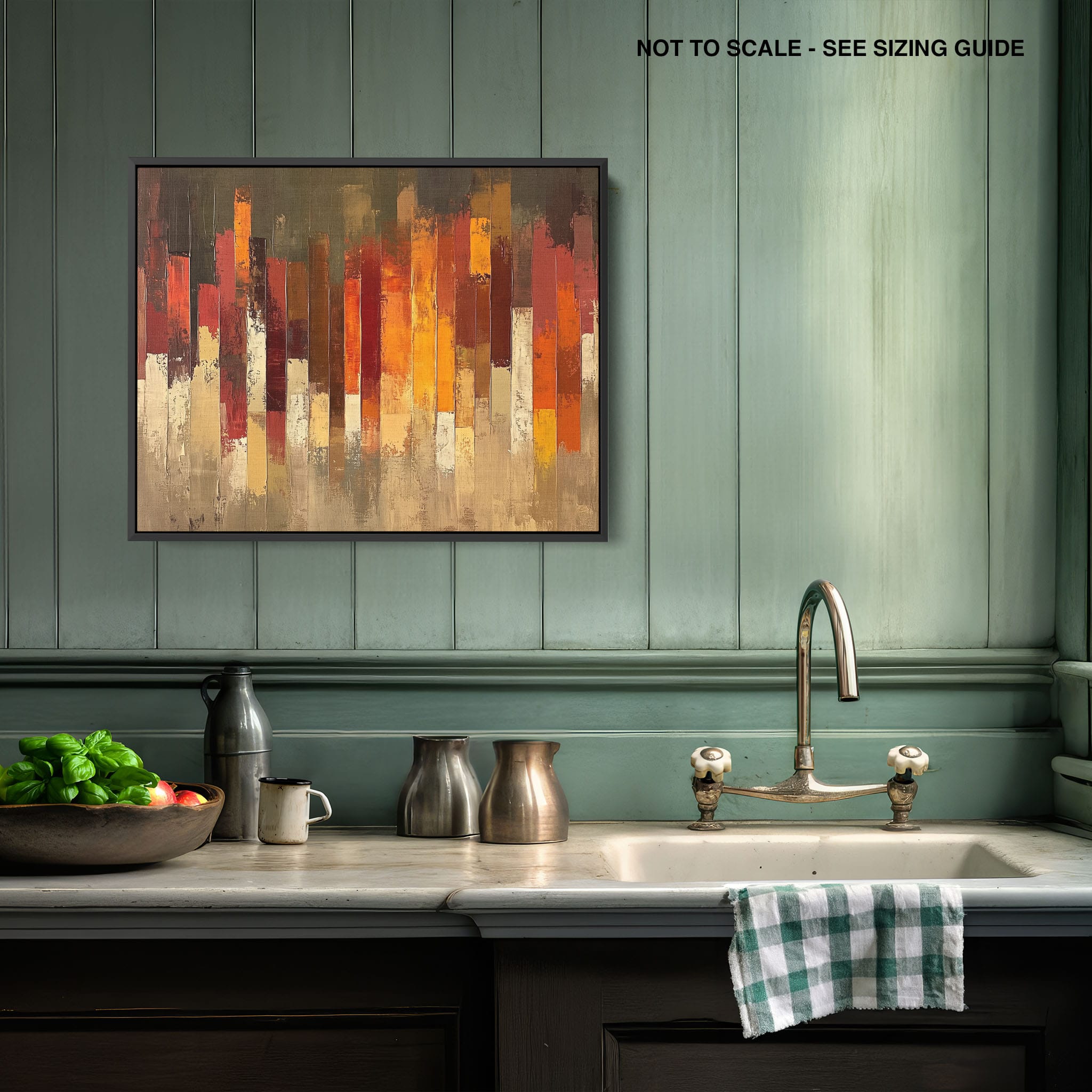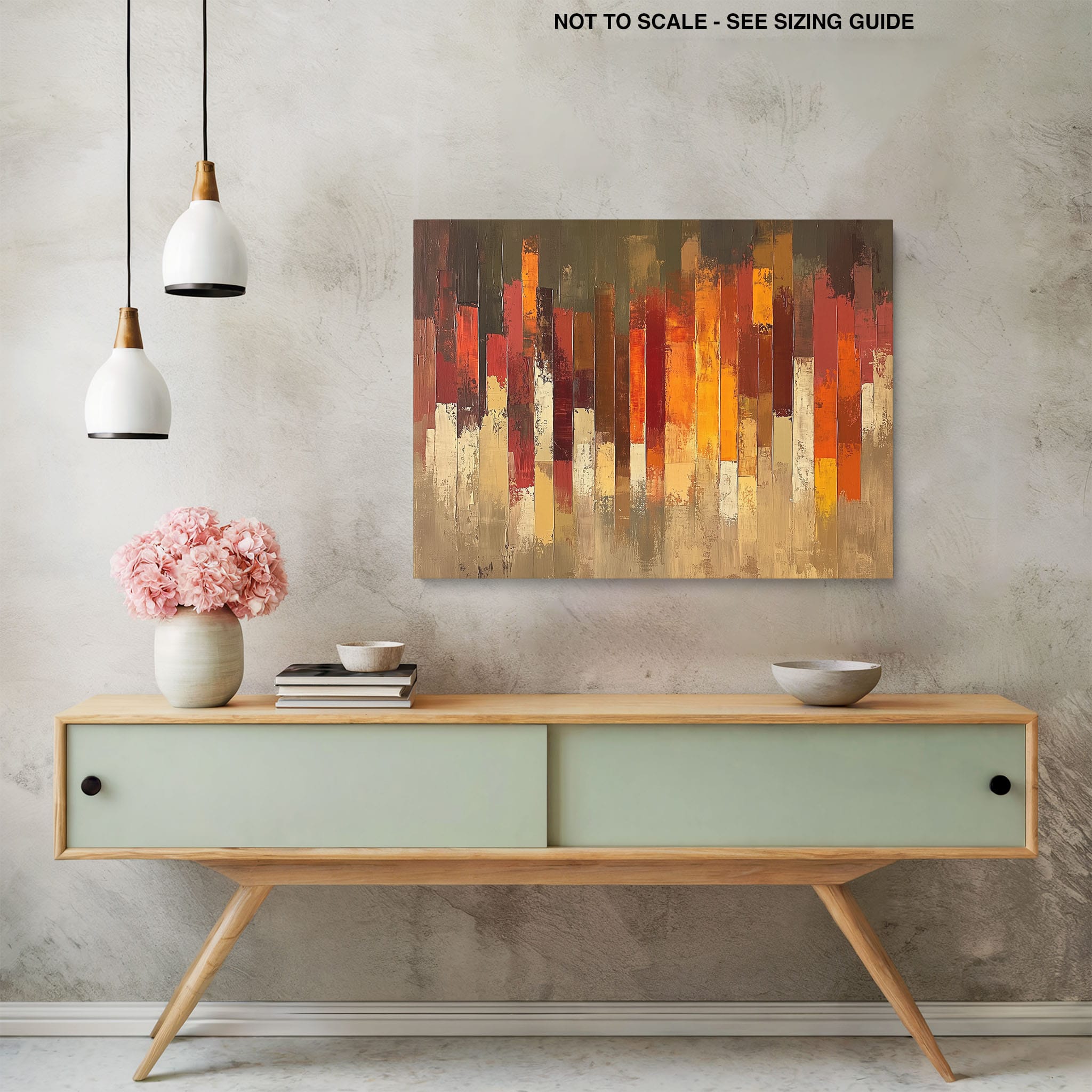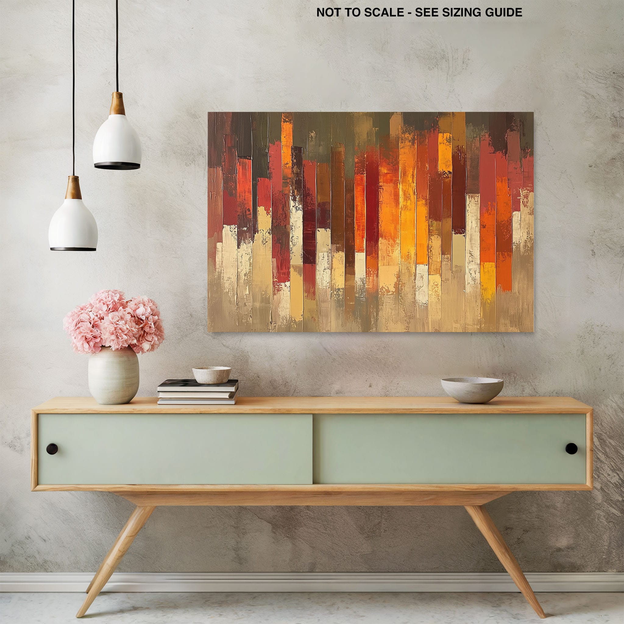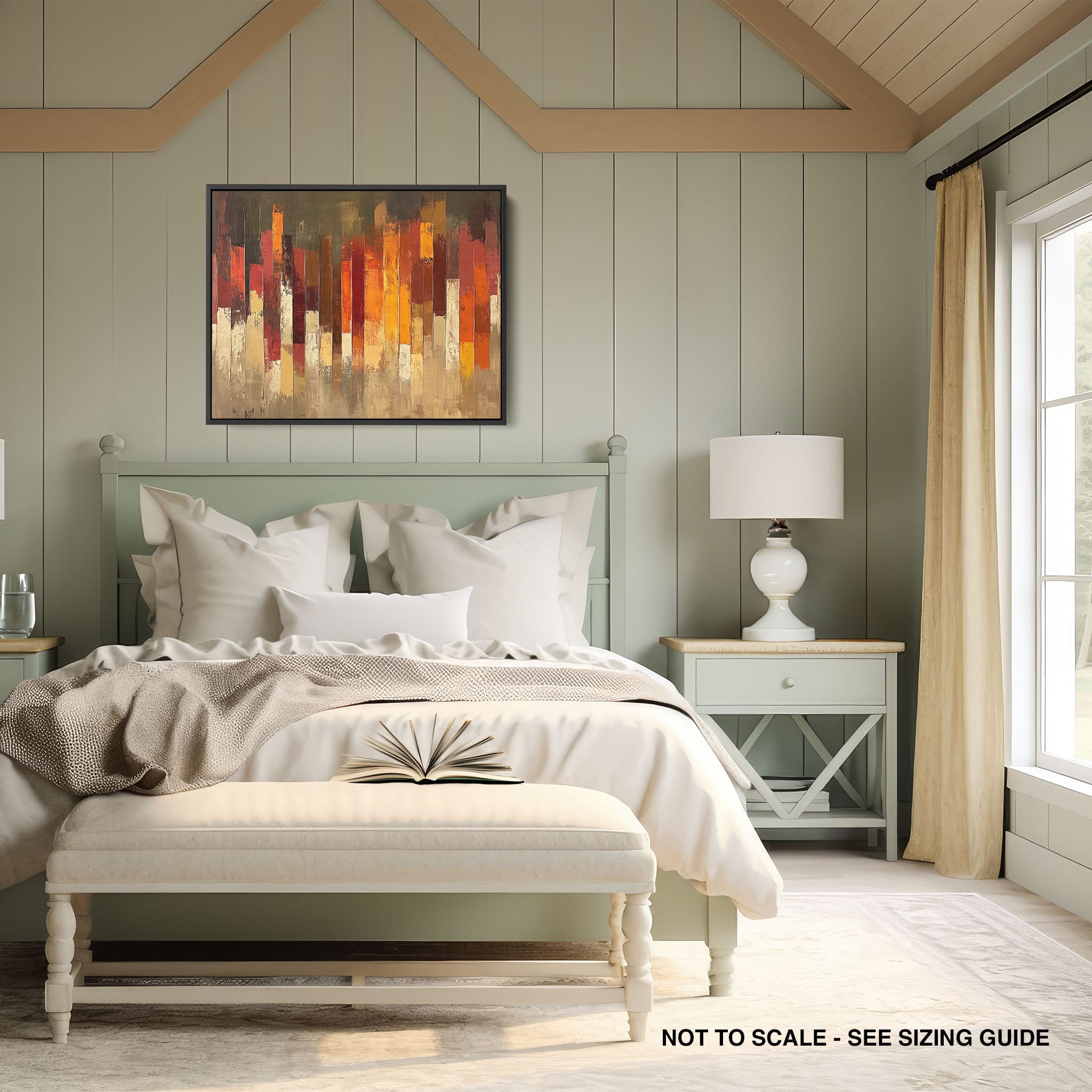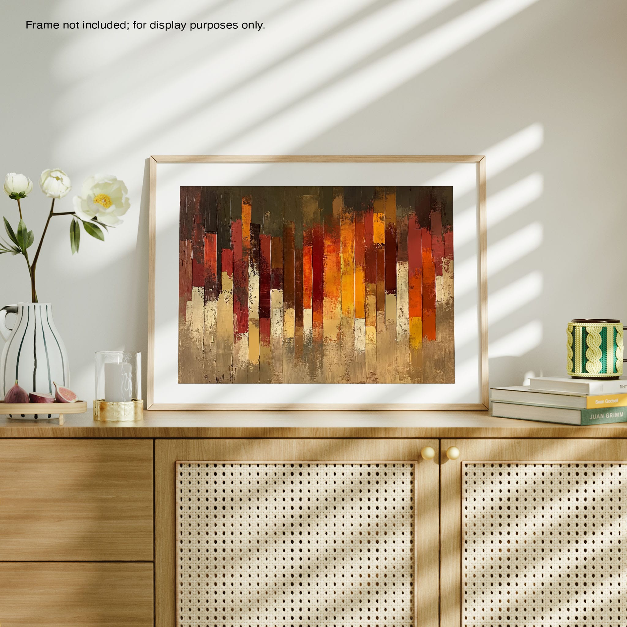 This vibrant painting captures an abstract rendering of autumn colors in bold strokes and a lively composition. The artwork utilizes a mix of red, orange, and earth tones that dance across the canvas, creating a sense of movement and passion. The textures are rich and tactile, inviting viewers to explore the depths of each layer. Perfect for modern decor enthusiasts, this piece delivers both a visual impact and a sophisticated appeal. Add a touch of expressive modern art to your space with this captivating piece that effortlessly combines style and emotional resonance.