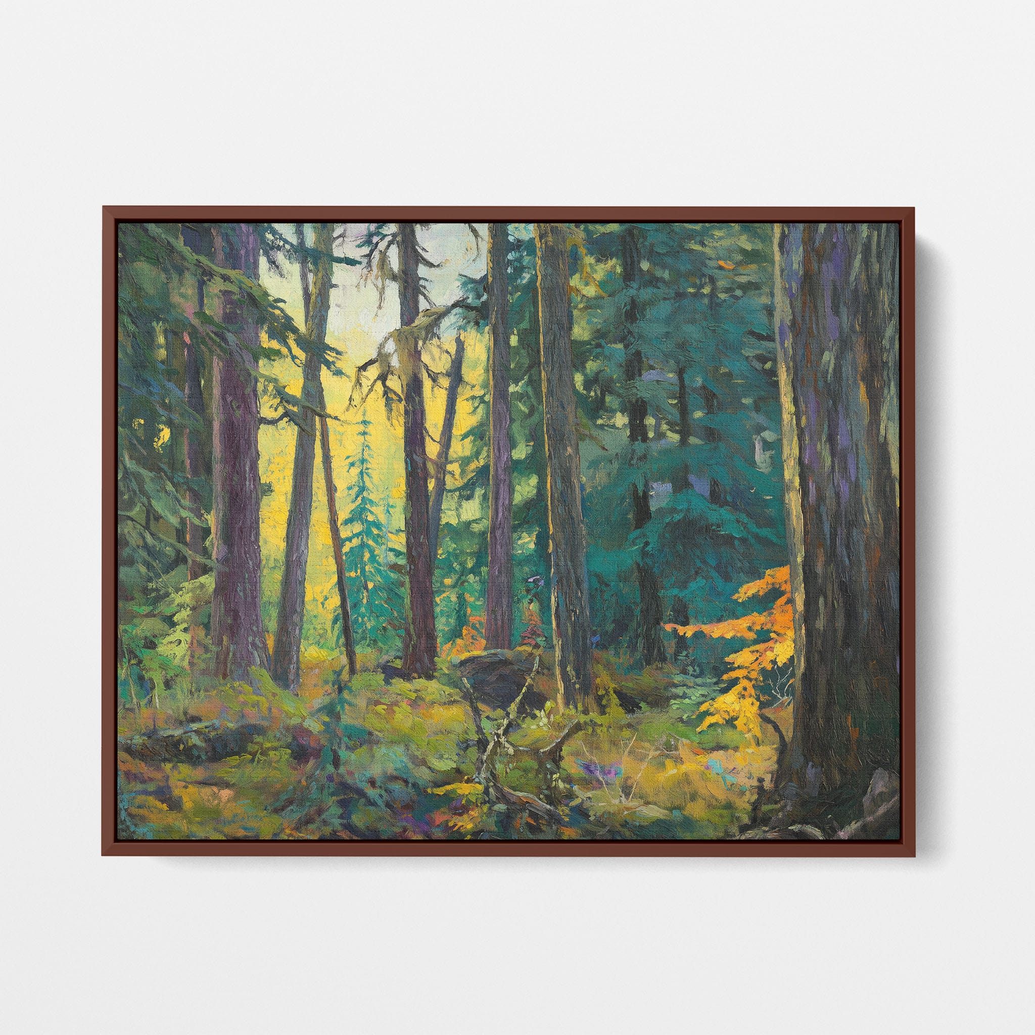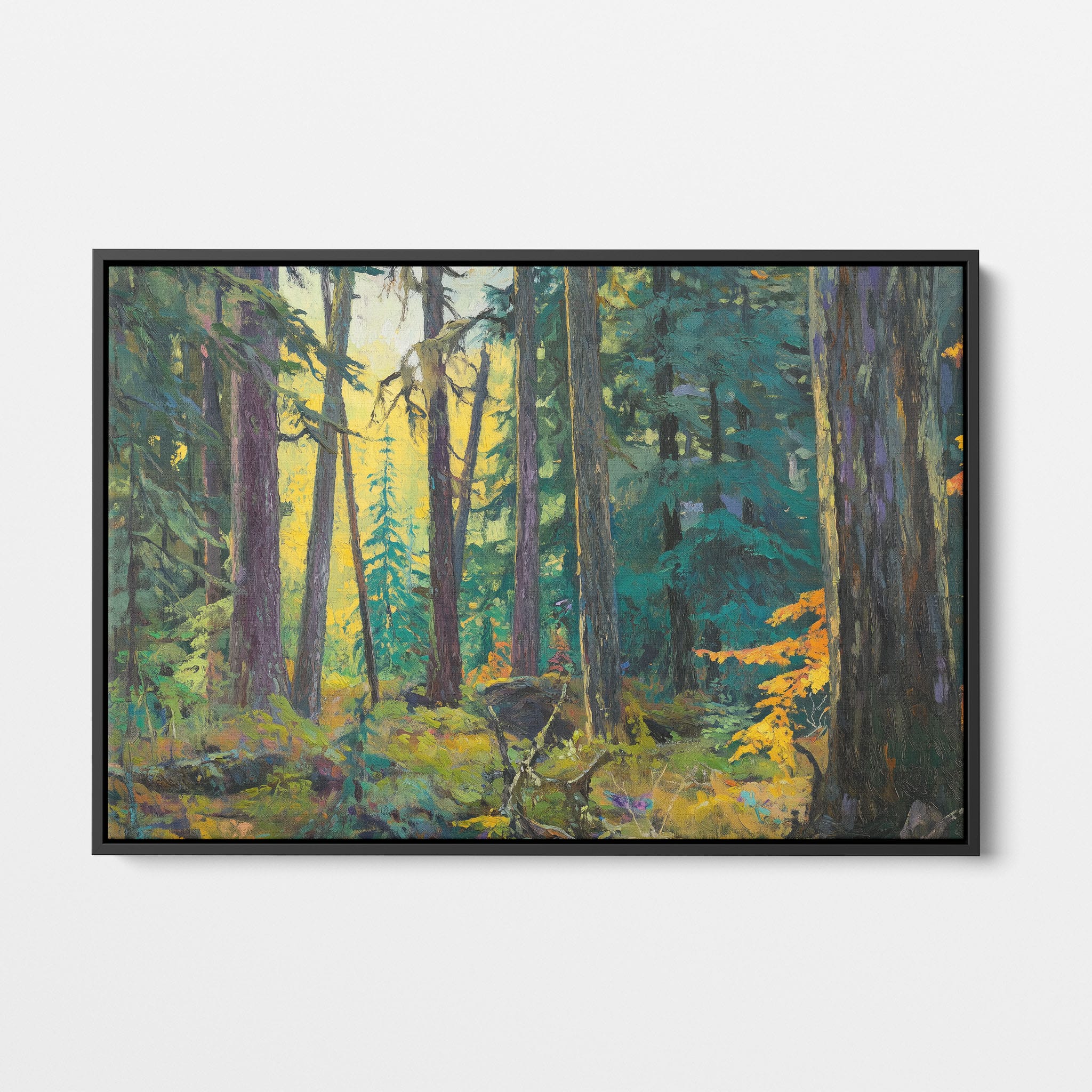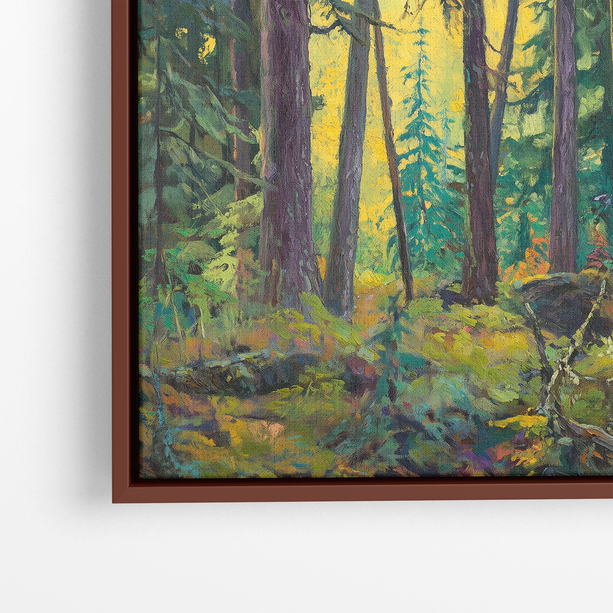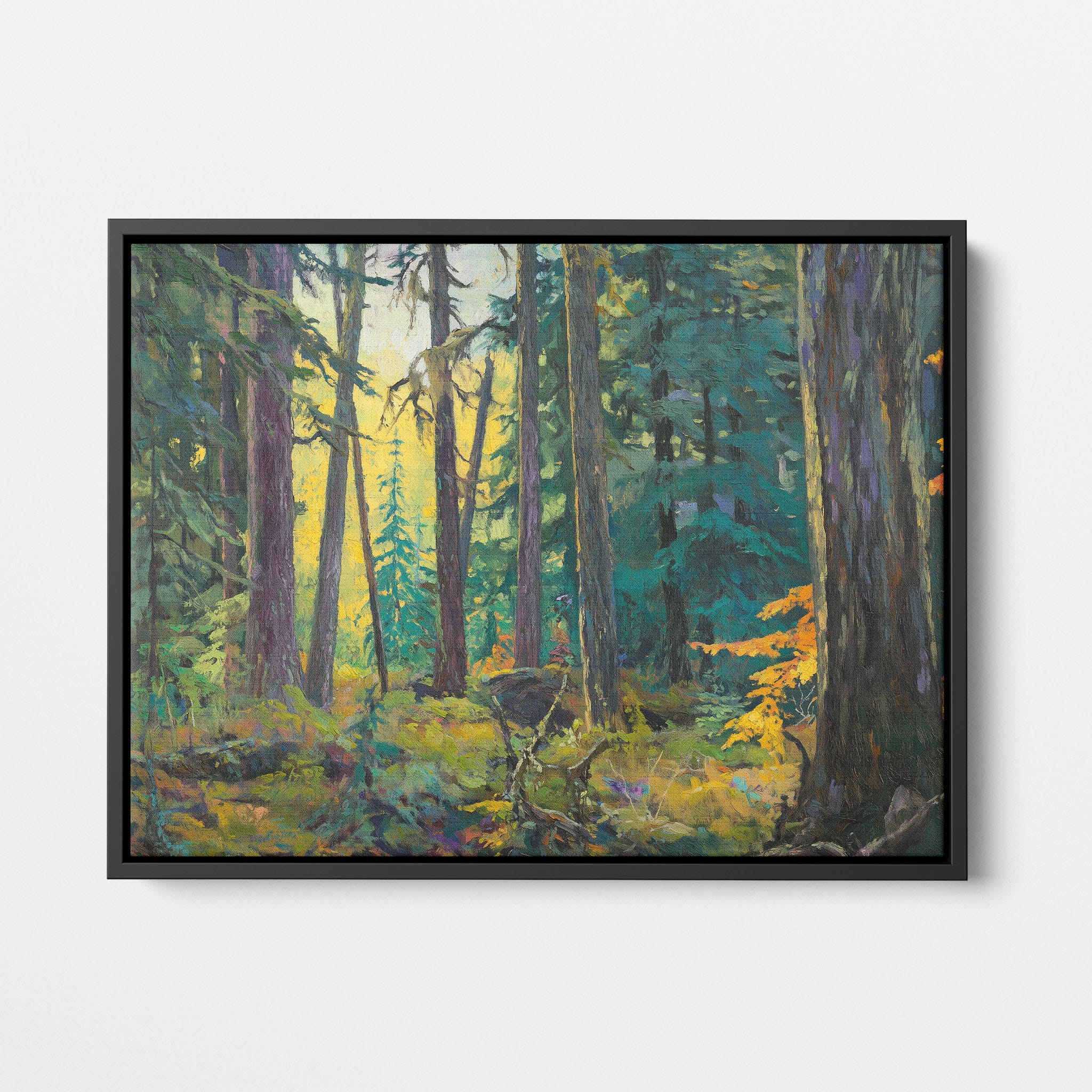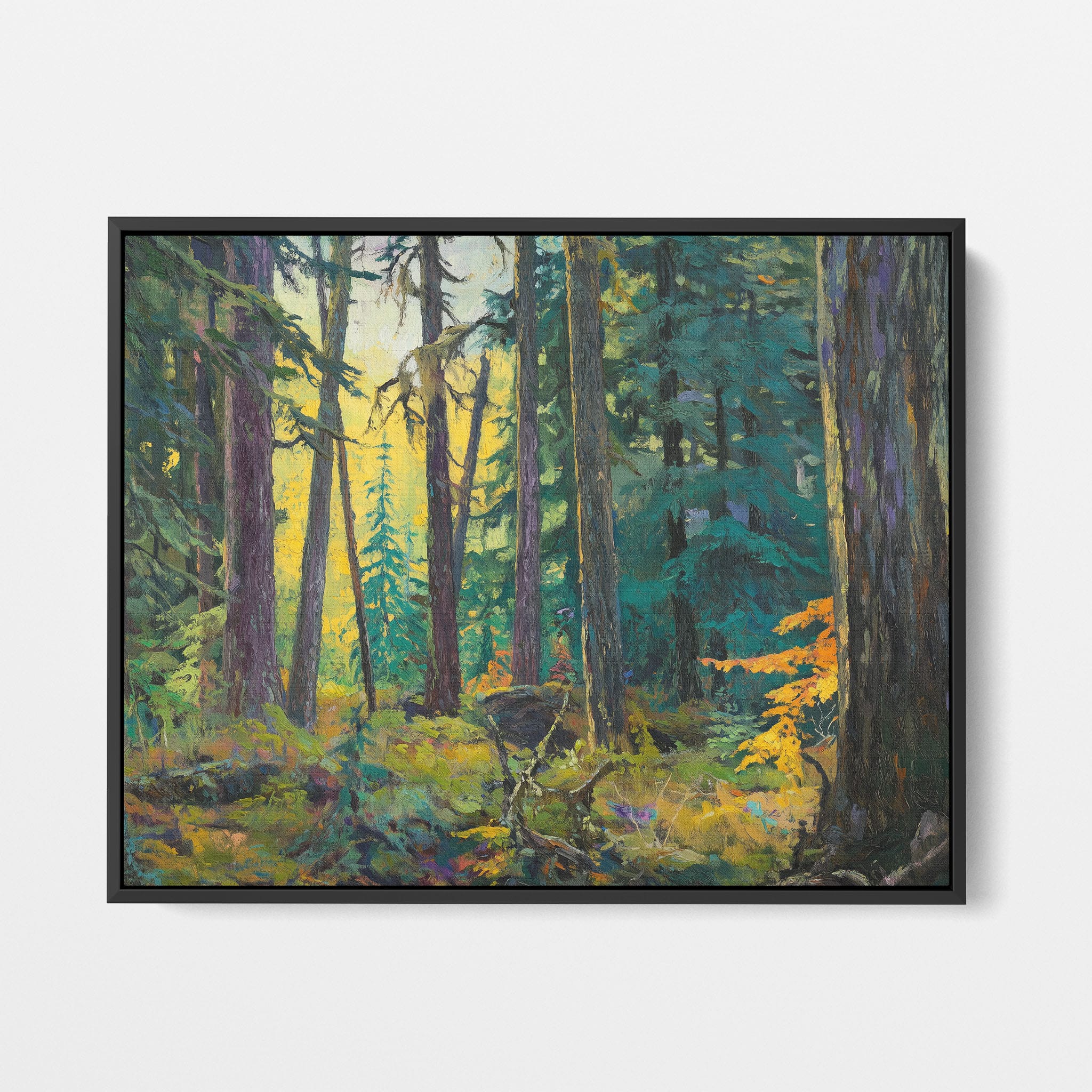 This vibrant painting captures the serene beauty of a densely wooded forest bathed in autumn light. Rich hues of green, yellow, and orange paint a scene that speaks to the soul of nature enthusiasts and art lovers alike. The artwork skillfully employs Impressionism to suggest the fleeting quality of light filtering through the tree canopy, while the Realism style grounds the scene in a palpable sense of place. Perfect for anyone looking to add a touch of natural elegance to their living space, this painting invites viewers to lose themselves in the tranquil depths of the wild forest.