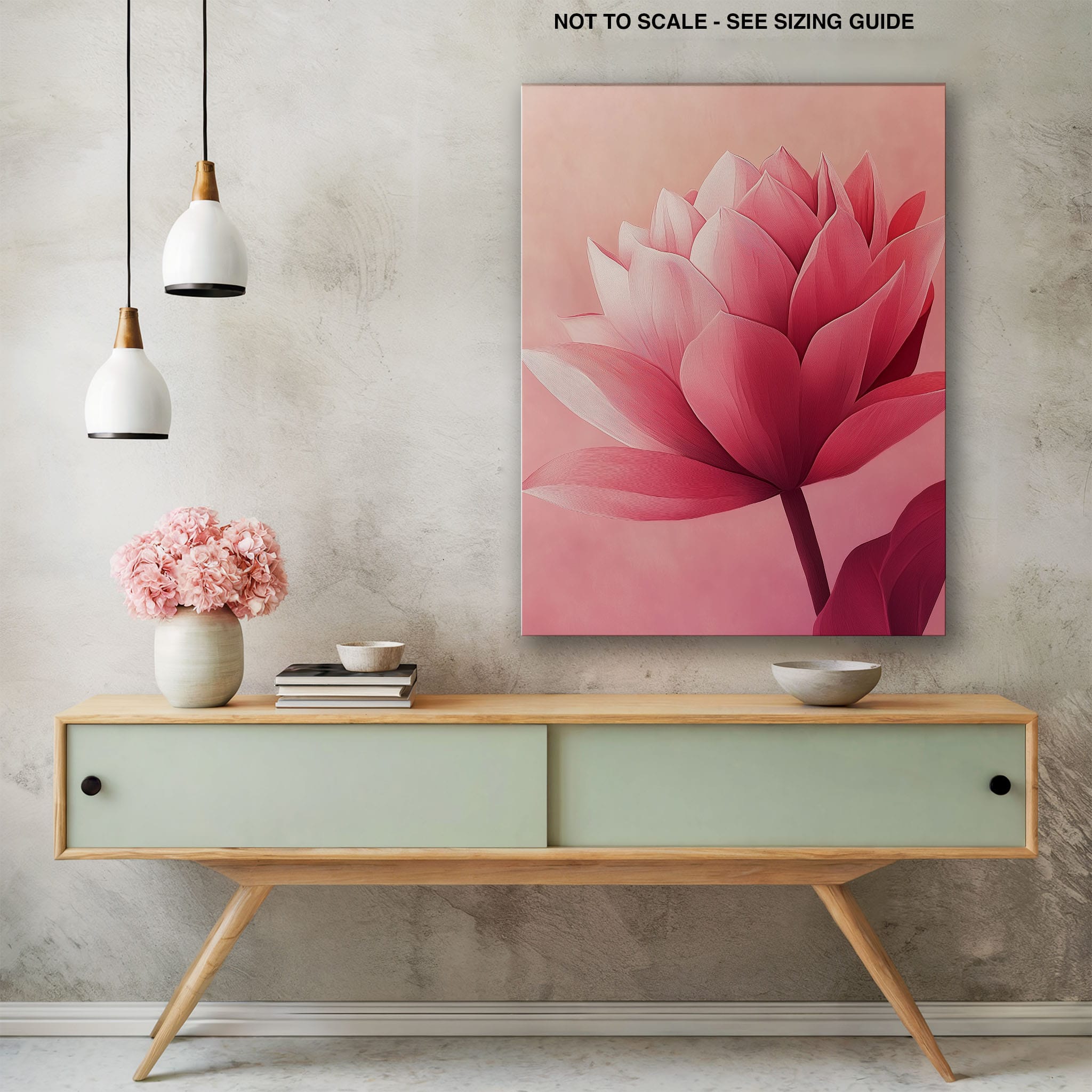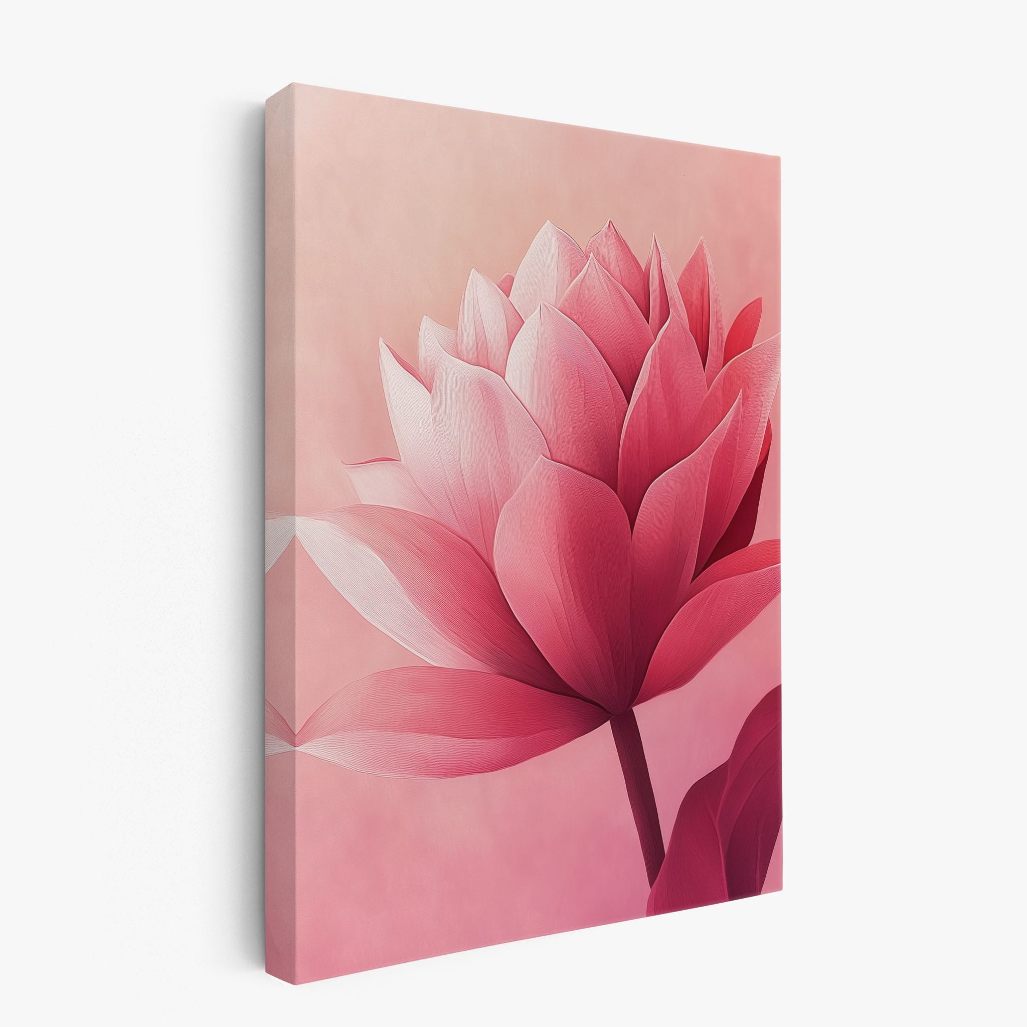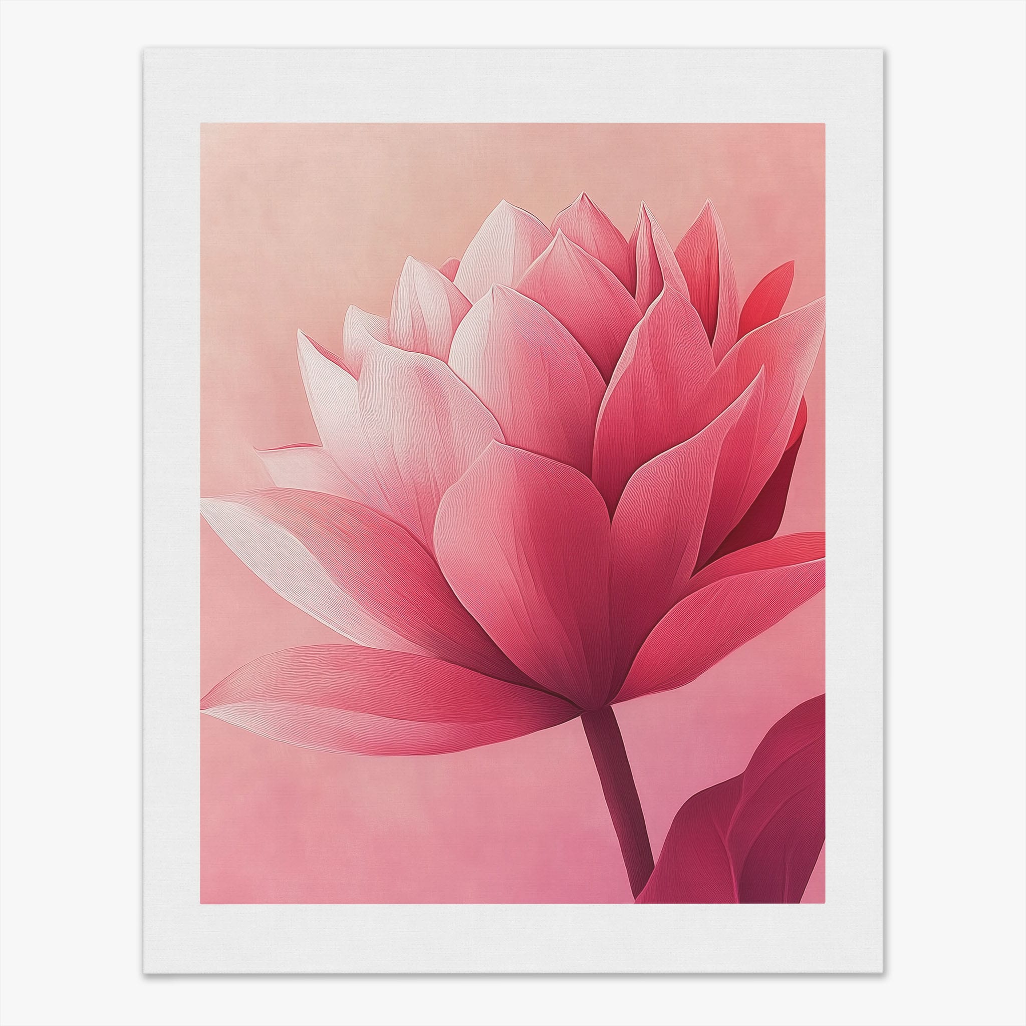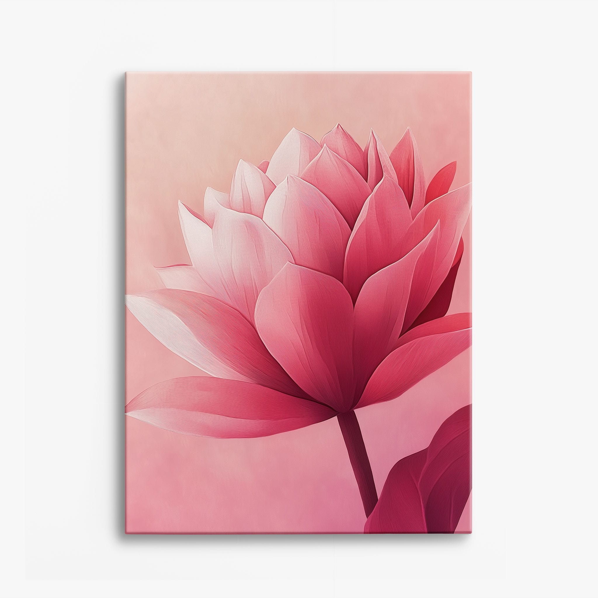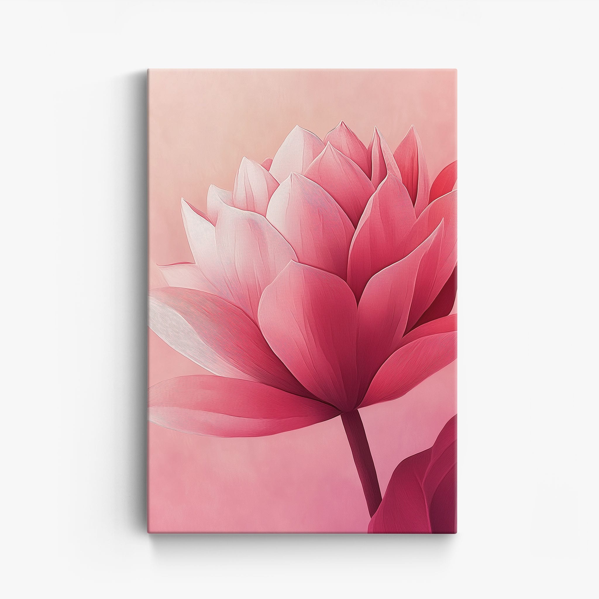 Capturing the essence of tranquility and purity, this digital illustration presents a vividly detailed pink lotus flower against a soothing pastel background. Each petal is rendered with precision, showcasing subtle gradients and textures that emphasize the flower's delicate beauty. Ideal for modern decor, this piece appeals to lovers of minimalist and contemporary art. It brings a touch of peacefulness and elegance to any space, making it a perfect addition for those yearning for a serene ambiance in their home or office.