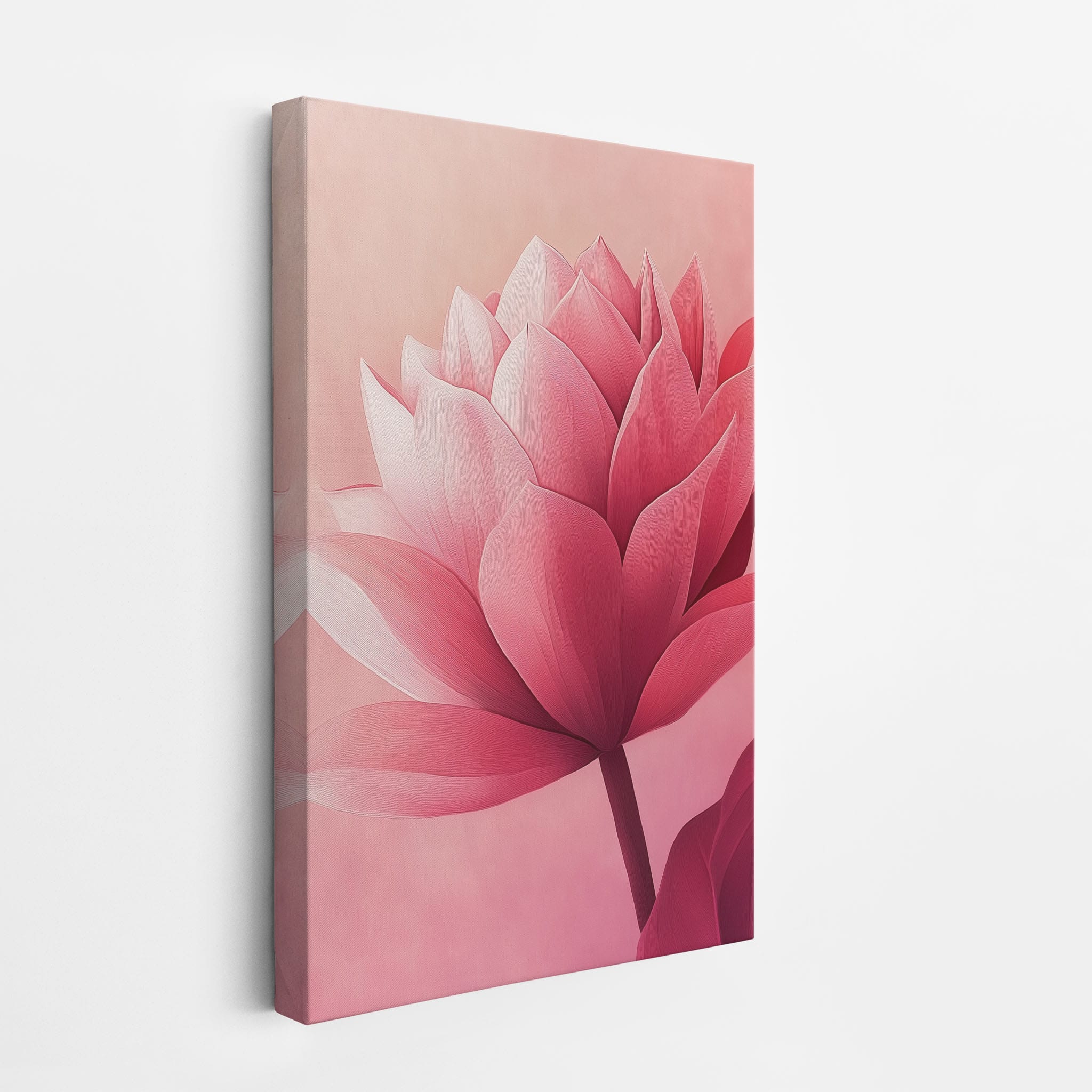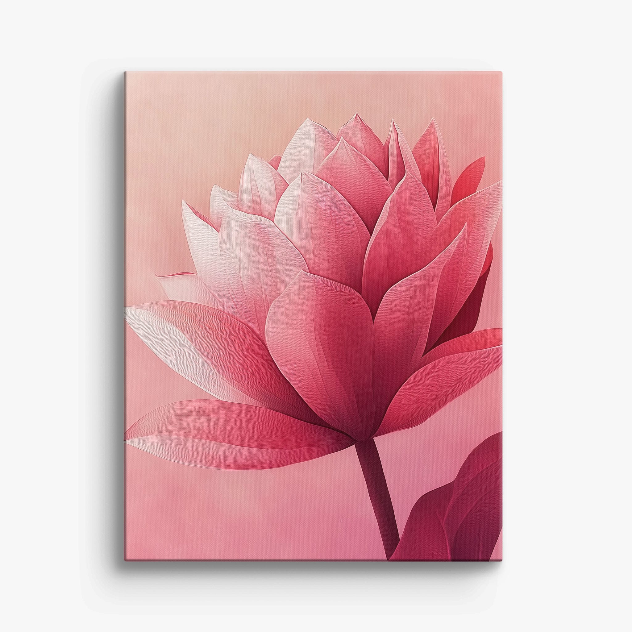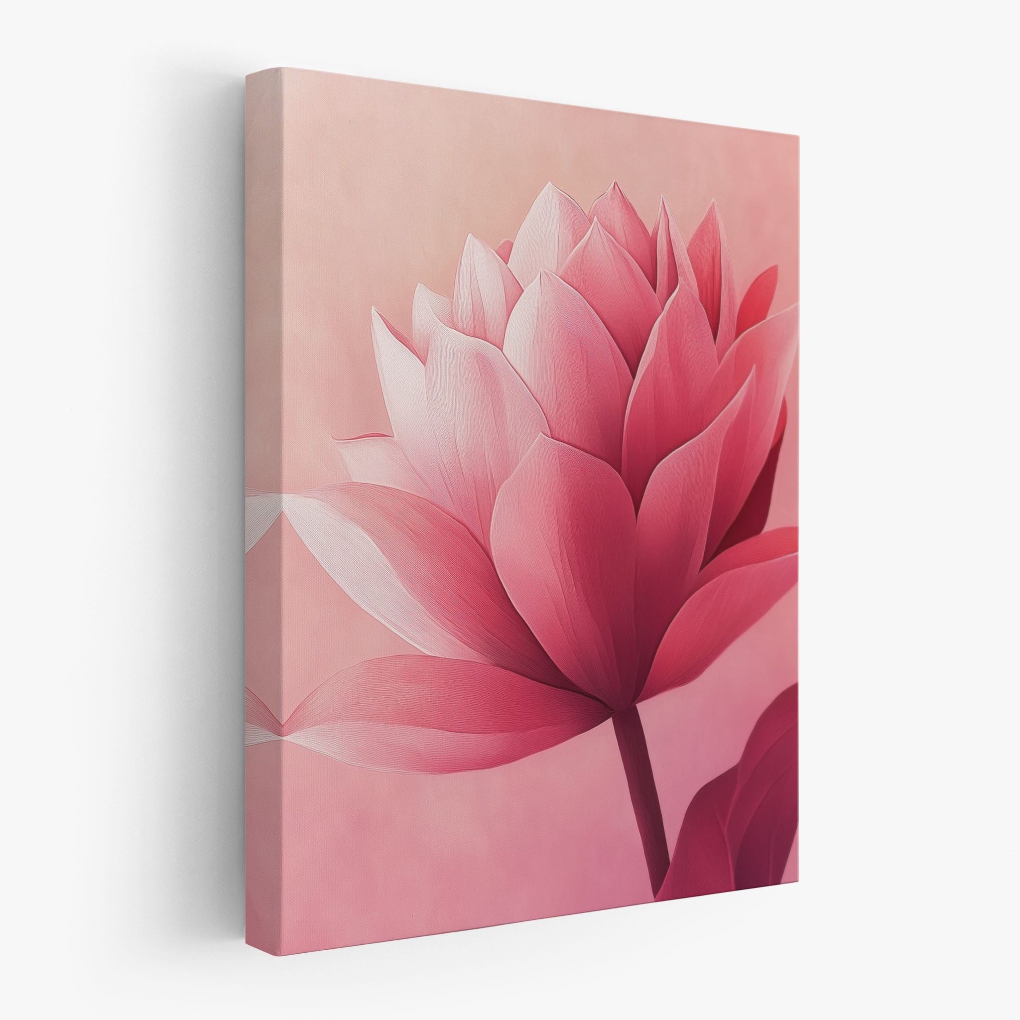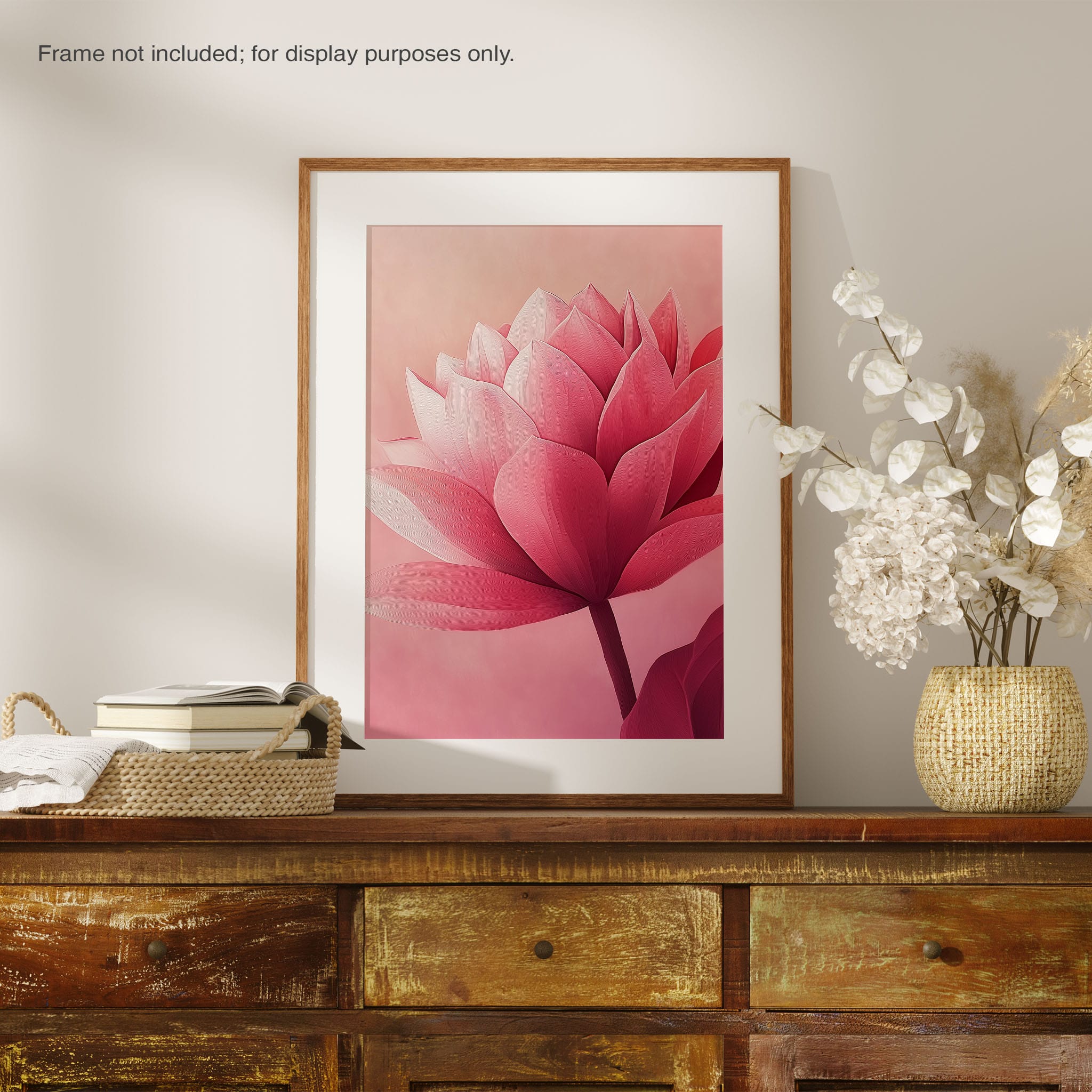 Capturing the essence of tranquility and purity, this digital illustration presents a vividly detailed pink lotus flower against a soothing pastel background. Each petal is rendered with precision, showcasing subtle gradients and textures that emphasize the flower's delicate beauty. Ideal for modern decor, this piece appeals to lovers of minimalist and contemporary art. It brings a touch of peacefulness and elegance to any space, making it a perfect addition for those yearning for a serene ambiance in their home or office.