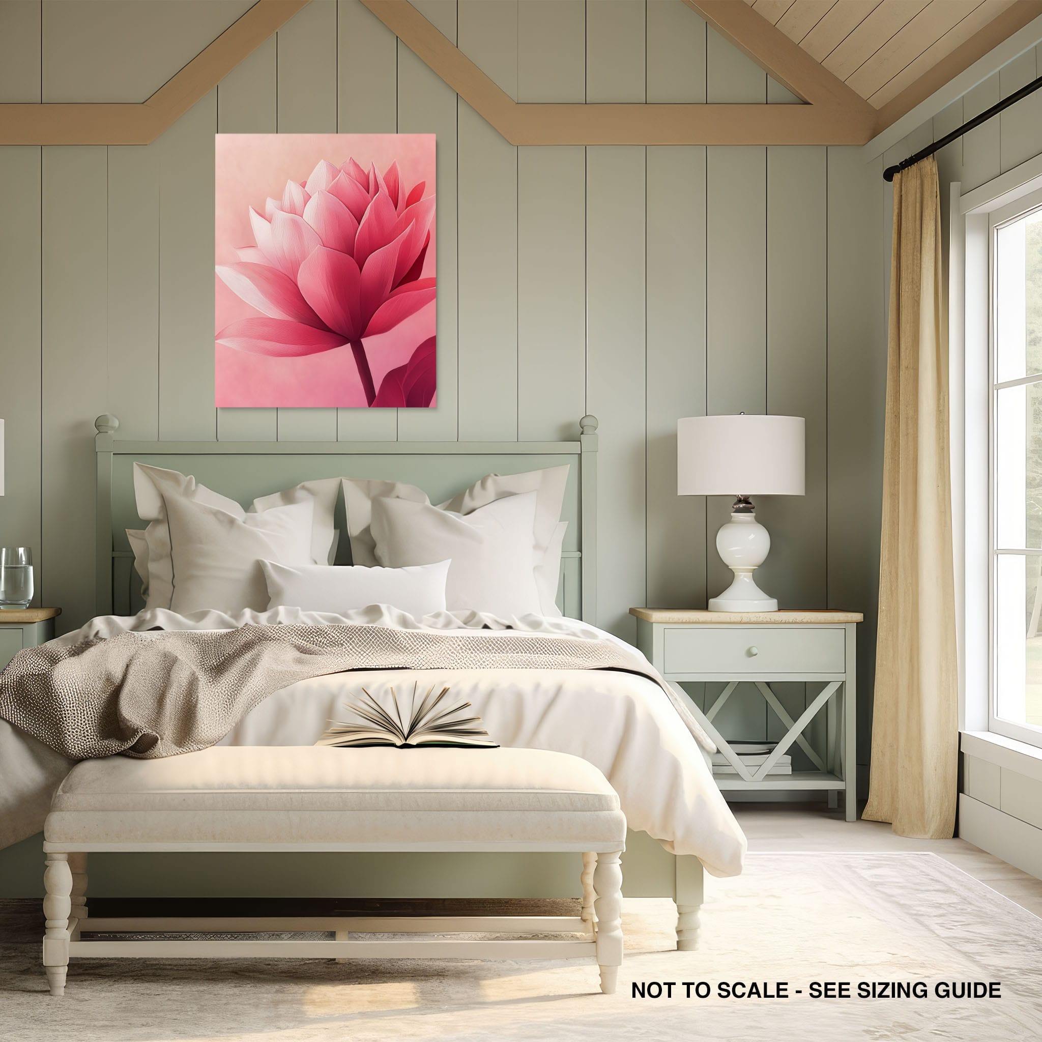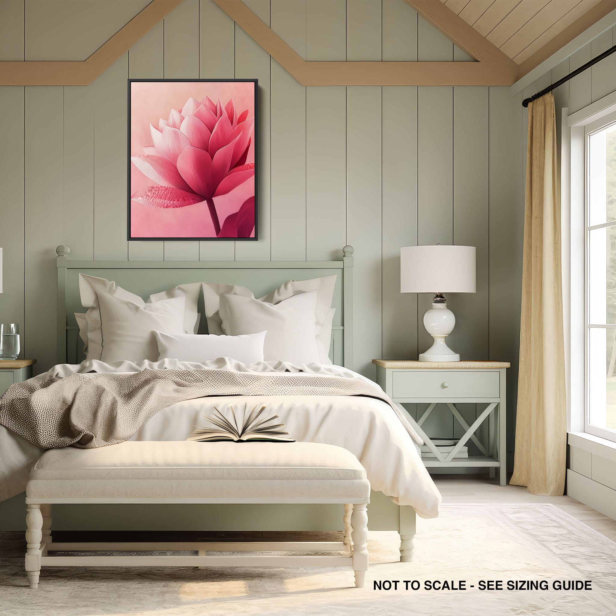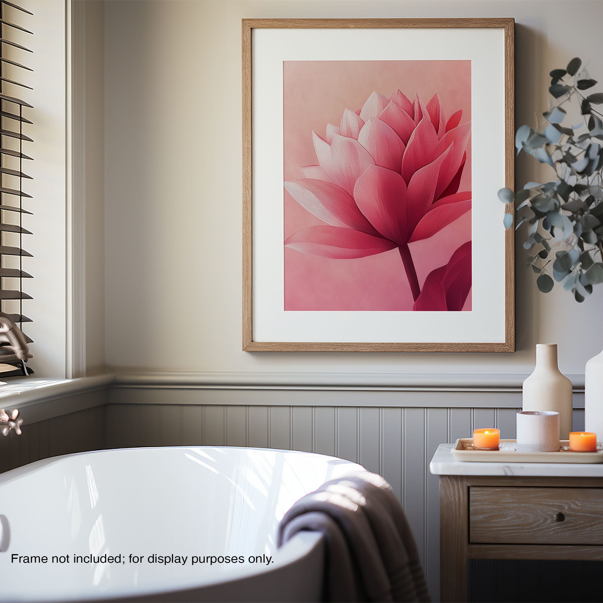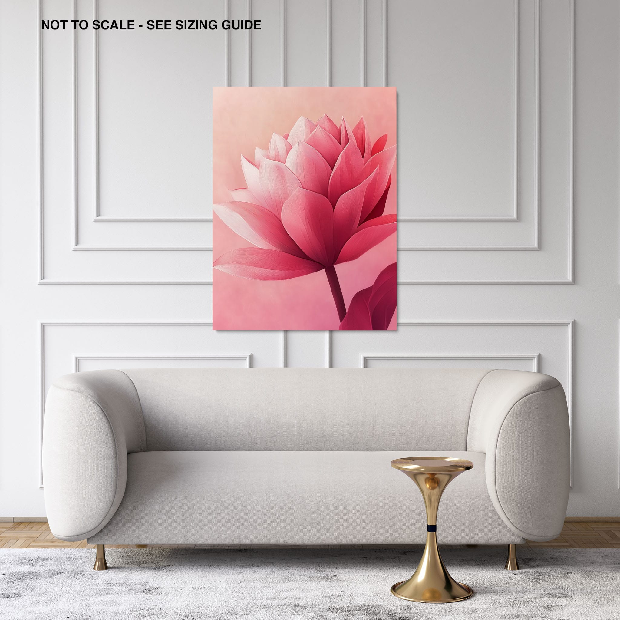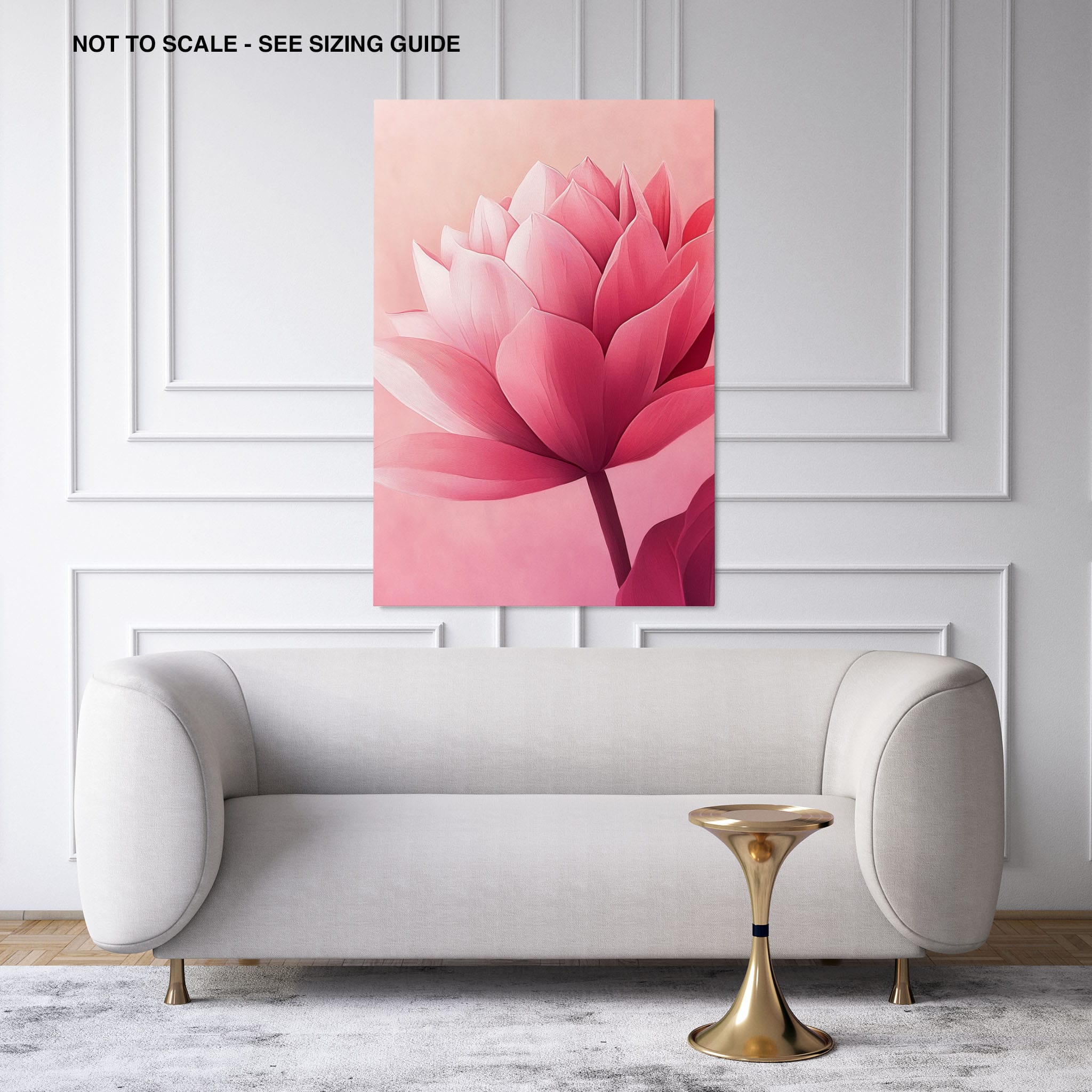 Capturing the essence of tranquility and purity, this digital illustration presents a vividly detailed pink lotus flower against a soothing pastel background. Each petal is rendered with precision, showcasing subtle gradients and textures that emphasize the flower's delicate beauty. Ideal for modern decor, this piece appeals to lovers of minimalist and contemporary art. It brings a touch of peacefulness and elegance to any space, making it a perfect addition for those yearning for a serene ambiance in their home or office.