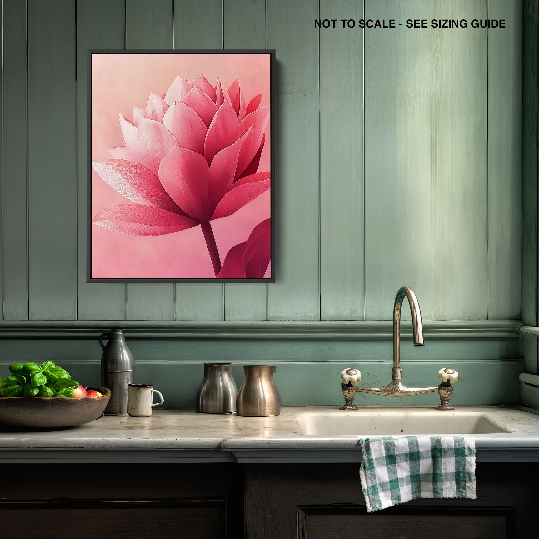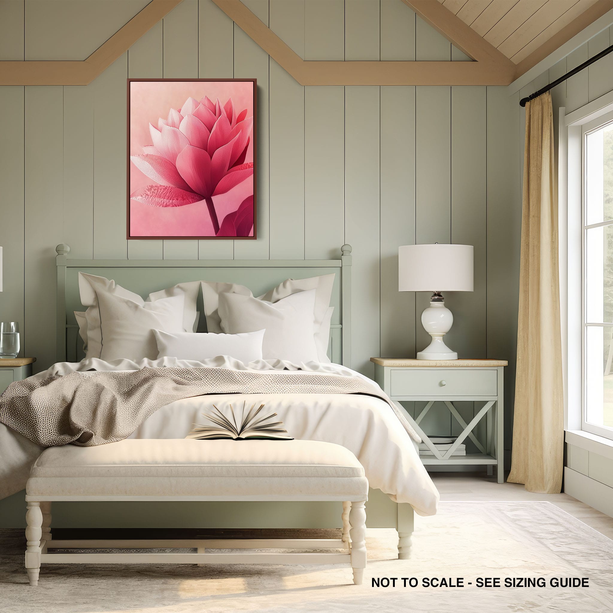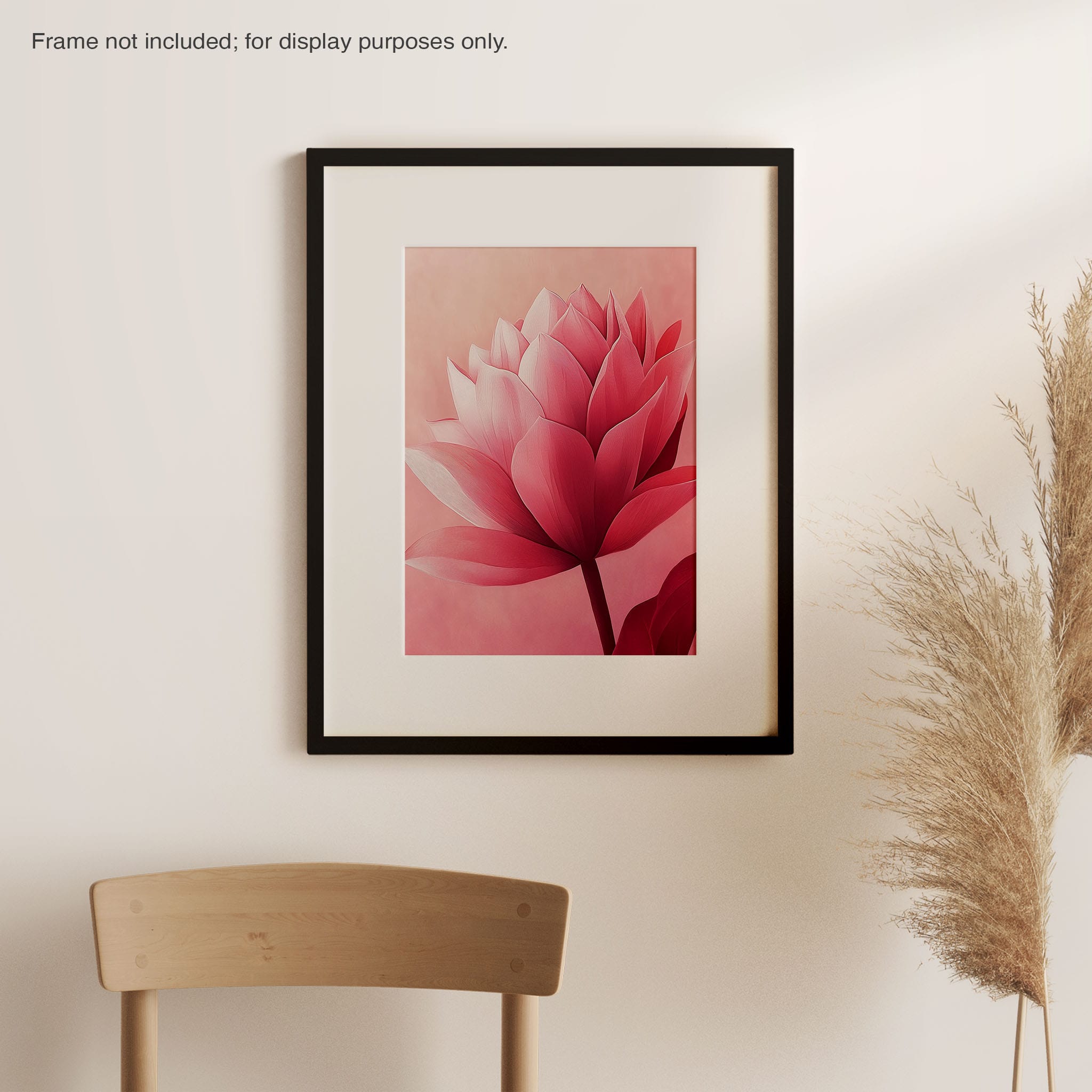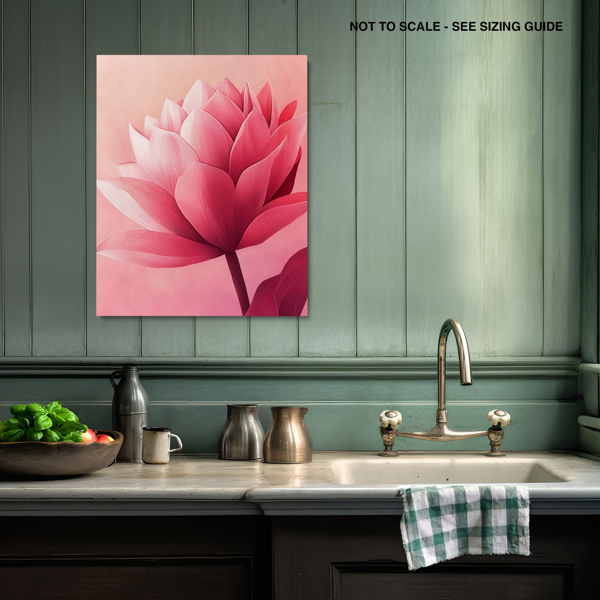 Capturing the essence of tranquility and purity, this digital illustration presents a vividly detailed pink lotus flower against a soothing pastel background. Each petal is rendered with precision, showcasing subtle gradients and textures that emphasize the flower's delicate beauty. Ideal for modern decor, this piece appeals to lovers of minimalist and contemporary art. It brings a touch of peacefulness and elegance to any space, making it a perfect addition for those yearning for a serene ambiance in their home or office.