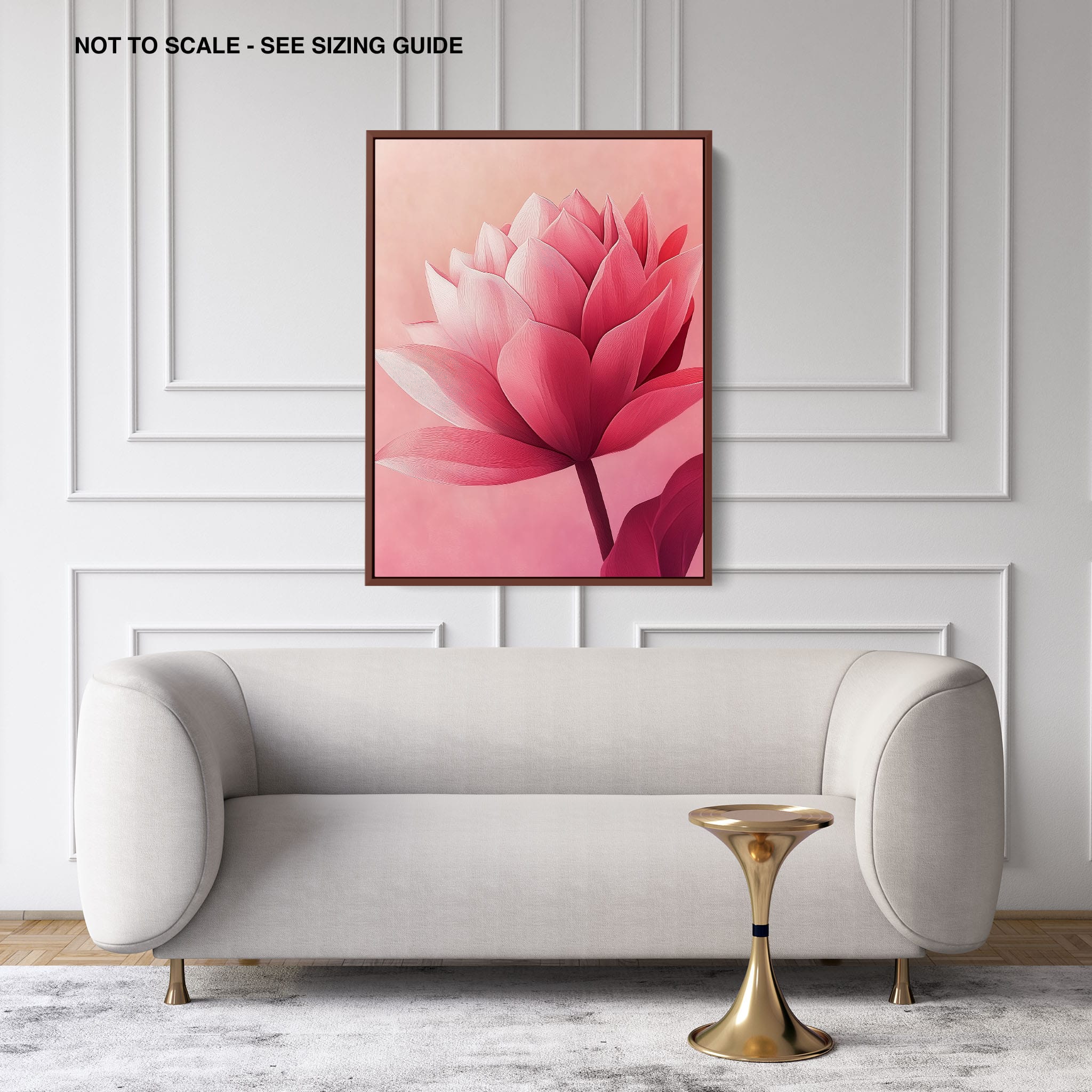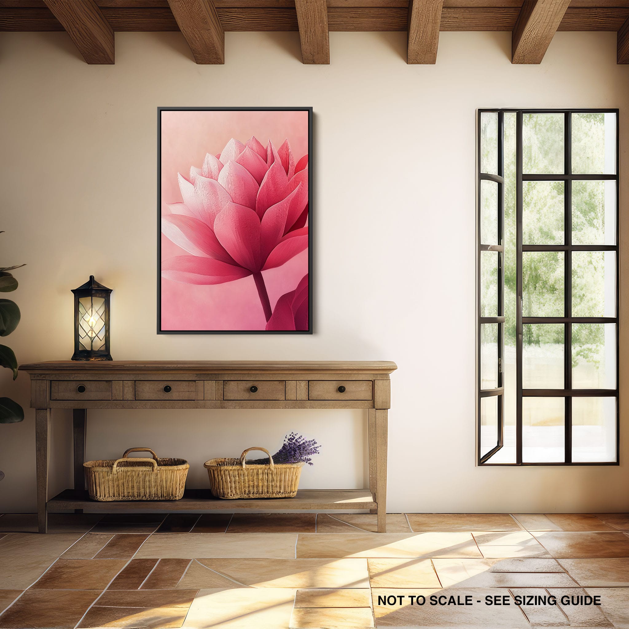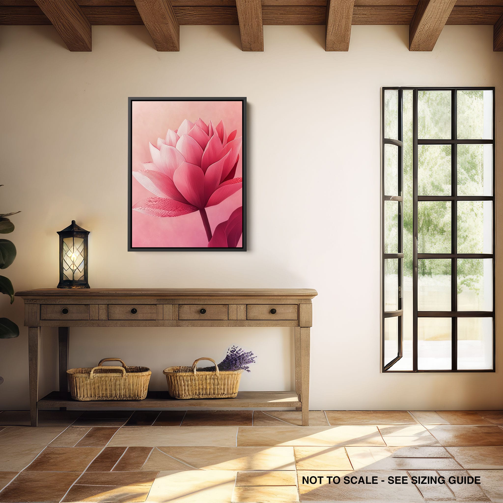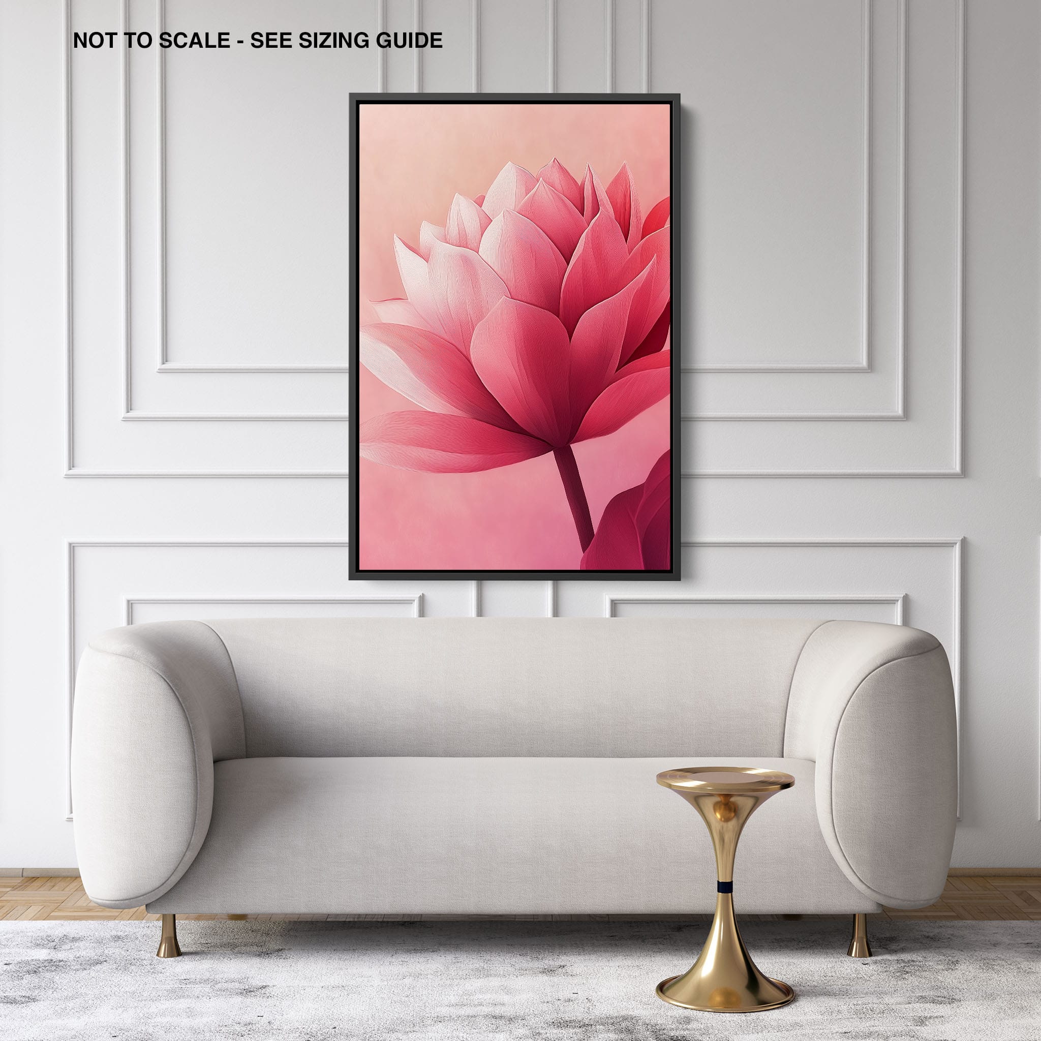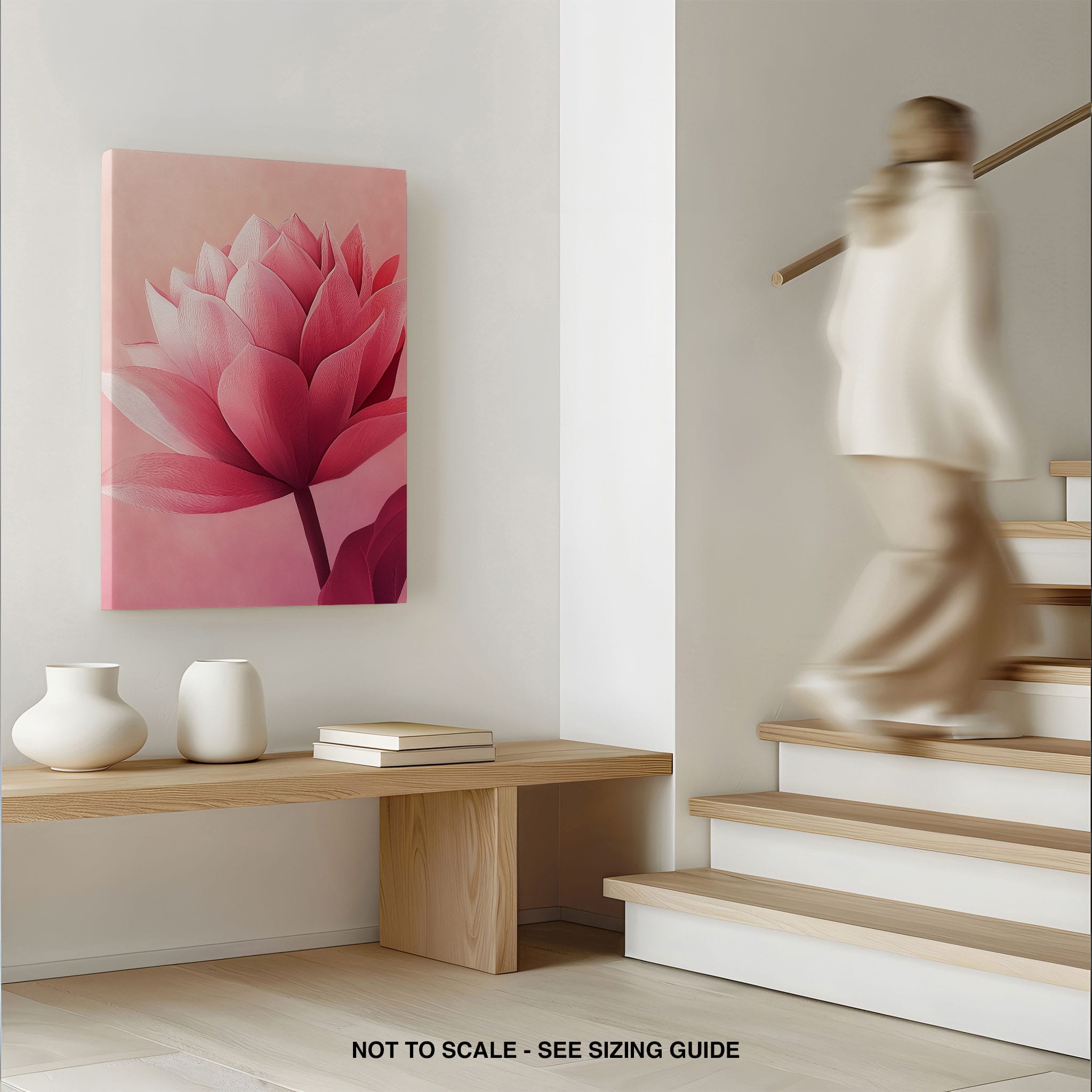 Capturing the essence of tranquility and purity, this digital illustration presents a vividly detailed pink lotus flower against a soothing pastel background. Each petal is rendered with precision, showcasing subtle gradients and textures that emphasize the flower's delicate beauty. Ideal for modern decor, this piece appeals to lovers of minimalist and contemporary art. It brings a touch of peacefulness and elegance to any space, making it a perfect addition for those yearning for a serene ambiance in their home or office.