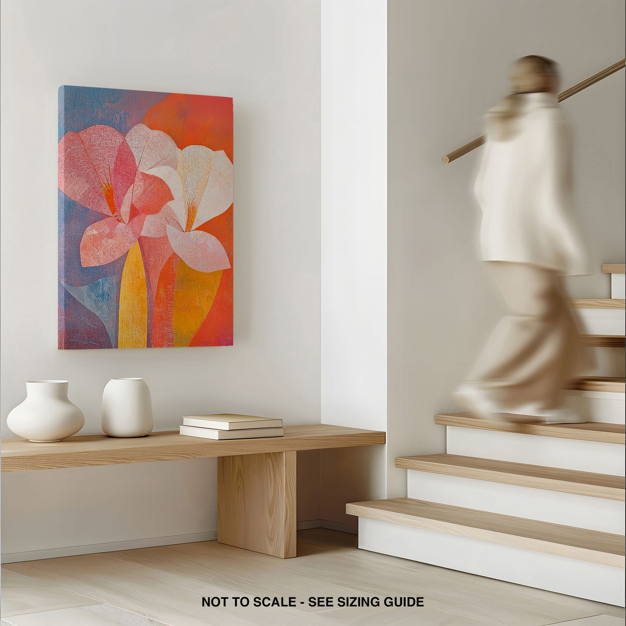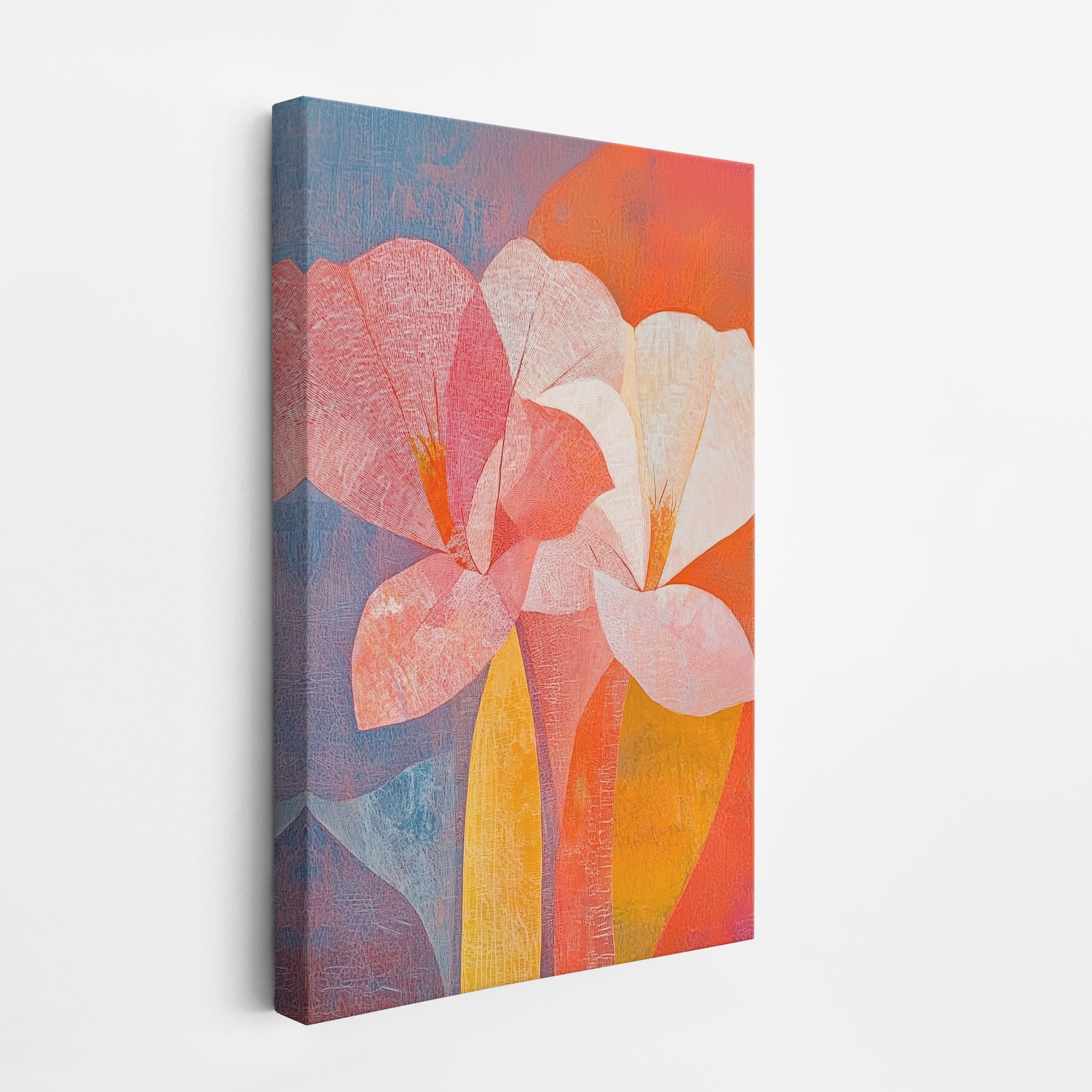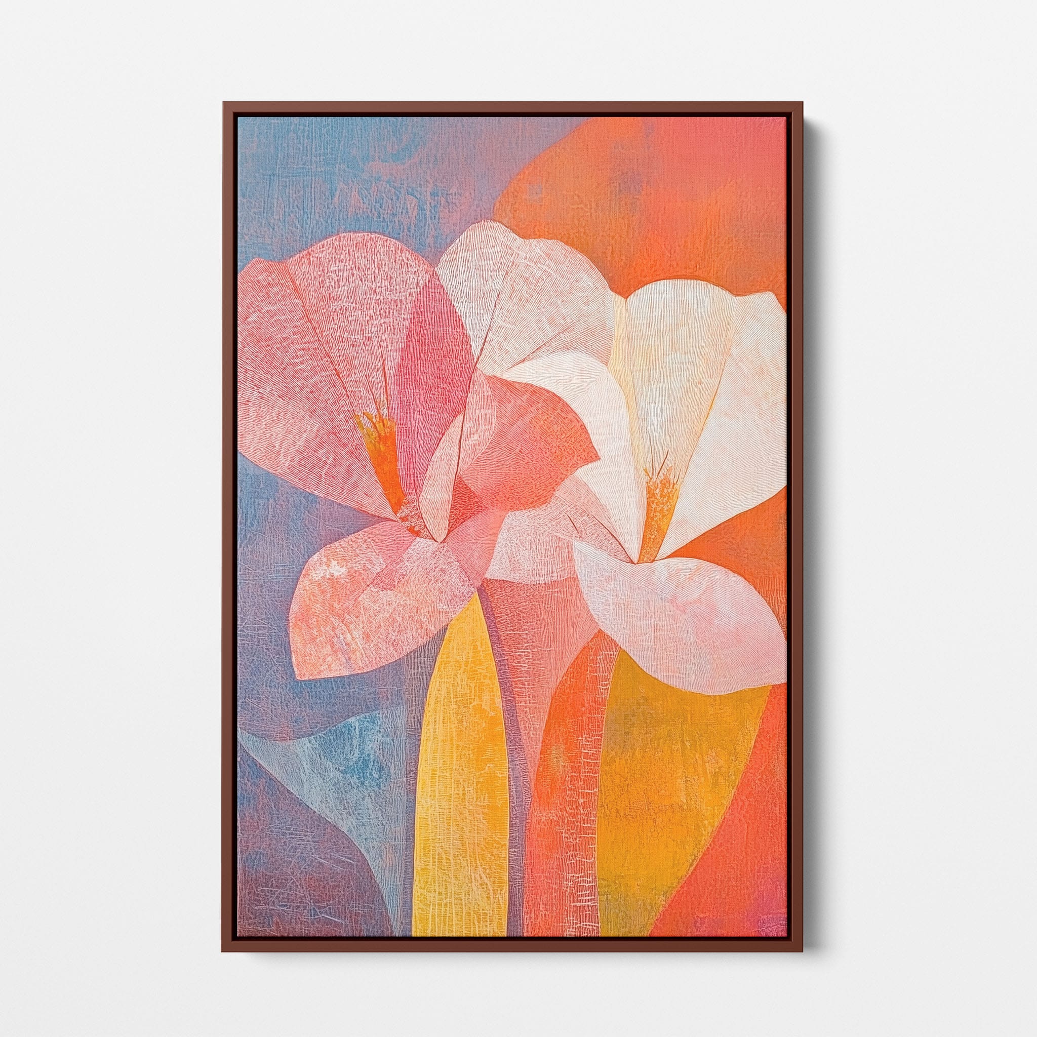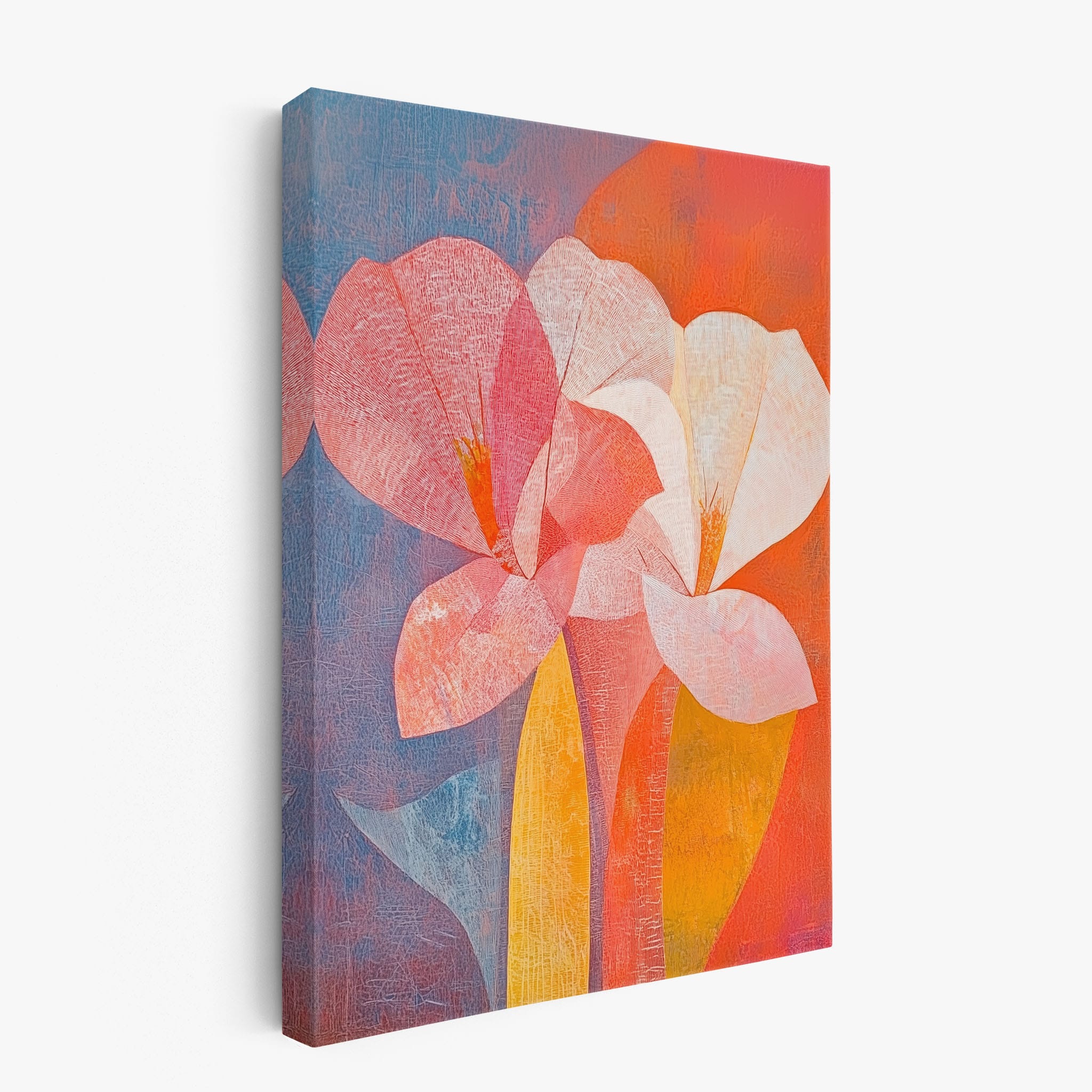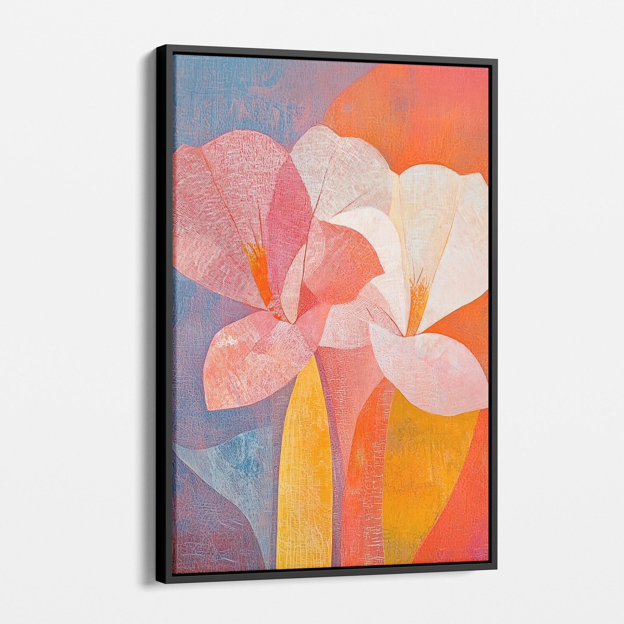 This vibrant abstract painting captures the essence of a blossoming flower through bold and soothing color transitions. With an expressionist touch, the artist masterfully layers orange, pink, and blue hues to evoke a sense of growth and warmth. The visible brush strokes and textural depth draw viewers into a modern interpretation of nature's simple beauty. Perfect for adding a touch of sophistication and color to any room, this artwork appeals to those who appreciate a contemporary perspective on botanical themes. Add this piece to your space for an immediate artistic uplift.