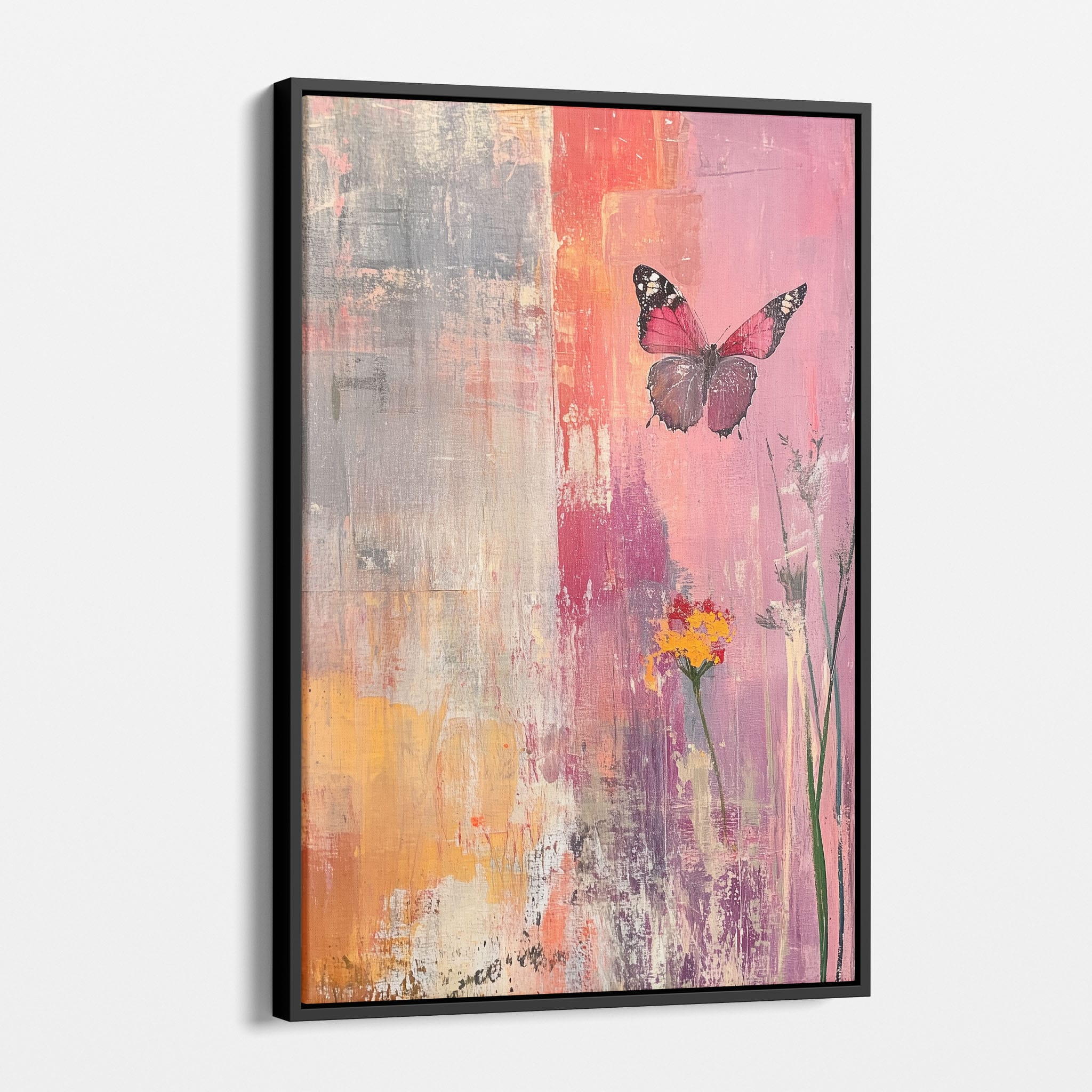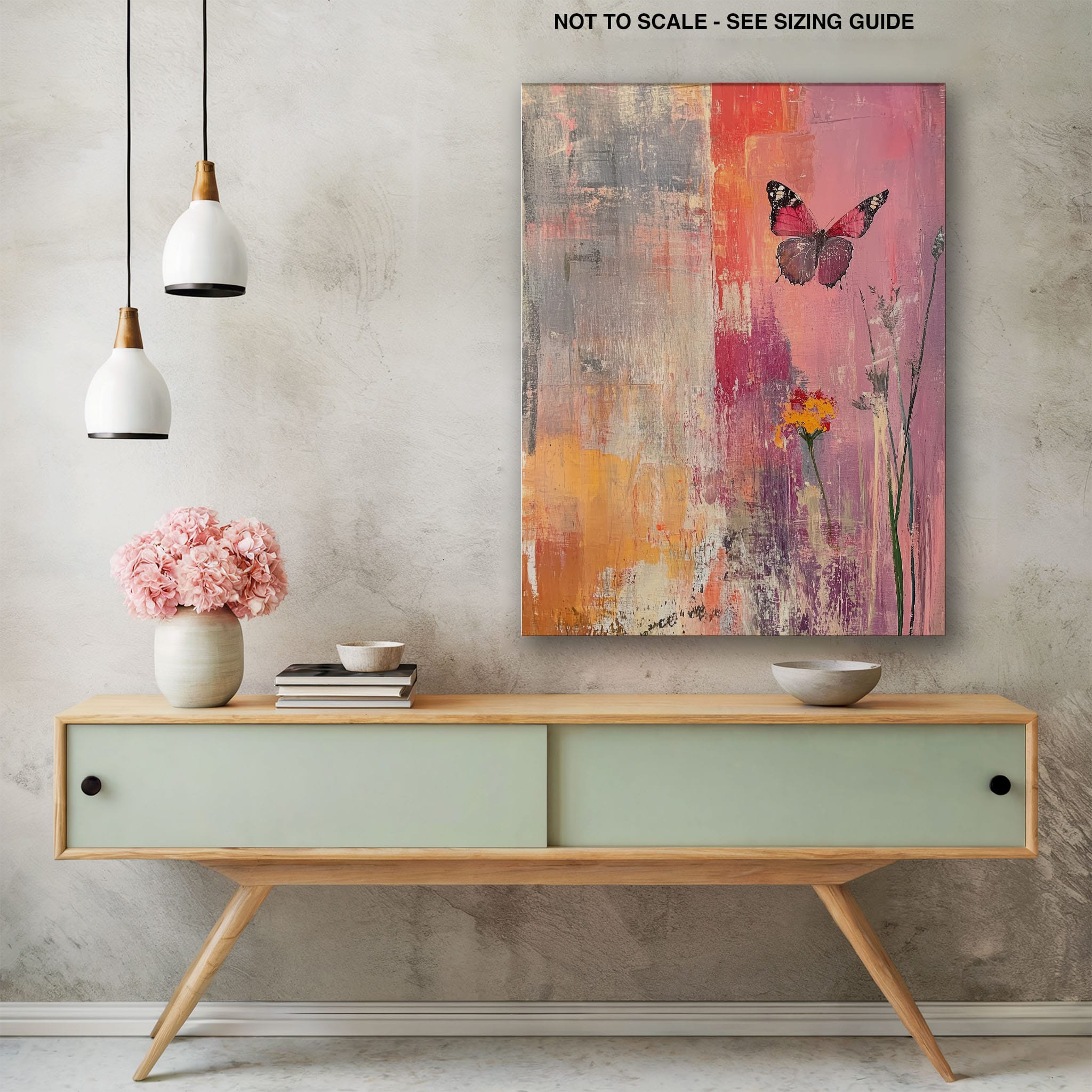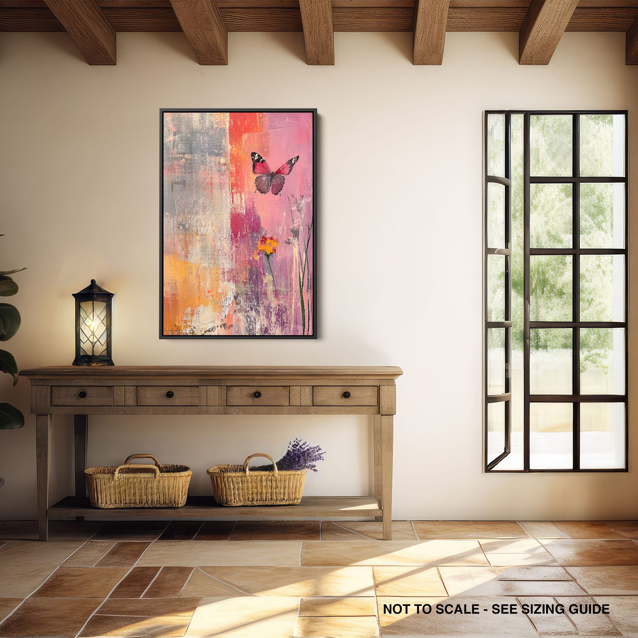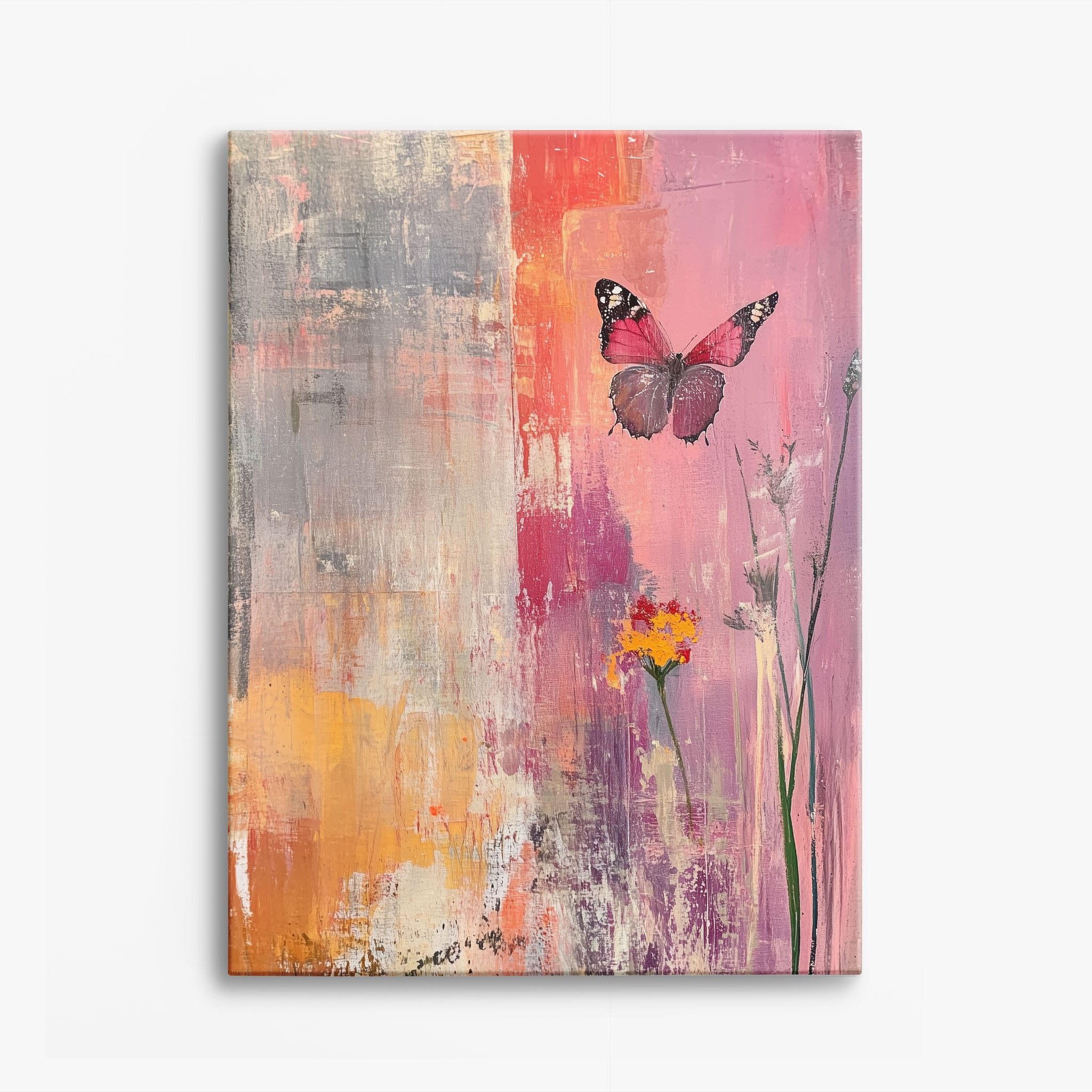 This painting merges modern artistry with a hint of Impressionism, creating a unique visual narrative through bold textures and harmonious color transitions. A striking butterfly alights upon a softly suggested floral background, its rich red and black hues contrasting with blushes of pink, red, and undertones of gray. This artwork invites viewers to appreciate the simplicity and beauty of nature brought to life on canvas. A compelling choice for anyone looking to add a touch of nature’s elegance to their personal or professional space. Perfect for modern decor enthusiasts and lovers of fine art paintings.
