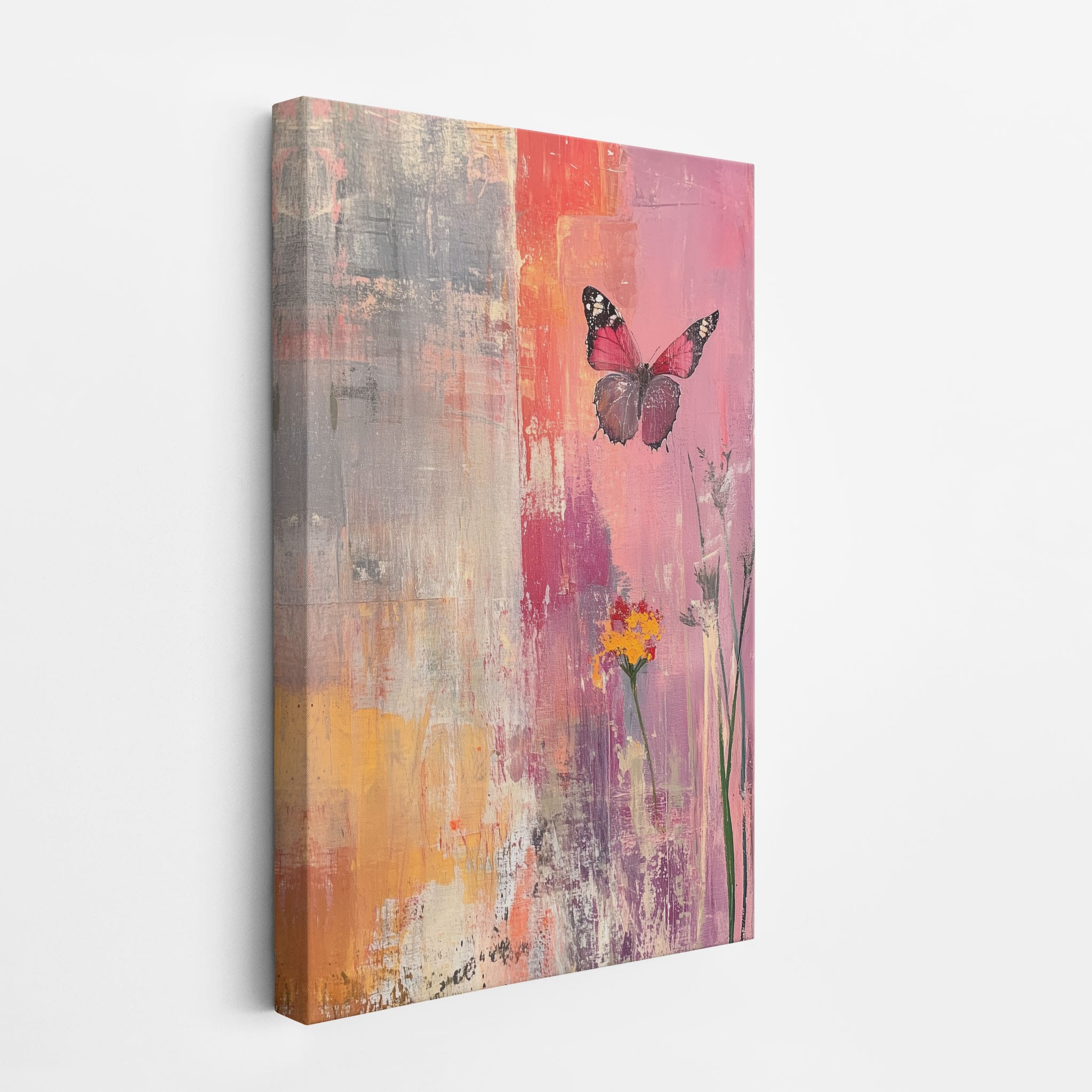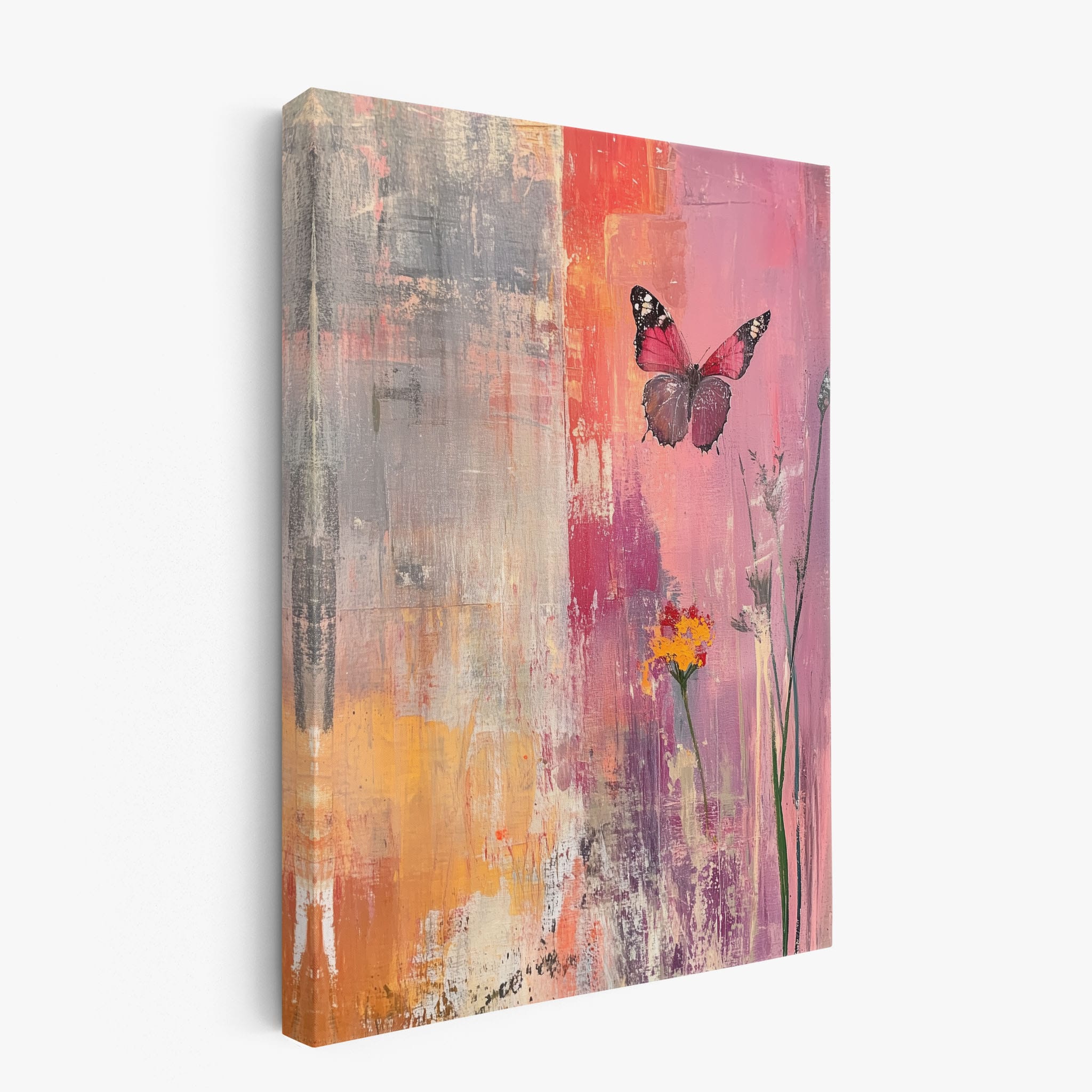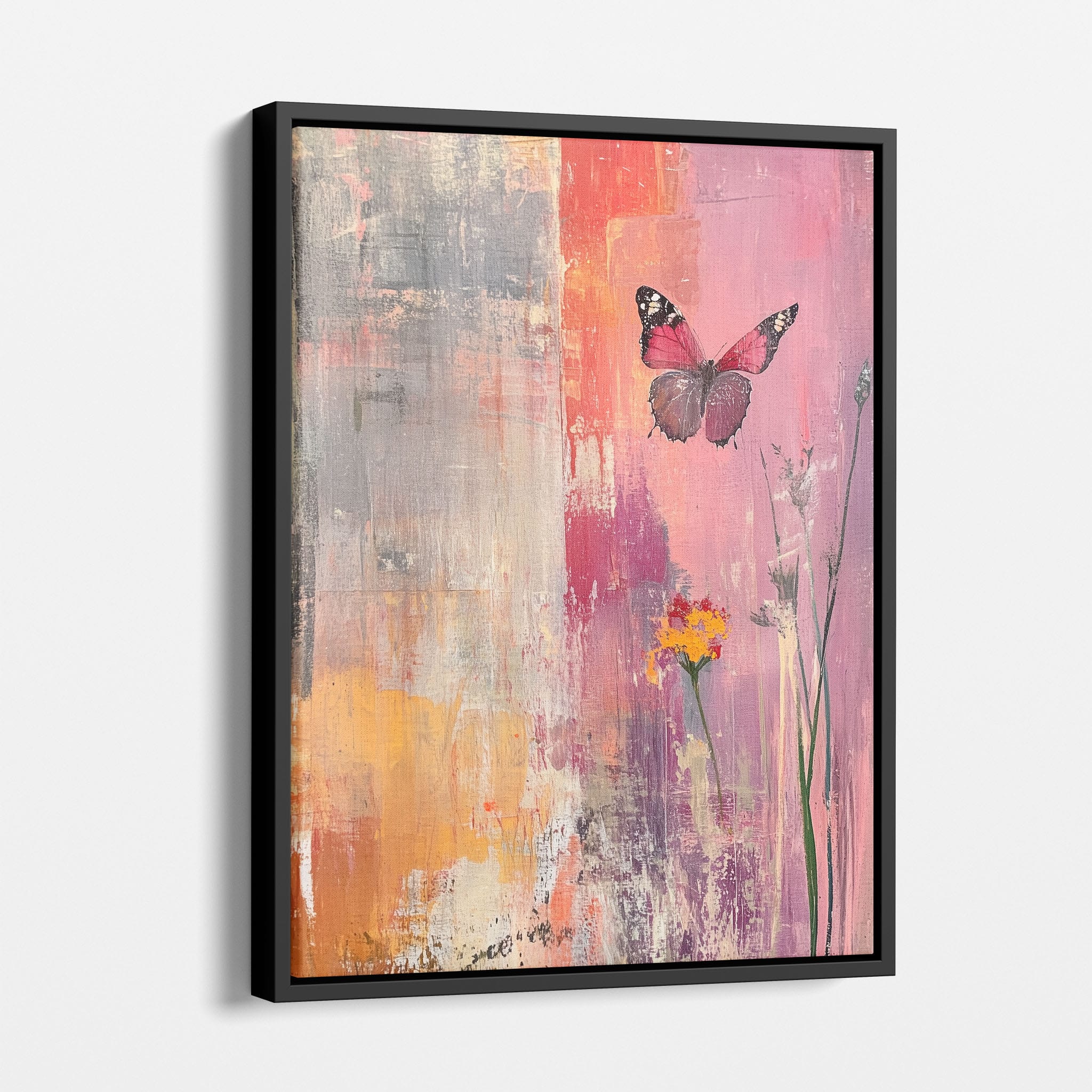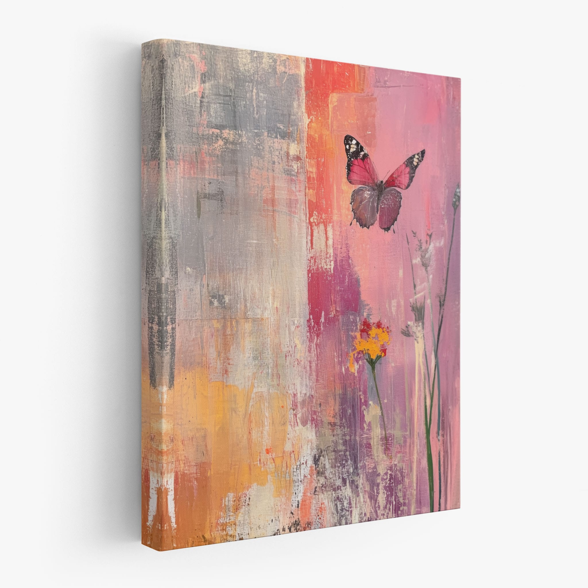 This painting merges modern artistry with a hint of Impressionism, creating a unique visual narrative through bold textures and harmonious color transitions. A striking butterfly alights upon a softly suggested floral background, its rich red and black hues contrasting with blushes of pink, red, and undertones of gray. This artwork invites viewers to appreciate the simplicity and beauty of nature brought to life on canvas. A compelling choice for anyone looking to add a touch of nature’s elegance to their personal or professional space. Perfect for modern decor enthusiasts and lovers of fine art paintings.