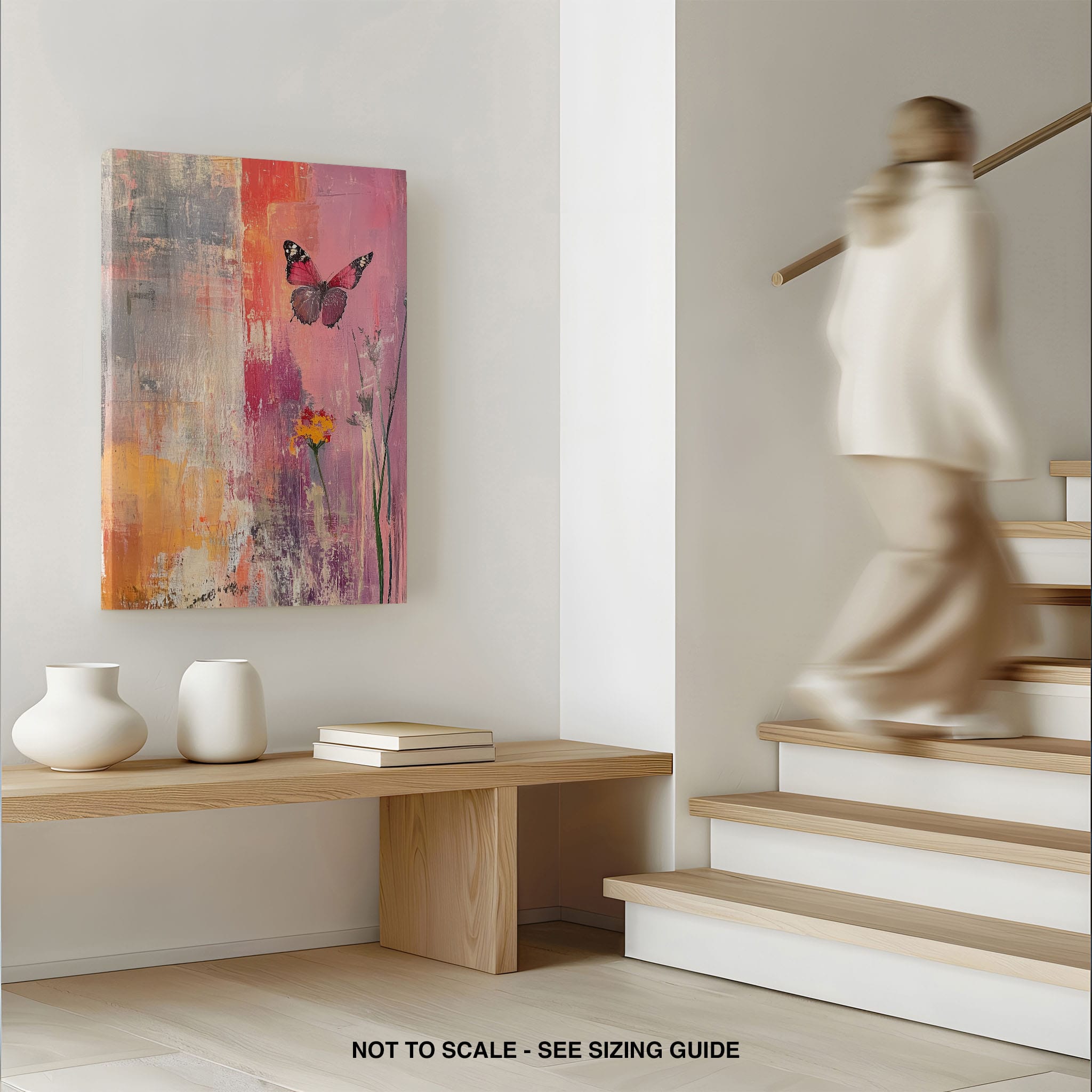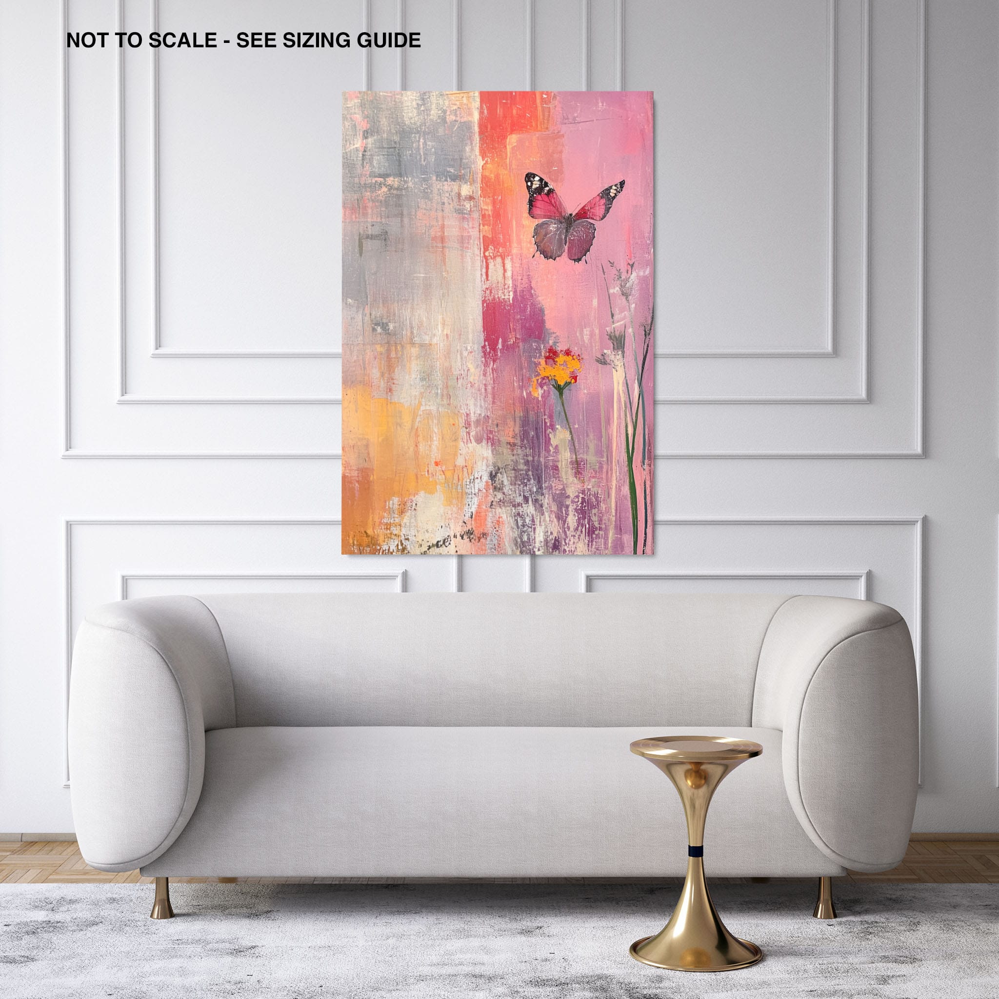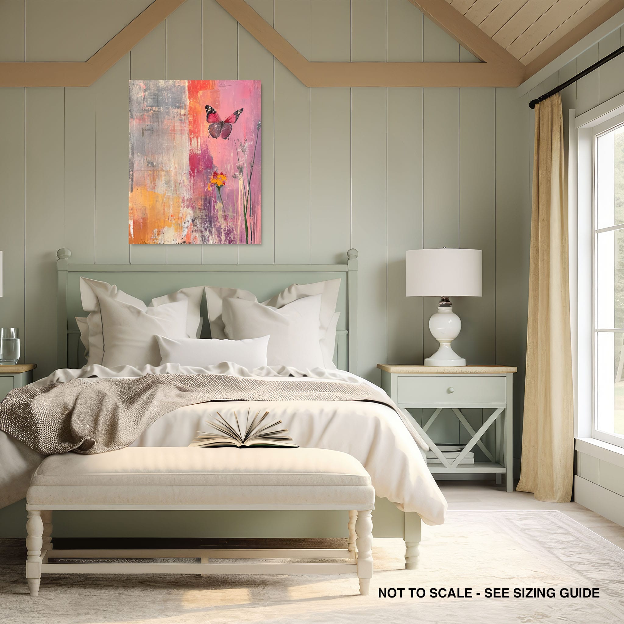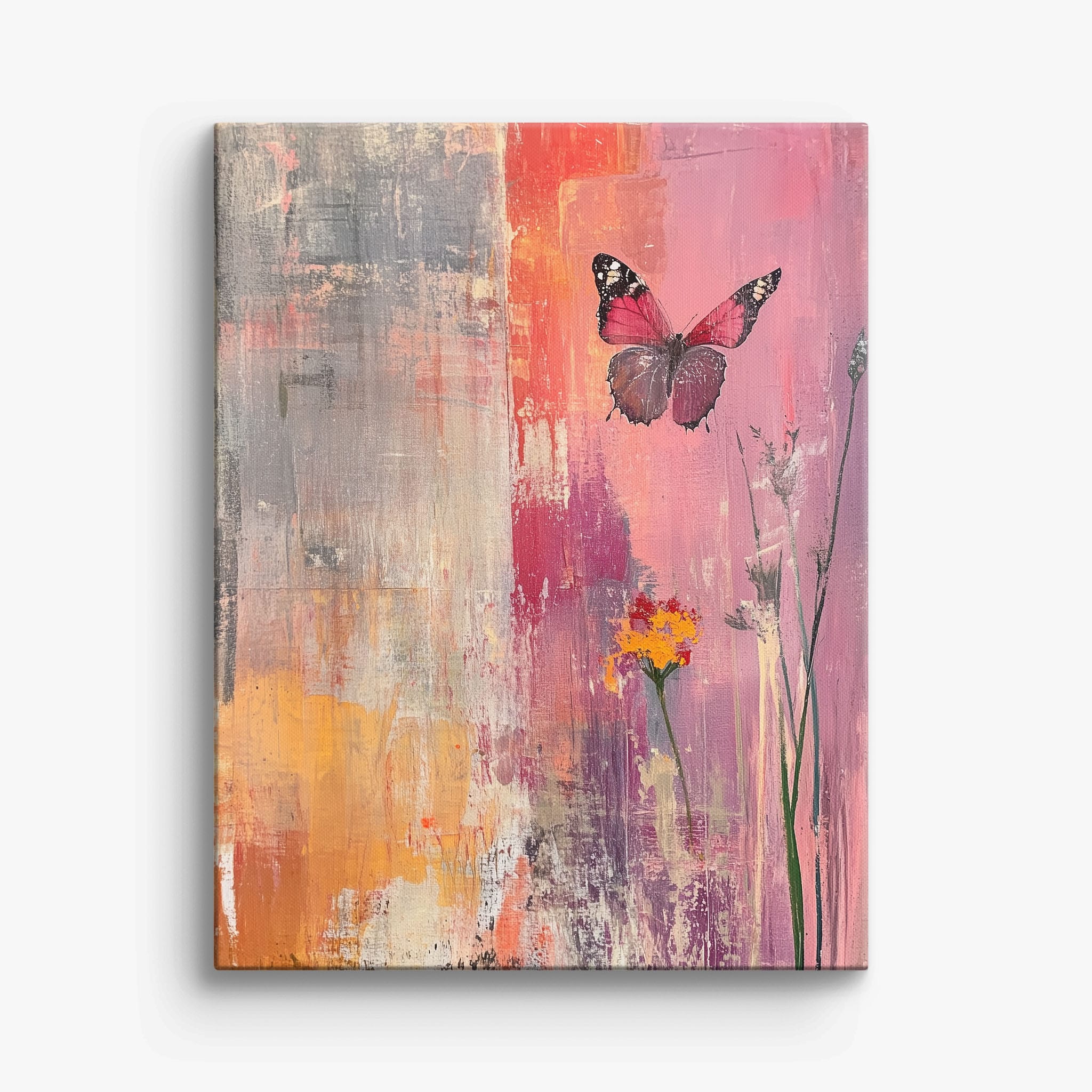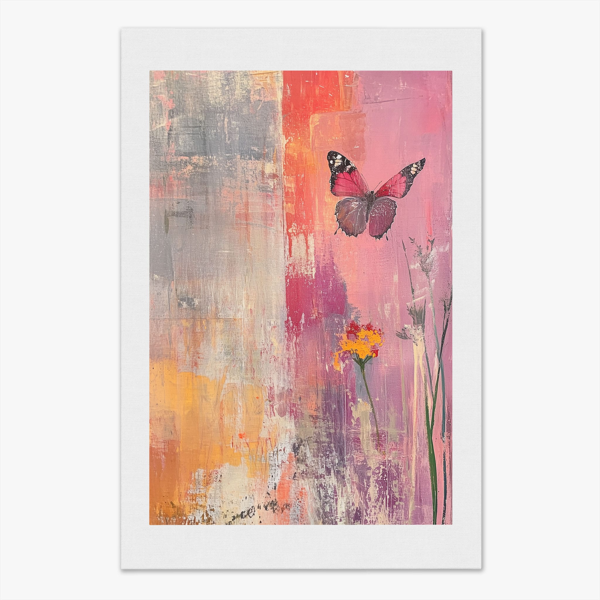 This painting merges modern artistry with a hint of Impressionism, creating a unique visual narrative through bold textures and harmonious color transitions. A striking butterfly alights upon a softly suggested floral background, its rich red and black hues contrasting with blushes of pink, red, and undertones of gray. This artwork invites viewers to appreciate the simplicity and beauty of nature brought to life on canvas. A compelling choice for anyone looking to add a touch of nature’s elegance to their personal or professional space. Perfect for modern decor enthusiasts and lovers of fine art paintings.