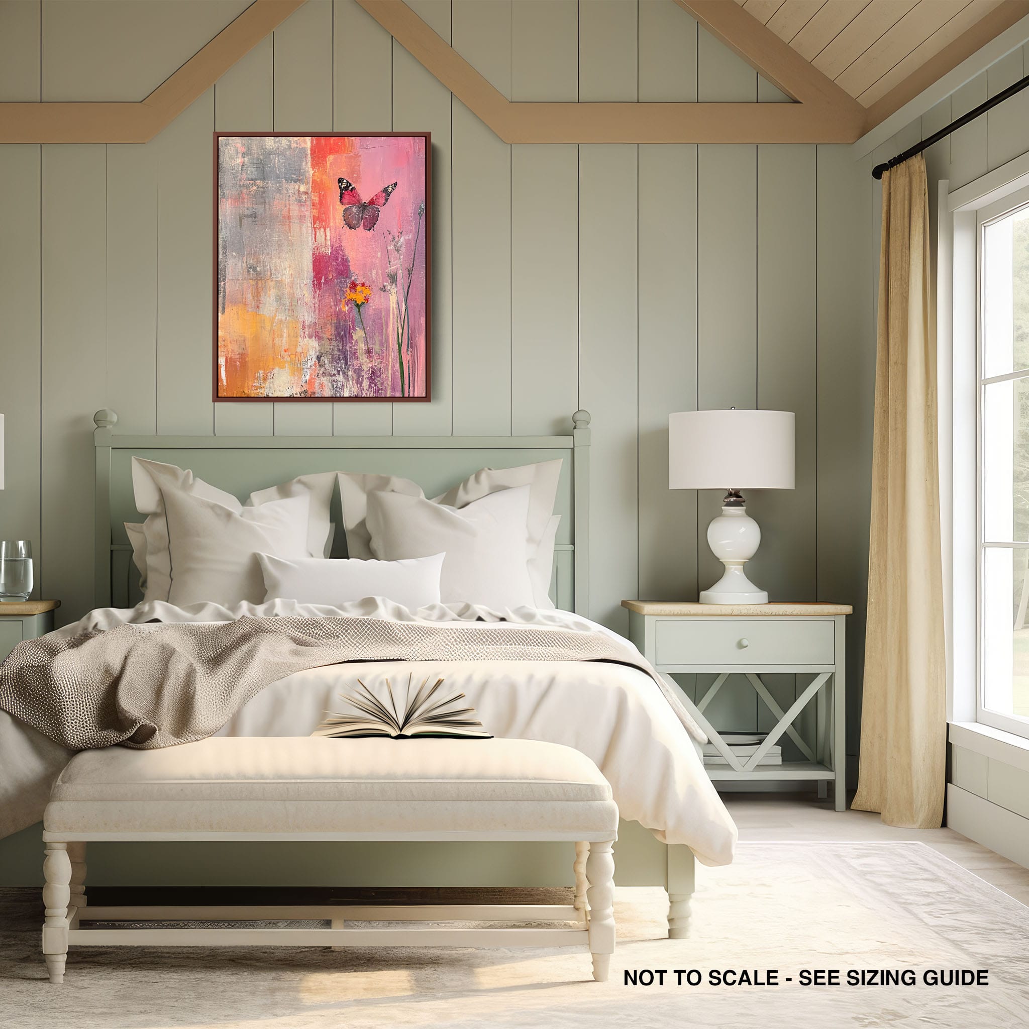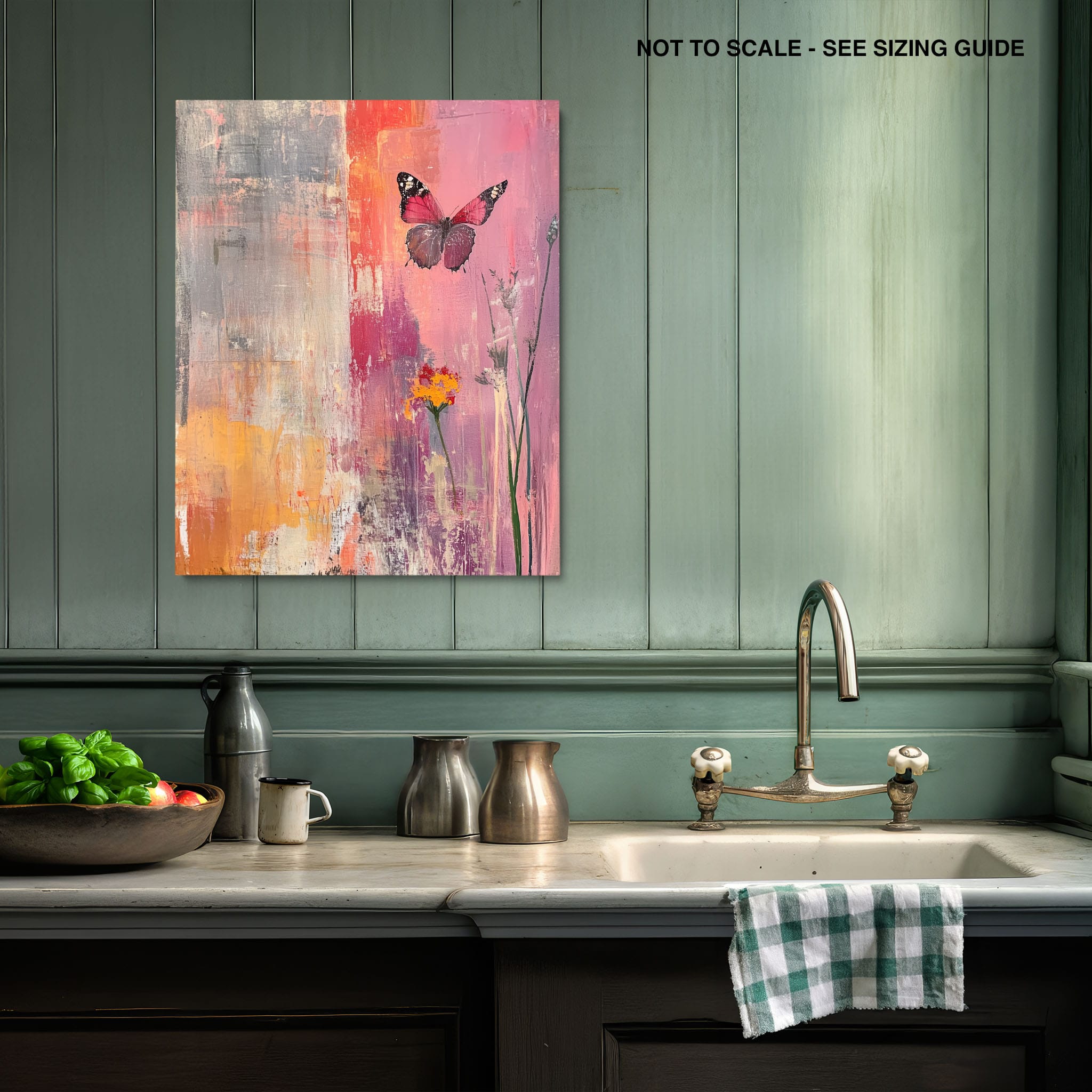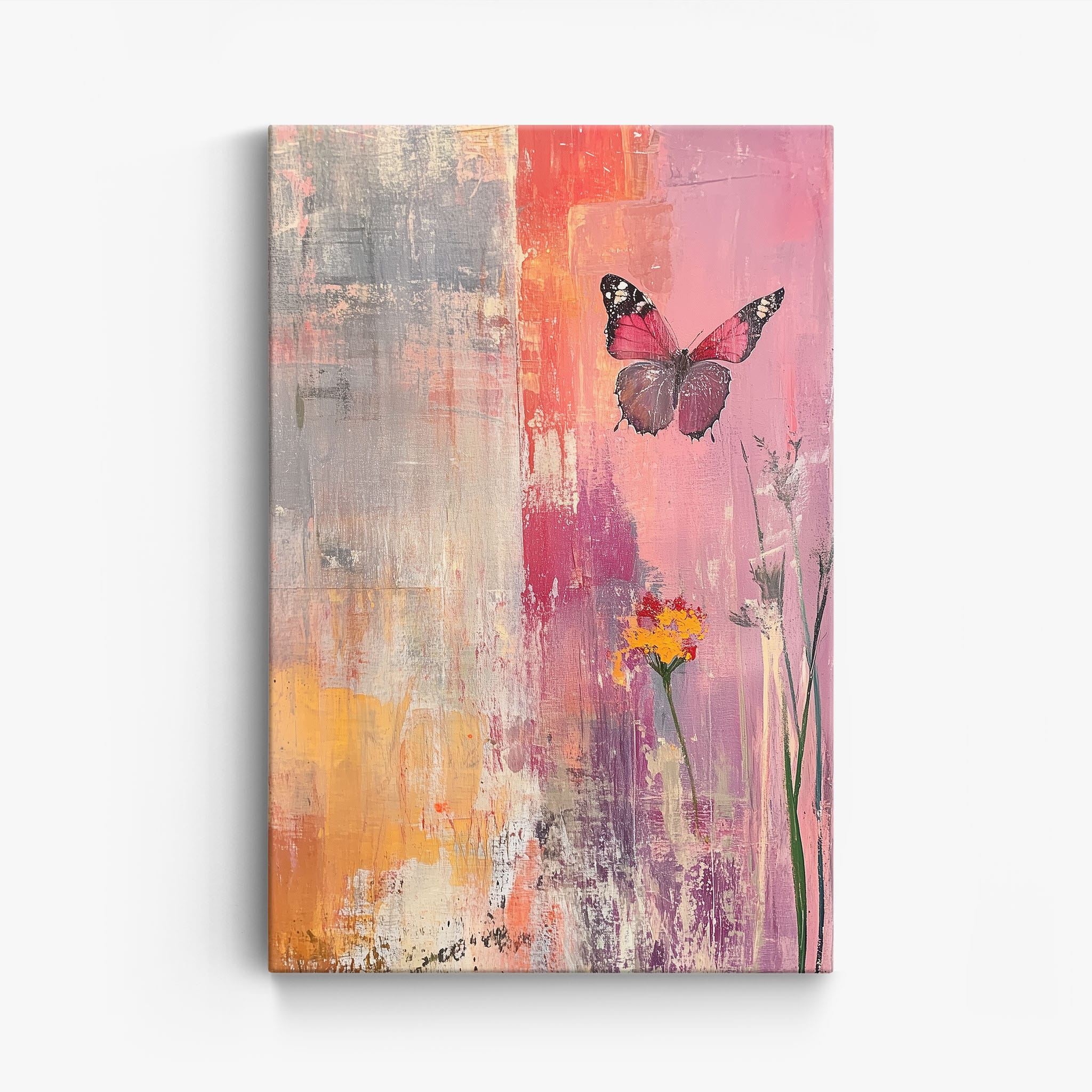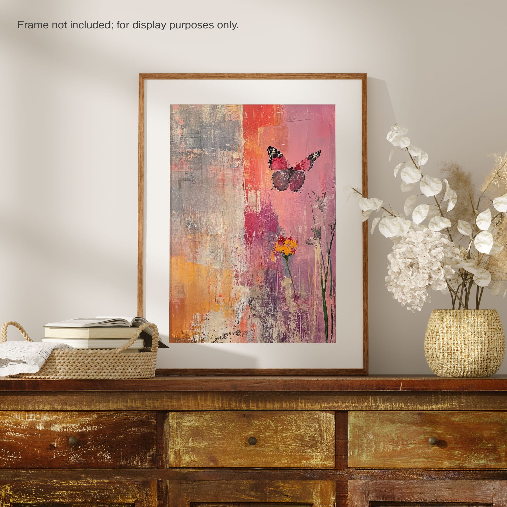 This painting merges modern artistry with a hint of Impressionism, creating a unique visual narrative through bold textures and harmonious color transitions. A striking butterfly alights upon a softly suggested floral background, its rich red and black hues contrasting with blushes of pink, red, and undertones of gray. This artwork invites viewers to appreciate the simplicity and beauty of nature brought to life on canvas. A compelling choice for anyone looking to add a touch of nature’s elegance to their personal or professional space. Perfect for modern decor enthusiasts and lovers of fine art paintings.