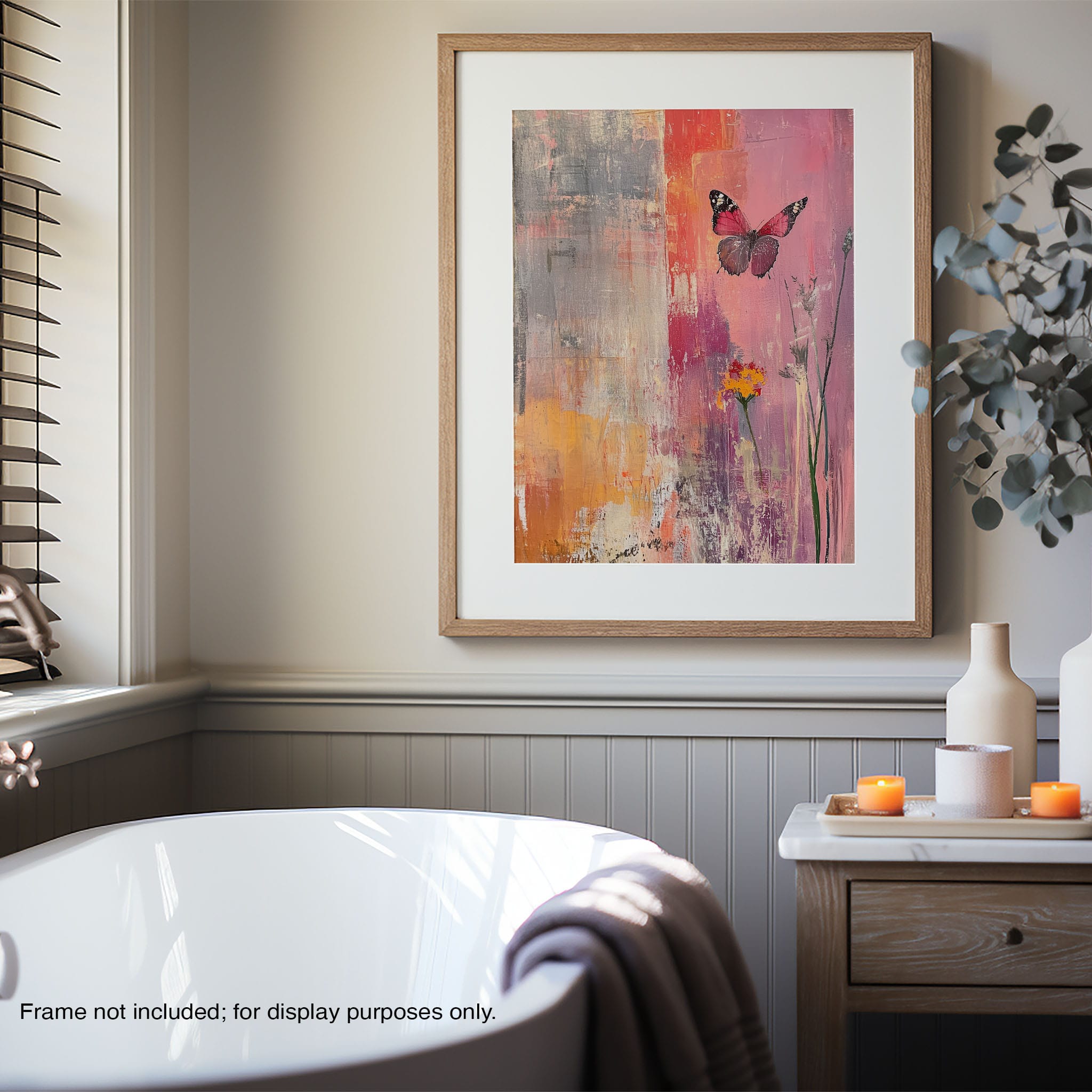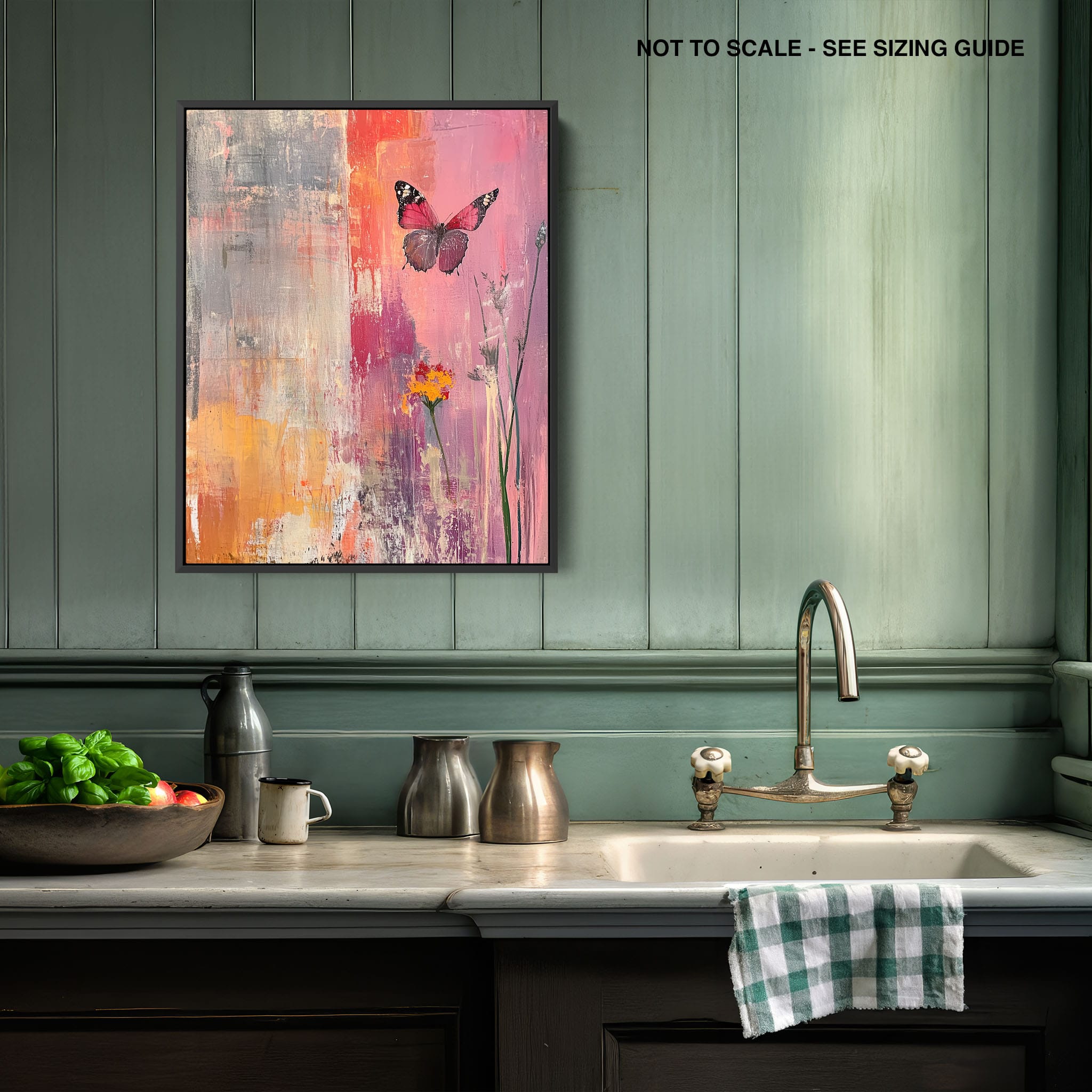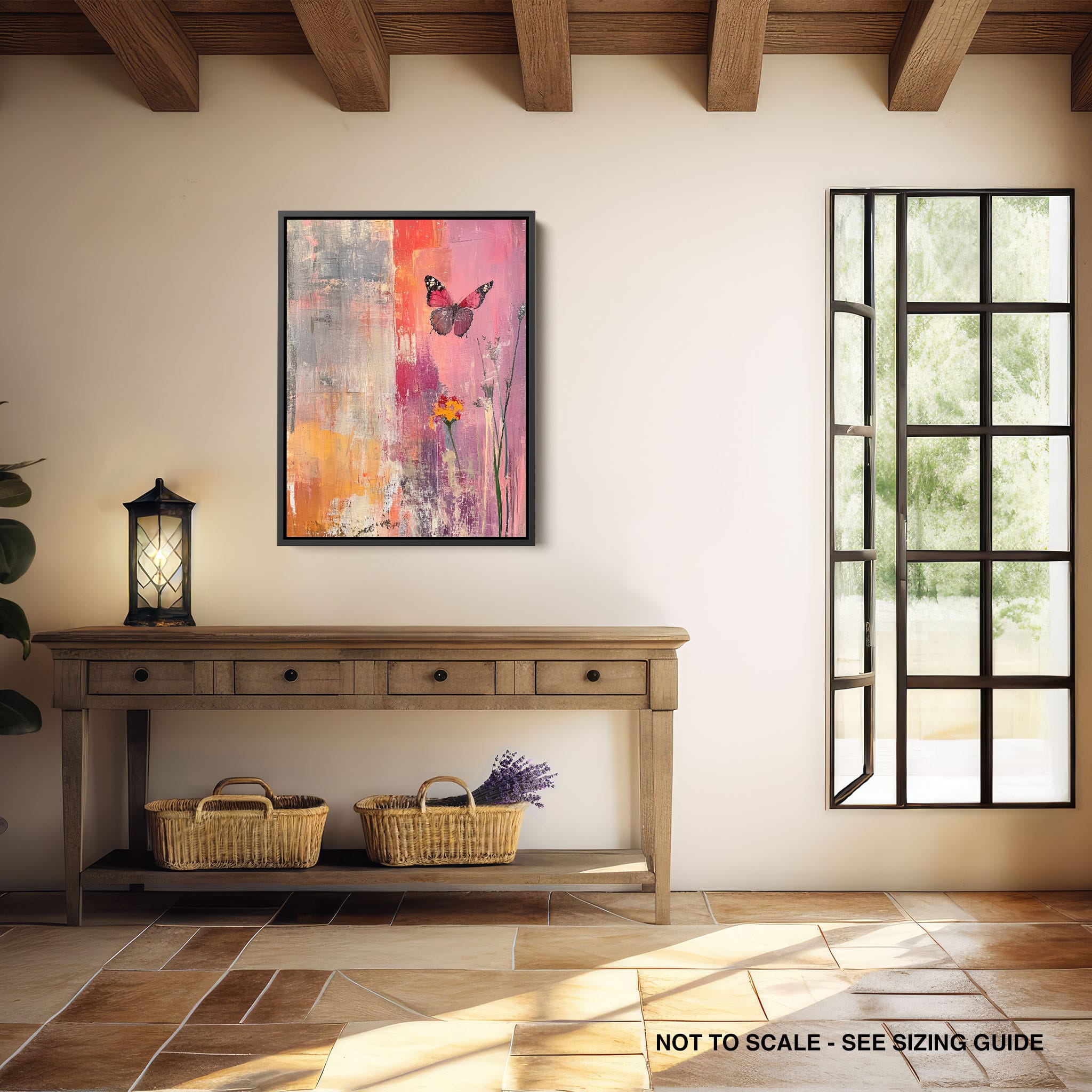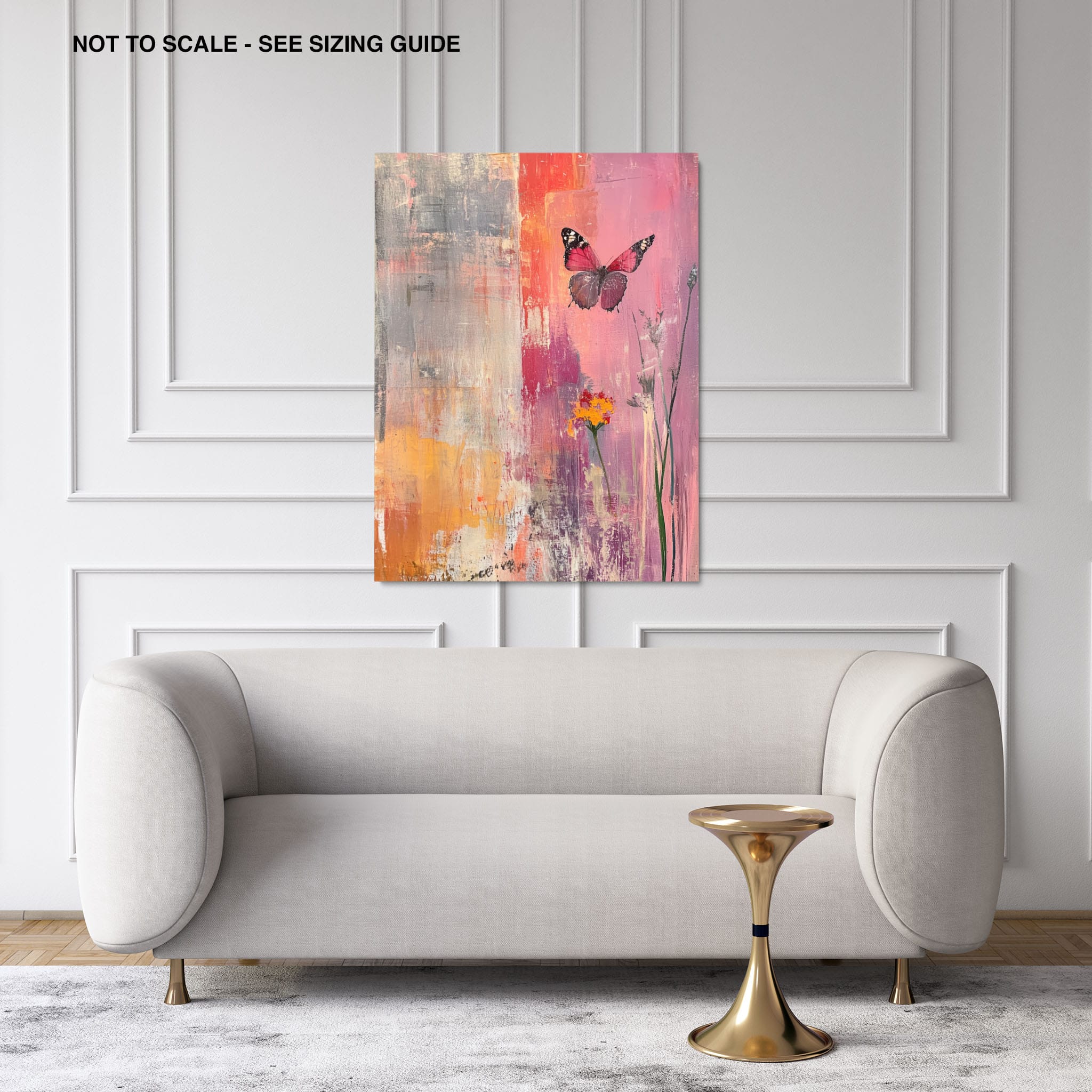 This painting merges modern artistry with a hint of Impressionism, creating a unique visual narrative through bold textures and harmonious color transitions. A striking butterfly alights upon a softly suggested floral background, its rich red and black hues contrasting with blushes of pink, red, and undertones of gray. This artwork invites viewers to appreciate the simplicity and beauty of nature brought to life on canvas. A compelling choice for anyone looking to add a touch of nature’s elegance to their personal or professional space. Perfect for modern decor enthusiasts and lovers of fine art paintings.