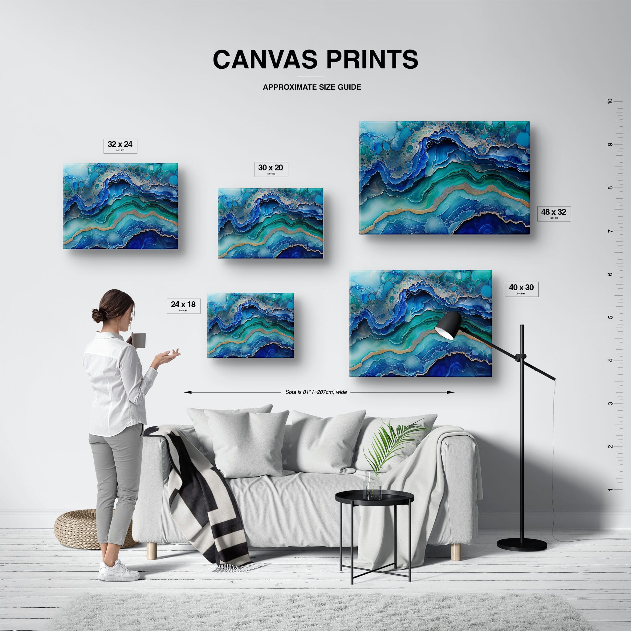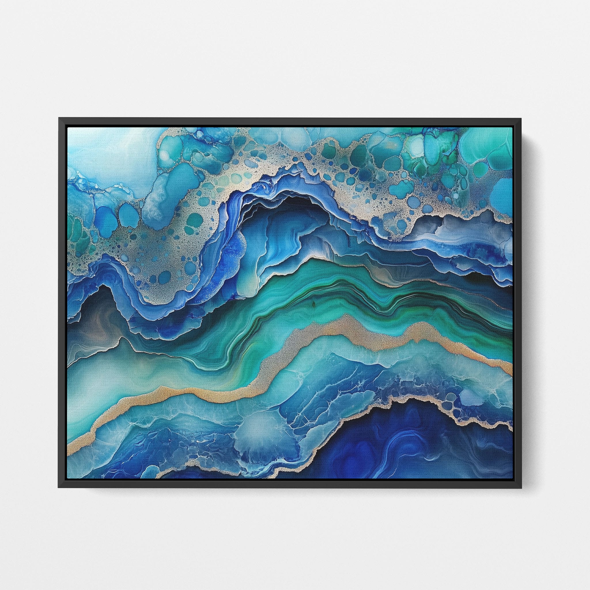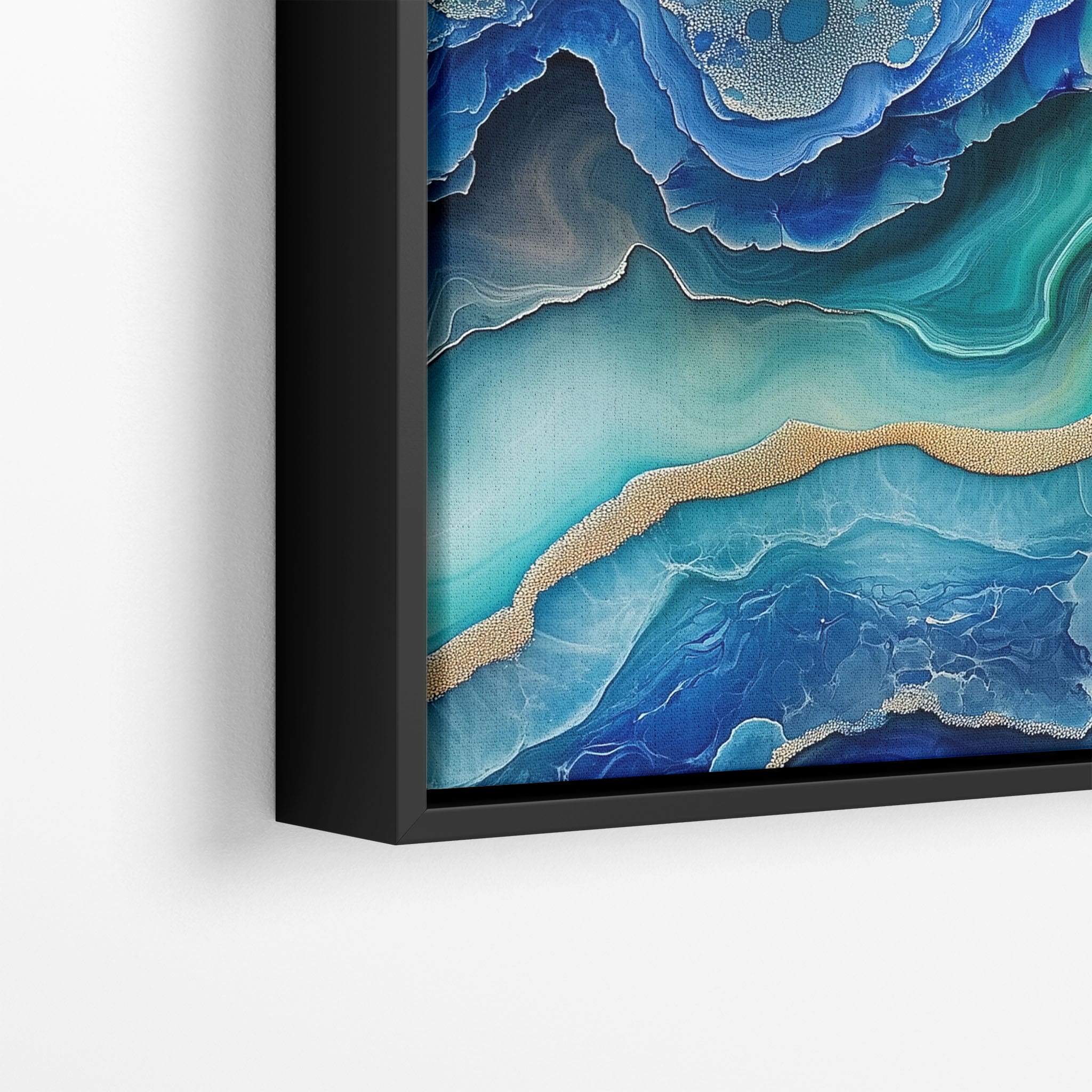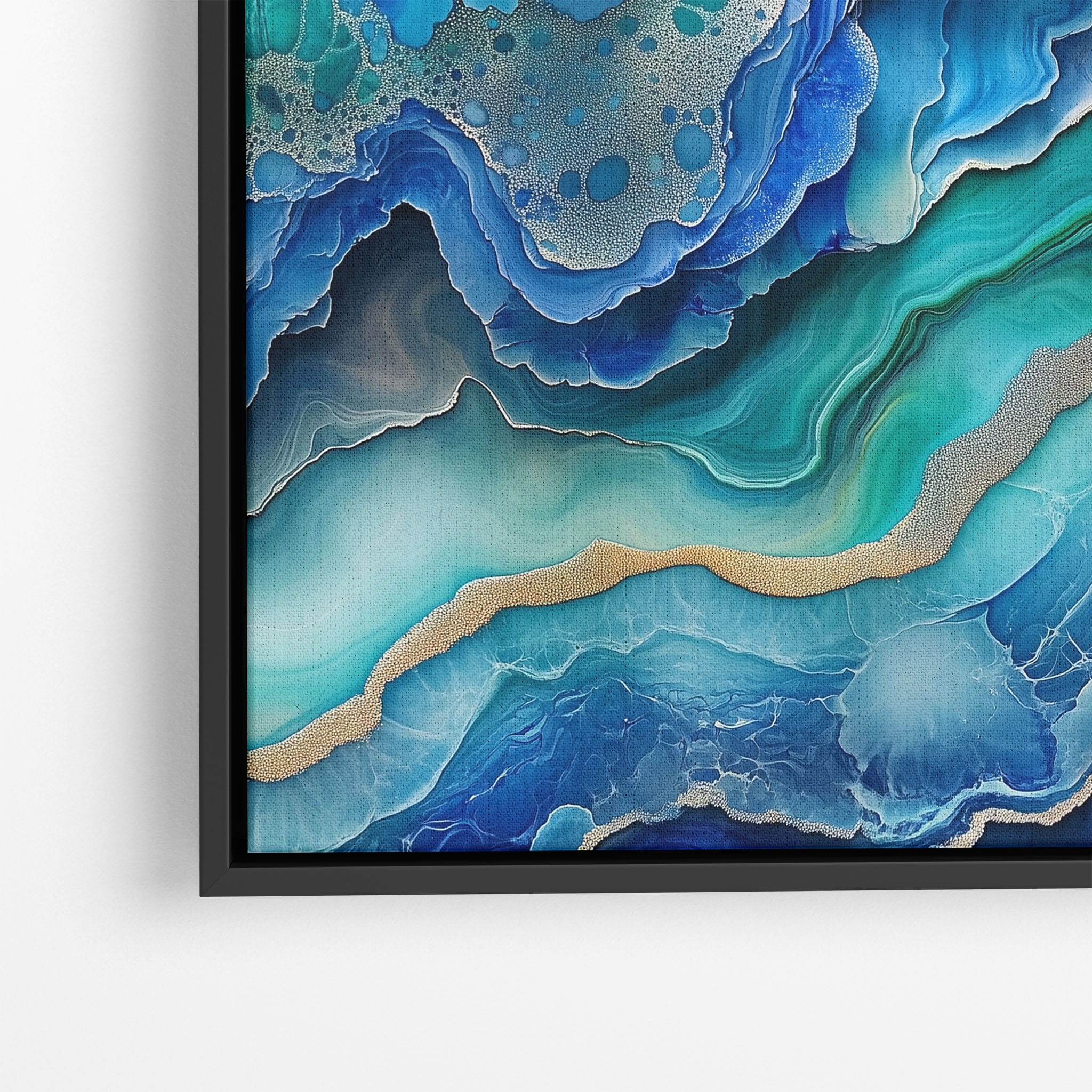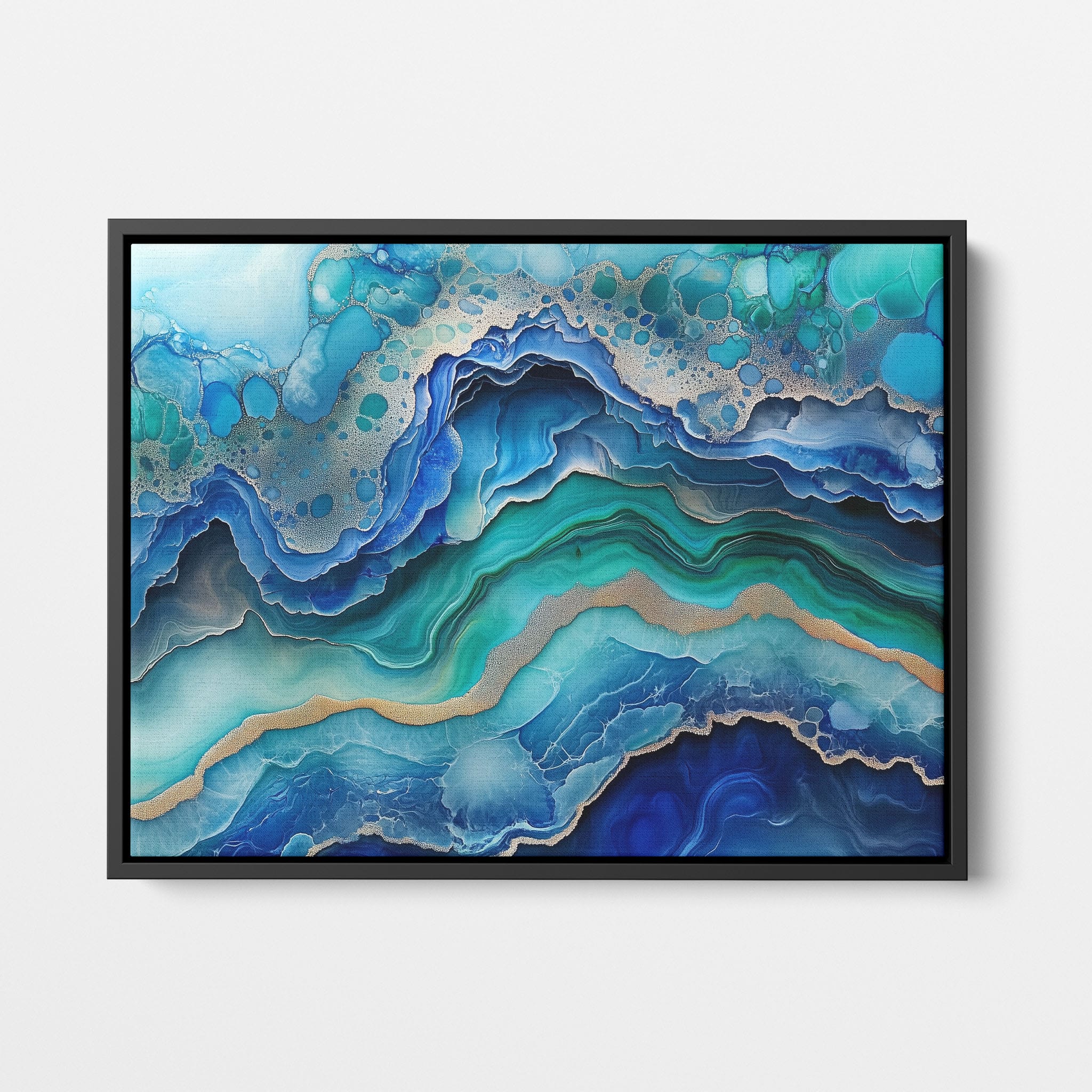 This stunning digital illustration invites the viewer into a deep, mesmerizing exploration of abstract and surreal forms reminiscent of layered ocean waves. Interplaying shades of blue and aquamarine meld with sand-like textures, evoking a serene yet dynamic seascape that captivates and soothes. This piece is perfect for adding a touch of tranquility and artistic flair to any modern decor. Captured through the finesse of digital art, it brings a contemporary edge to any space. Ideal for those looking to enhance their surroundings with a jewel-toned visual feast.