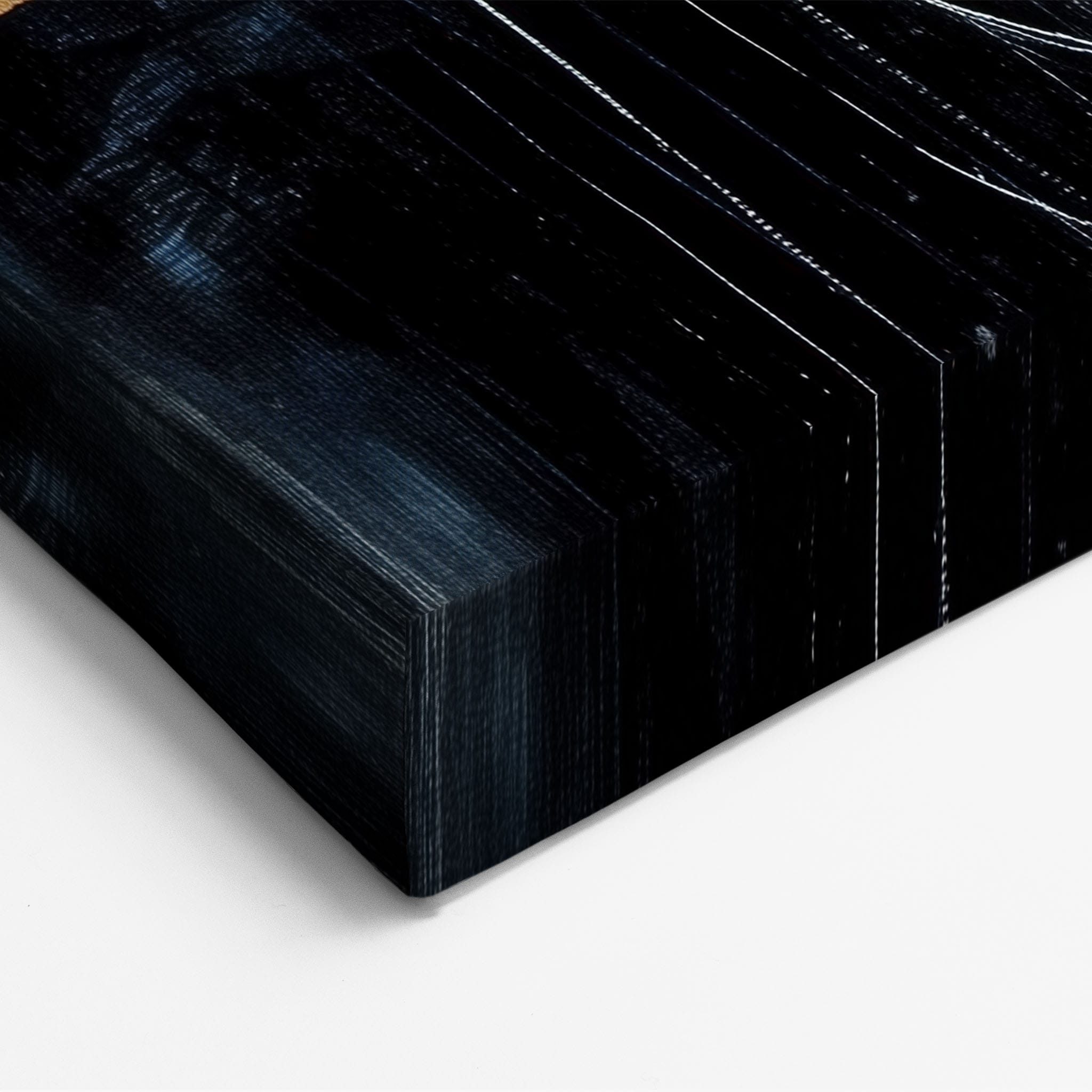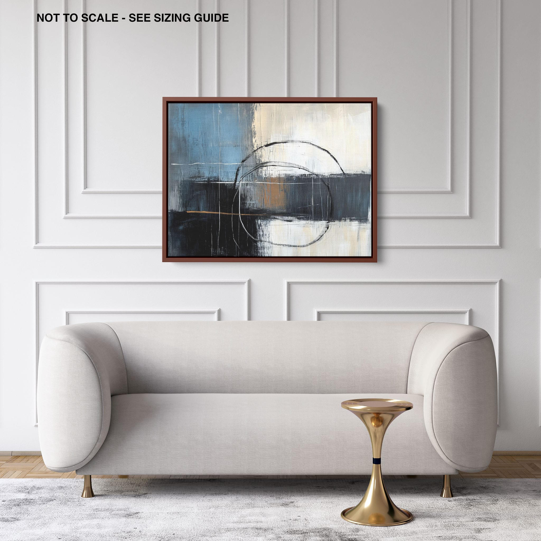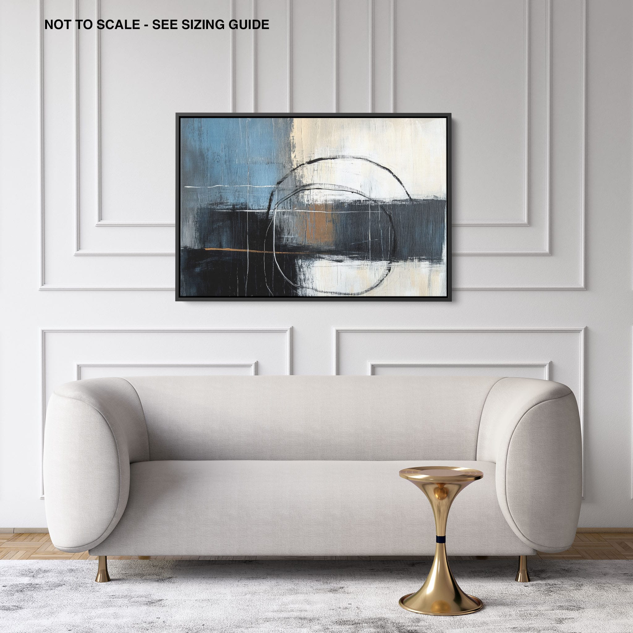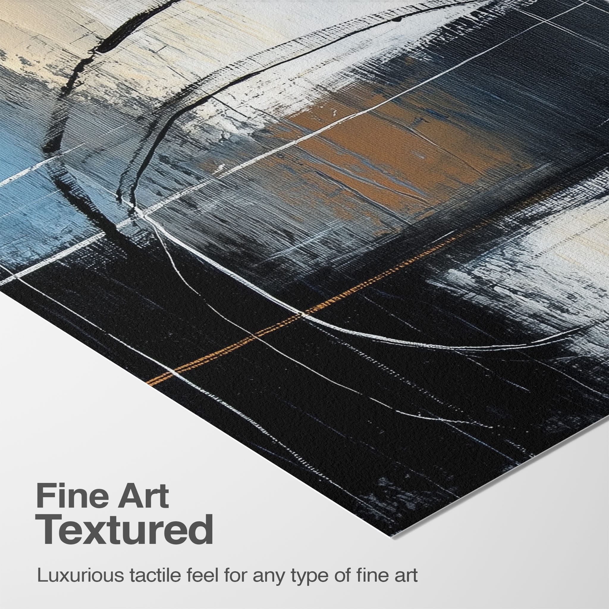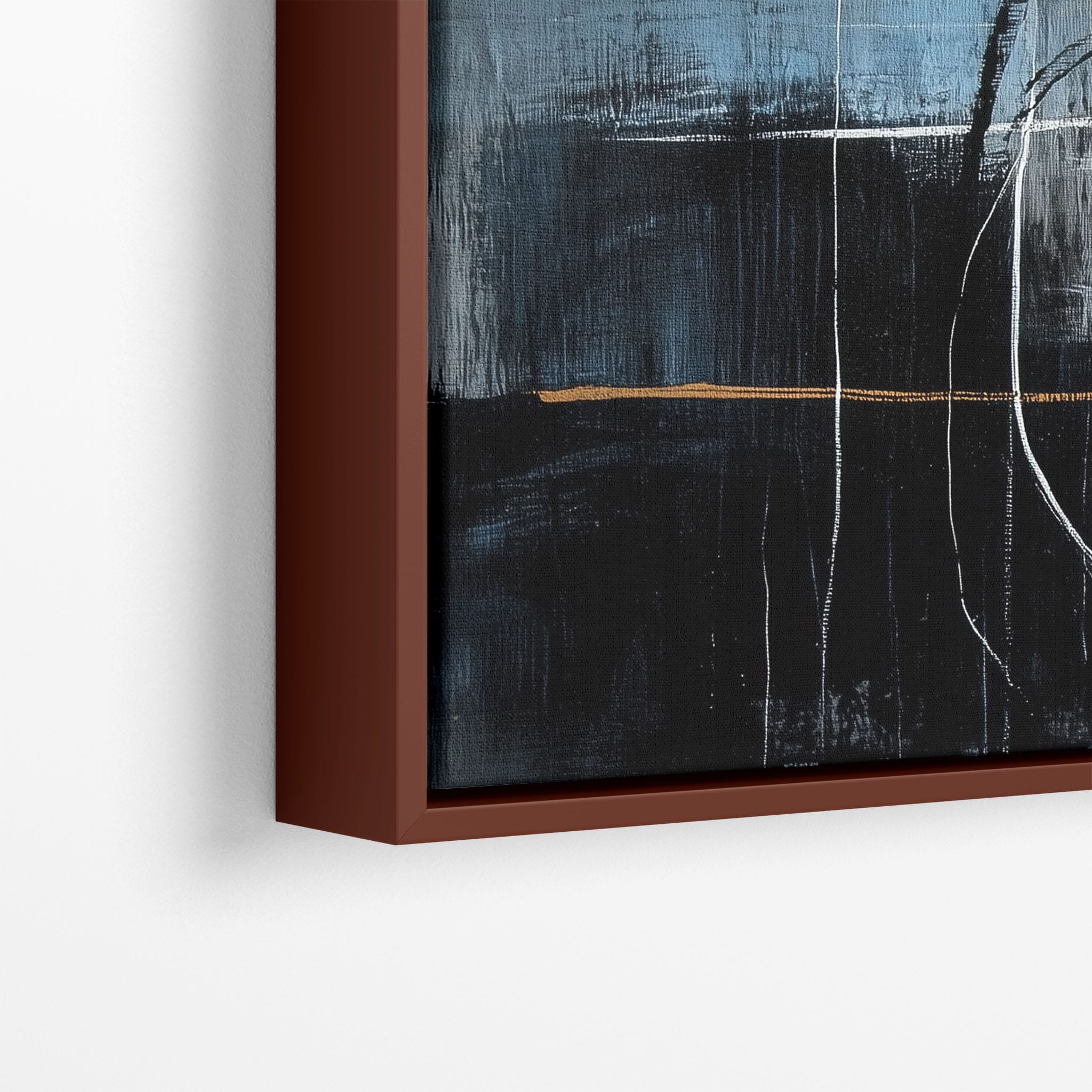 This painting draws you into a world of abstract modernism, where bold circular forms intersect with robust blocks of color. The deep blues and contrasting warm tones merge with pure white strokes, evoking a sense of depth and emotional resonance. This piece uses texture strategically to add dimension and intrigue, making it a standout addition to any space seeking a touch of sophistication and a contemporary flair. Enhance your home or office with this visually striking artwork that invites contemplation and conversation.