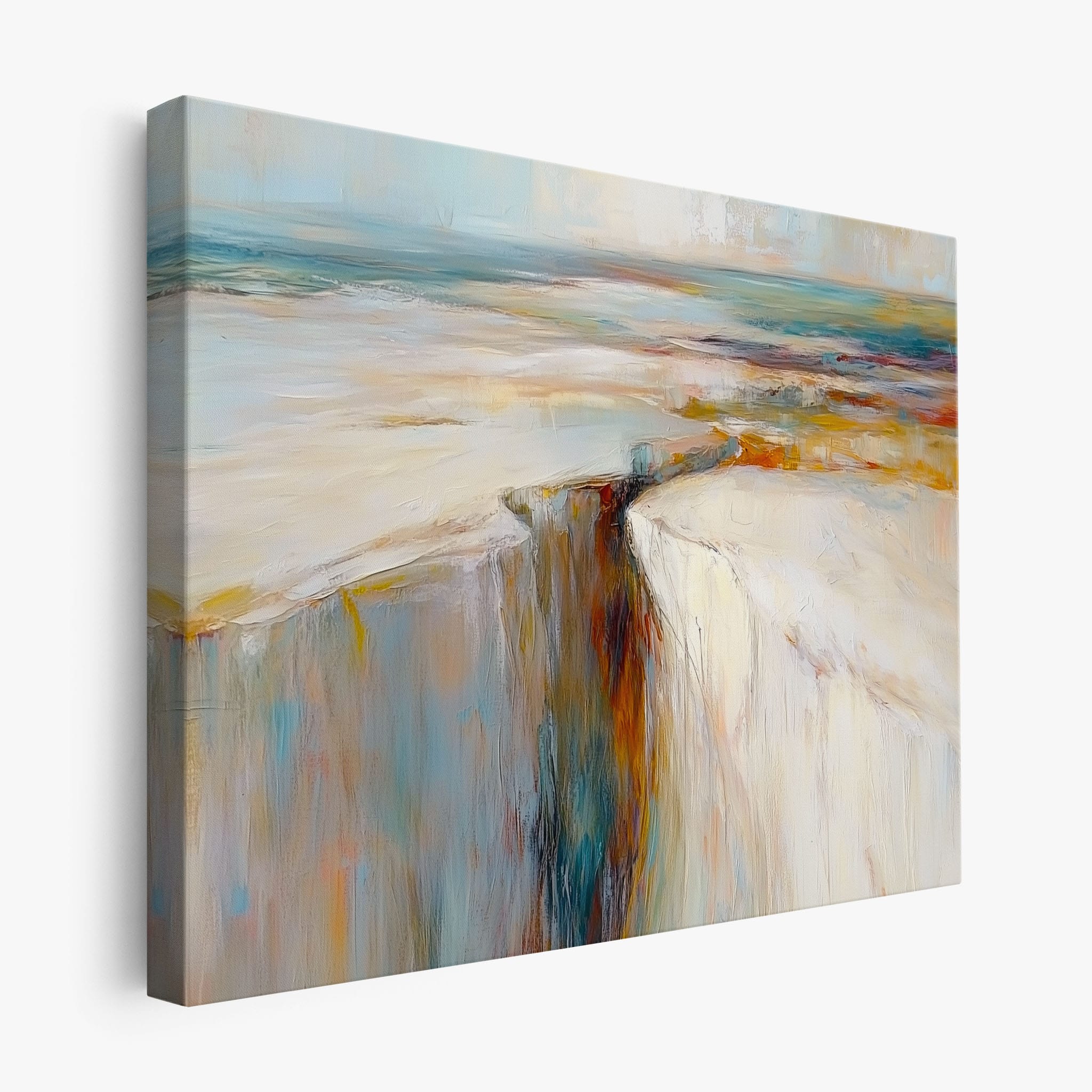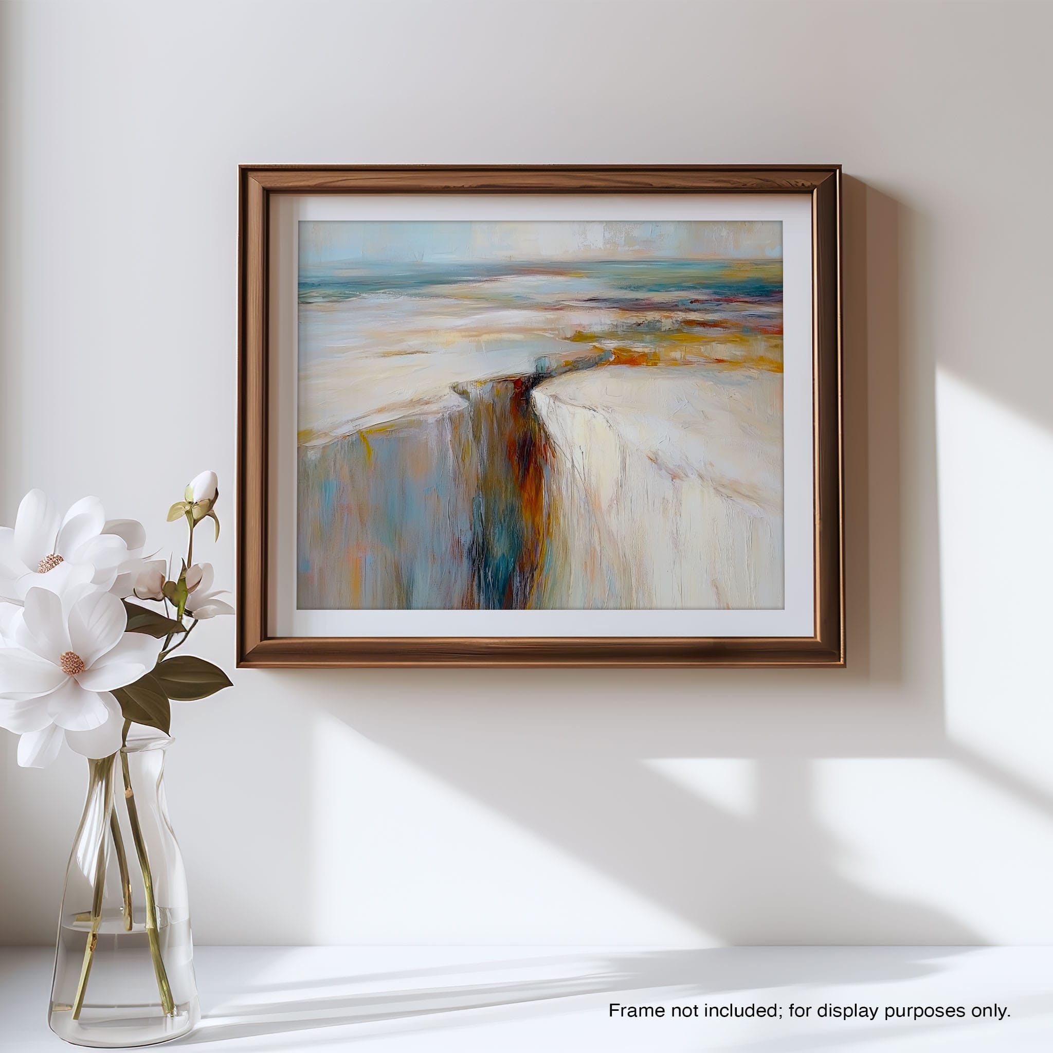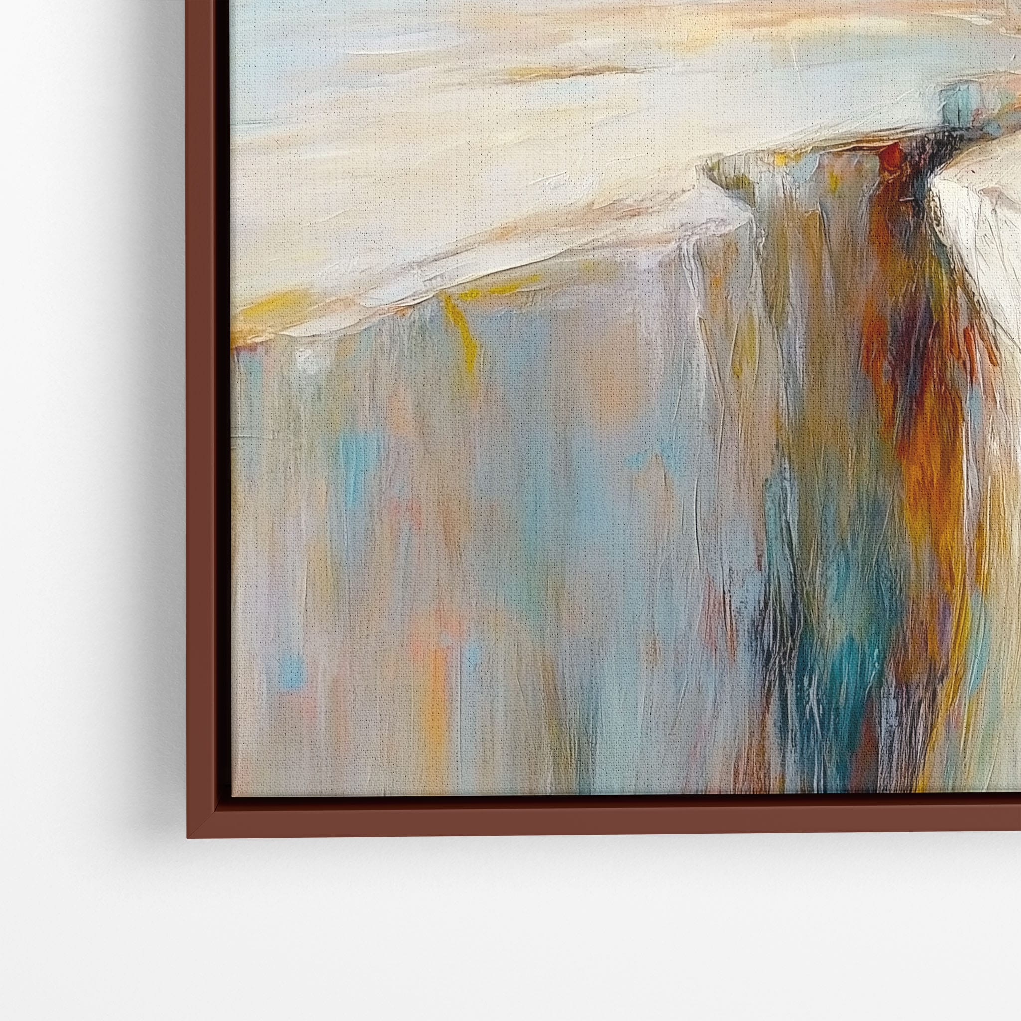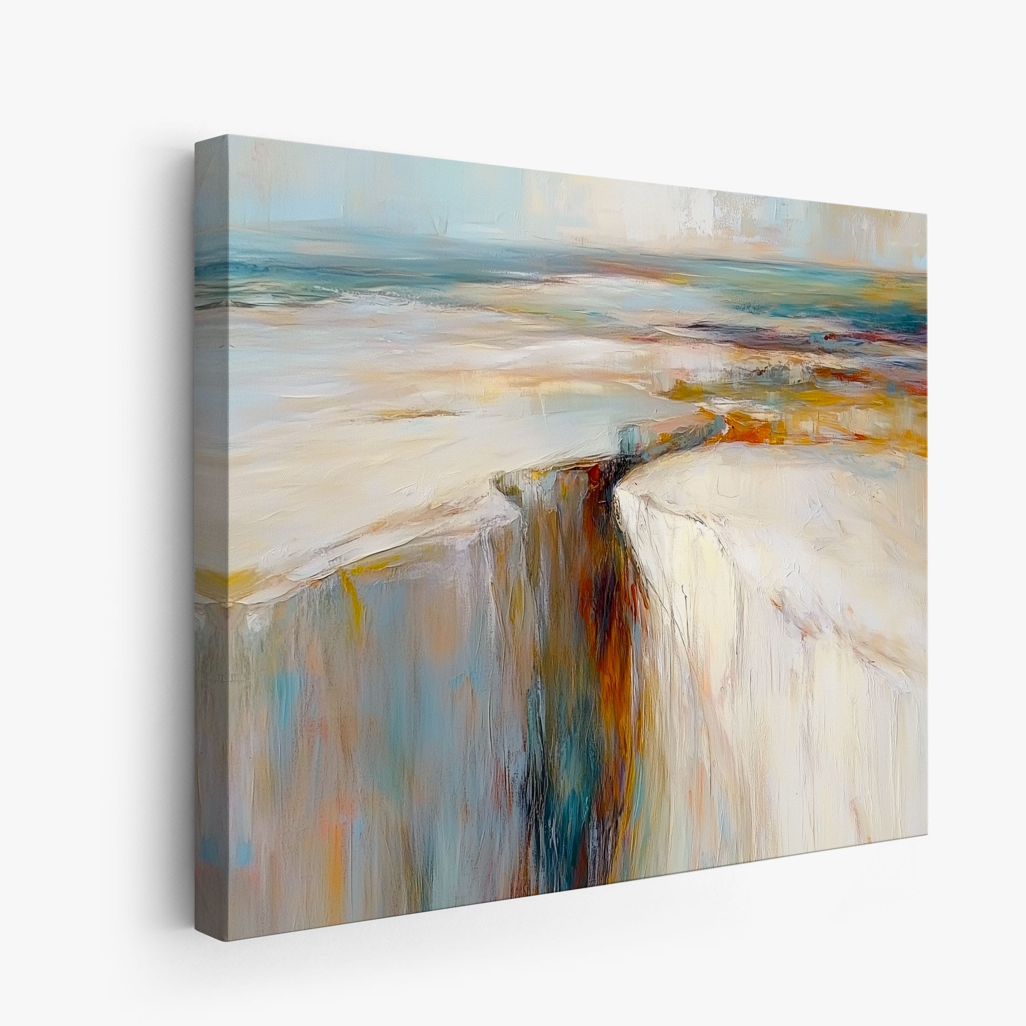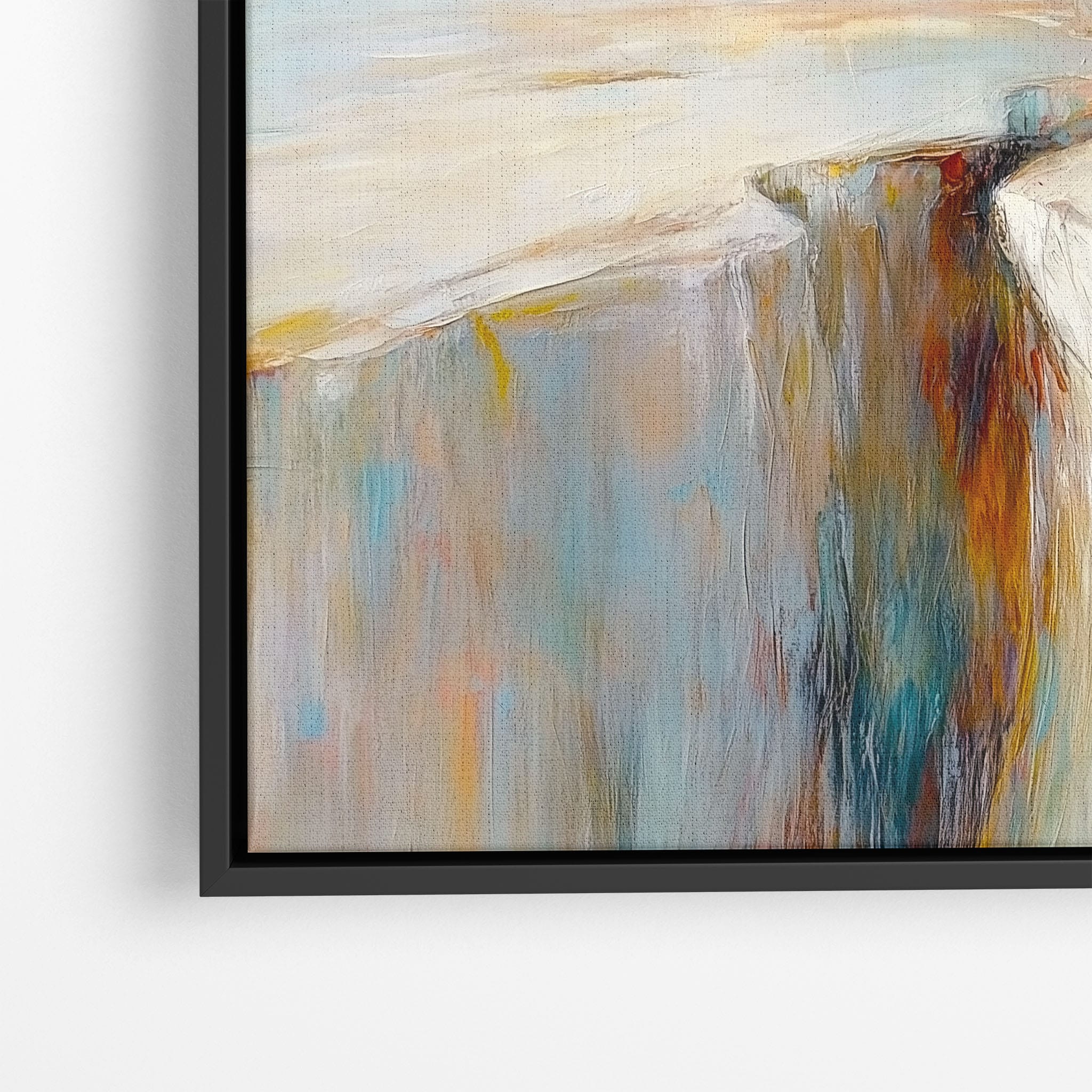 Captivating in its flow and rich textures, this painting embodies the spirit of both Impressionism and Abstract art. Using a mesmerizing blend of blues, whites, and earth tones, the artist provides a fresh interpretation of a coastal scene. This piece evokes the unpredictable beauty of nature, where broad, fluid strokes suggest moody seas meeting a rugged cliff. Perfect for modern interiors seeking a touch of nature's dynamism, this artwork is a must-have for anyone wanting to add a serene yet powerful element to their living space.