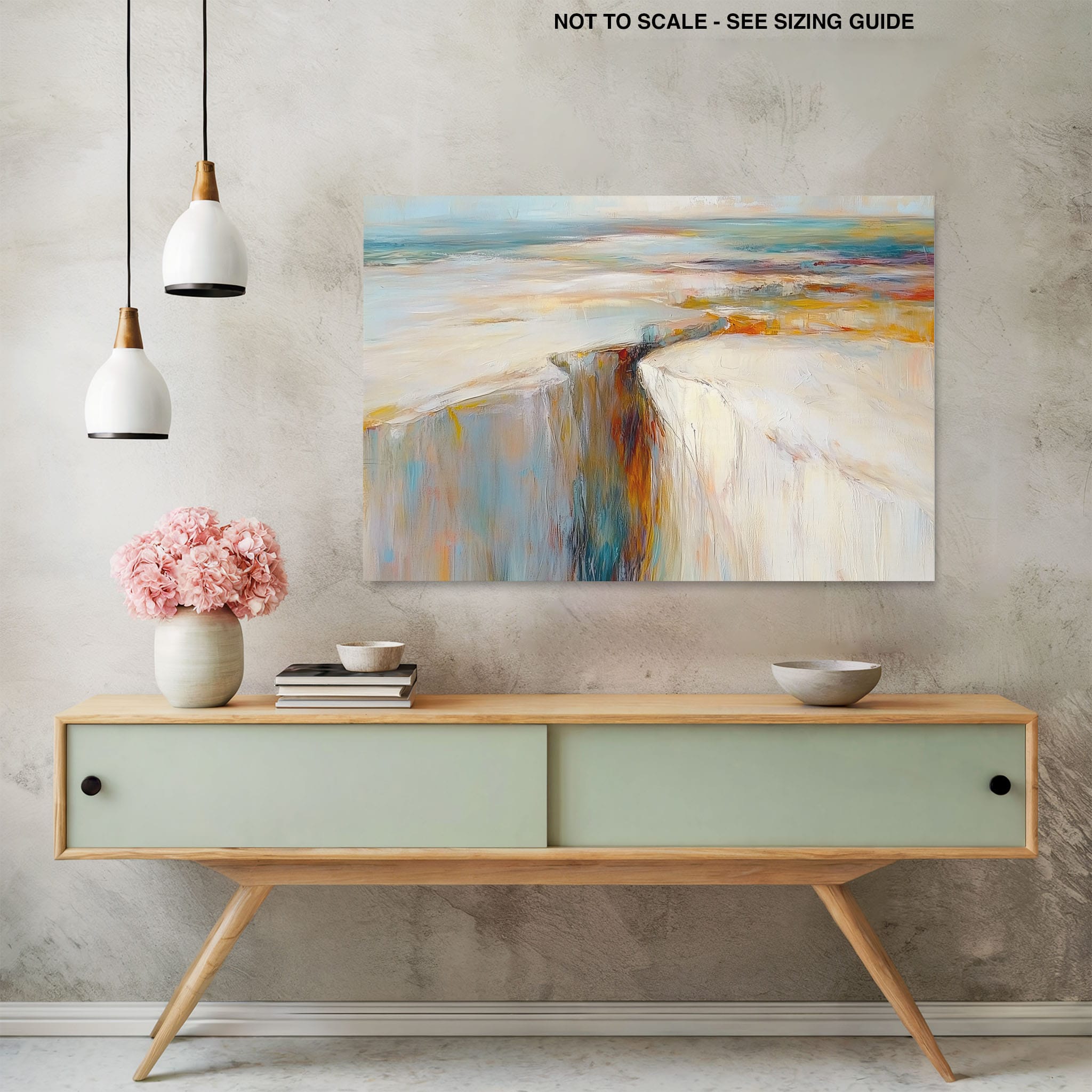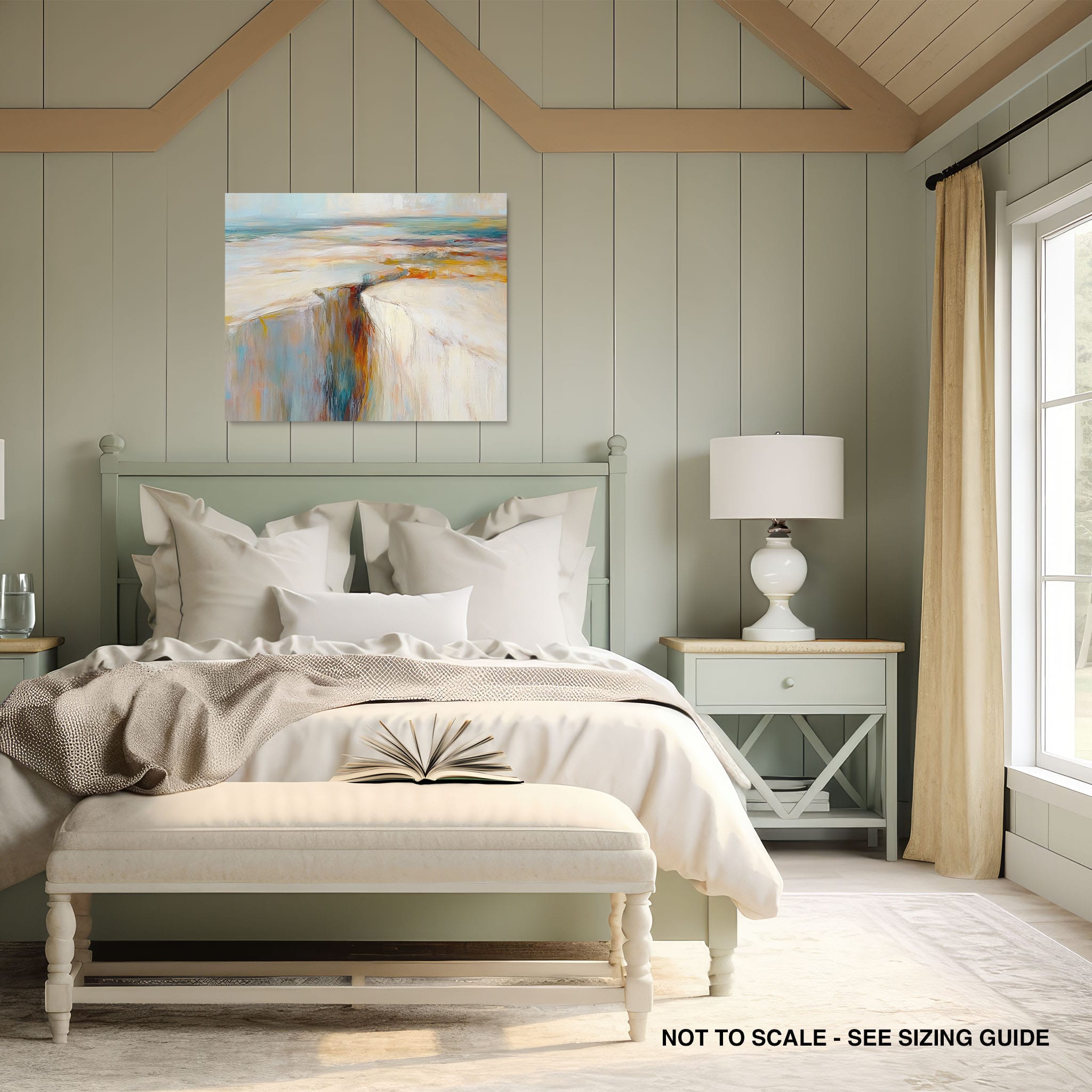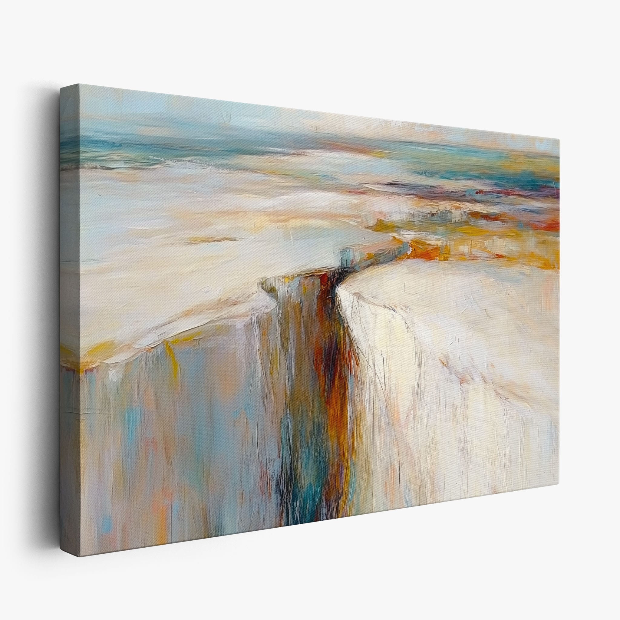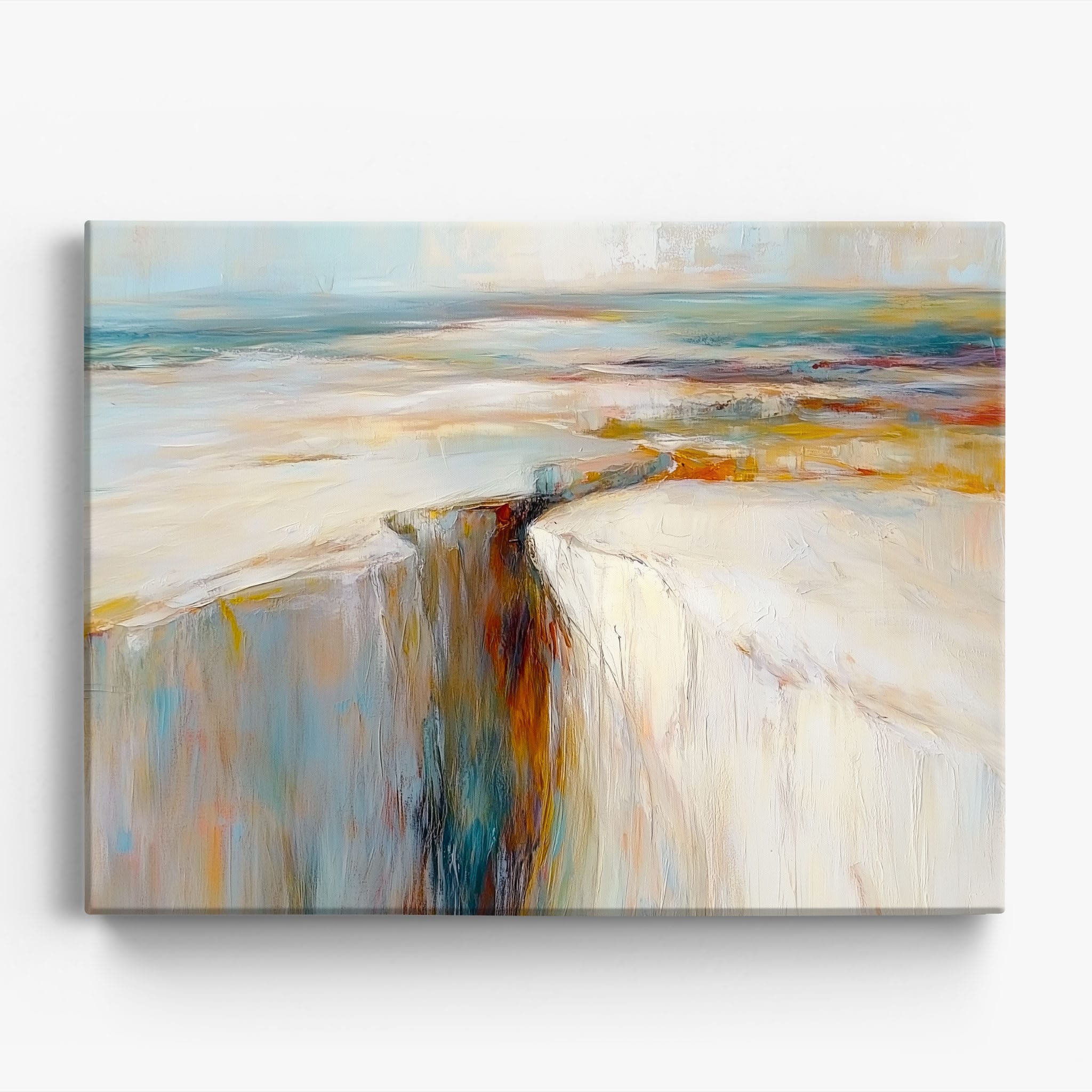 Captivating in its flow and rich textures, this painting embodies the spirit of both Impressionism and Abstract art. Using a mesmerizing blend of blues, whites, and earth tones, the artist provides a fresh interpretation of a coastal scene. This piece evokes the unpredictable beauty of nature, where broad, fluid strokes suggest moody seas meeting a rugged cliff. Perfect for modern interiors seeking a touch of nature's dynamism, this artwork is a must-have for anyone wanting to add a serene yet powerful element to their living space.