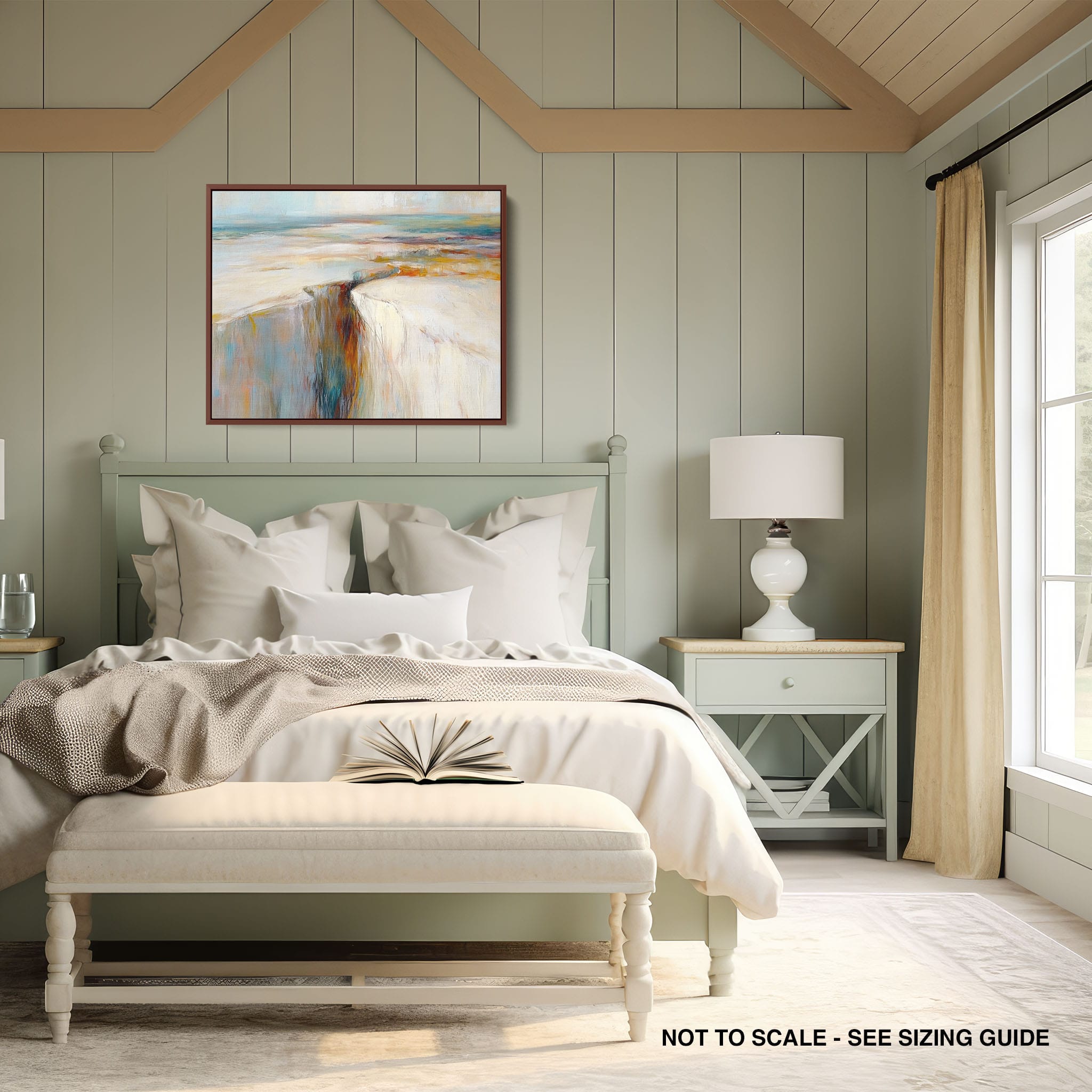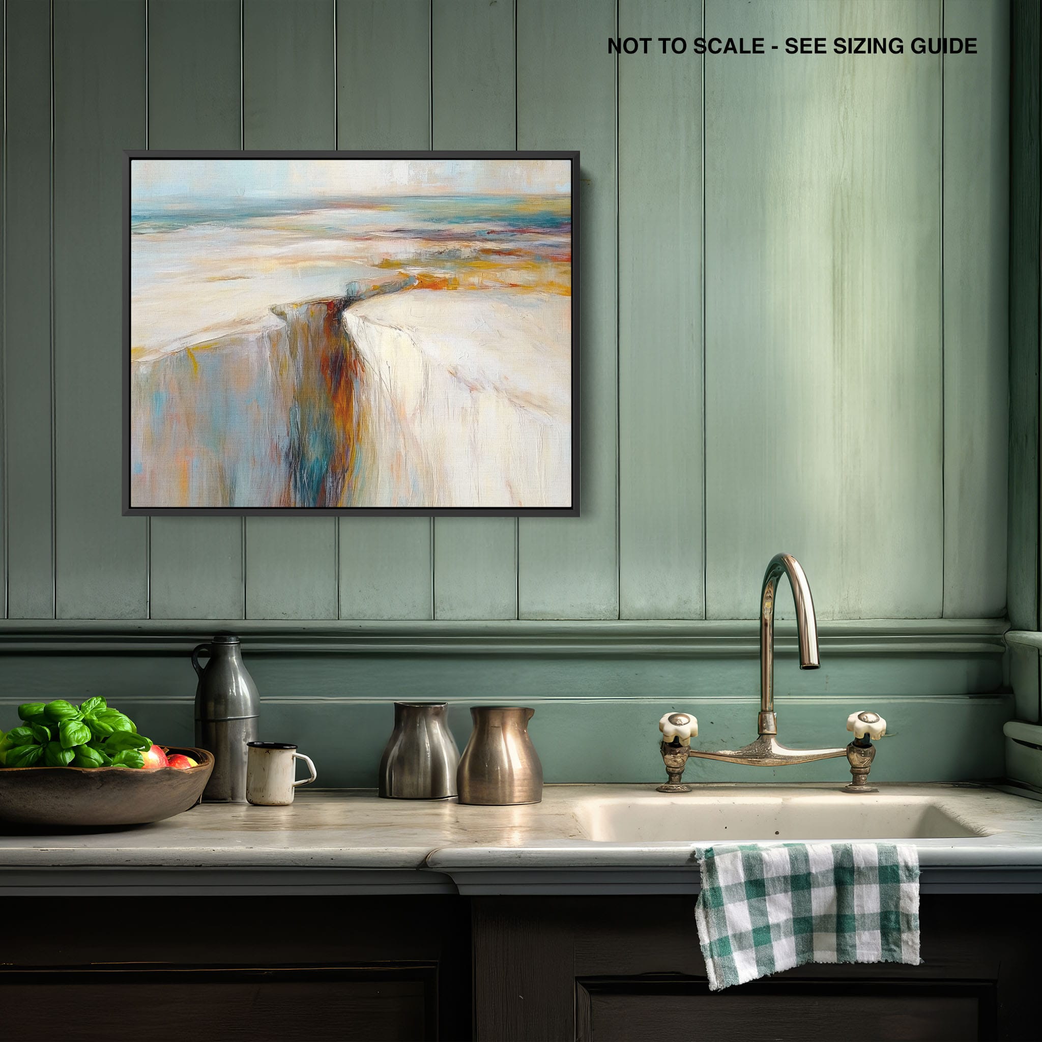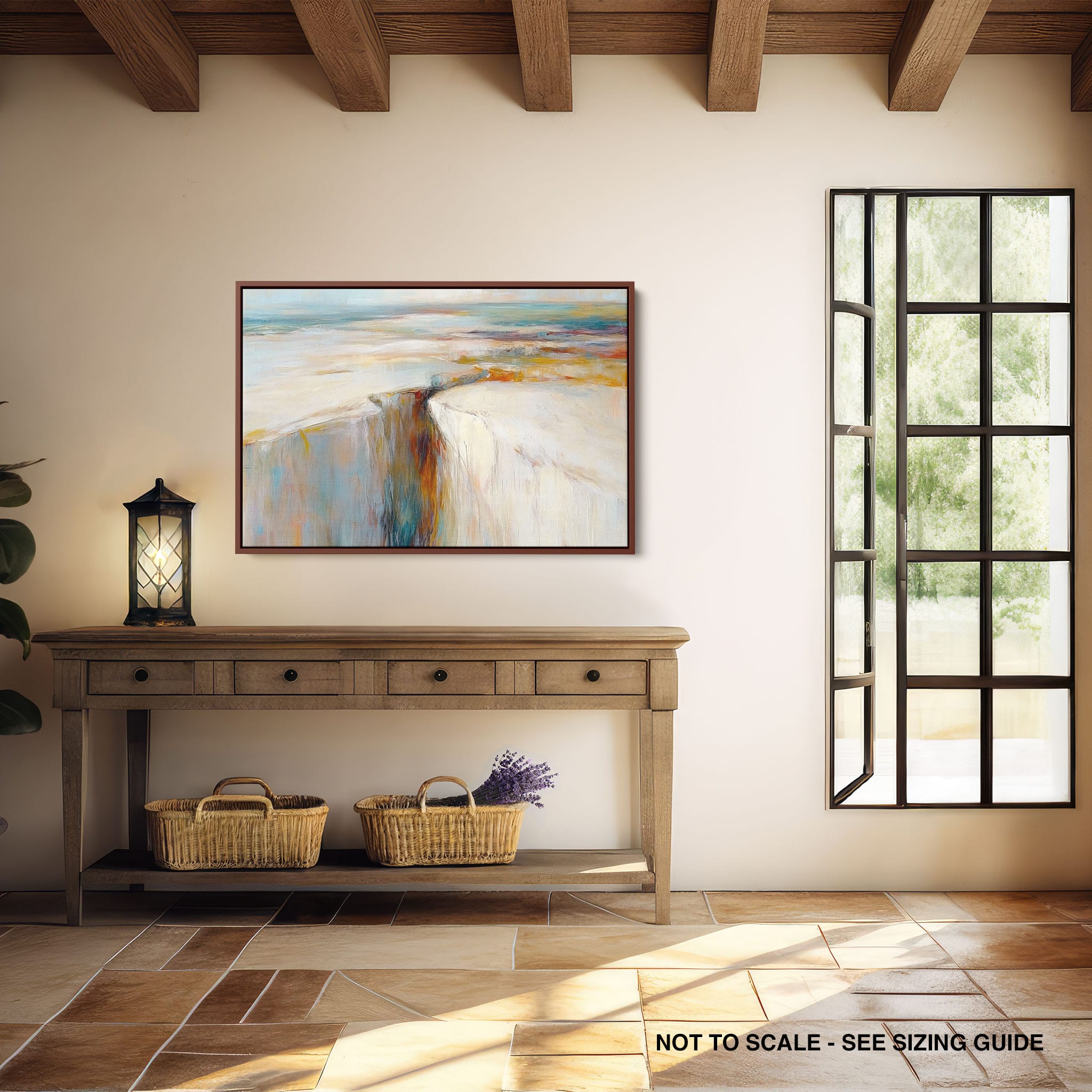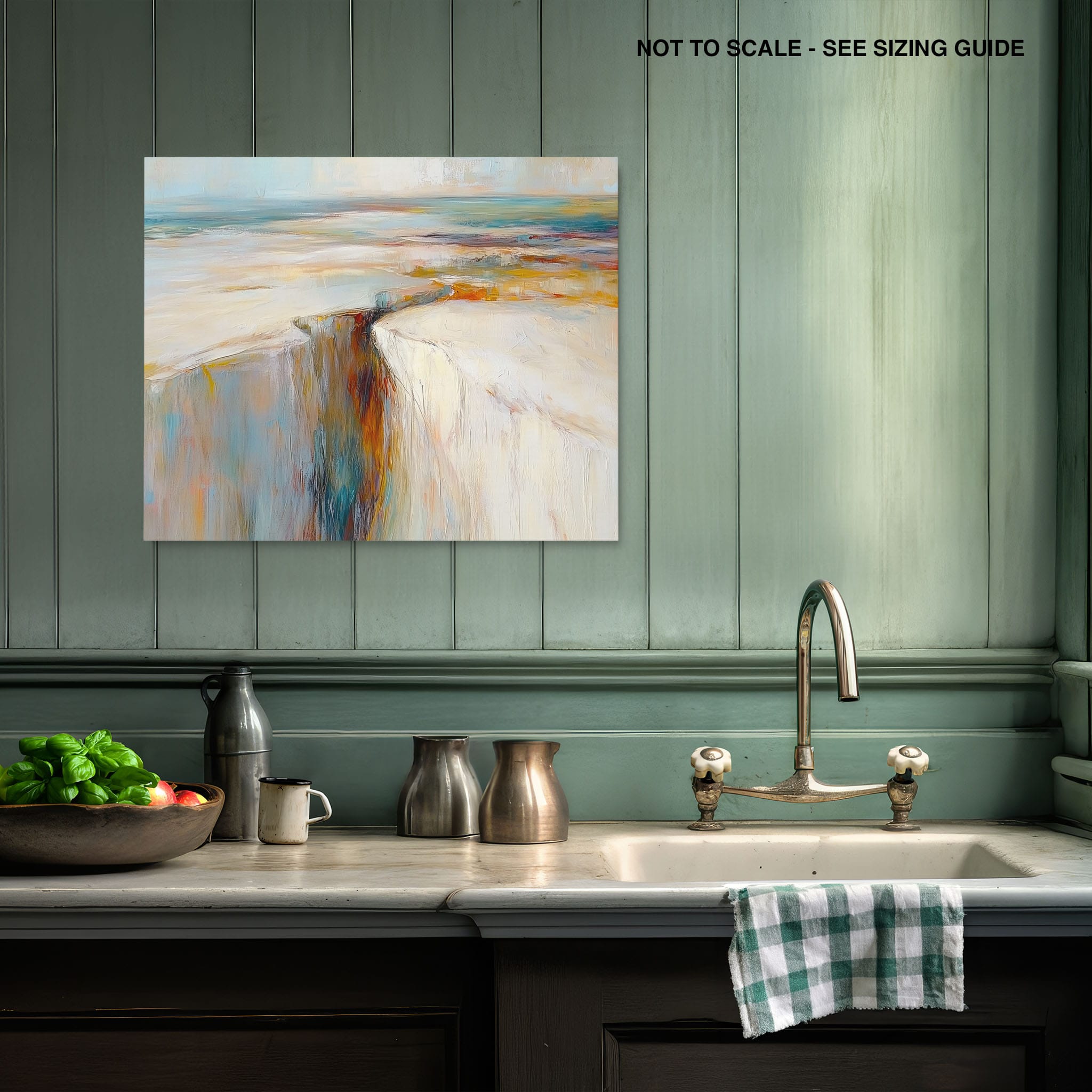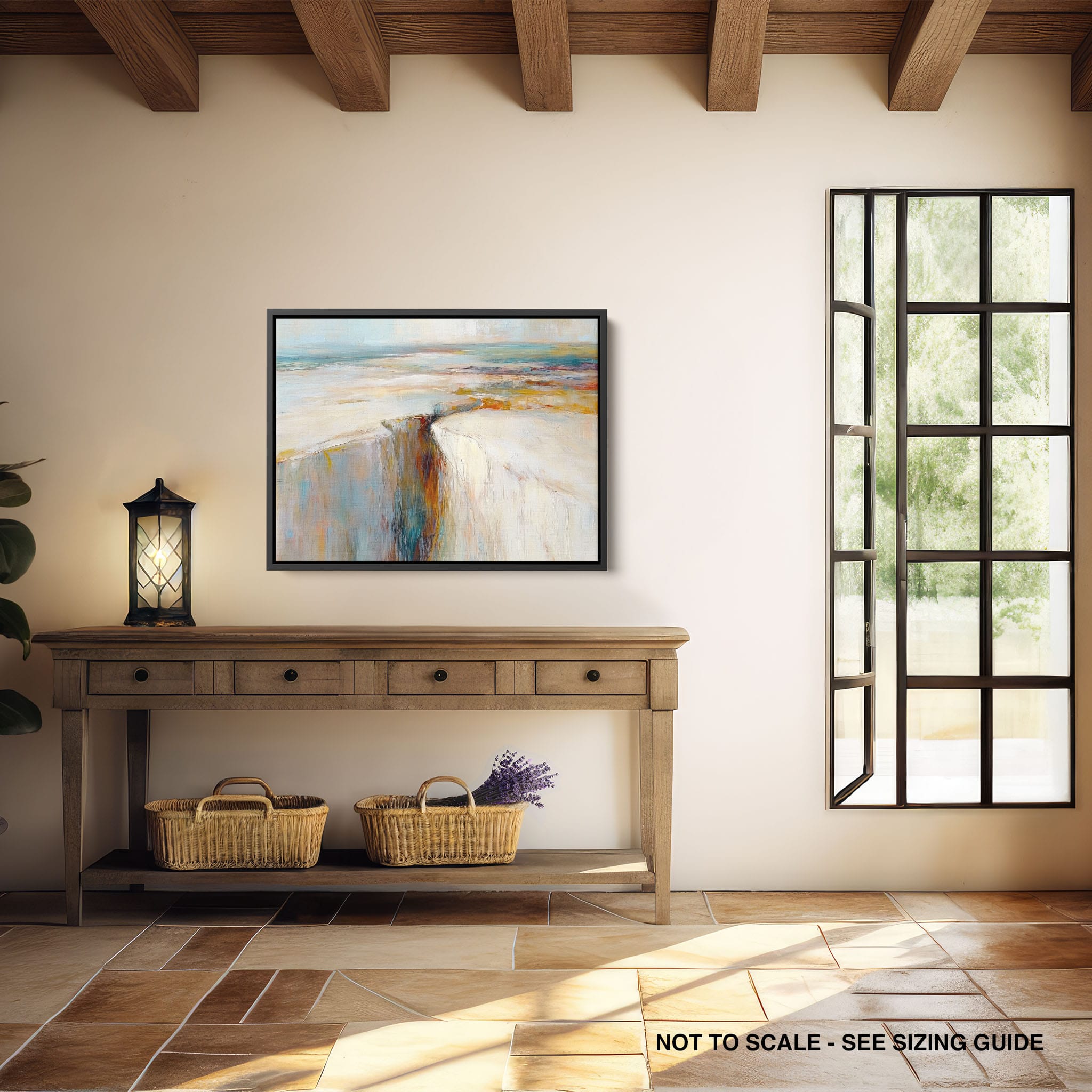 Captivating in its flow and rich textures, this painting embodies the spirit of both Impressionism and Abstract art. Using a mesmerizing blend of blues, whites, and earth tones, the artist provides a fresh interpretation of a coastal scene. This piece evokes the unpredictable beauty of nature, where broad, fluid strokes suggest moody seas meeting a rugged cliff. Perfect for modern interiors seeking a touch of nature's dynamism, this artwork is a must-have for anyone wanting to add a serene yet powerful element to their living space.