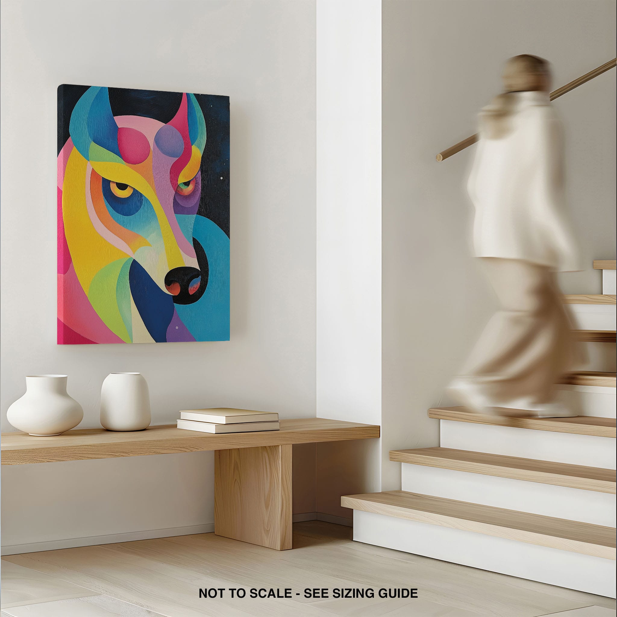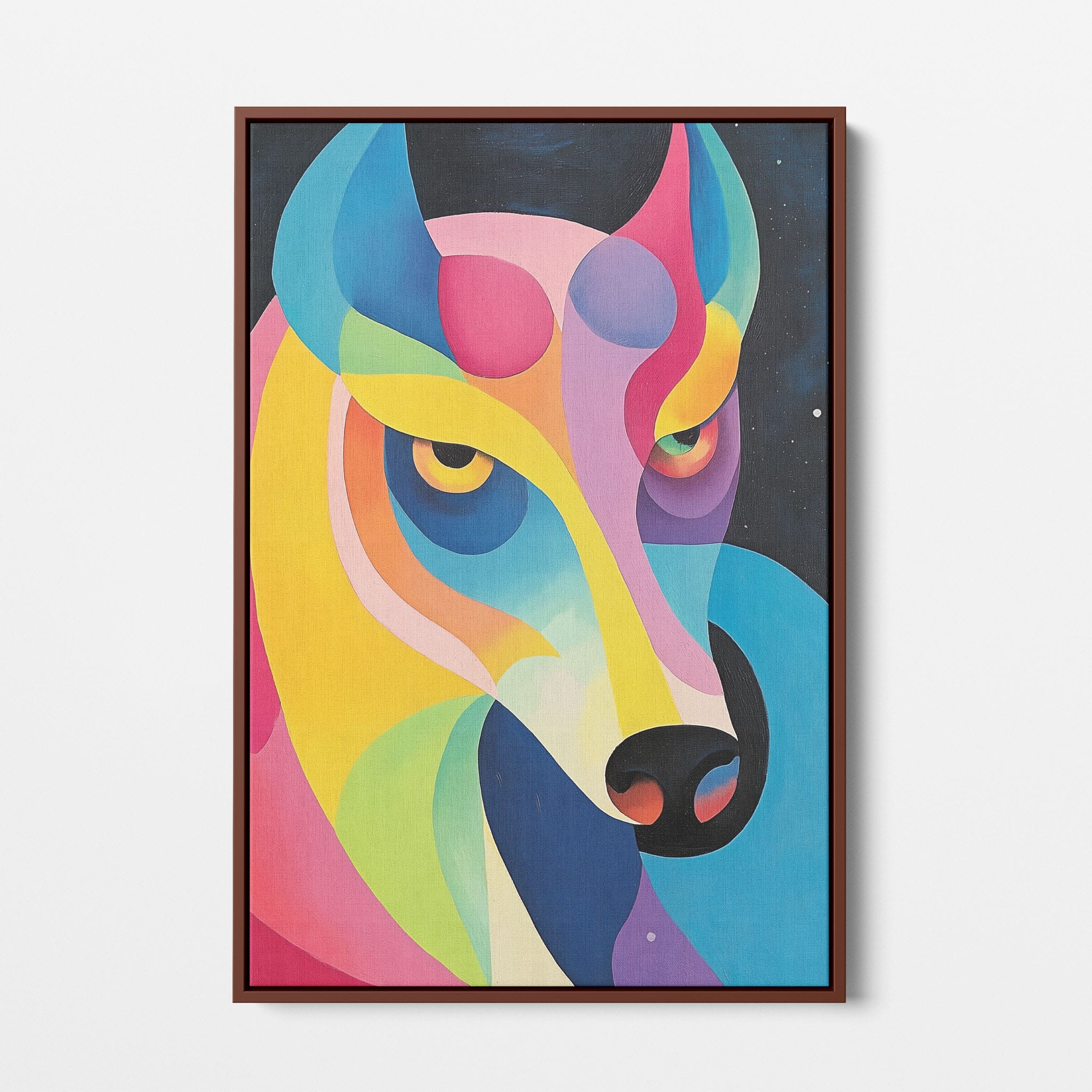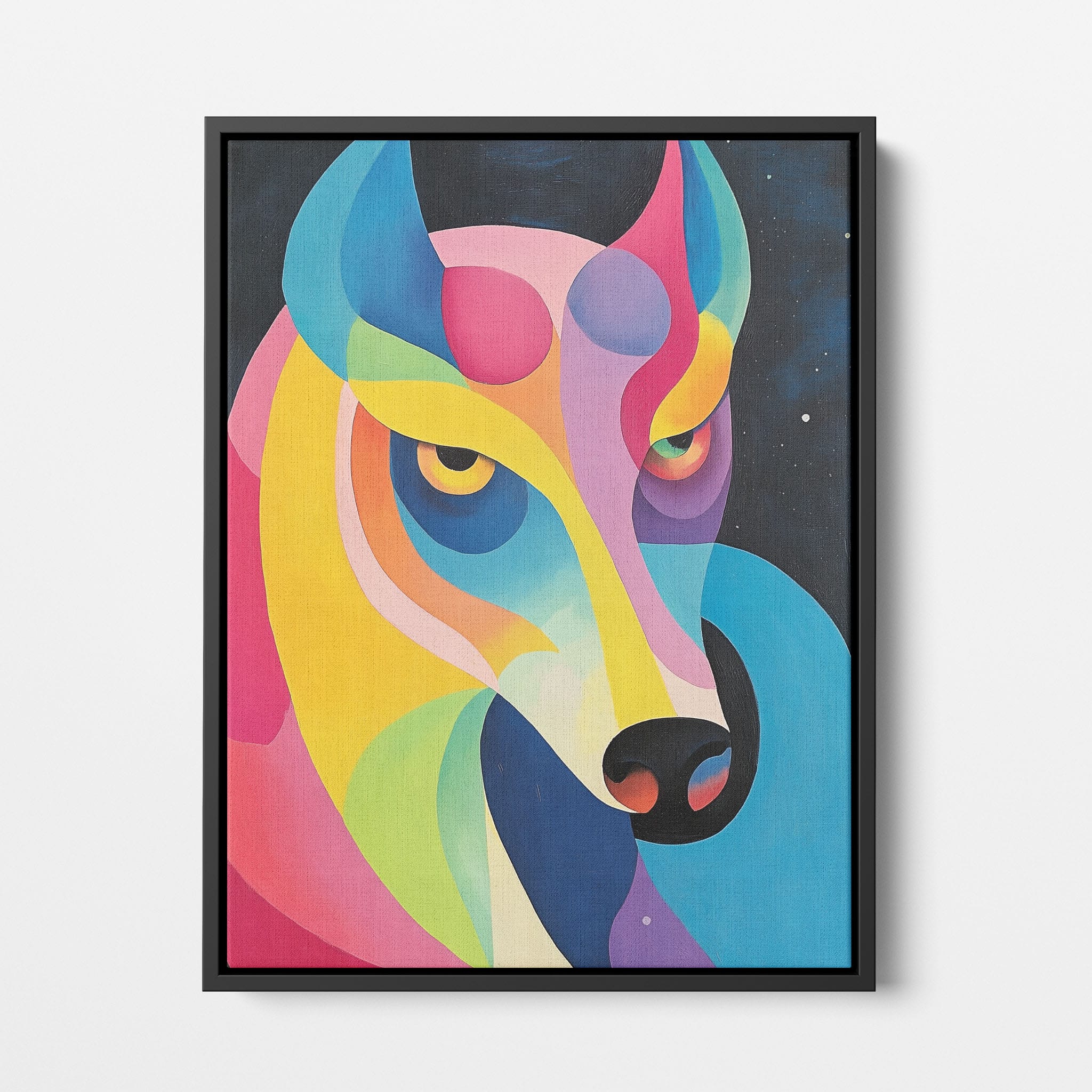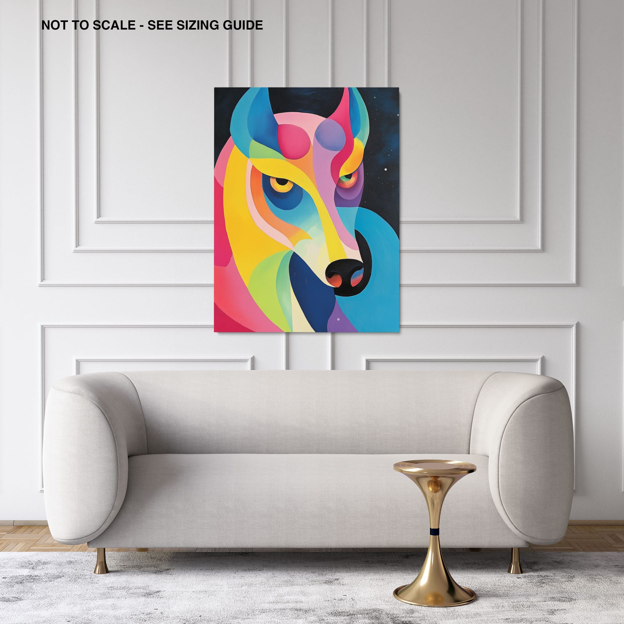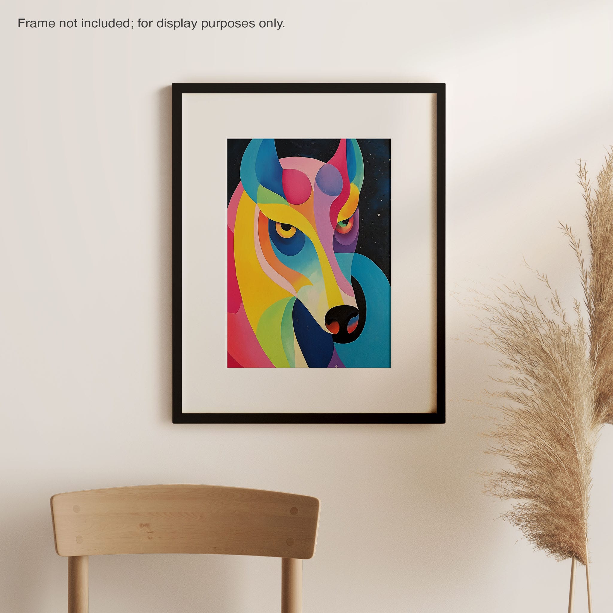 This painting features a vibrant, multi-colored depiction of a canine, rendered in a surreal and figurative style that draws the eye into a world of fantasy and emotion. The bold contrasts and flowing shapes create a modern touch, making it a striking piece for any contemporary art lover. The rich palette ranging from deep blues to bright yellows evokes a sense of mystery and whimsy. Perfect for those looking to add a splash of color and a unique narrative to their living spaces, this artwork is a must-have for enthusiasts of bold, modern designs with a fantastical twist.