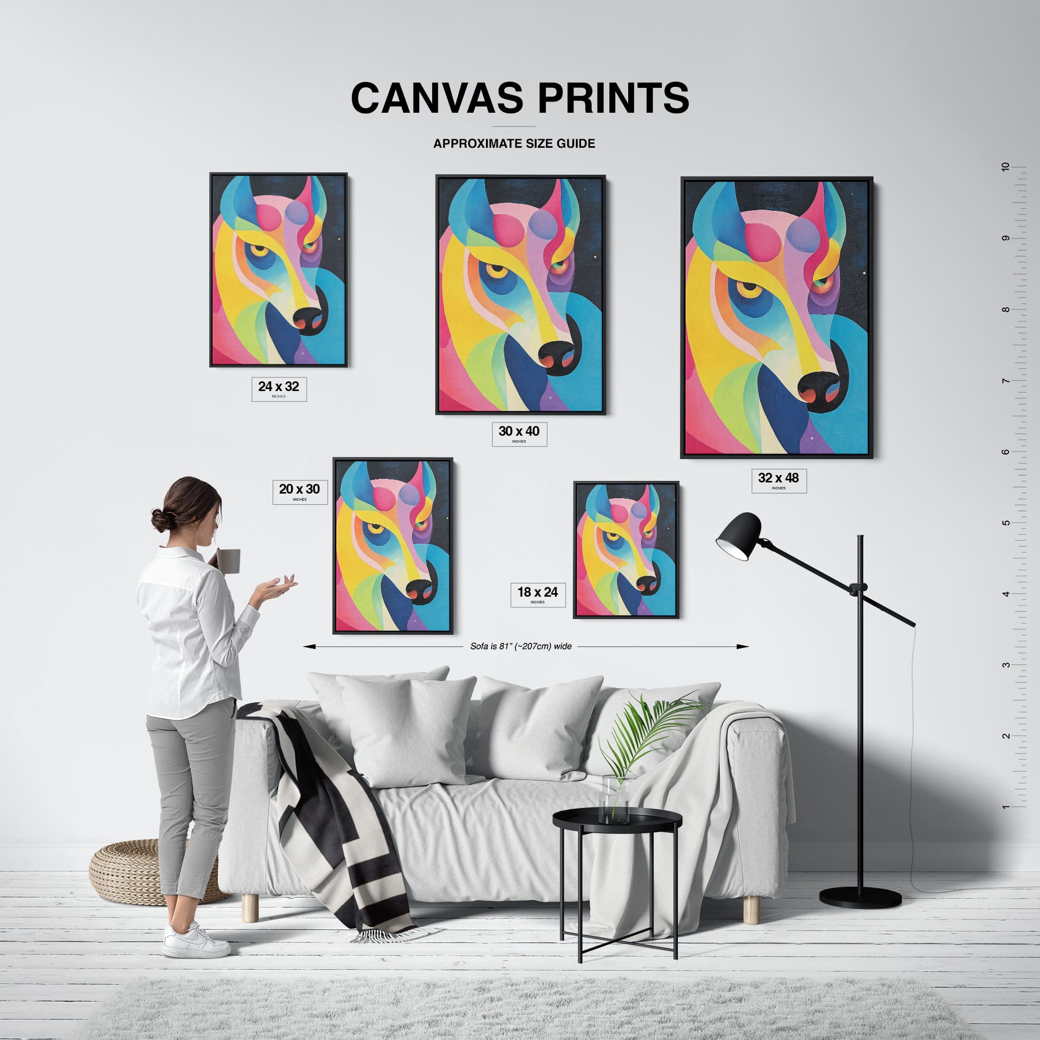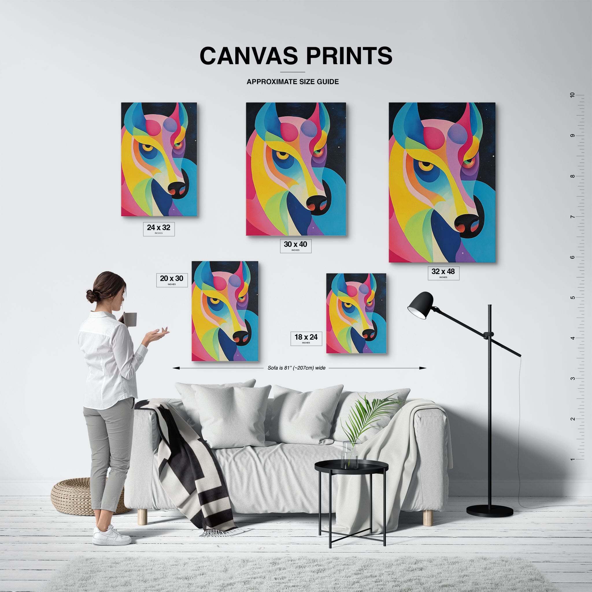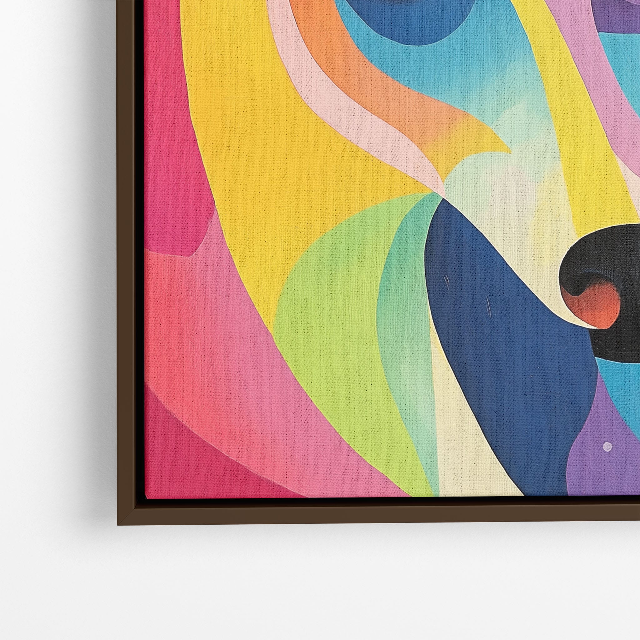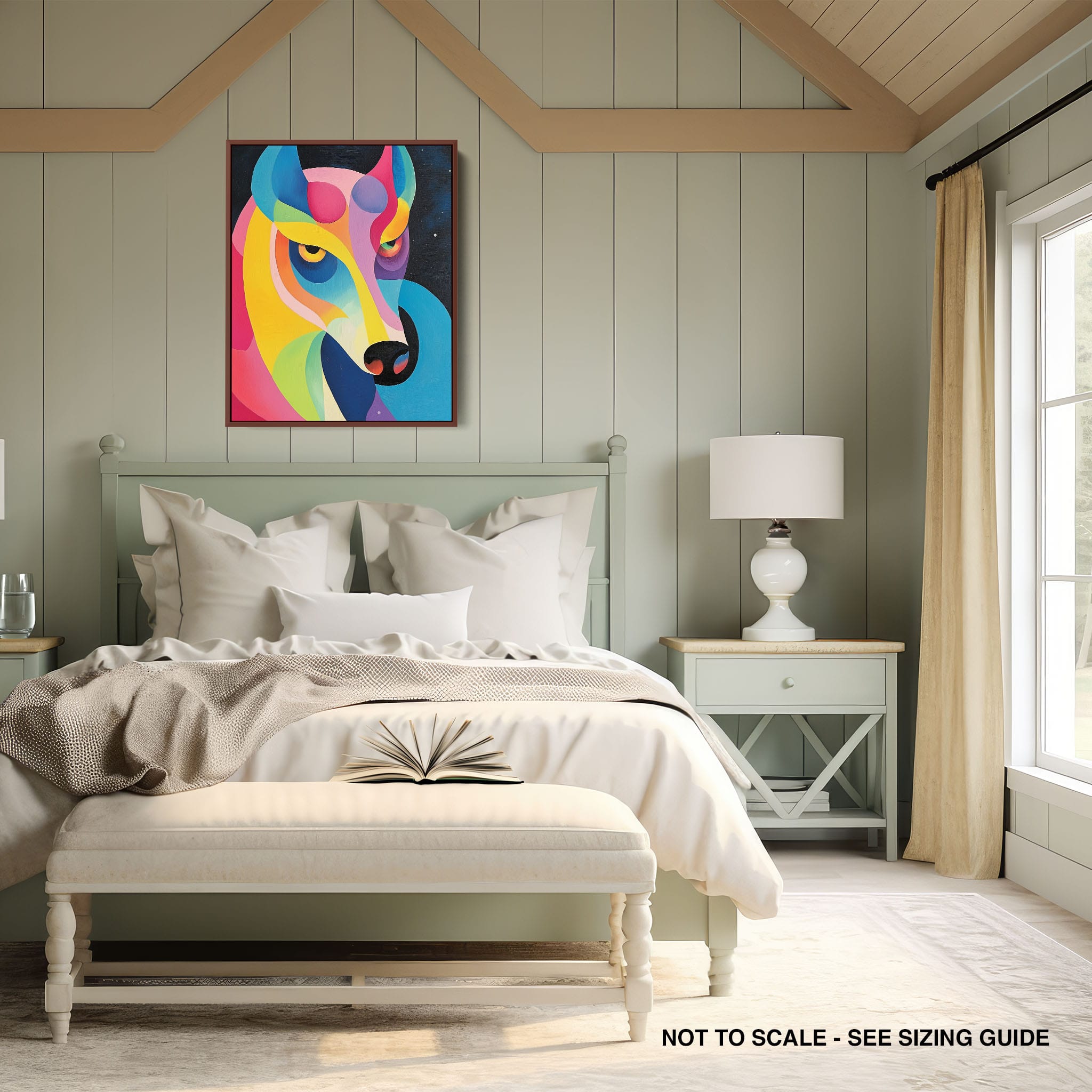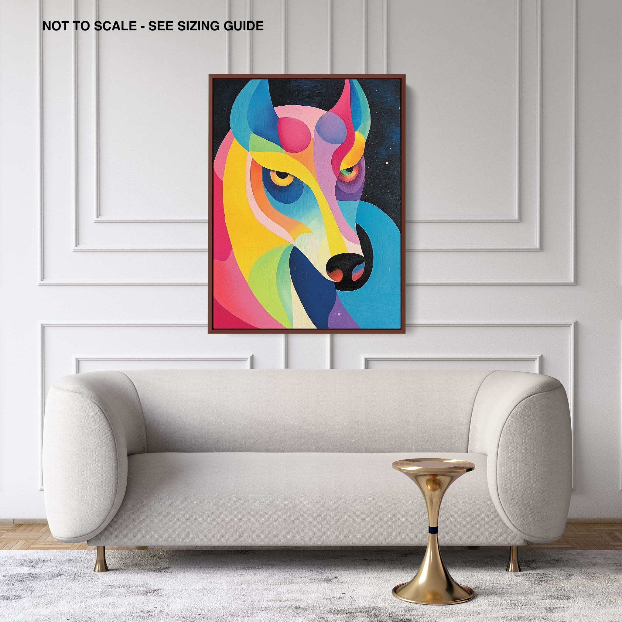 This painting features a vibrant, multi-colored depiction of a canine, rendered in a surreal and figurative style that draws the eye into a world of fantasy and emotion. The bold contrasts and flowing shapes create a modern touch, making it a striking piece for any contemporary art lover. The rich palette ranging from deep blues to bright yellows evokes a sense of mystery and whimsy. Perfect for those looking to add a splash of color and a unique narrative to their living spaces, this artwork is a must-have for enthusiasts of bold, modern designs with a fantastical twist.