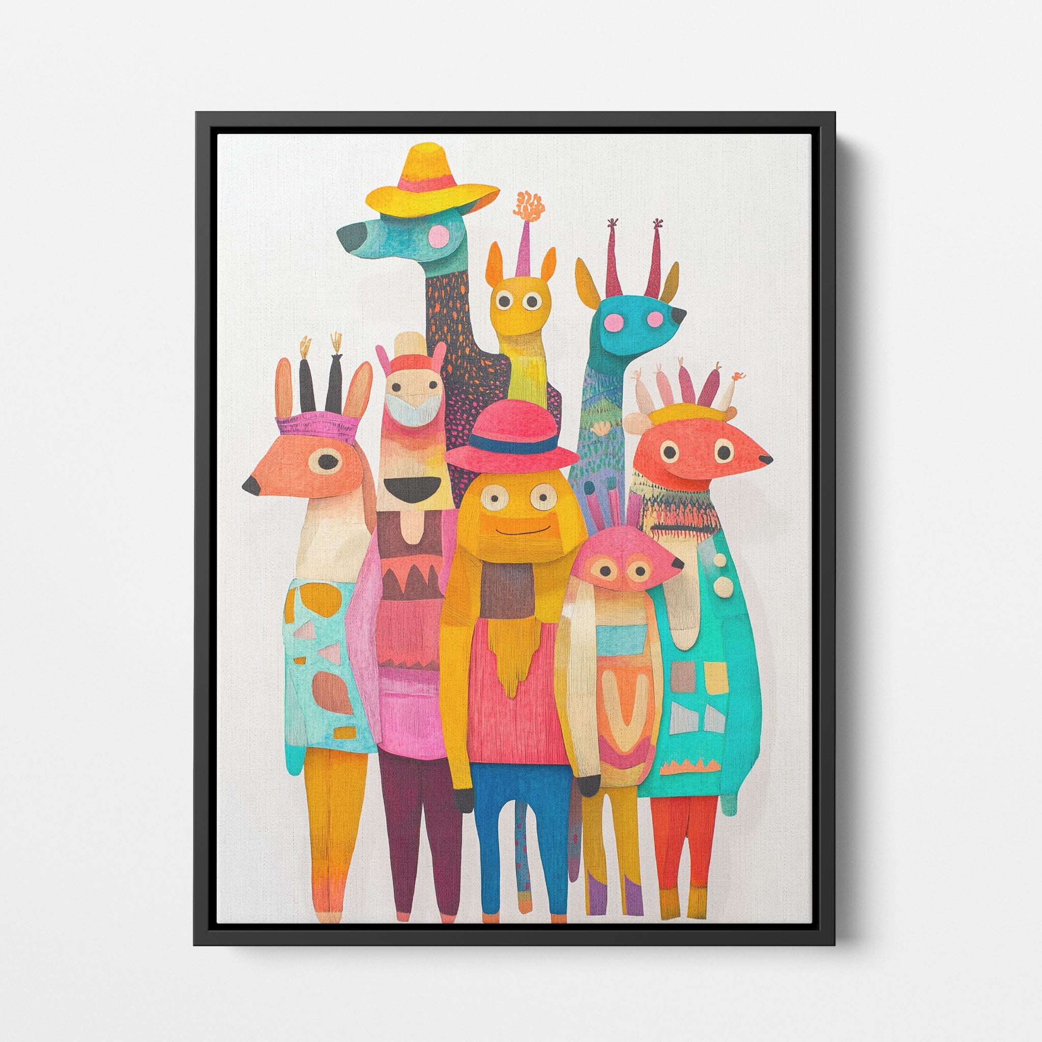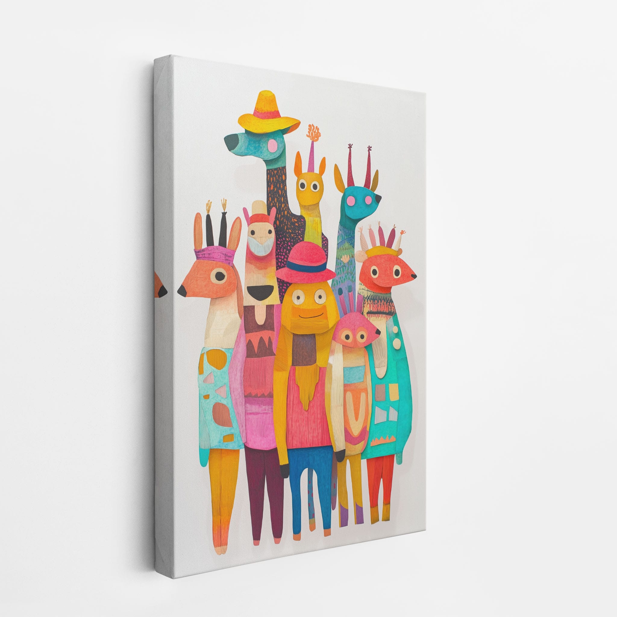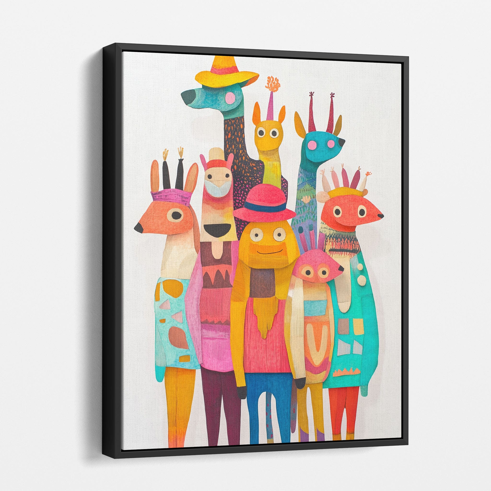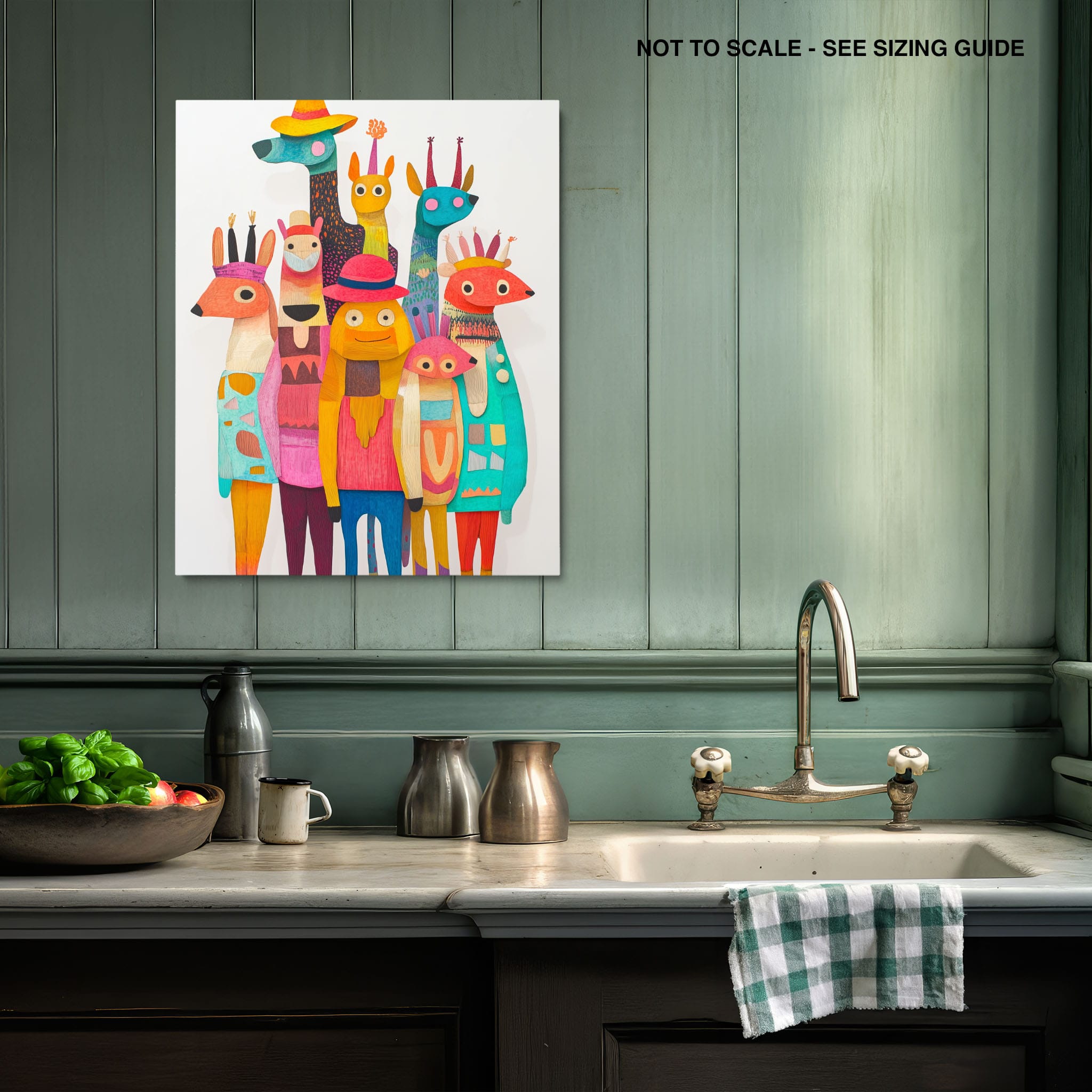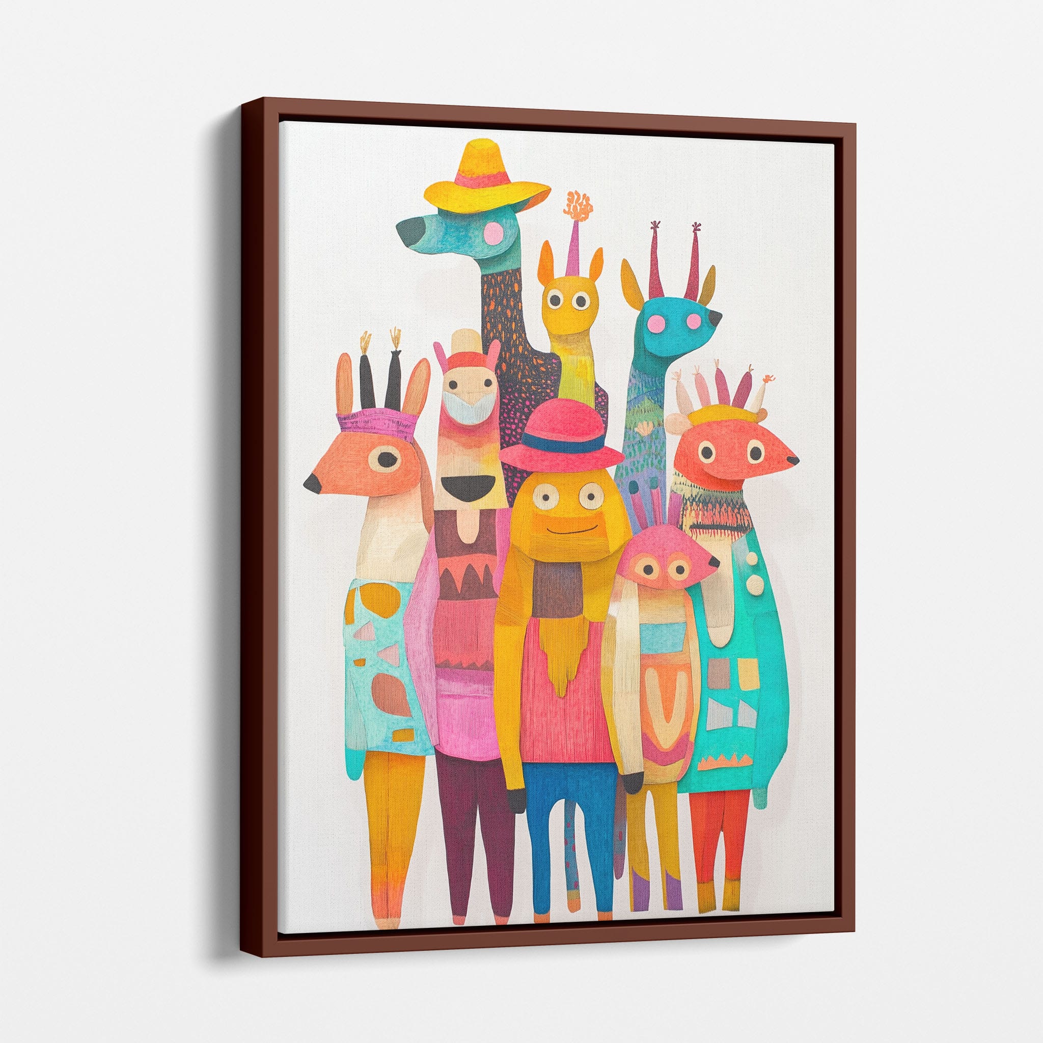 Dive into the vivacious world of Colorful Parade, a captivating digital illustration that brings to life a whimsical gathering of vibrant creatures. Each character, adorned with an array of bright hues and delightful textures, stands out with its unique charm. The striking use of color and folk art influences give this piece a lively and inviting atmosphere, perfect for adding a splash of joy to any space. Ideal for art enthusiasts seeking contemporary artwork with a playful twist, it's a reminder of the simple joys and exuberance found in artistic expression. This contemporary folk masterpiece is a must-have for those looking to infuse their walls with energy and imagination.