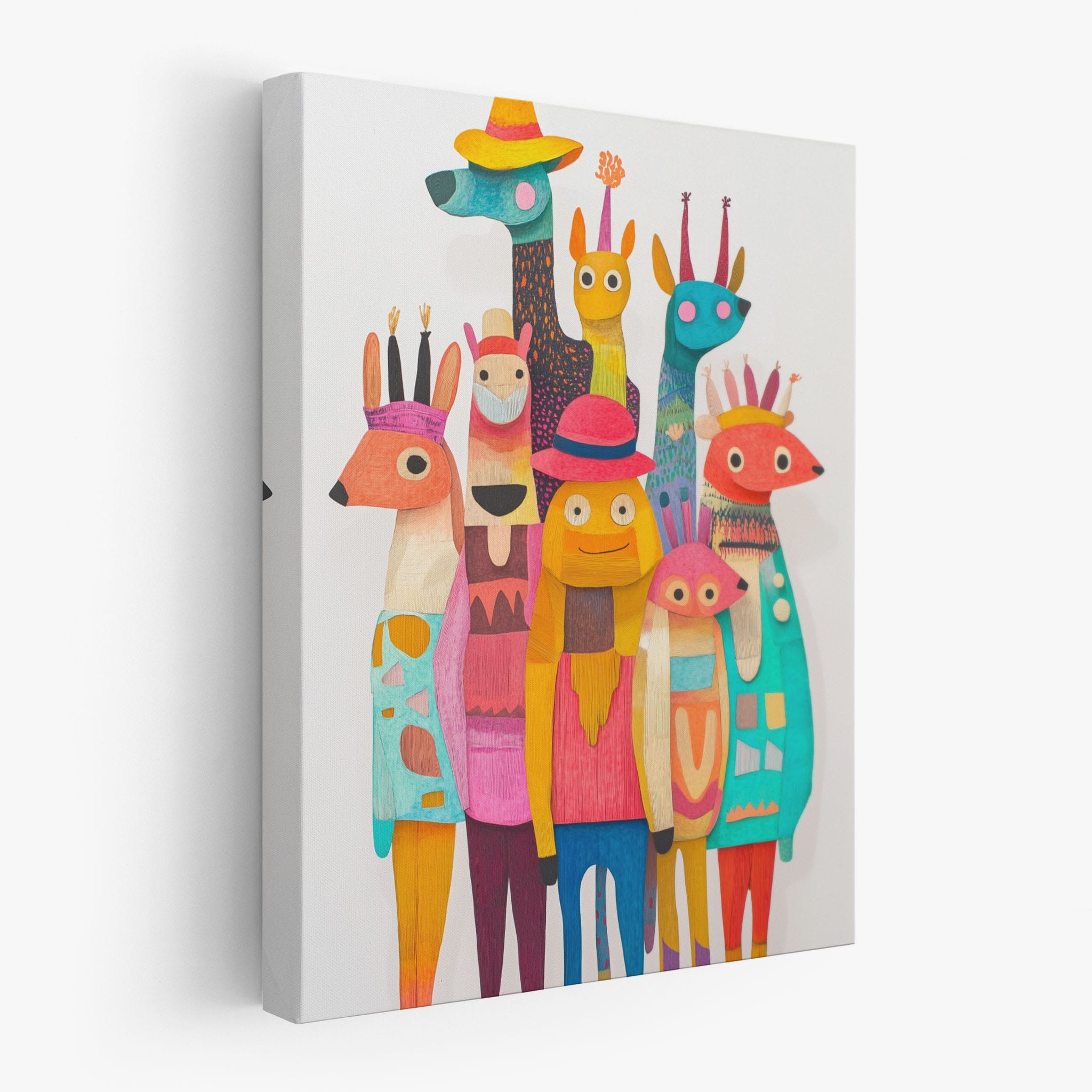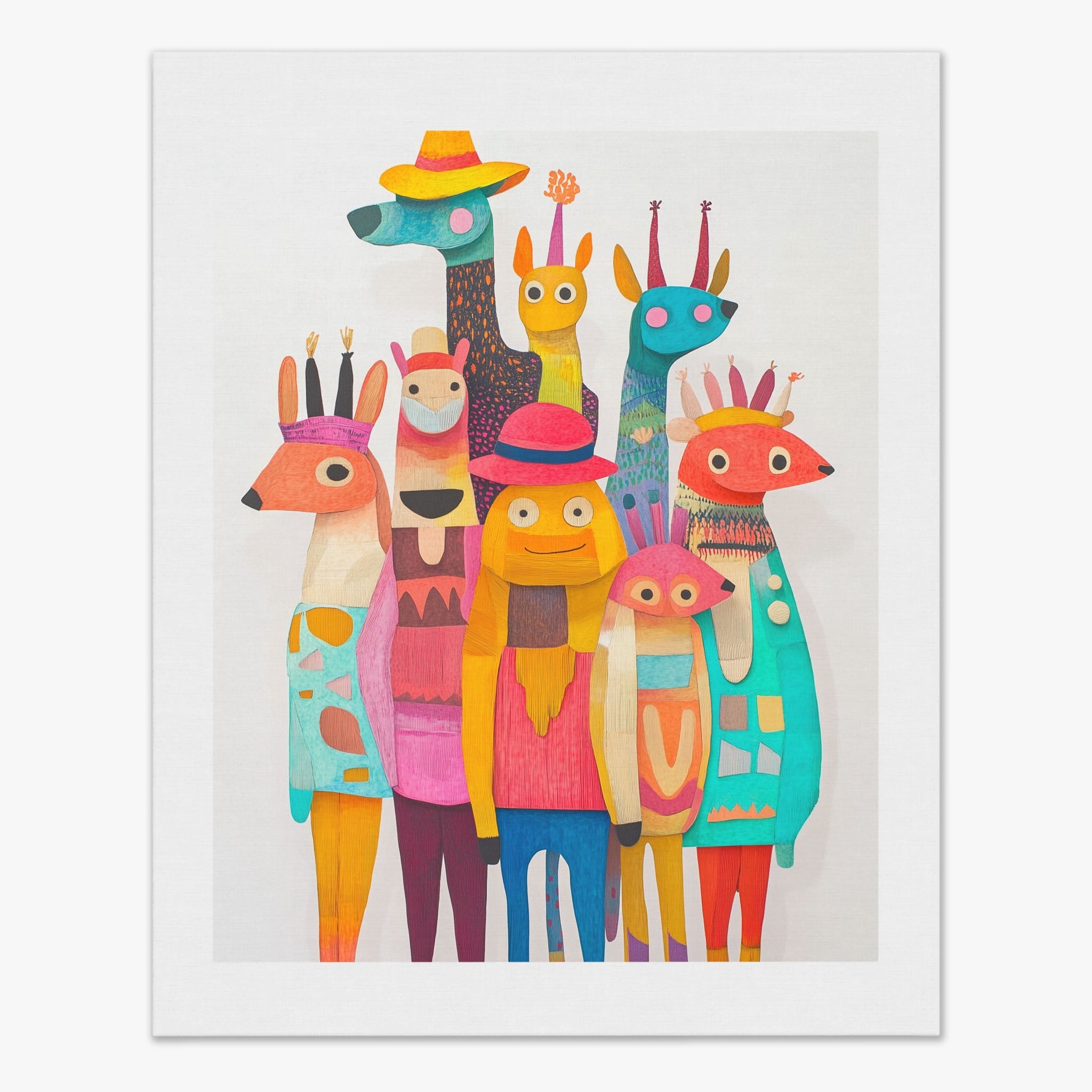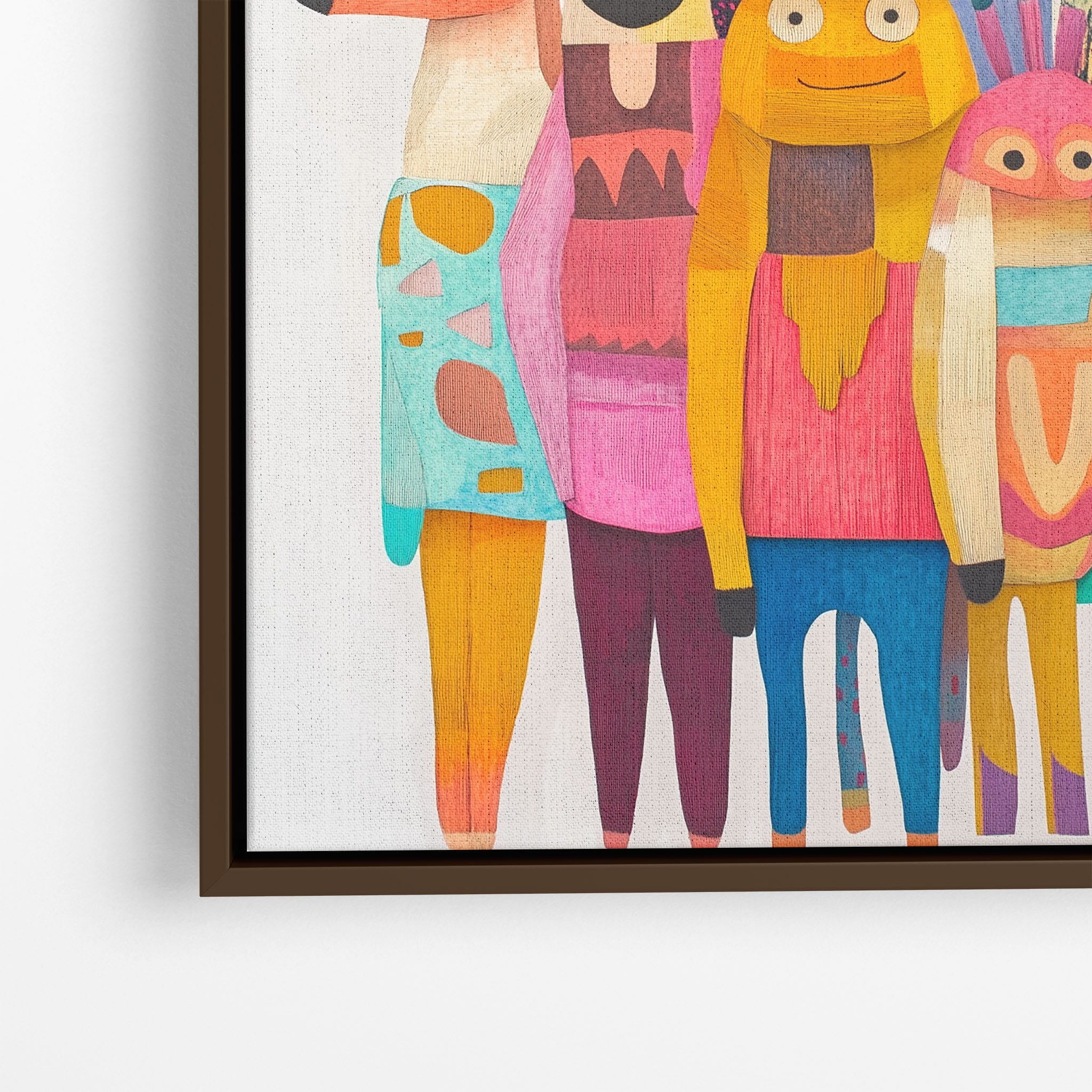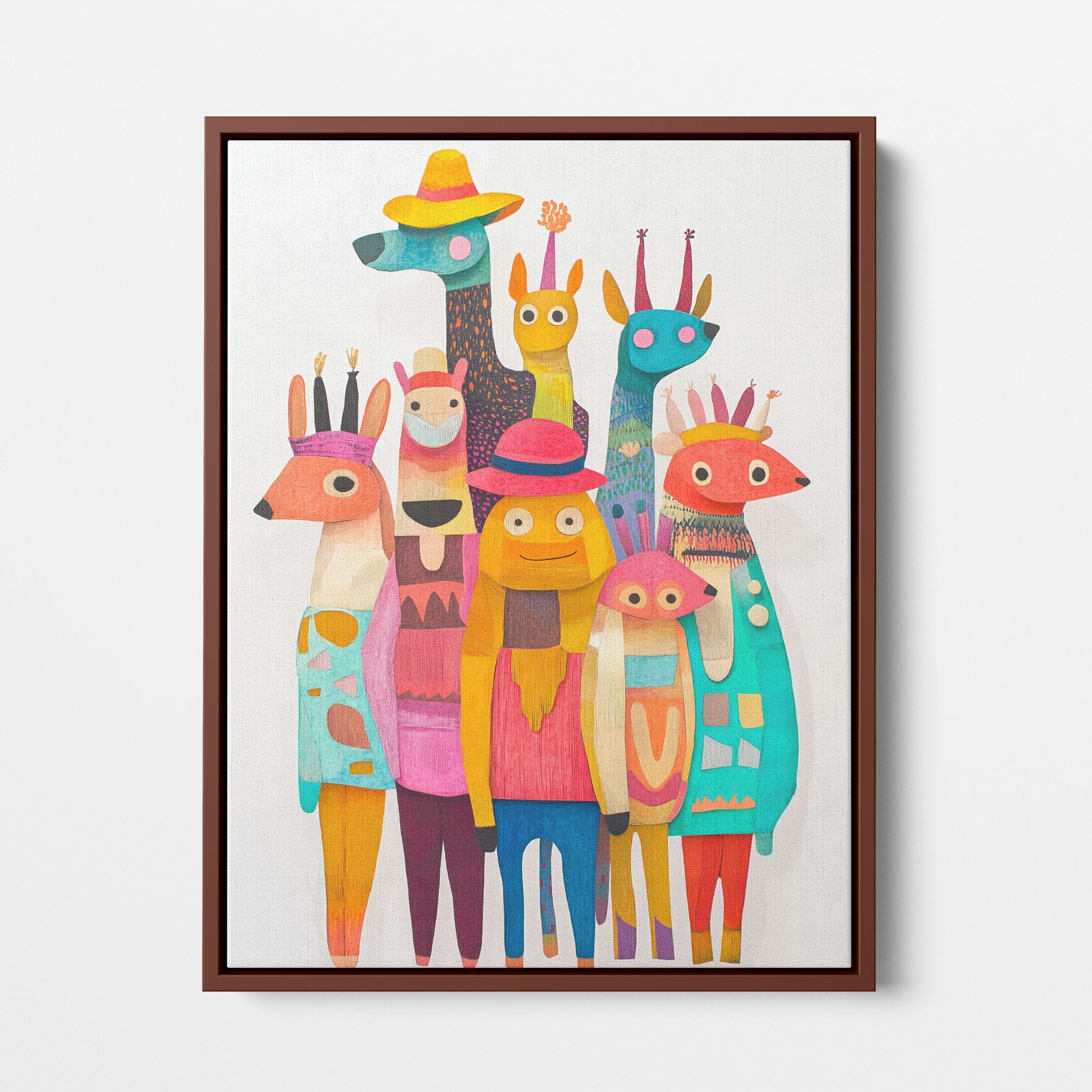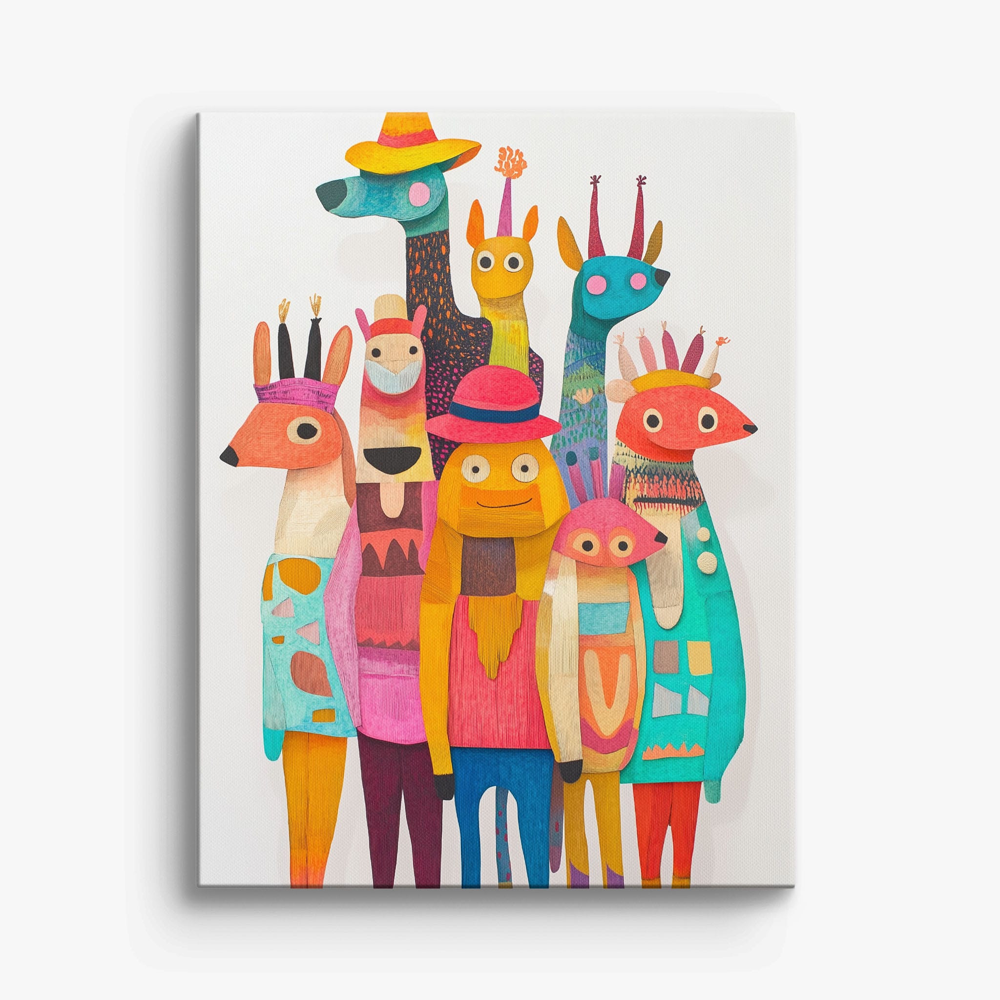 Dive into the vivacious world of Colorful Parade, a captivating digital illustration that brings to life a whimsical gathering of vibrant creatures. Each character, adorned with an array of bright hues and delightful textures, stands out with its unique charm. The striking use of color and folk art influences give this piece a lively and inviting atmosphere, perfect for adding a splash of joy to any space. Ideal for art enthusiasts seeking contemporary artwork with a playful twist, it's a reminder of the simple joys and exuberance found in artistic expression. This contemporary folk masterpiece is a must-have for those looking to infuse their walls with energy and imagination.