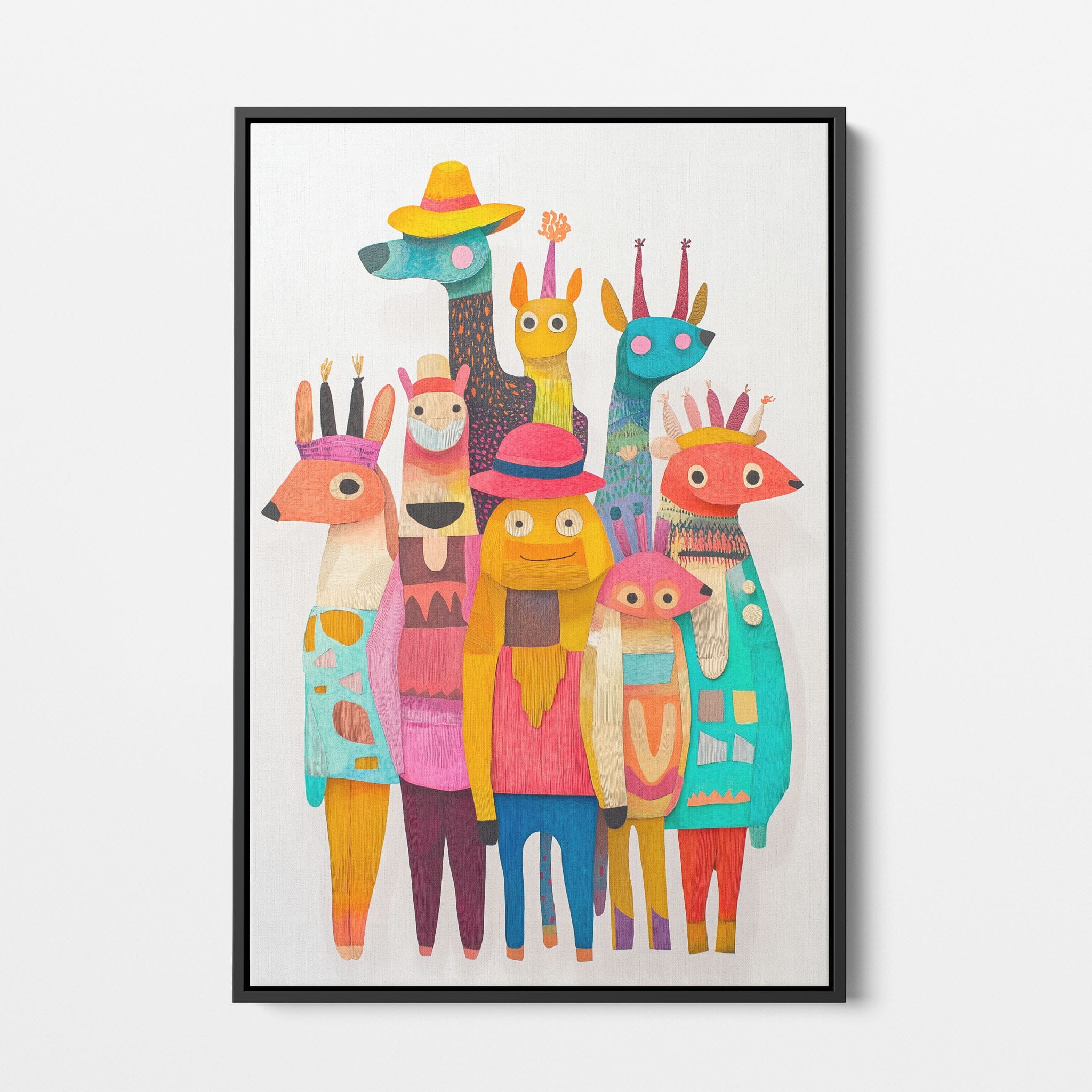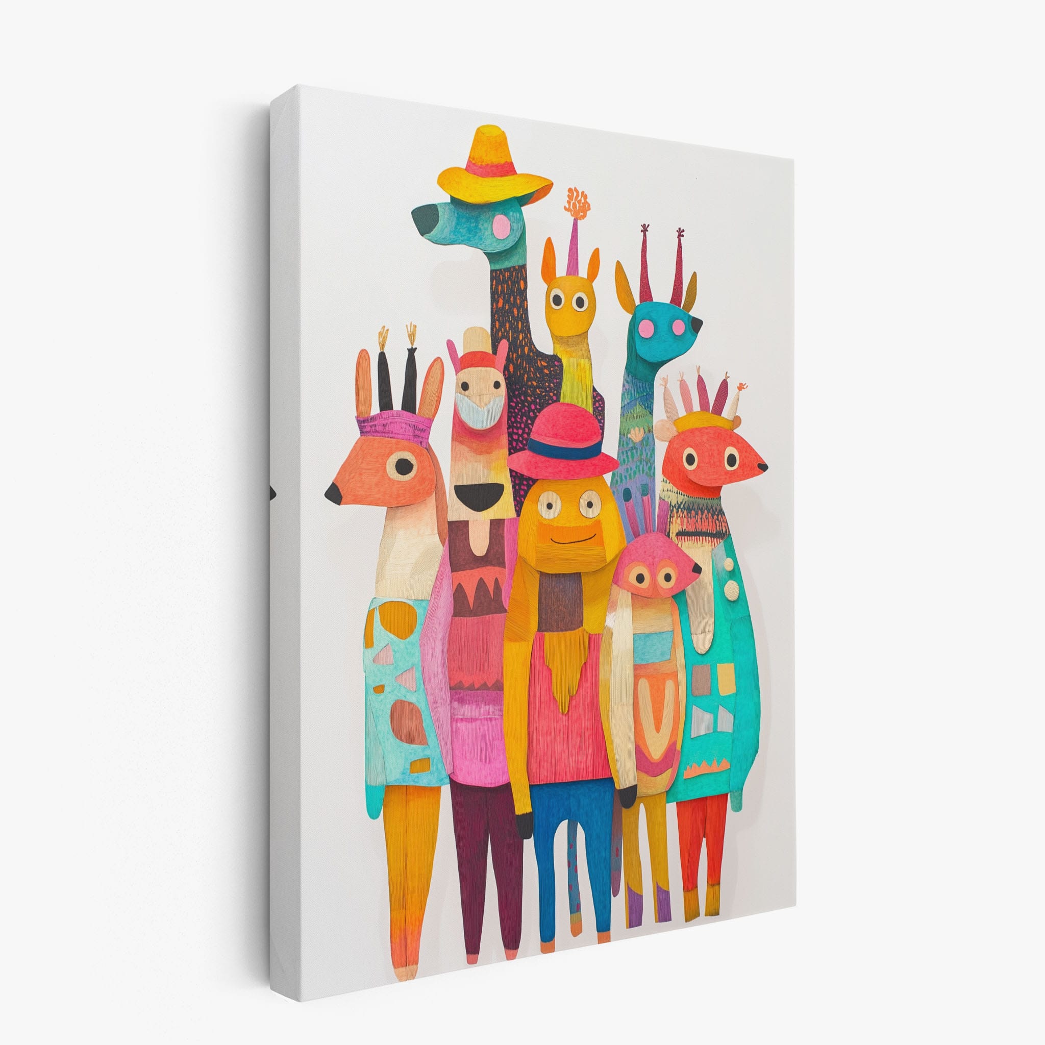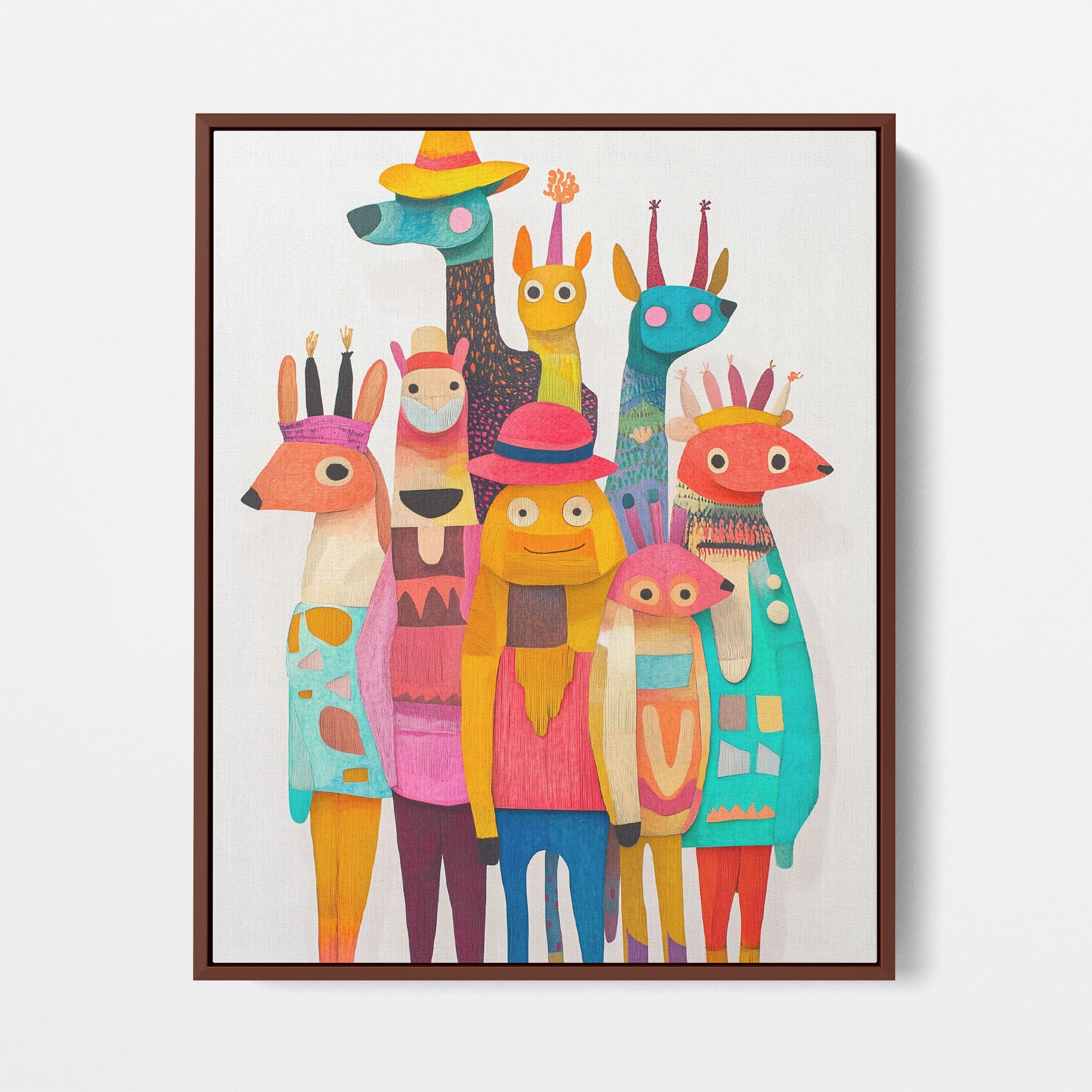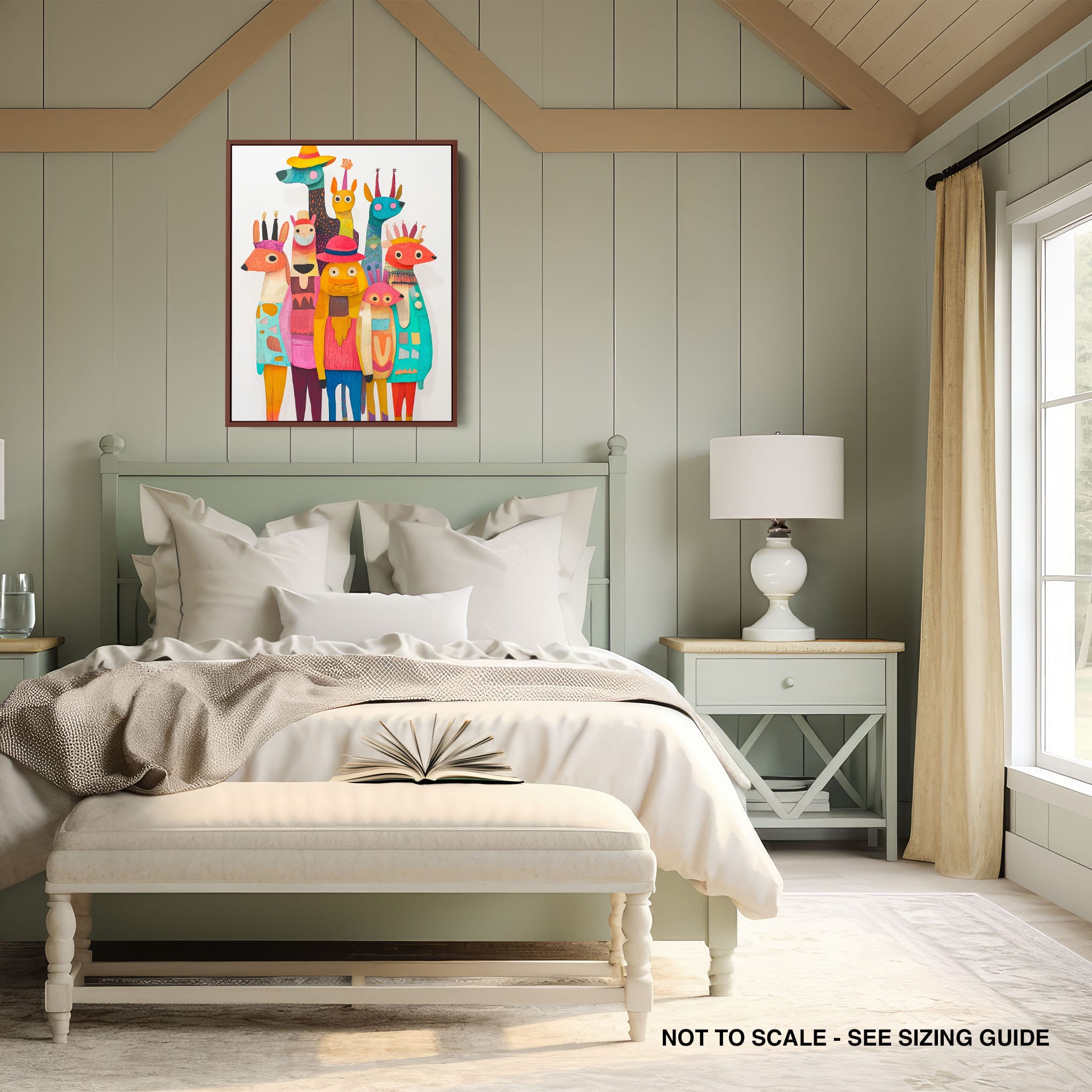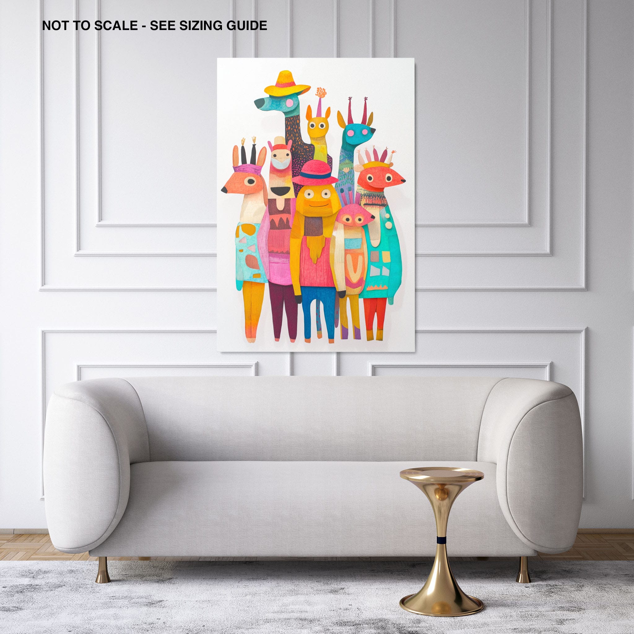 Dive into the vivacious world of Colorful Parade, a captivating digital illustration that brings to life a whimsical gathering of vibrant creatures. Each character, adorned with an array of bright hues and delightful textures, stands out with its unique charm. The striking use of color and folk art influences give this piece a lively and inviting atmosphere, perfect for adding a splash of joy to any space. Ideal for art enthusiasts seeking contemporary artwork with a playful twist, it's a reminder of the simple joys and exuberance found in artistic expression. This contemporary folk masterpiece is a must-have for those looking to infuse their walls with energy and imagination.