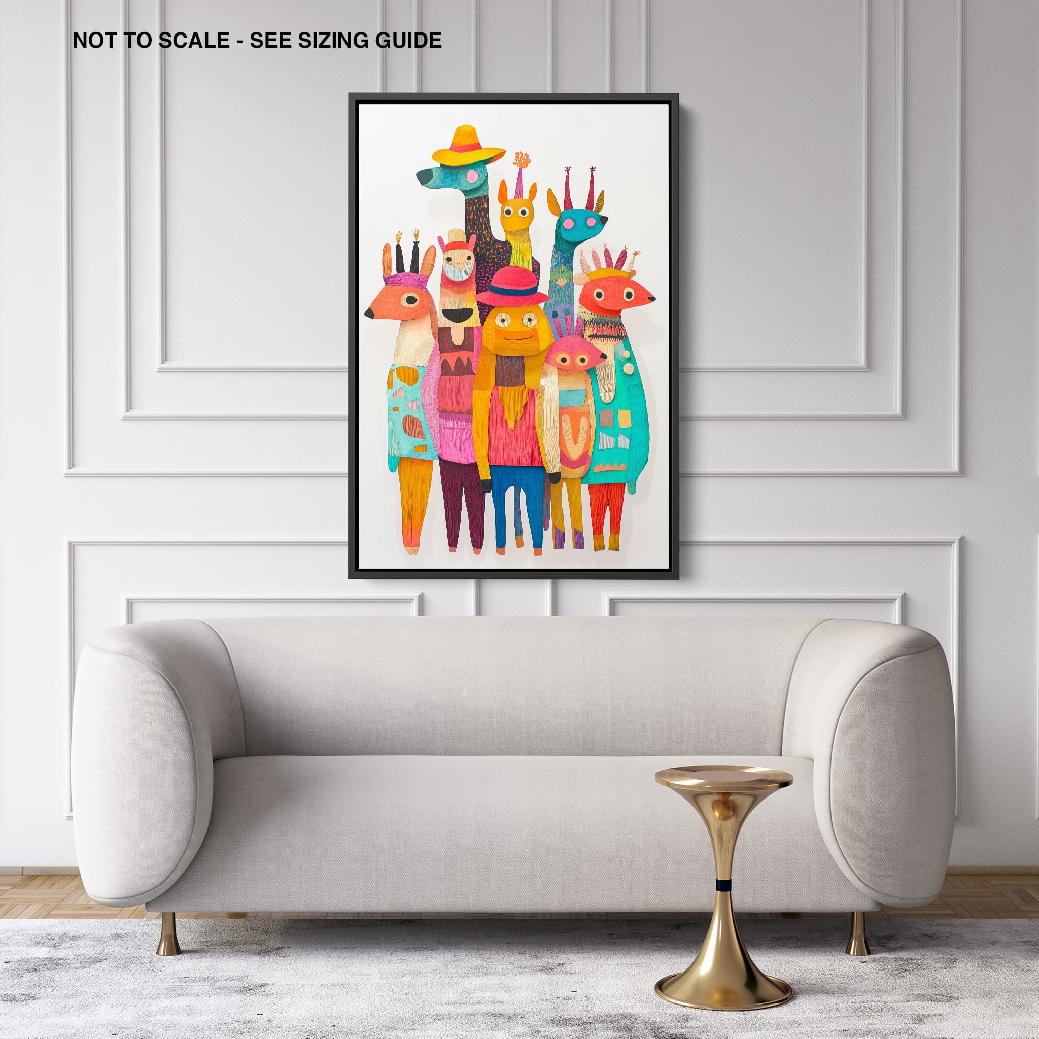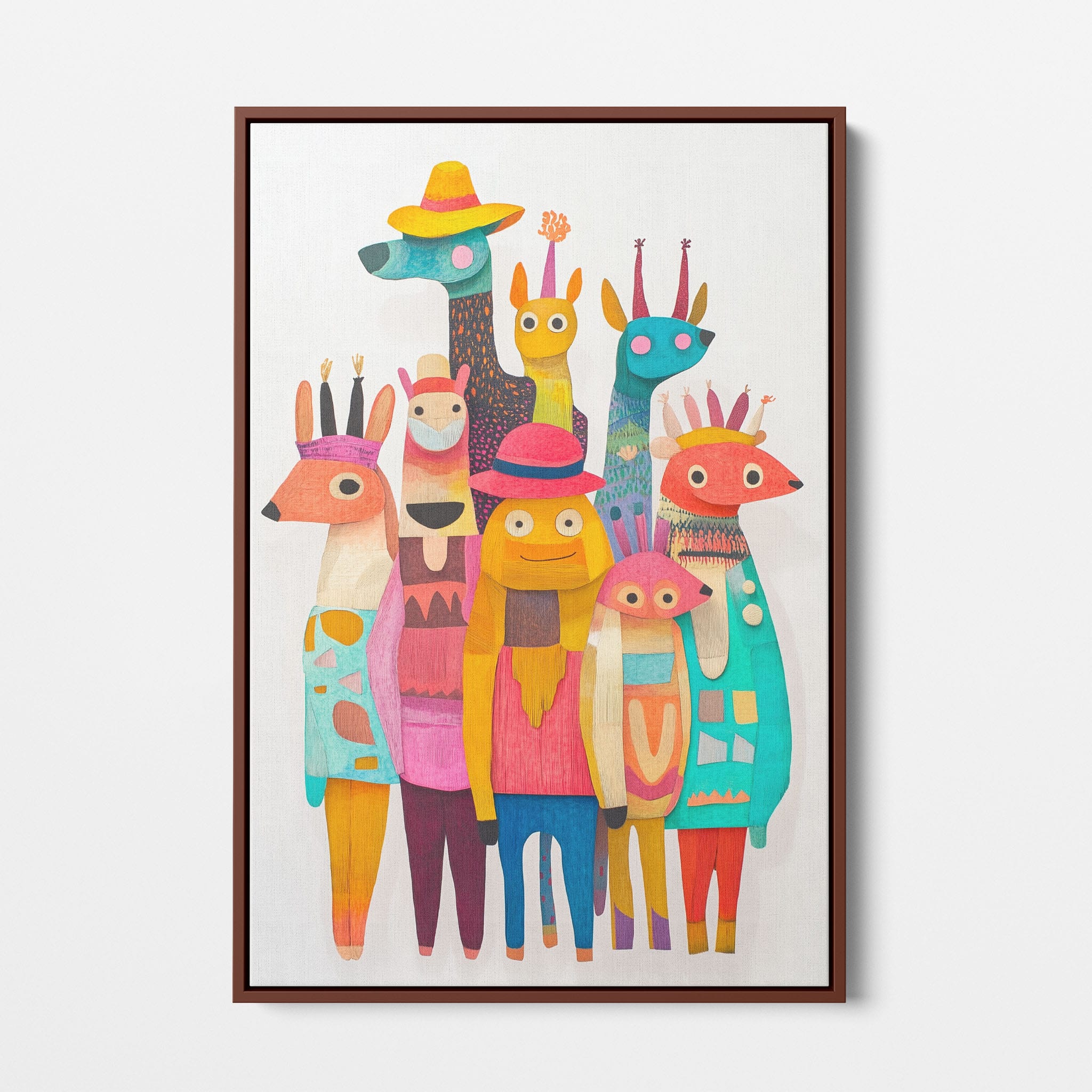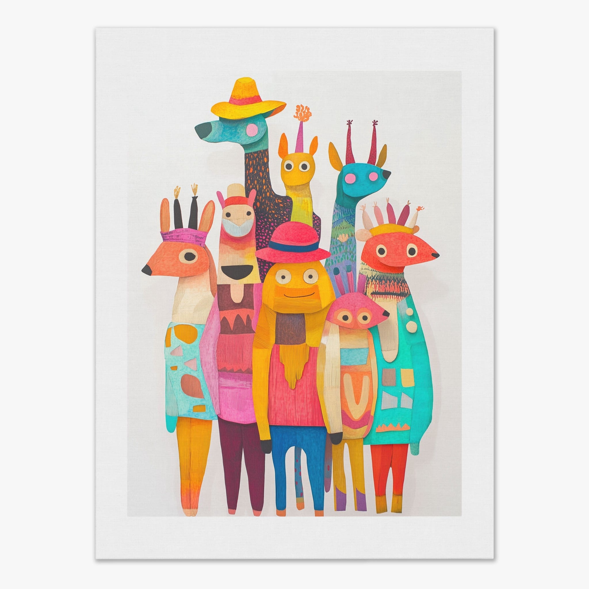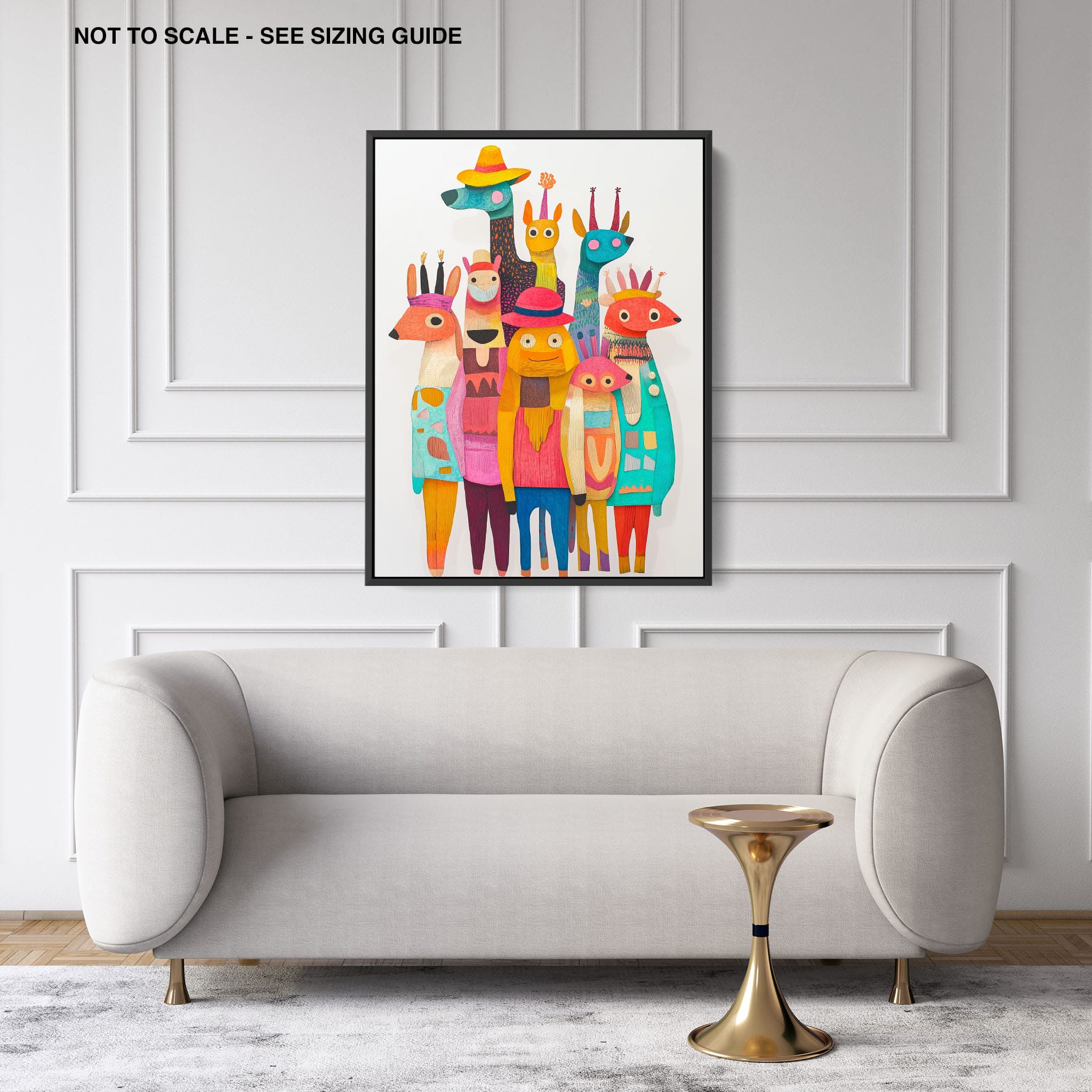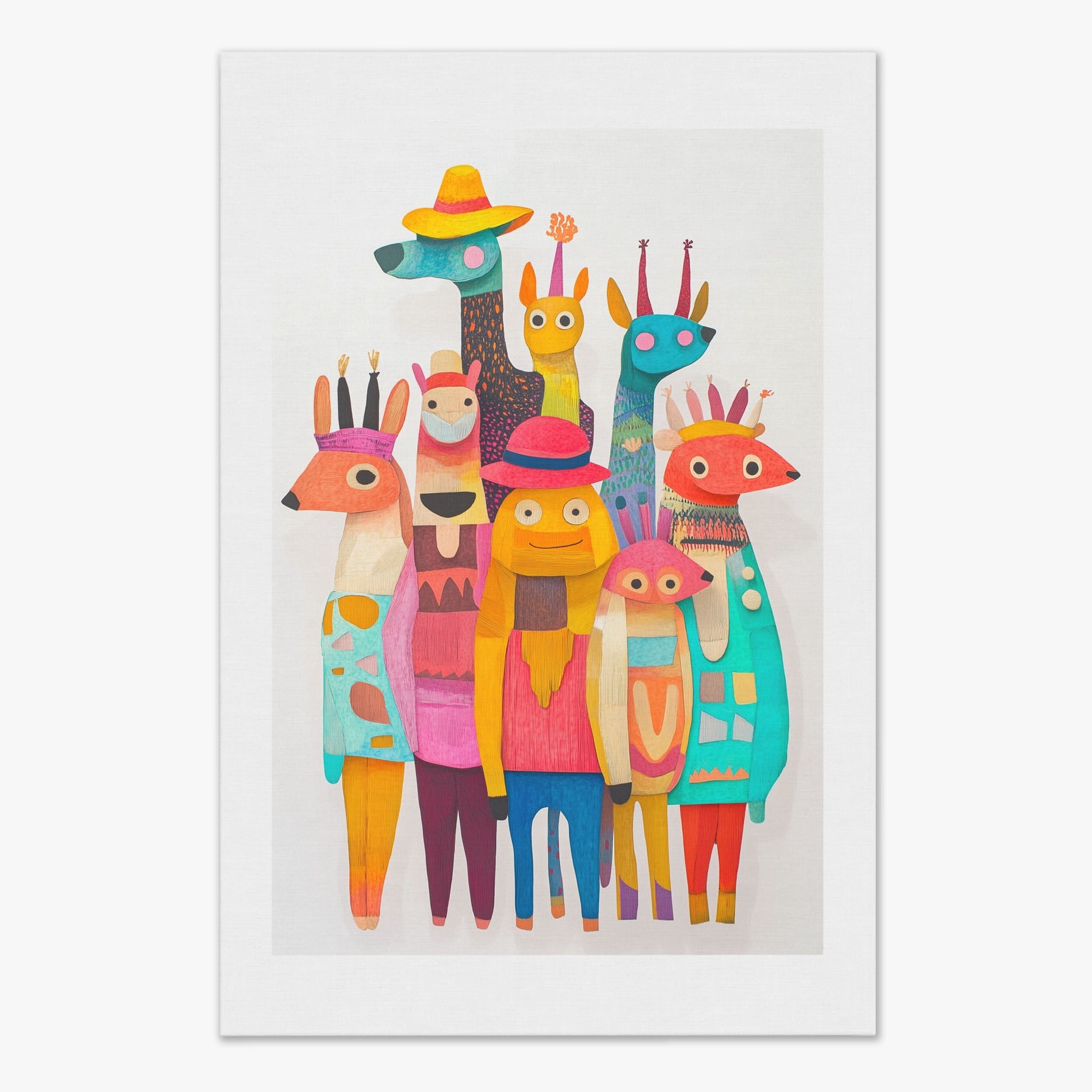 Dive into the vivacious world of Colorful Parade, a captivating digital illustration that brings to life a whimsical gathering of vibrant creatures. Each character, adorned with an array of bright hues and delightful textures, stands out with its unique charm. The striking use of color and folk art influences give this piece a lively and inviting atmosphere, perfect for adding a splash of joy to any space. Ideal for art enthusiasts seeking contemporary artwork with a playful twist, it's a reminder of the simple joys and exuberance found in artistic expression. This contemporary folk masterpiece is a must-have for those looking to infuse their walls with energy and imagination.