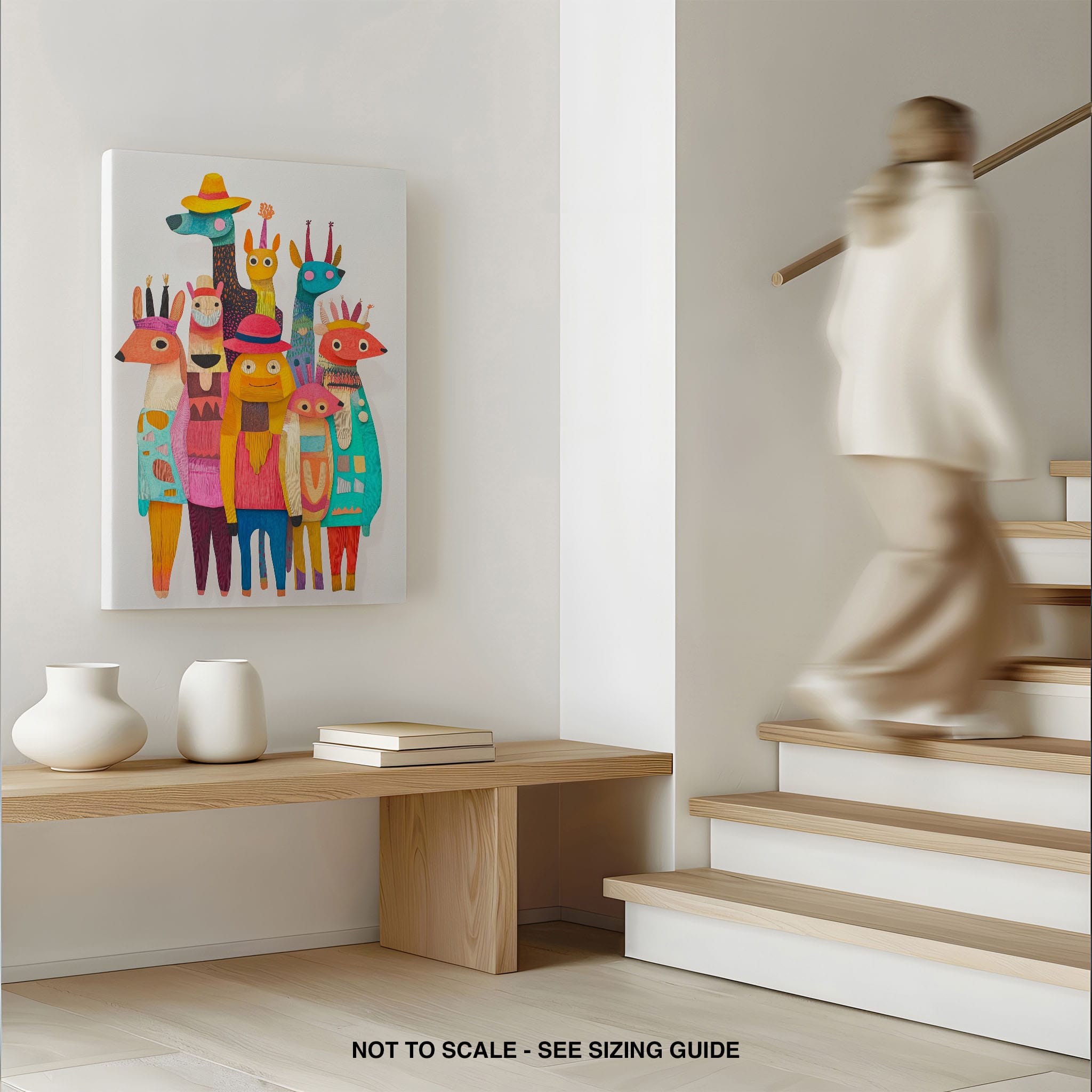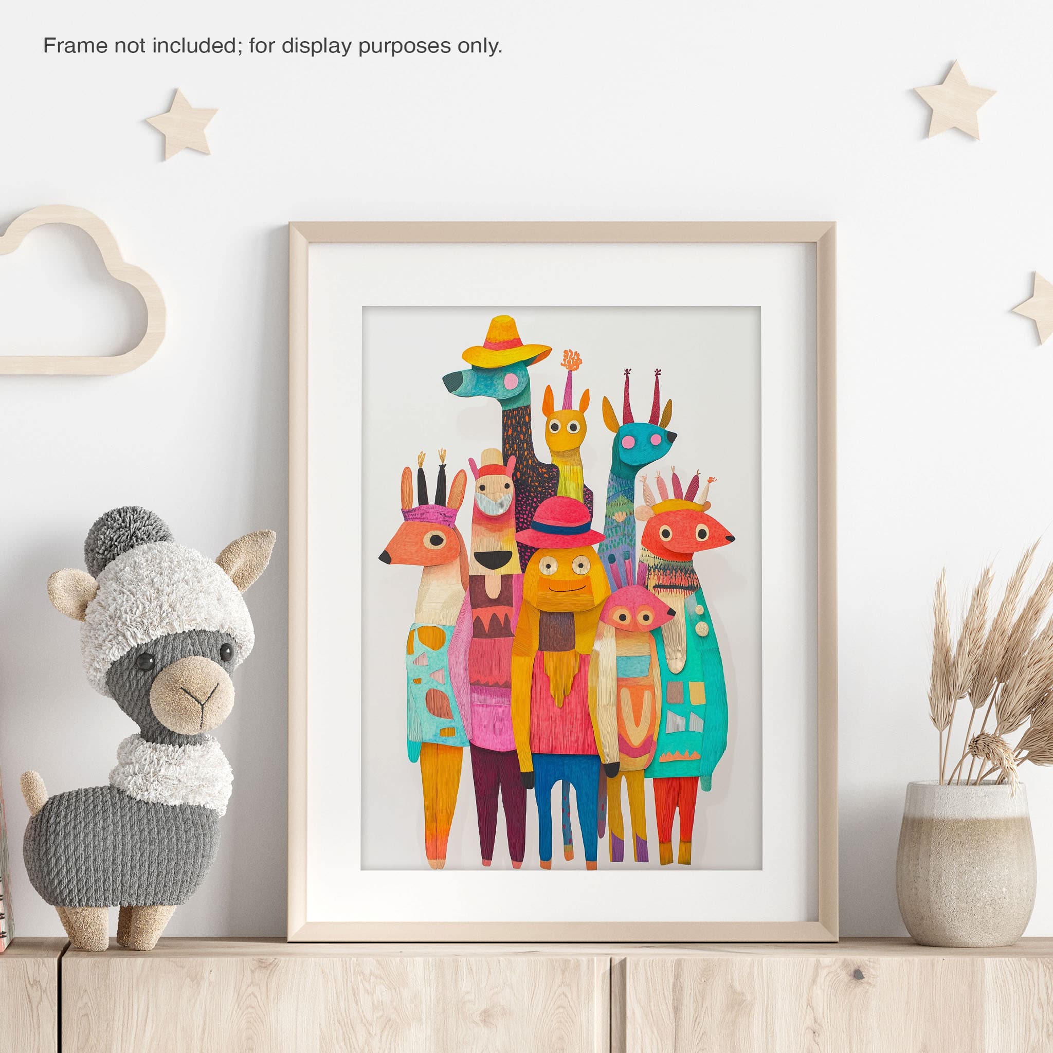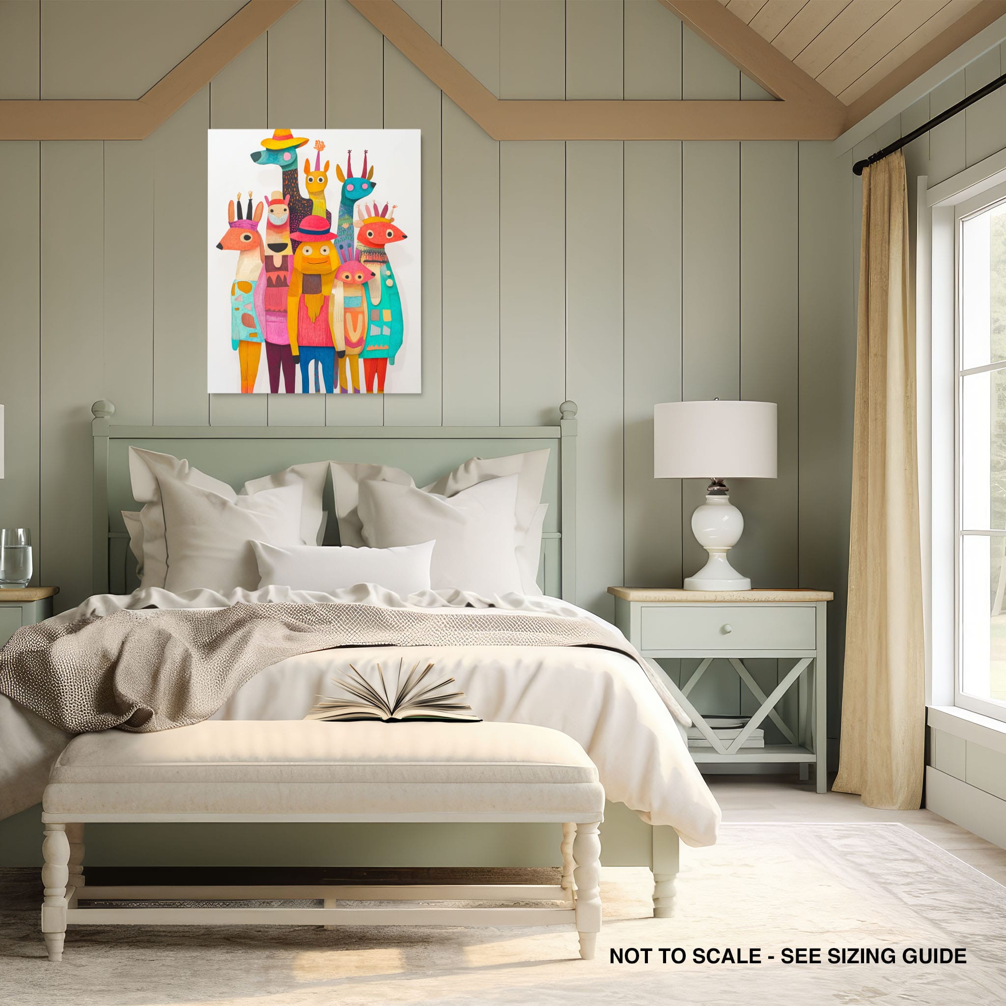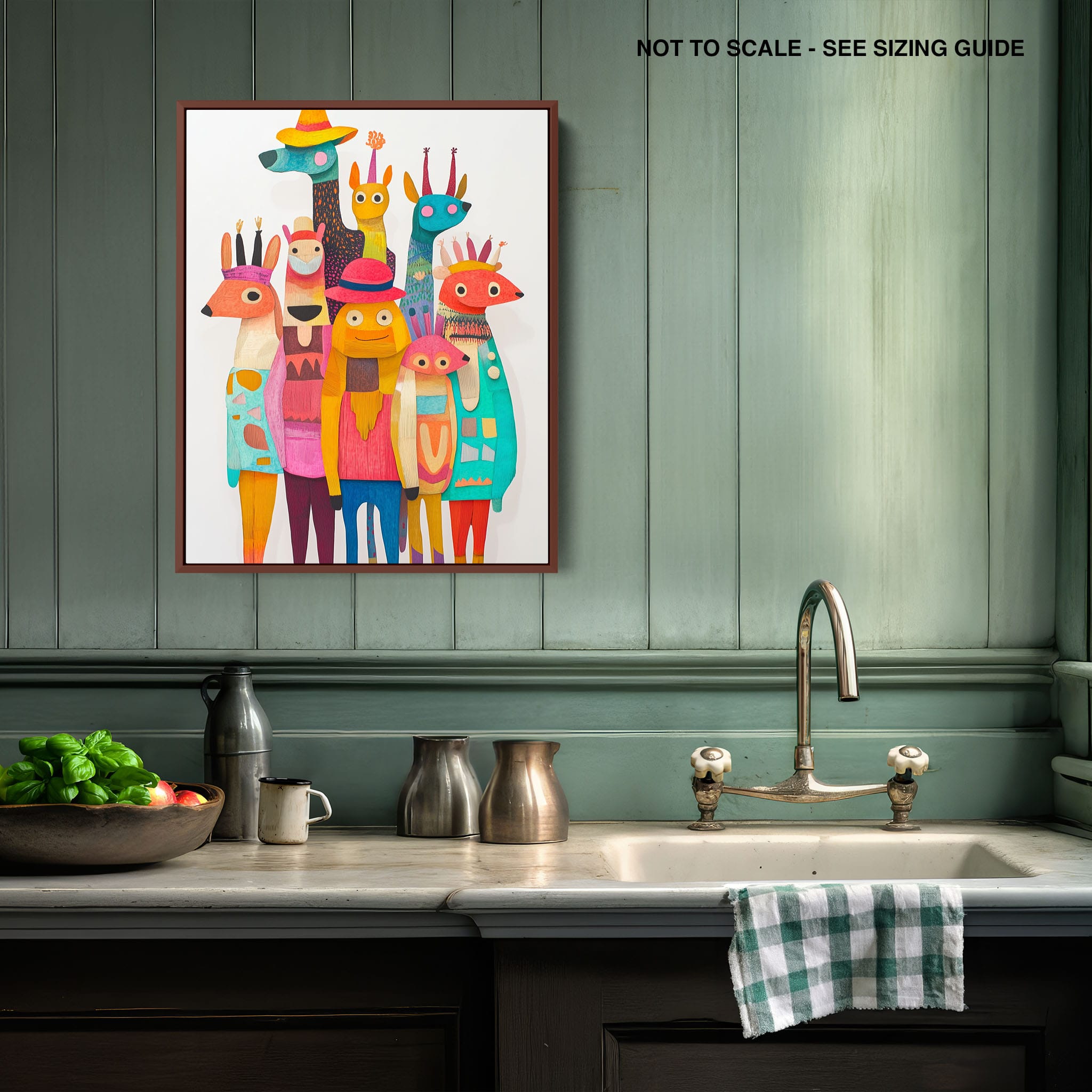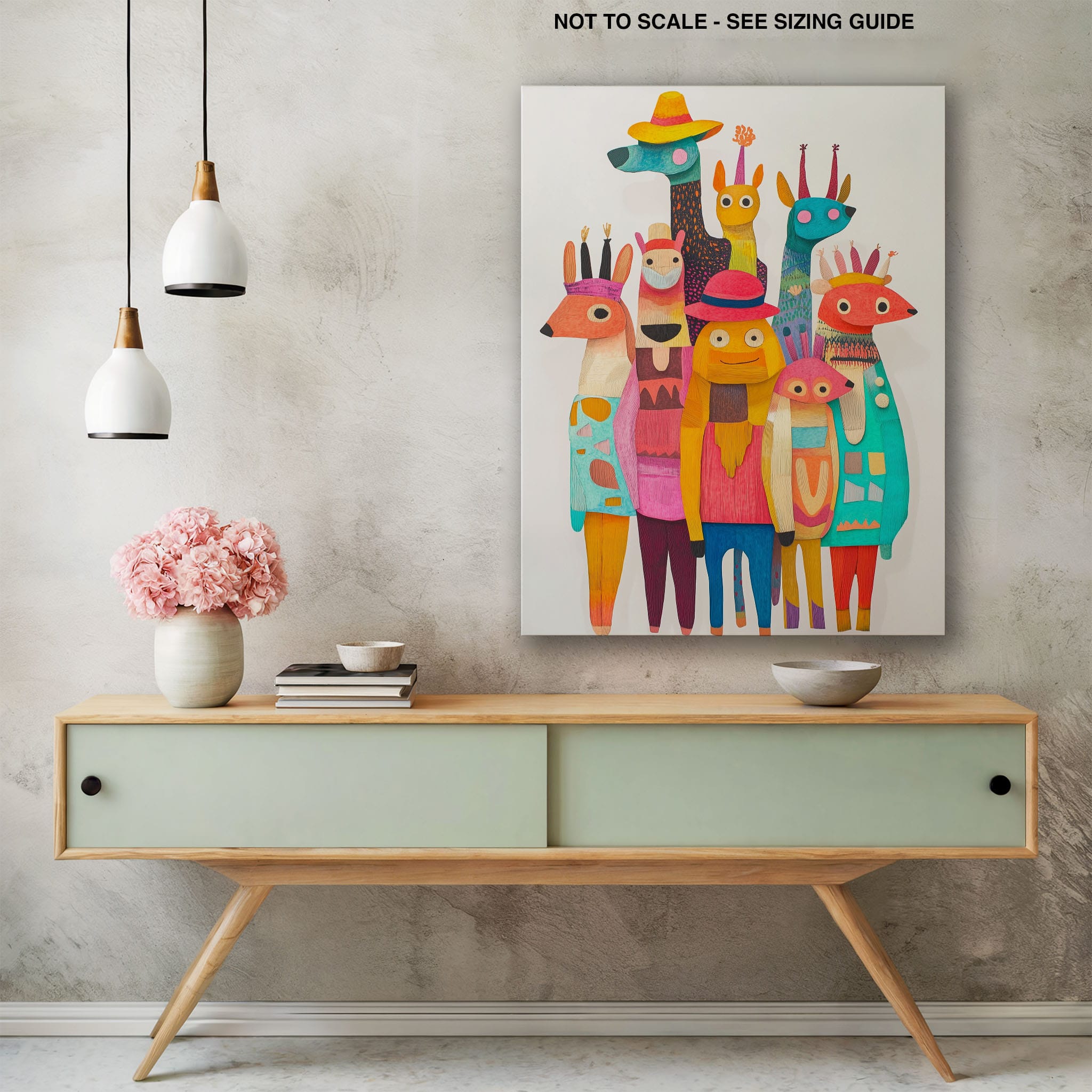 Dive into the vivacious world of Colorful Parade, a captivating digital illustration that brings to life a whimsical gathering of vibrant creatures. Each character, adorned with an array of bright hues and delightful textures, stands out with its unique charm. The striking use of color and folk art influences give this piece a lively and inviting atmosphere, perfect for adding a splash of joy to any space. Ideal for art enthusiasts seeking contemporary artwork with a playful twist, it's a reminder of the simple joys and exuberance found in artistic expression. This contemporary folk masterpiece is a must-have for those looking to infuse their walls with energy and imagination.