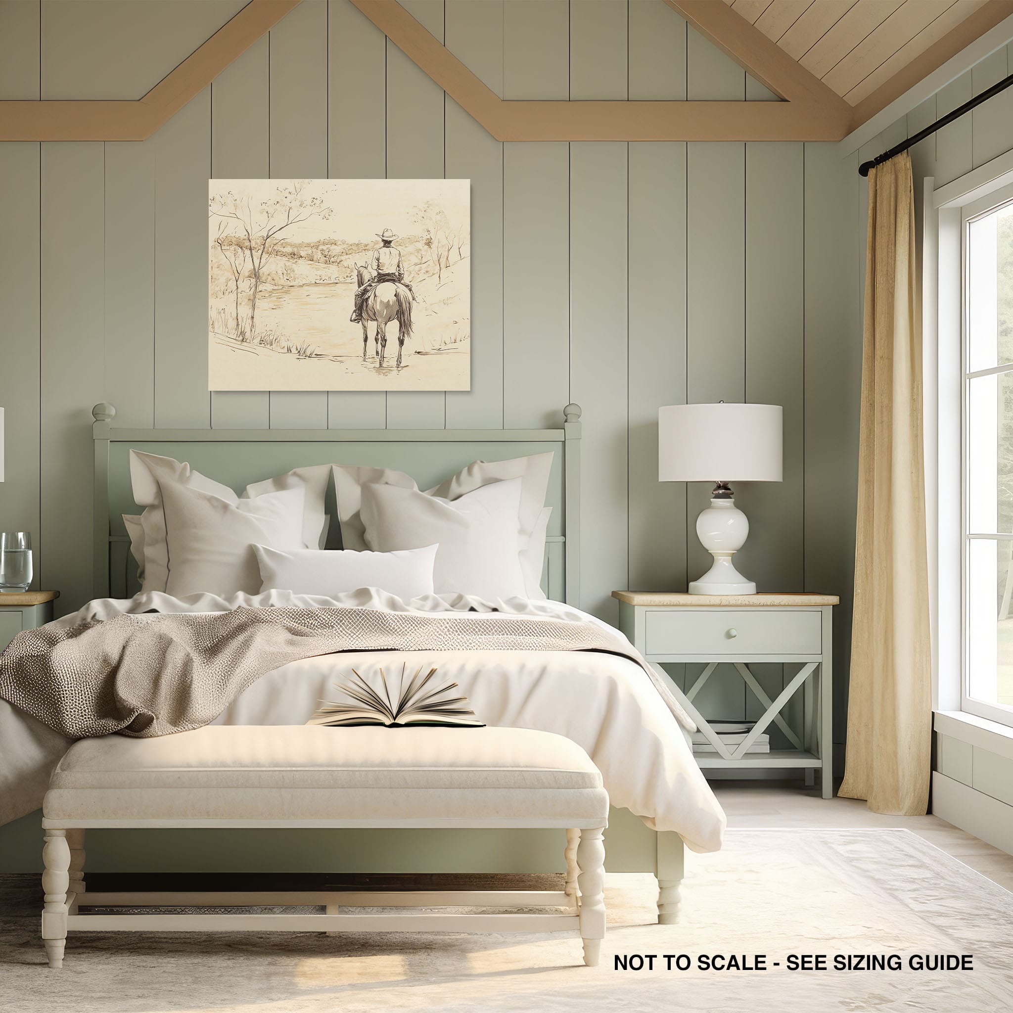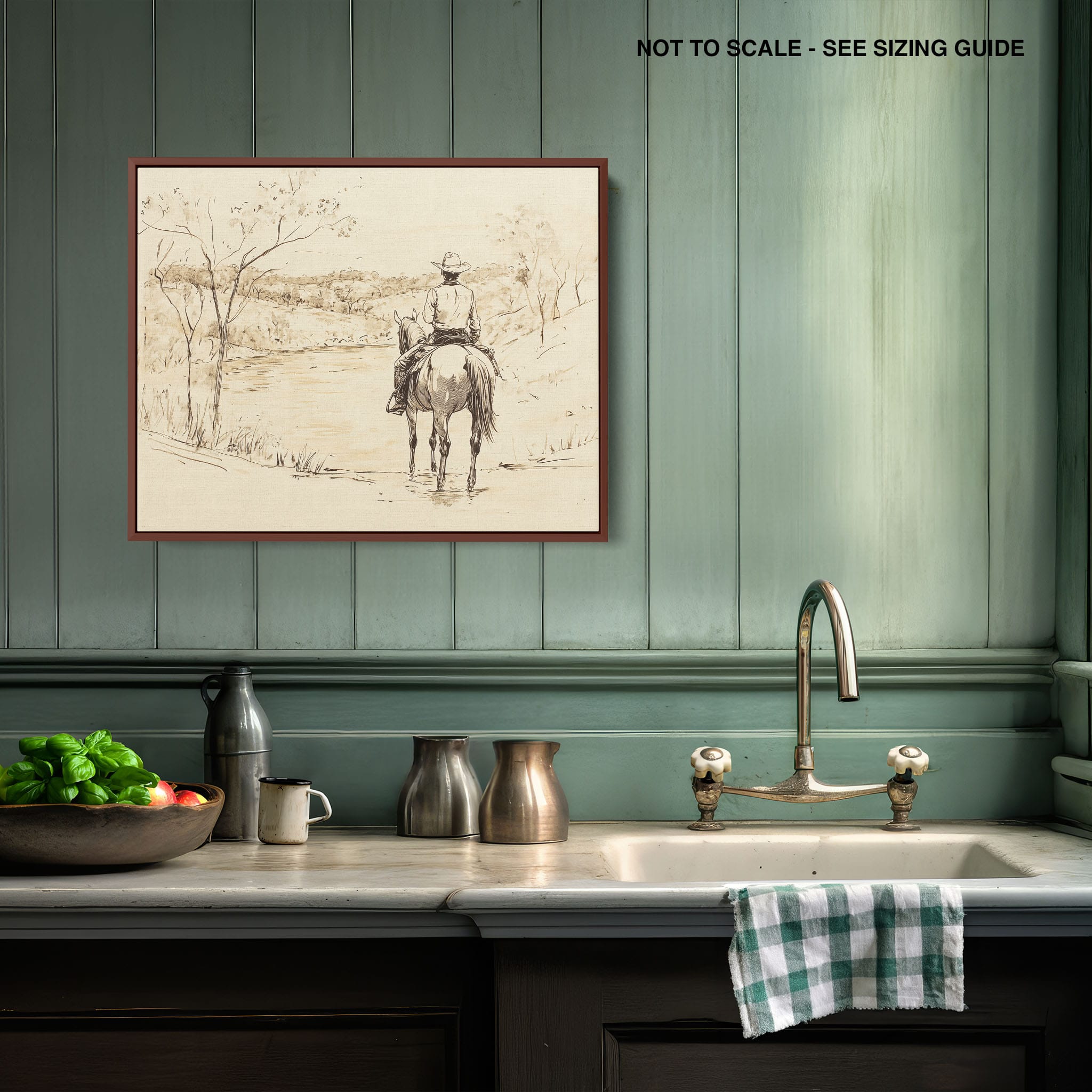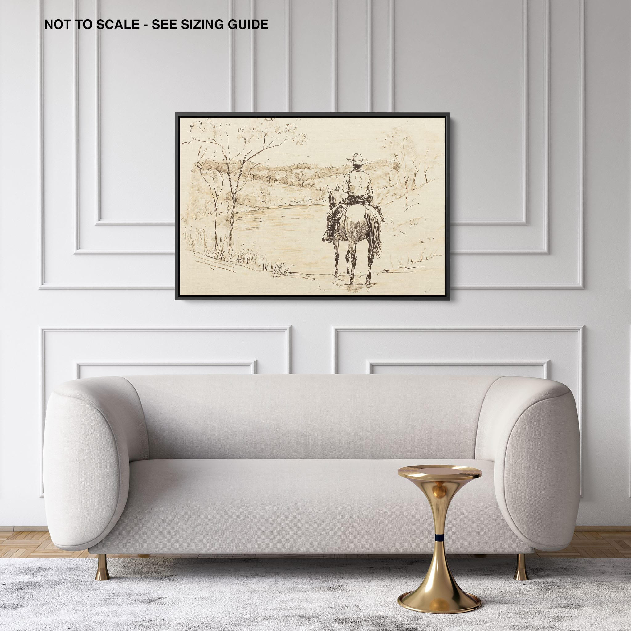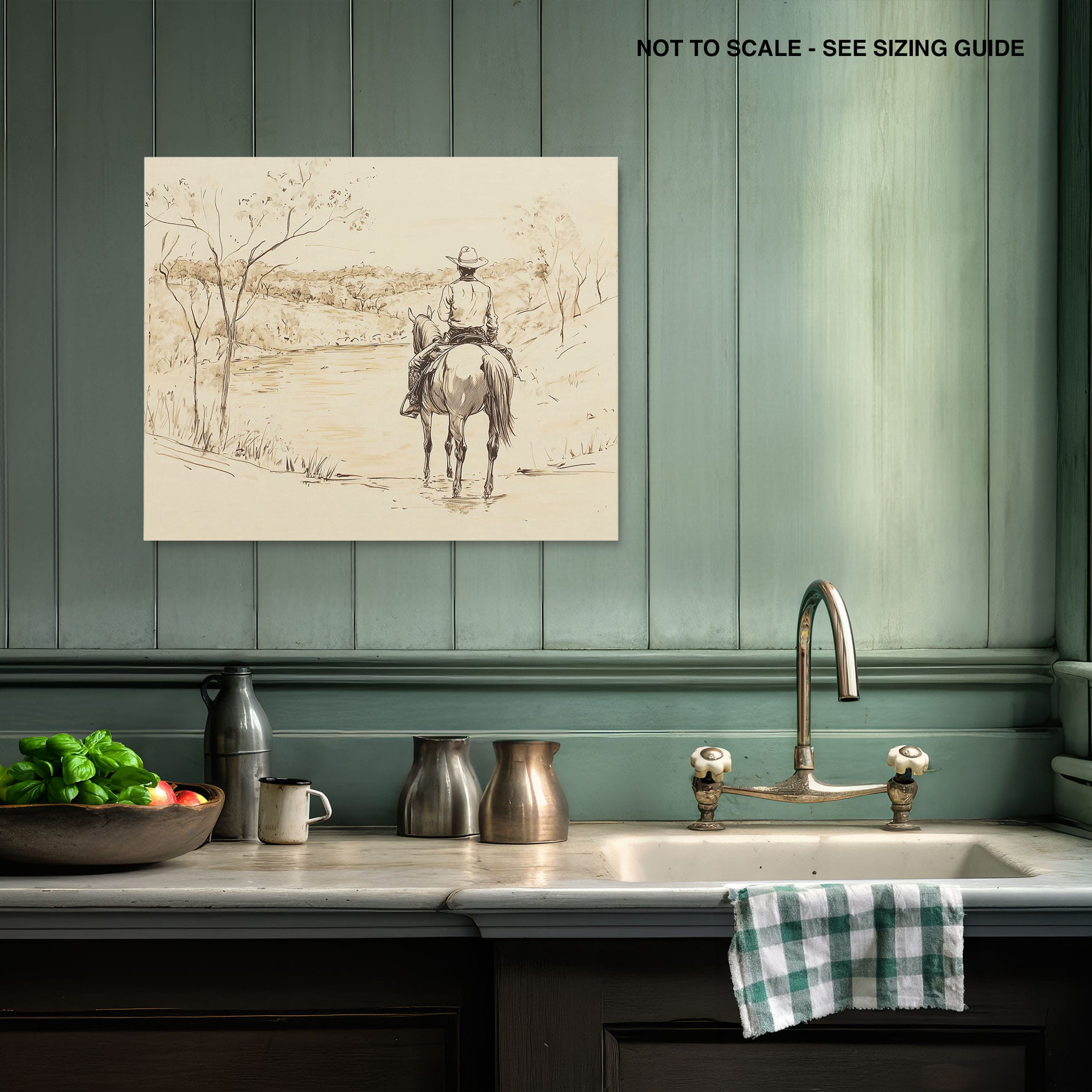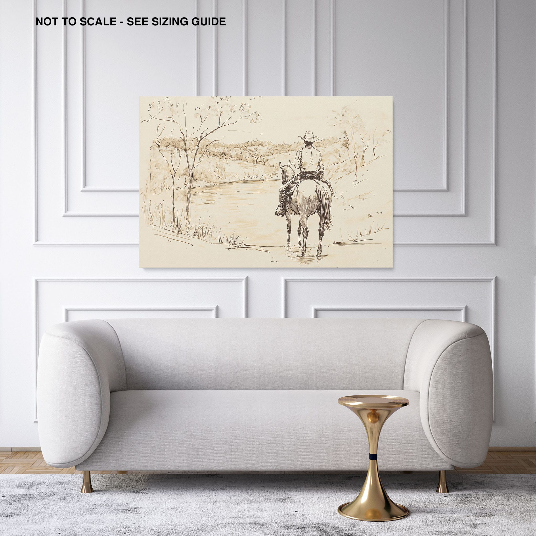 This evocative drawing portrays a lone cowboy on horseback, gazing over a serene lakeside landscape. The fluid lines and subtle shading capture the peaceful ambiance and timeless essence of the American West. With its minimalist style, the drawing emphasizes simplicity while conveying deep emotion and narrative. Perfect for Western art enthusiasts, this artwork adds a rustic charm to any space. Ideal for collectors seeking a classic yet understated piece, this drawing beautifully encapsulates the spirit of solitude and reflection. Enhance your collection with this stunning depiction of cowboy life and Western scenery.