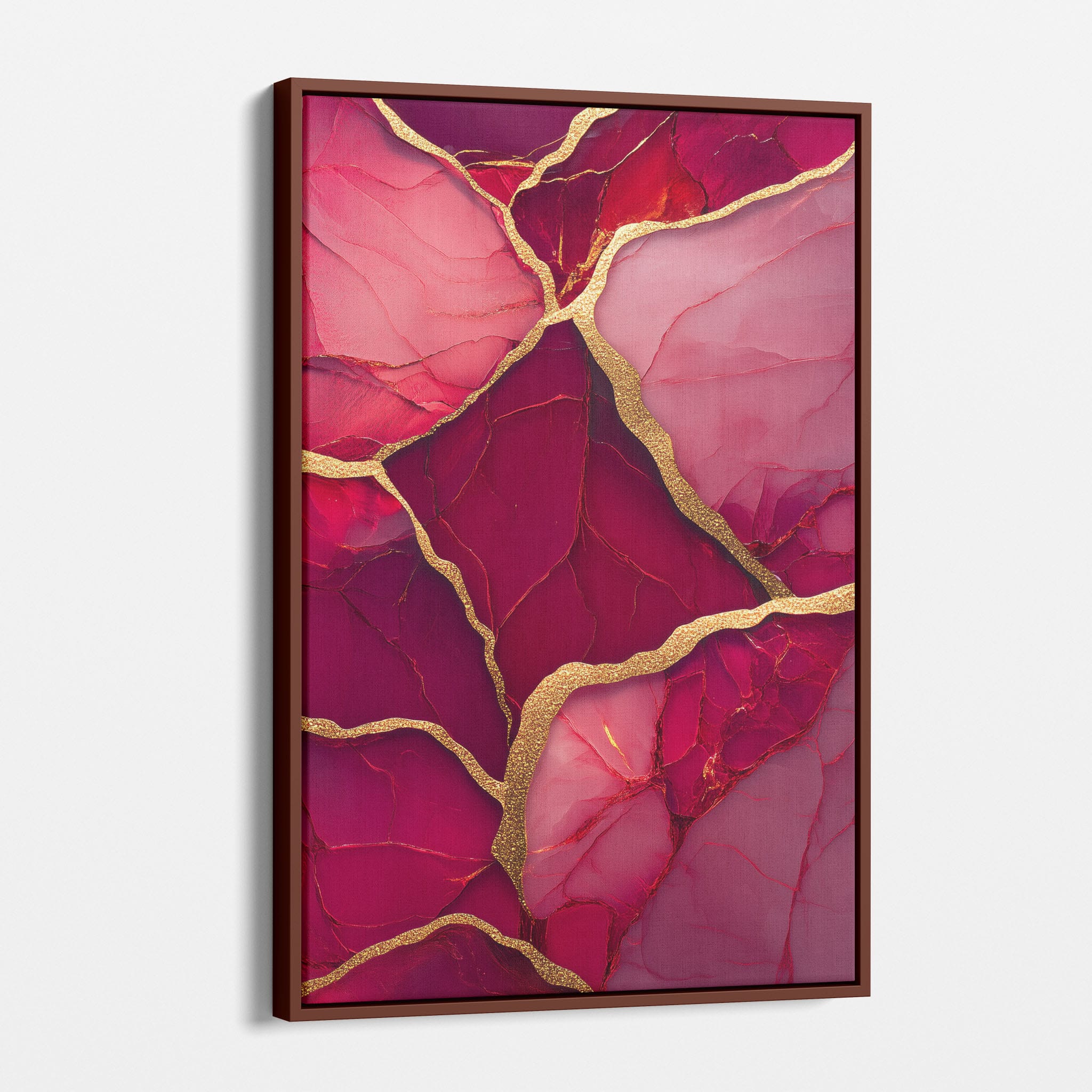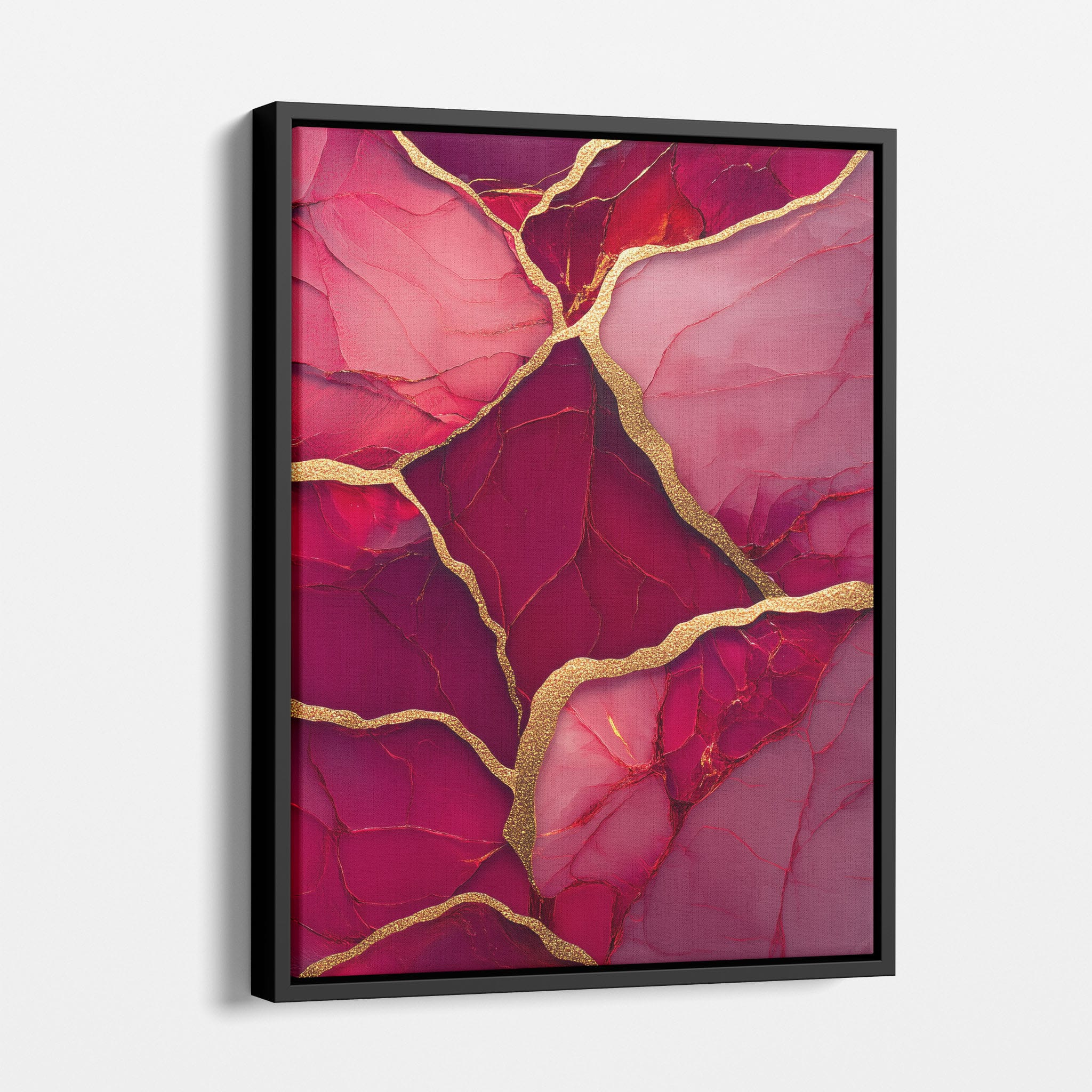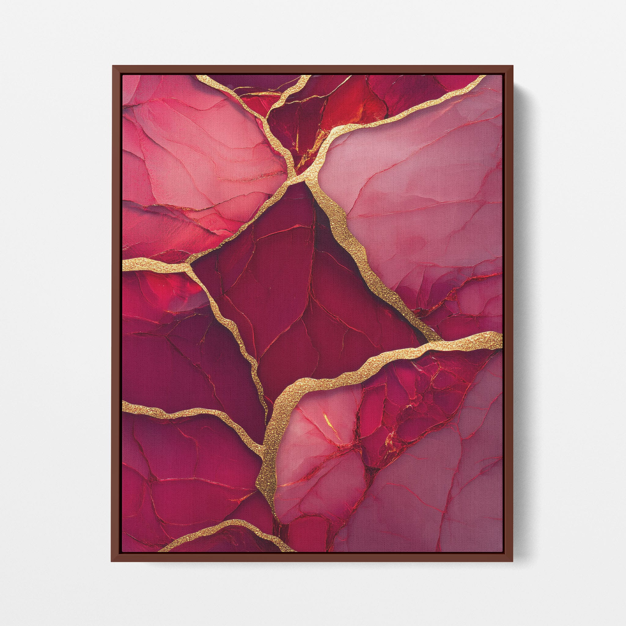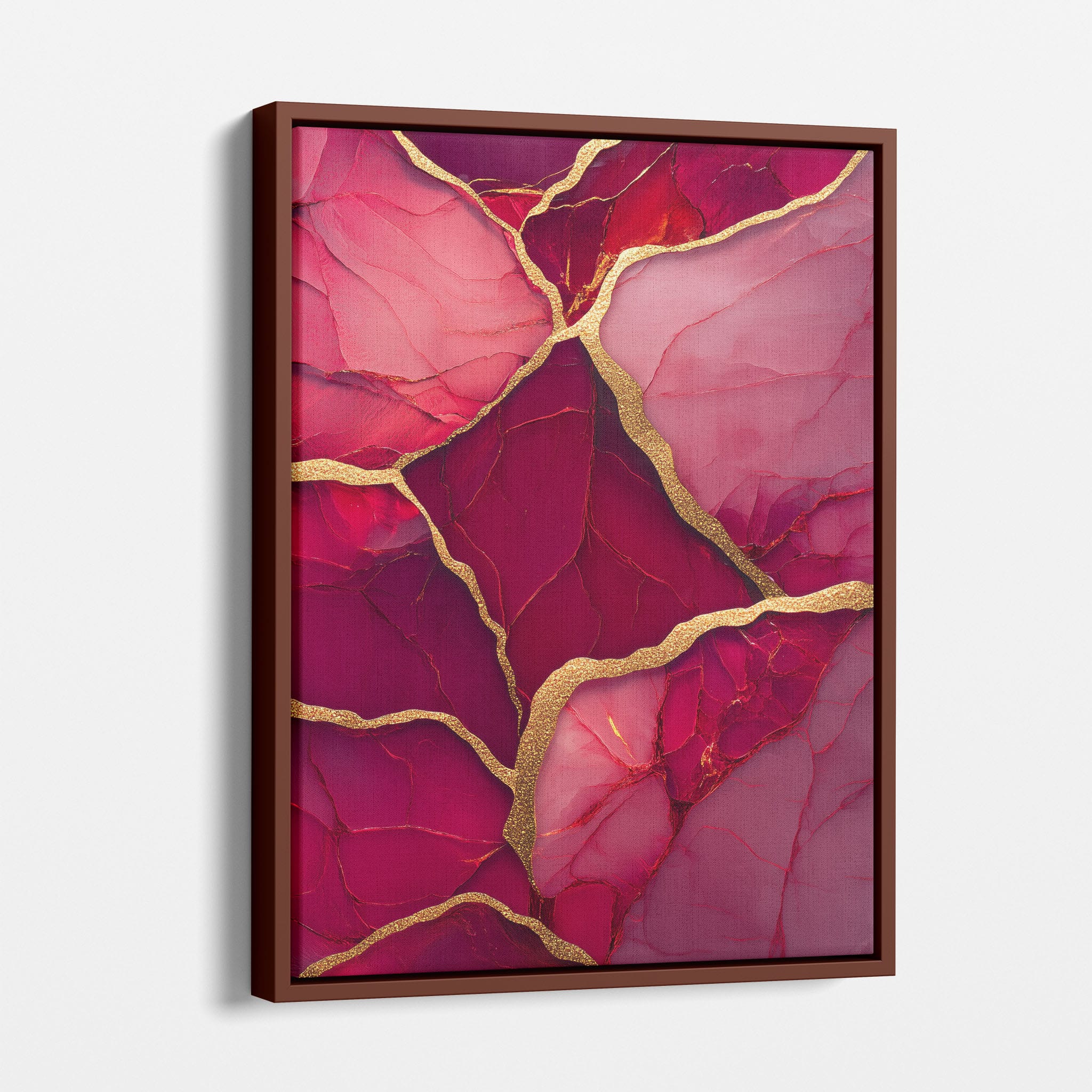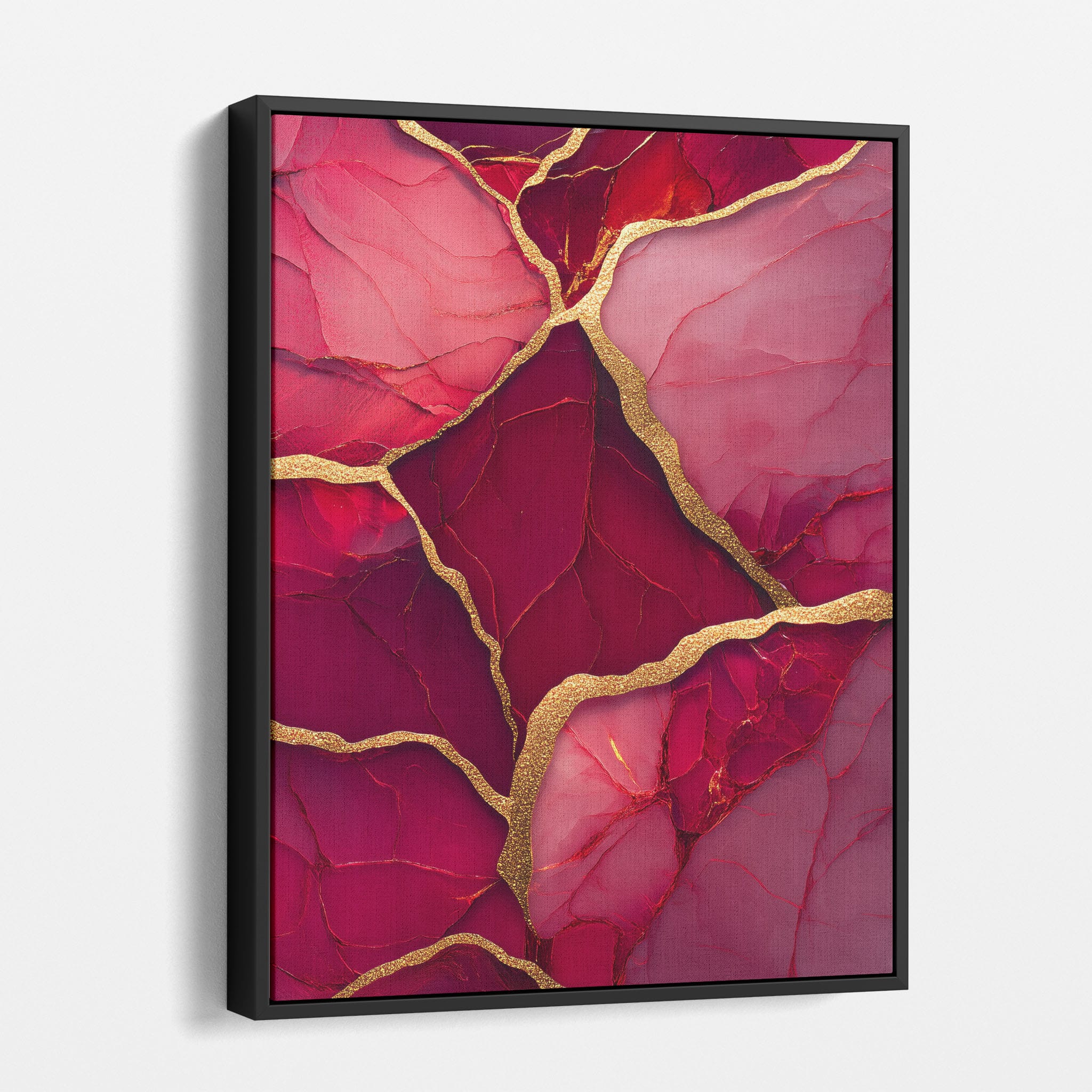 This mixed media masterpiece showcases a compelling abstract and modern design with geometric influences, employing deep crimson hues interlaced with striking golden lines. The luminous, gilded veins contrast starkly against the layers of rich red, creating a dynamic visual tension that captures the viewer's eye. This art piece appeals to those who value bold, vibrant colors and unique textural interplays. It makes a remarkable focal point in any room, offering both aesthetics and conversation. Elevate your space with this captivating work of art.