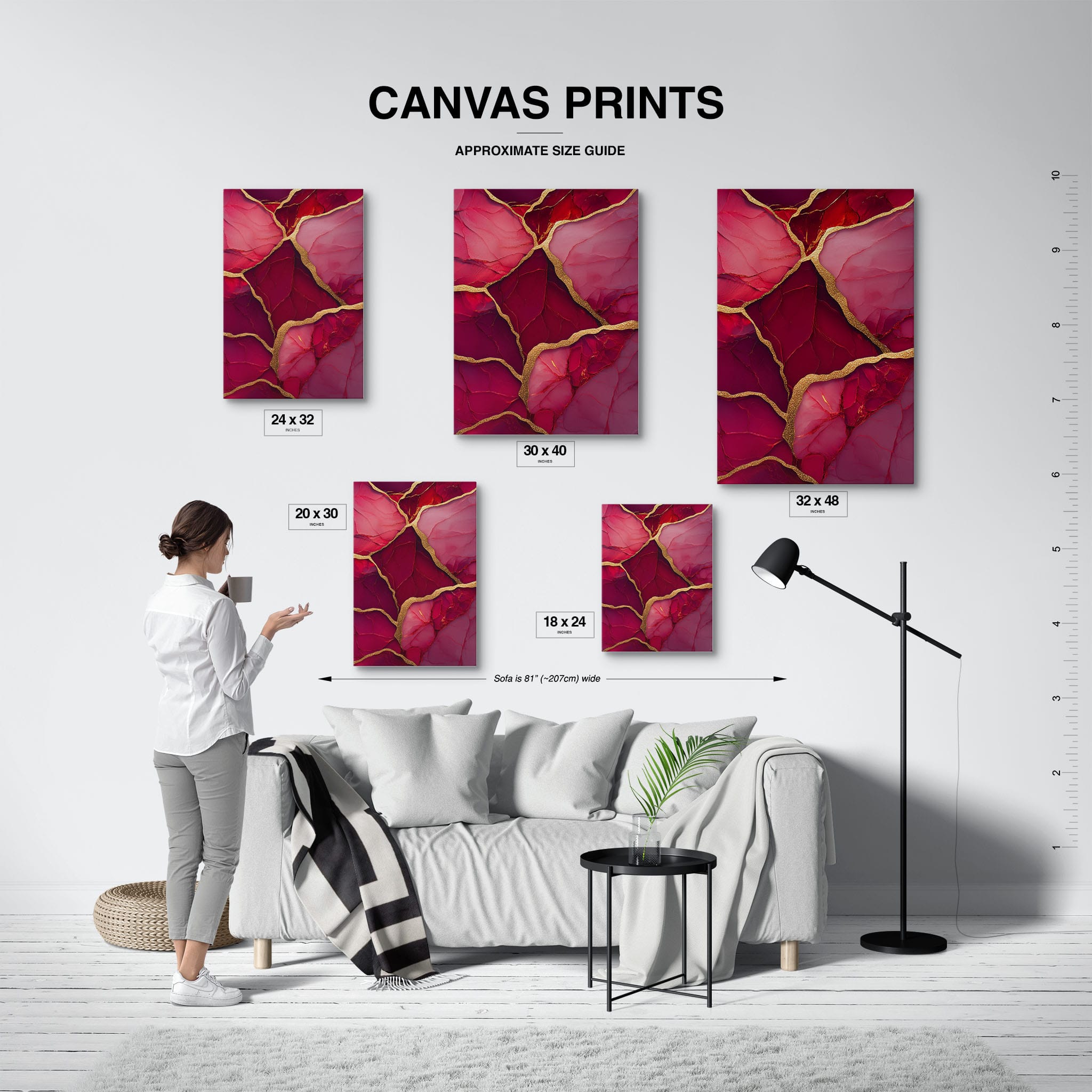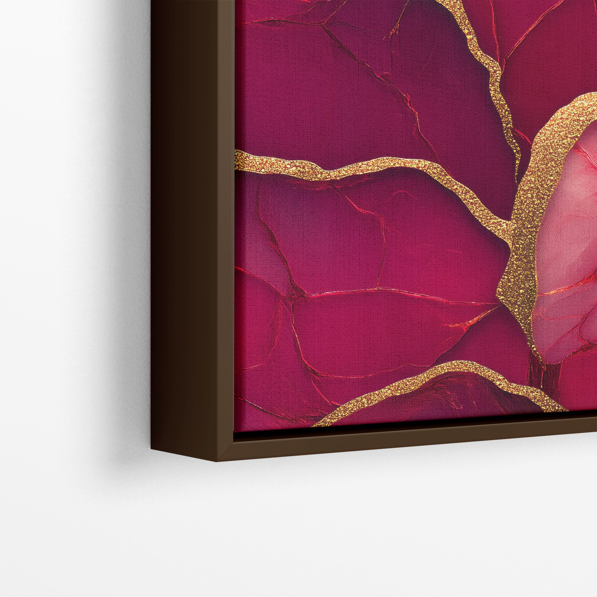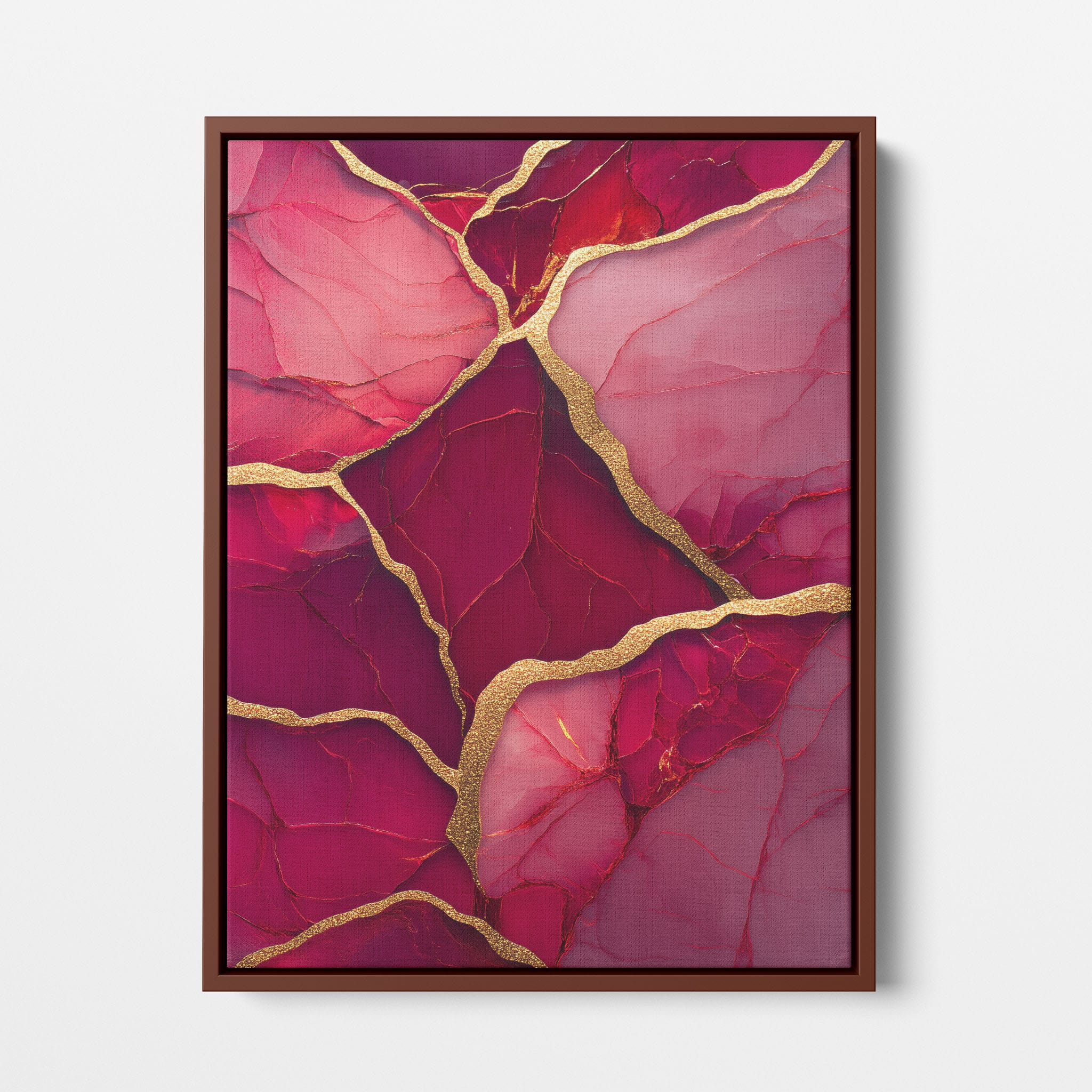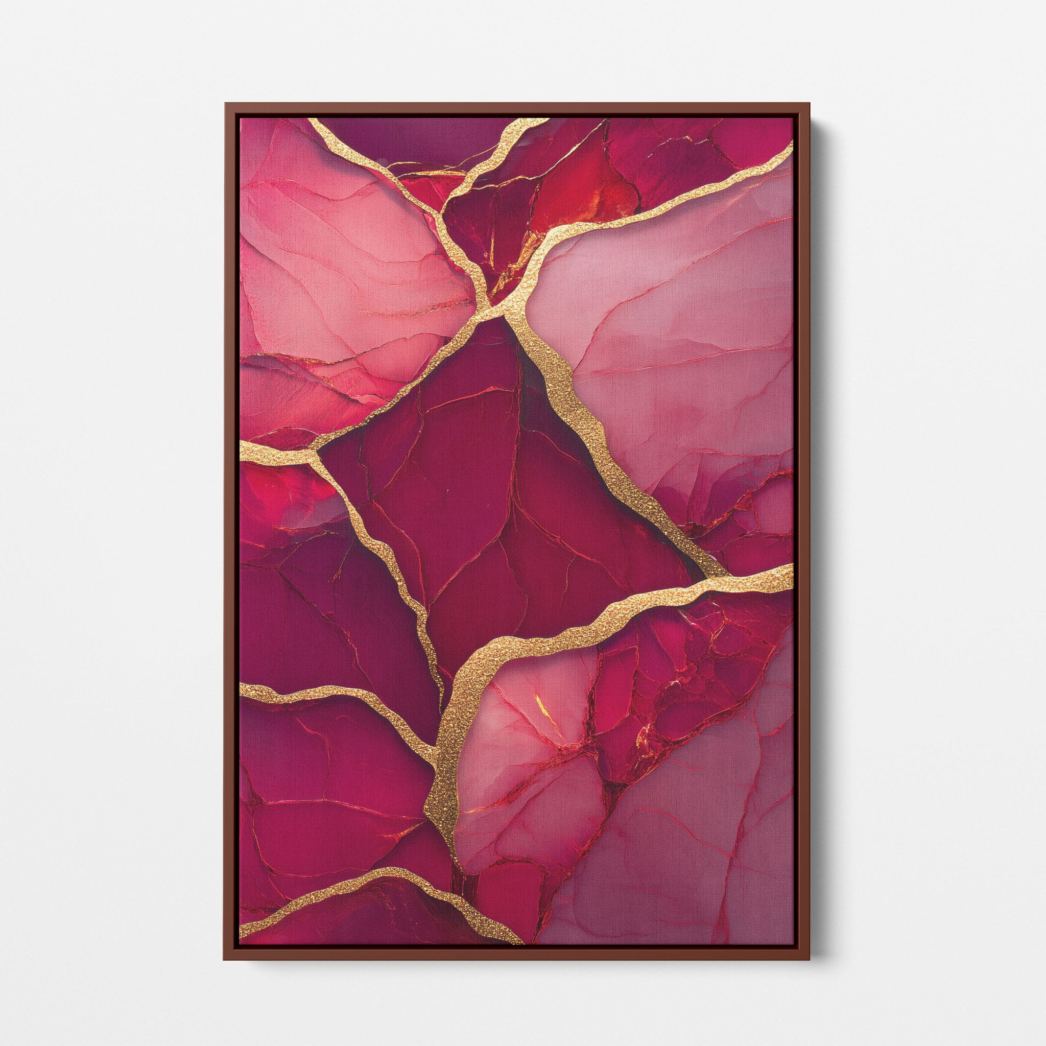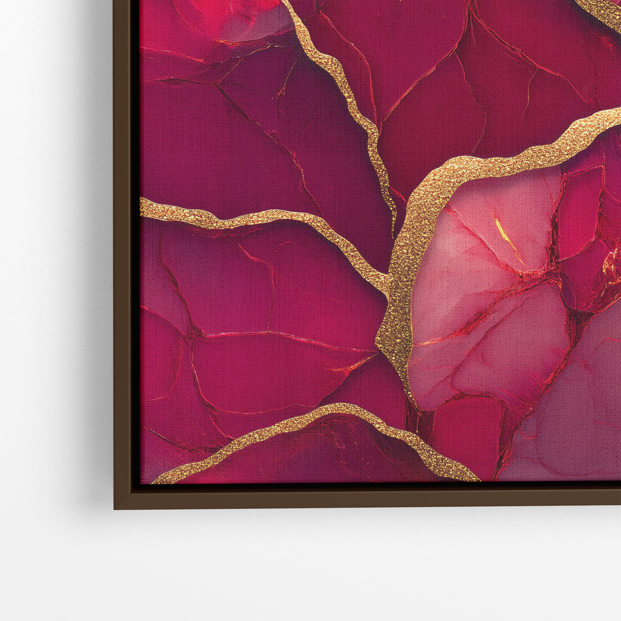 This mixed media masterpiece showcases a compelling abstract and modern design with geometric influences, employing deep crimson hues interlaced with striking golden lines. The luminous, gilded veins contrast starkly against the layers of rich red, creating a dynamic visual tension that captures the viewer's eye. This art piece appeals to those who value bold, vibrant colors and unique textural interplays. It makes a remarkable focal point in any room, offering both aesthetics and conversation. Elevate your space with this captivating work of art.