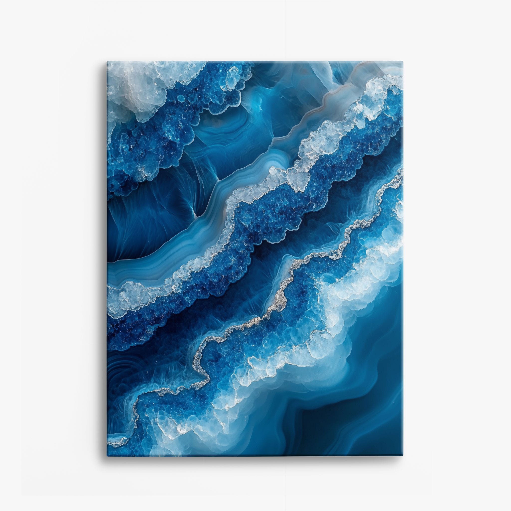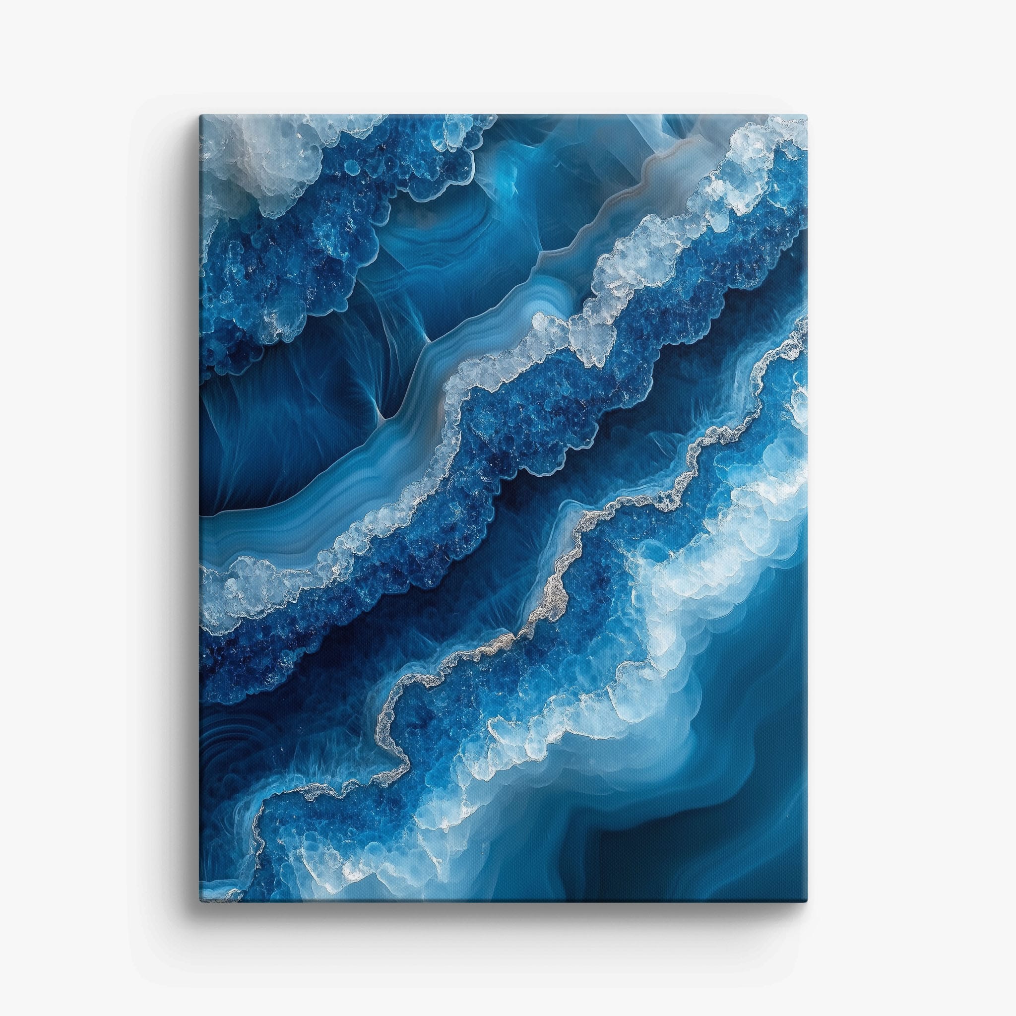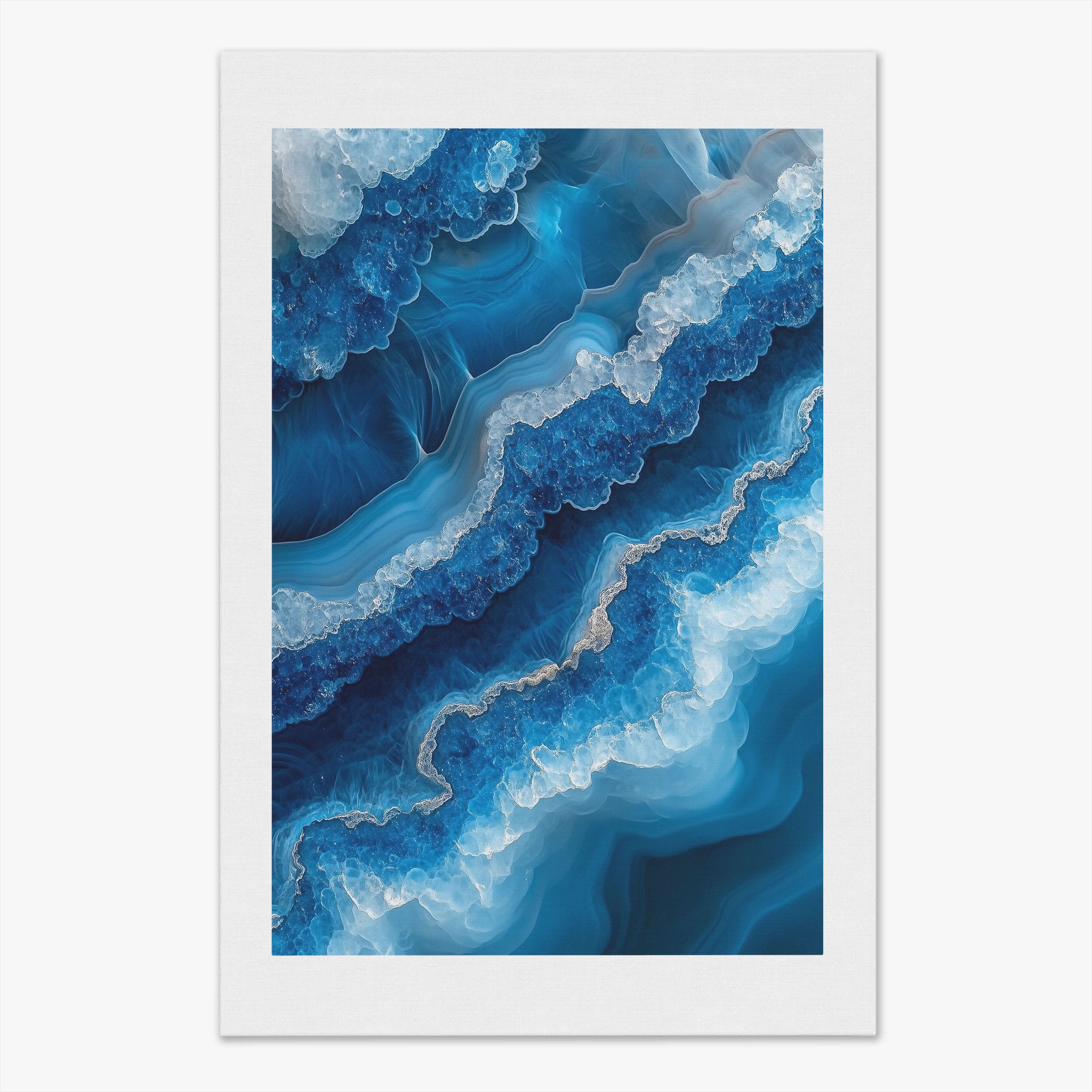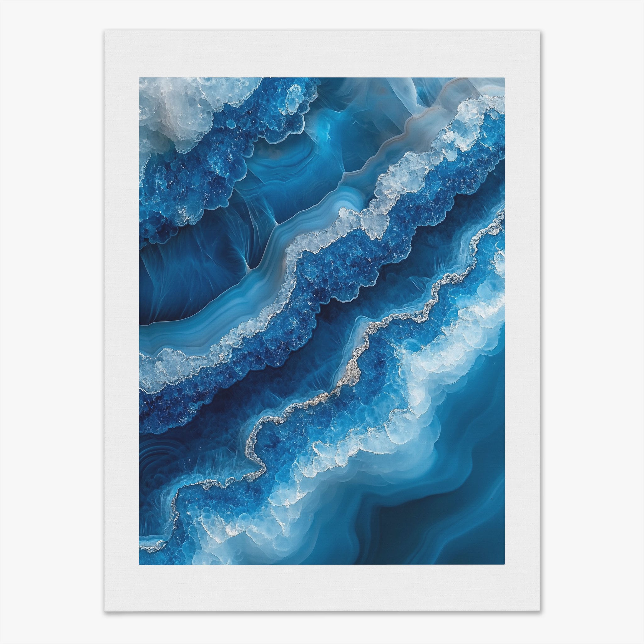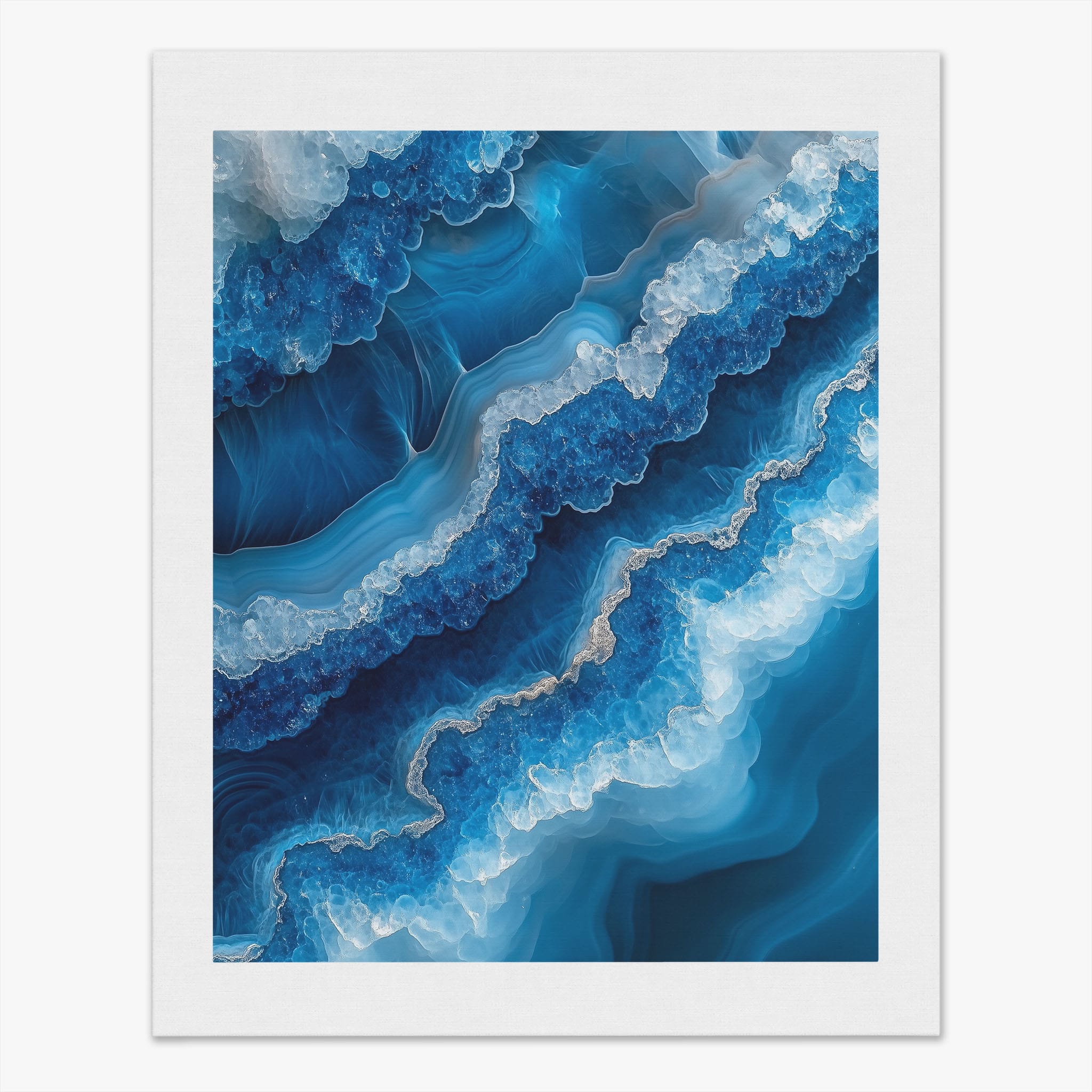 Capturing the essence of an abstract ocean, this digital illustration merges deep blues and transcendent whites to create a stunning visual of crystalline waves and oceanic abysses. The delicate balance of geometric and surreal elements invites viewers into a serene yet dynamic environment. Perfect for both modern decor and lovers of abstract art, this piece complements any space with its cool tones and imaginative design. Add this artwork to your space to introduce a touch of calm sophistication and innovative artistry.