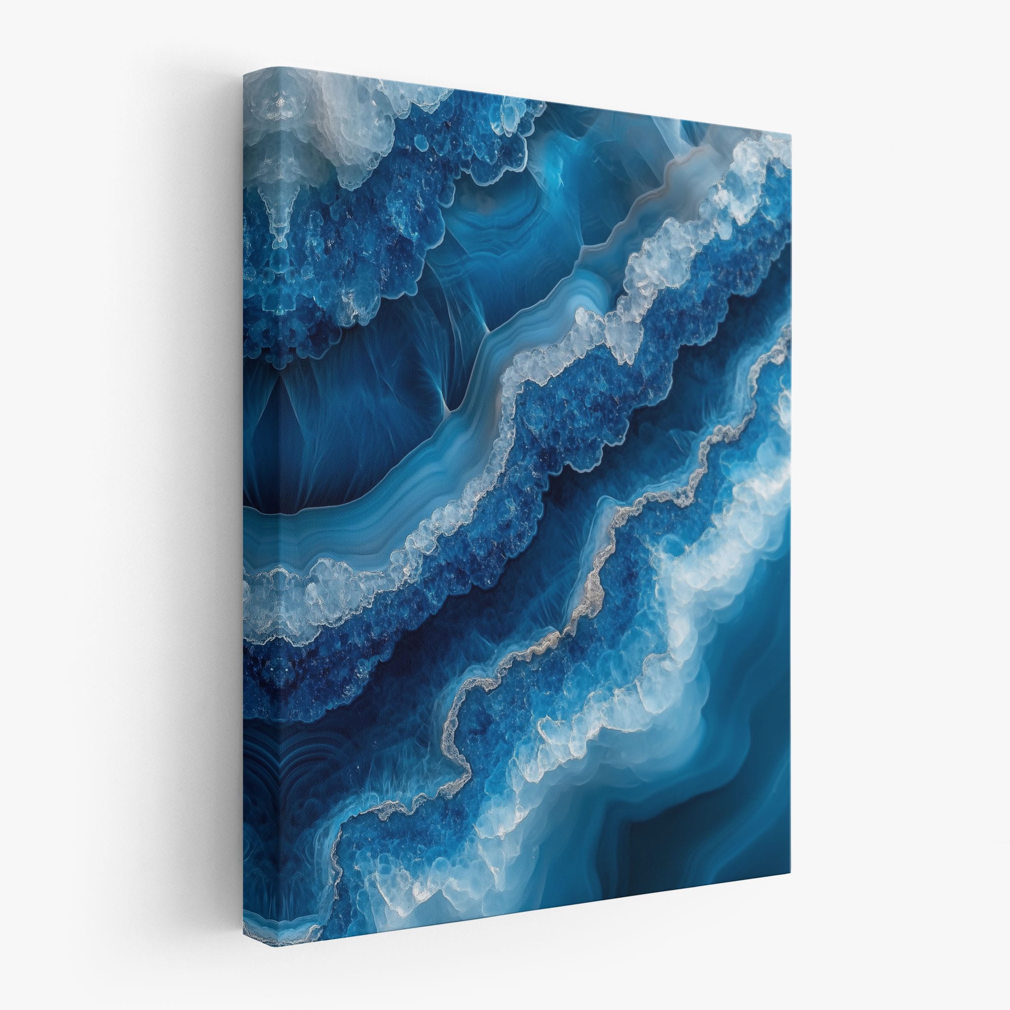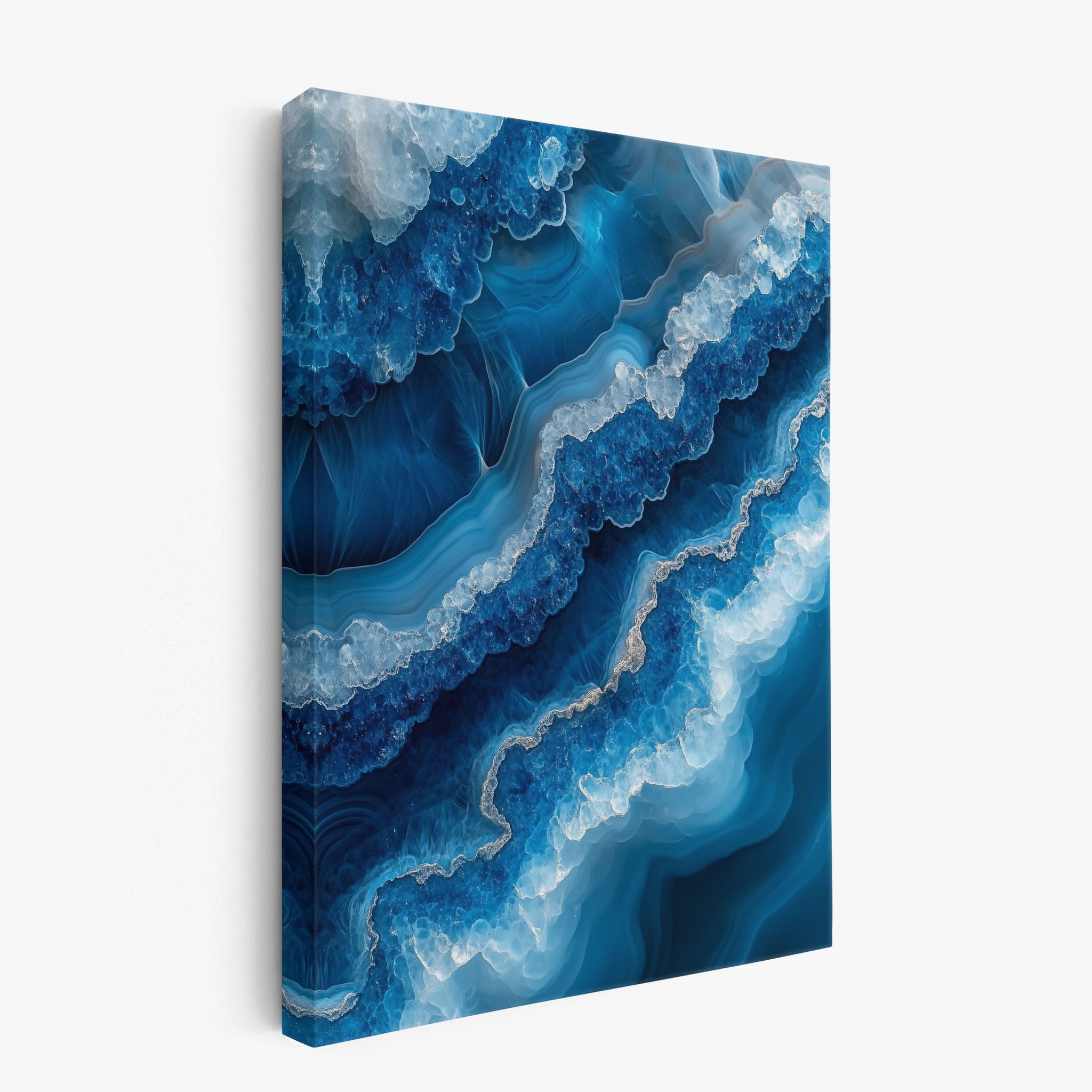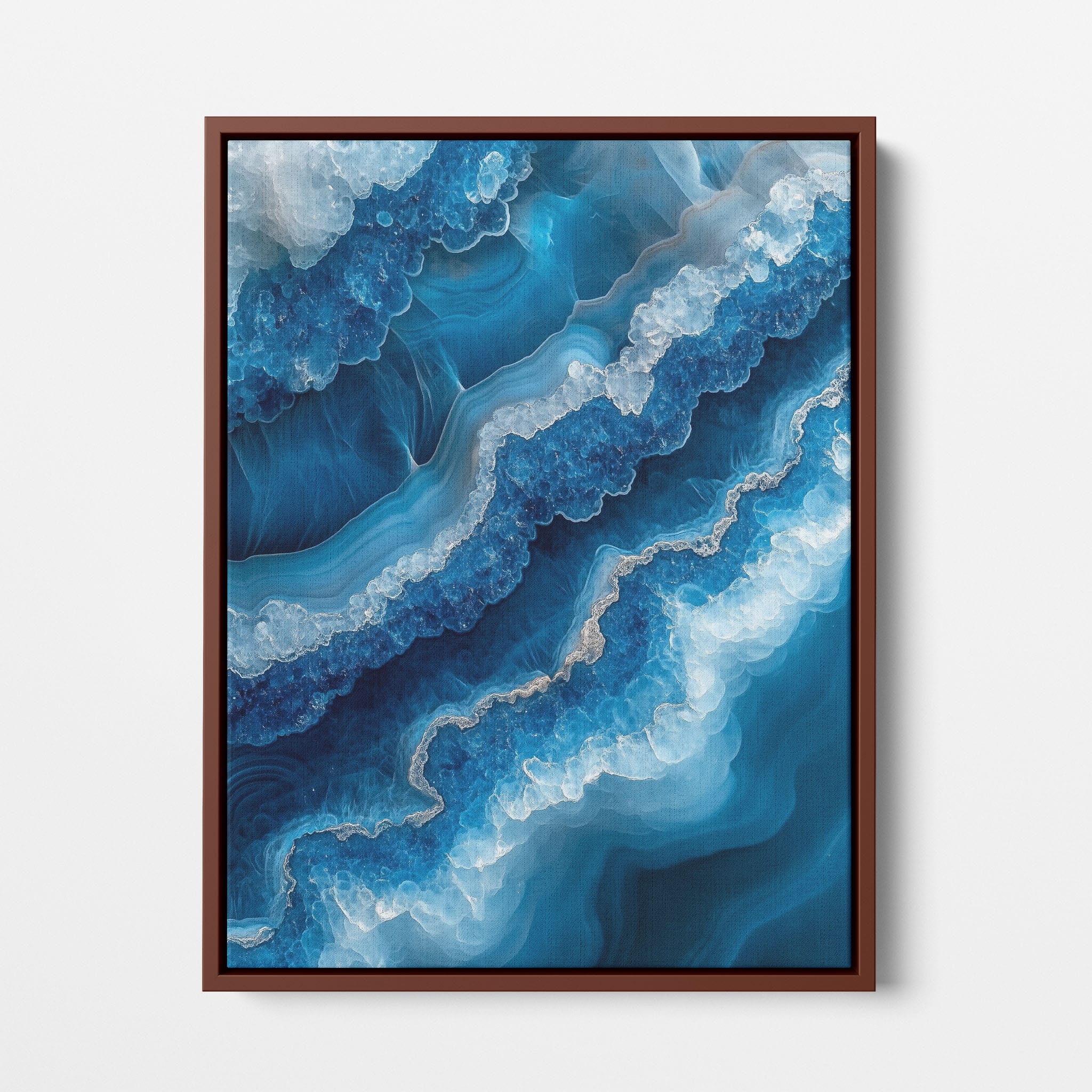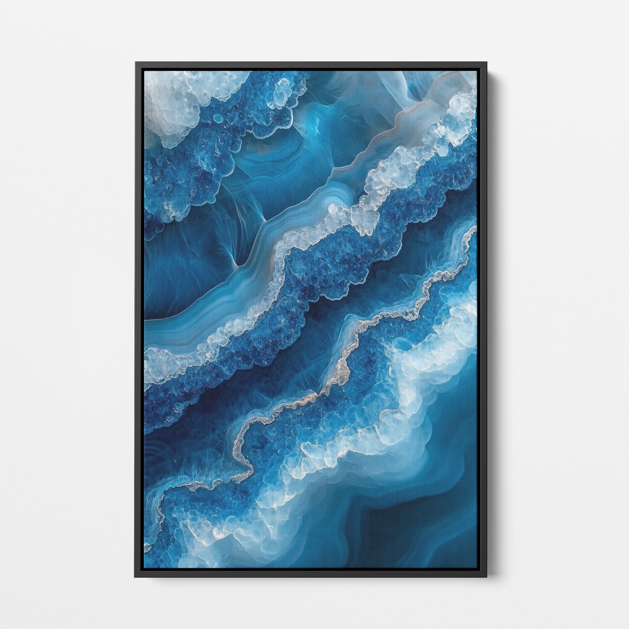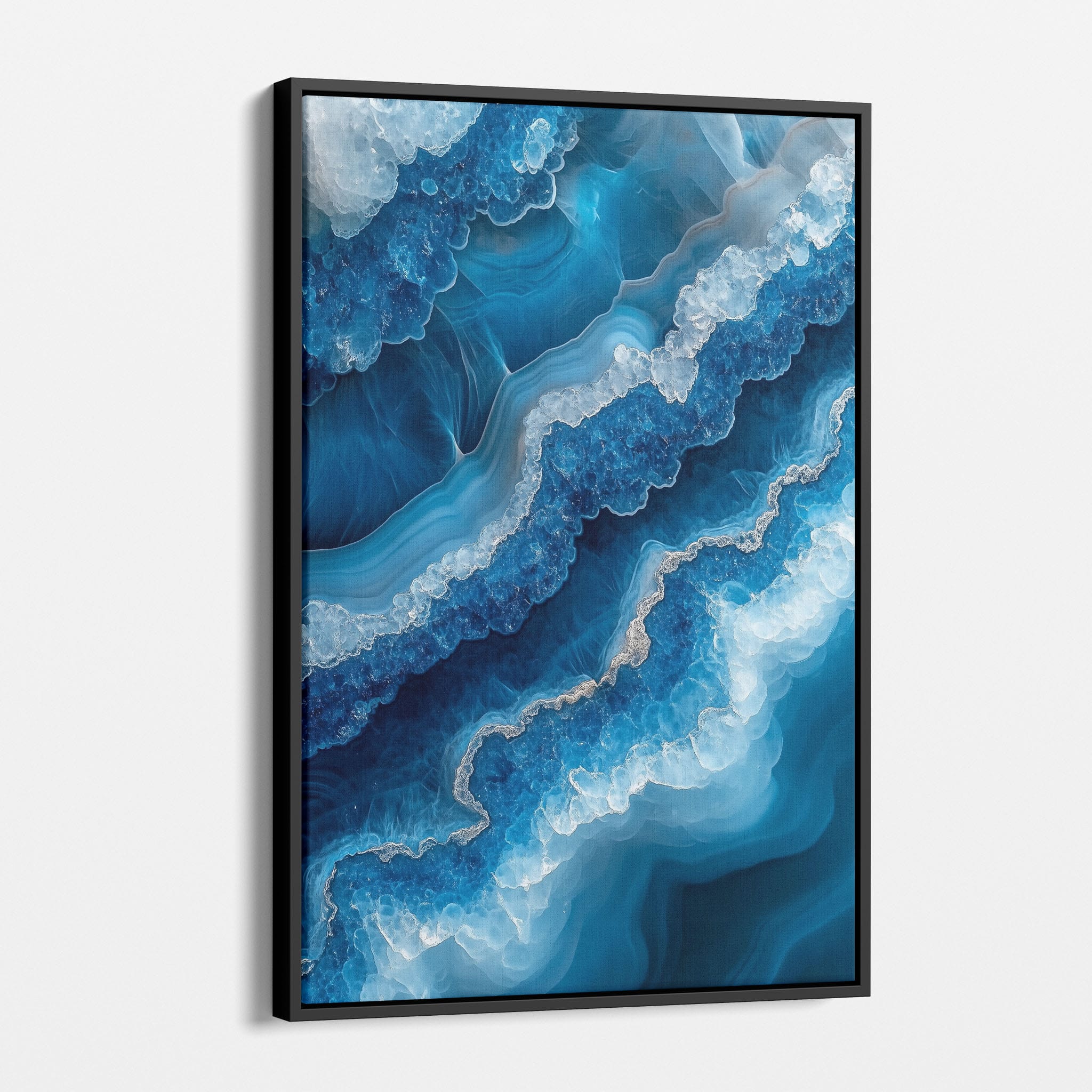 Capturing the essence of an abstract ocean, this digital illustration merges deep blues and transcendent whites to create a stunning visual of crystalline waves and oceanic abysses. The delicate balance of geometric and surreal elements invites viewers into a serene yet dynamic environment. Perfect for both modern decor and lovers of abstract art, this piece complements any space with its cool tones and imaginative design. Add this artwork to your space to introduce a touch of calm sophistication and innovative artistry.