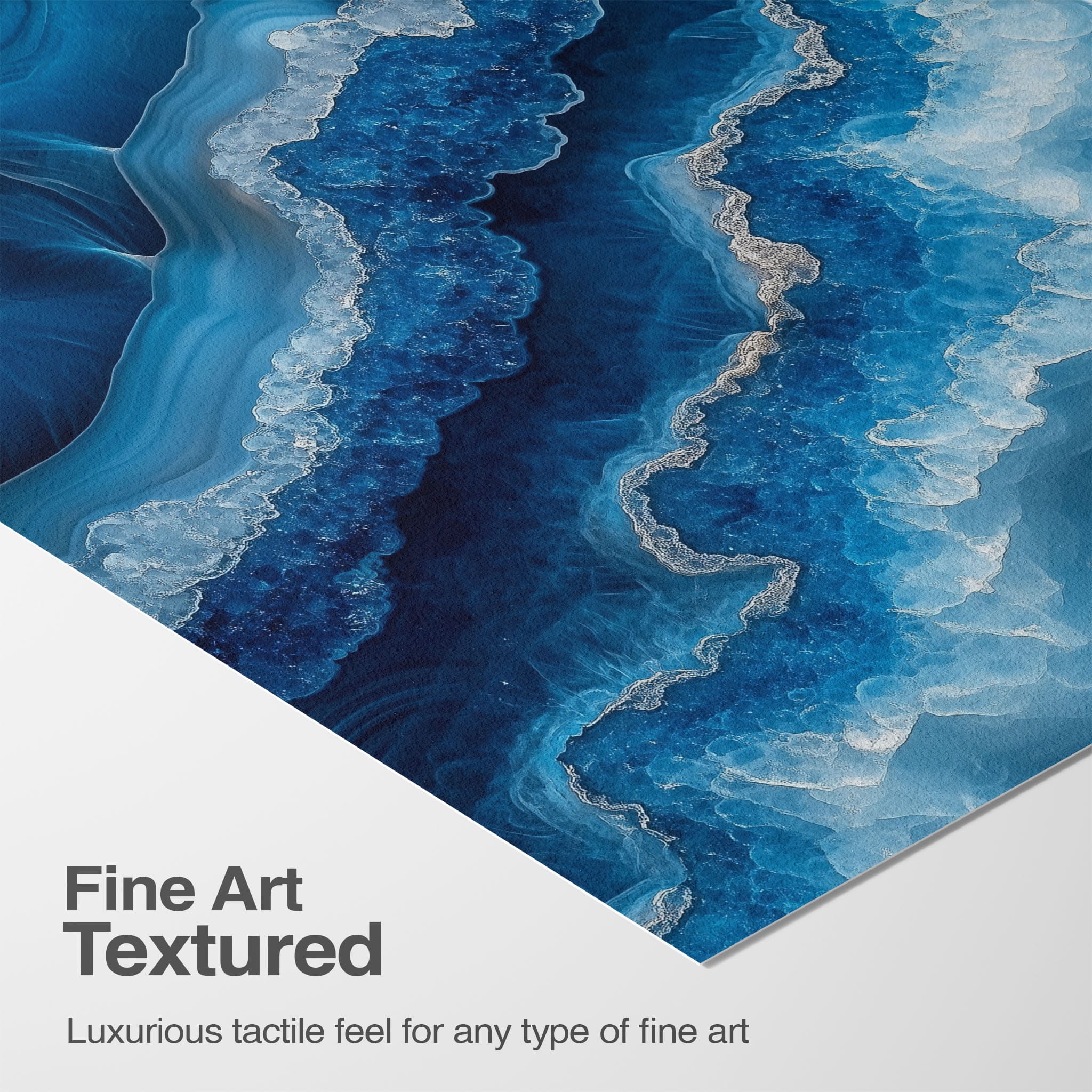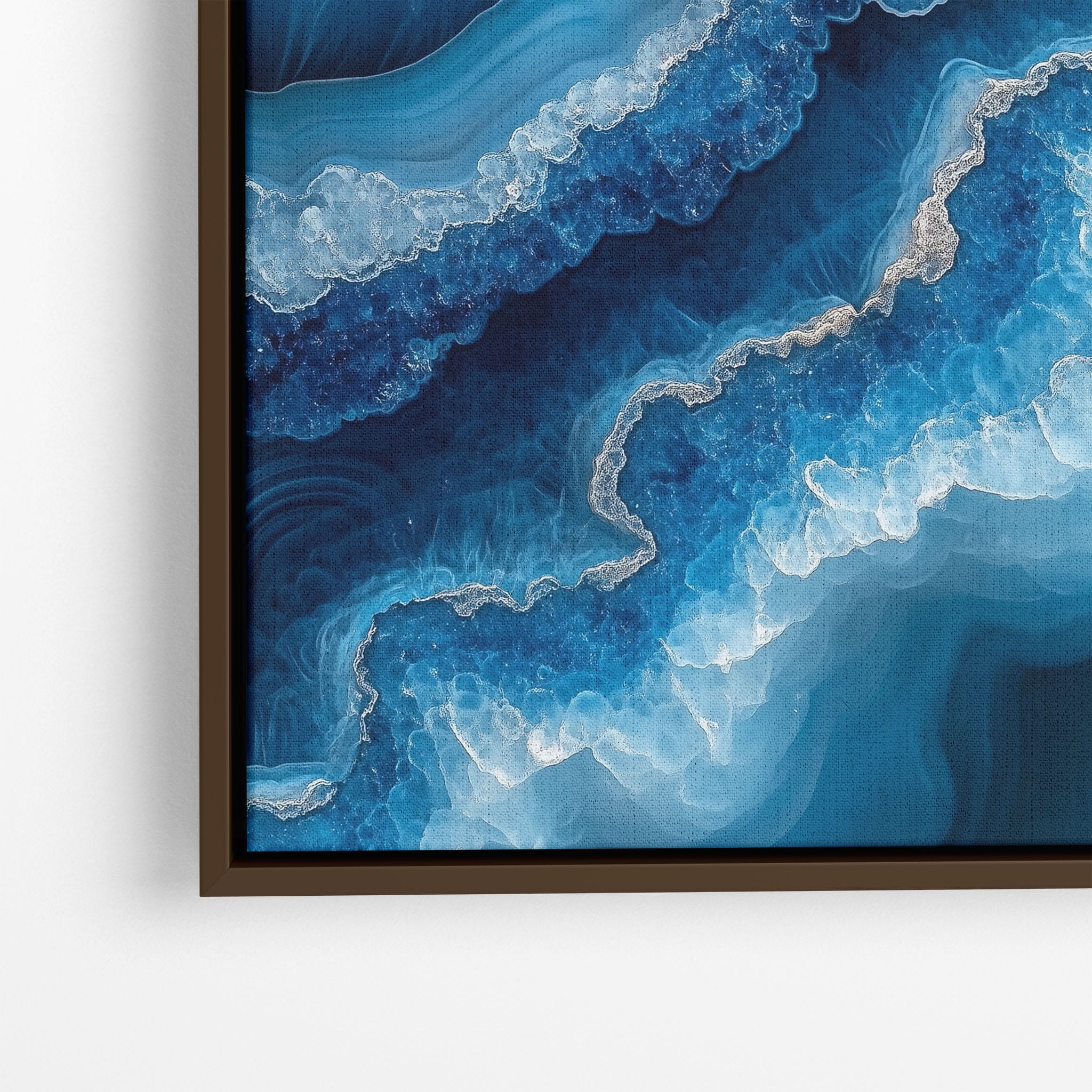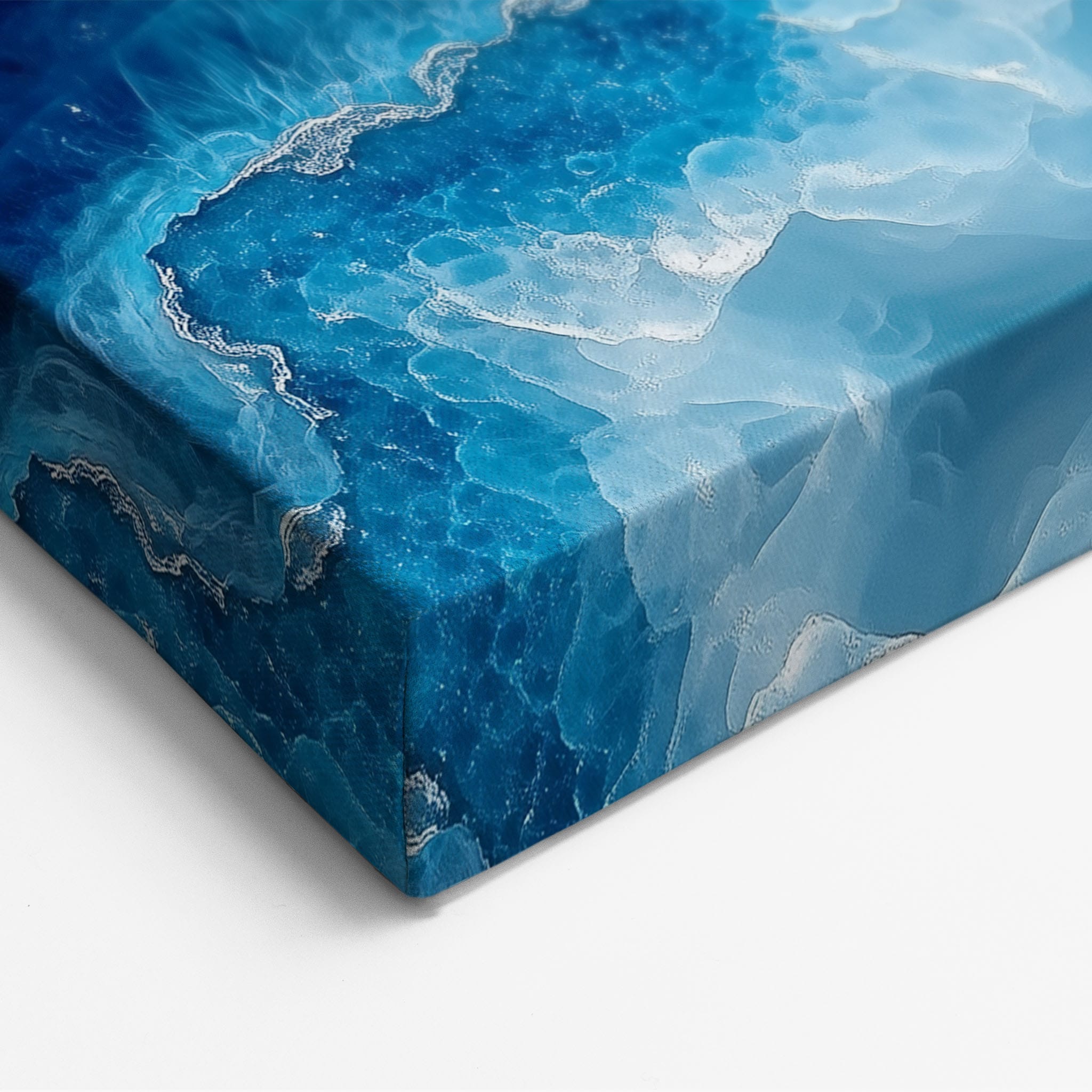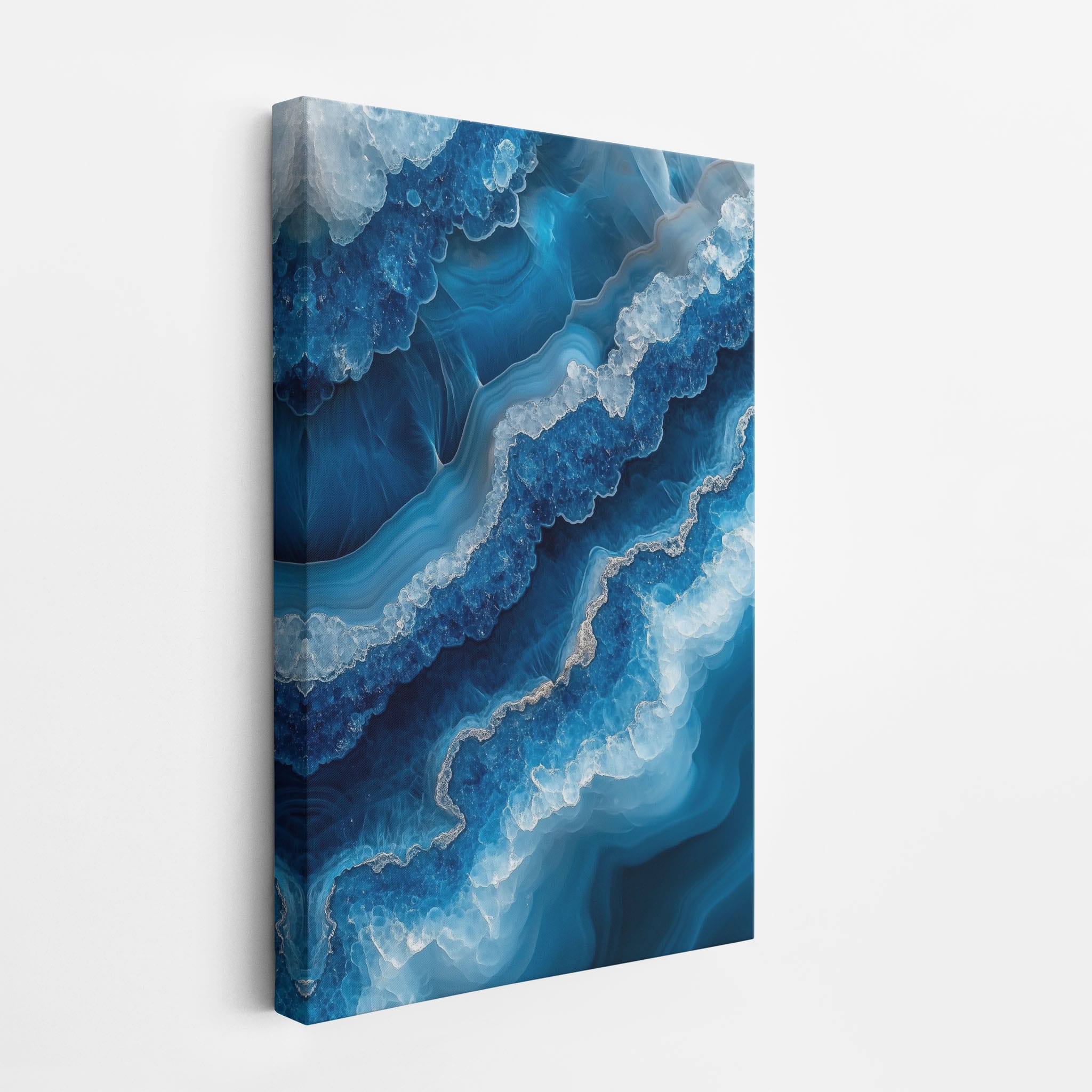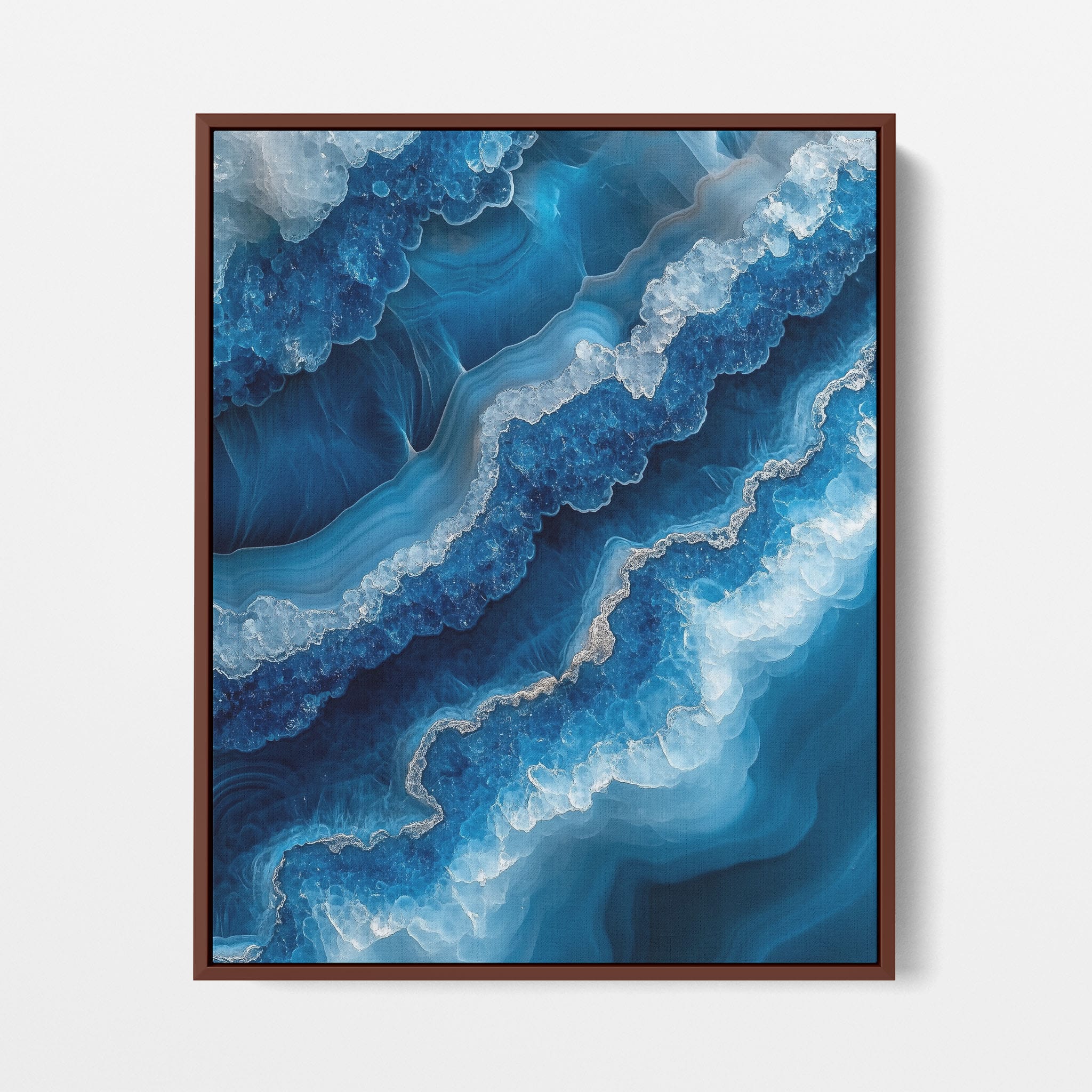 Capturing the essence of an abstract ocean, this digital illustration merges deep blues and transcendent whites to create a stunning visual of crystalline waves and oceanic abysses. The delicate balance of geometric and surreal elements invites viewers into a serene yet dynamic environment. Perfect for both modern decor and lovers of abstract art, this piece complements any space with its cool tones and imaginative design. Add this artwork to your space to introduce a touch of calm sophistication and innovative artistry.