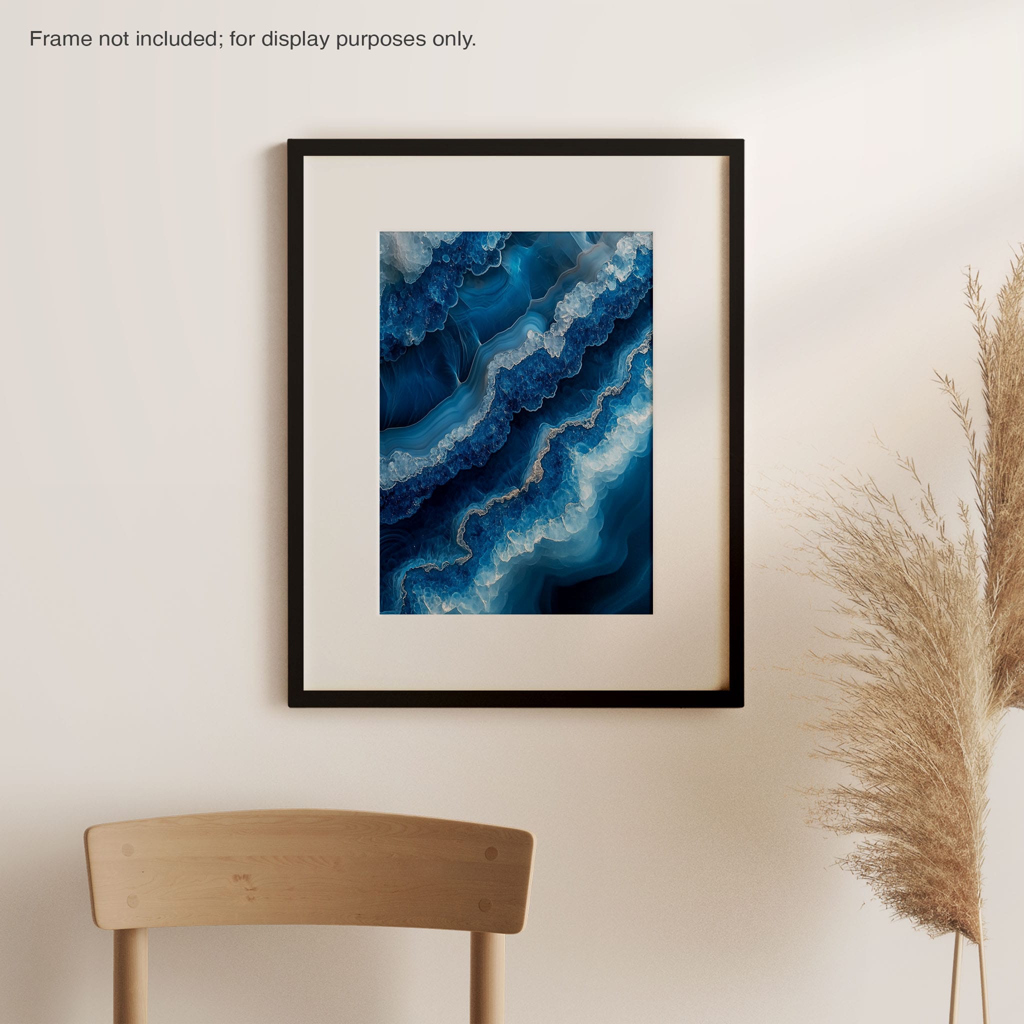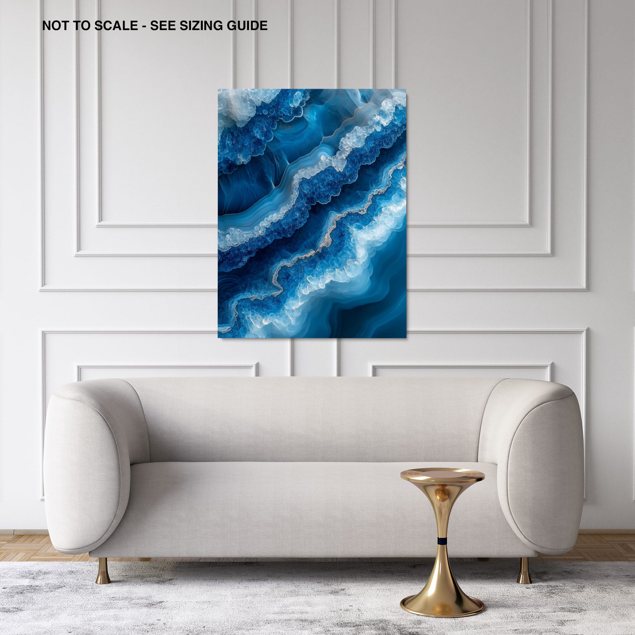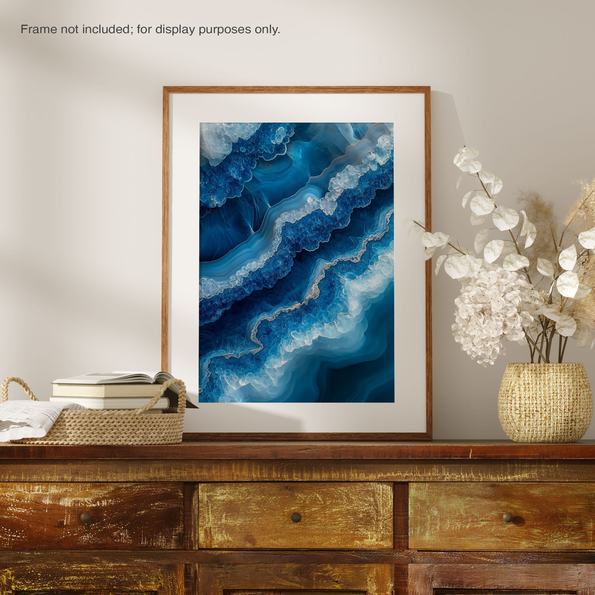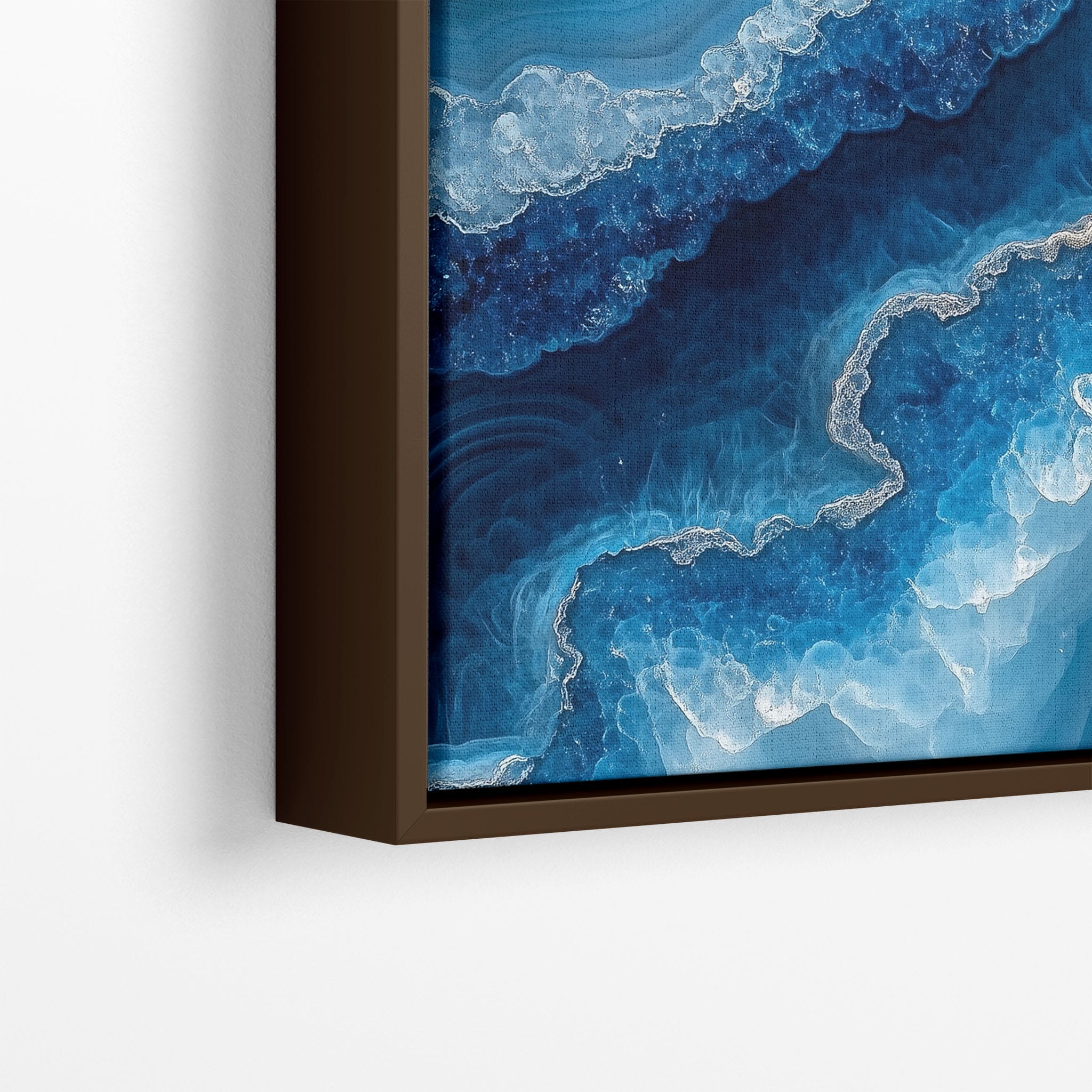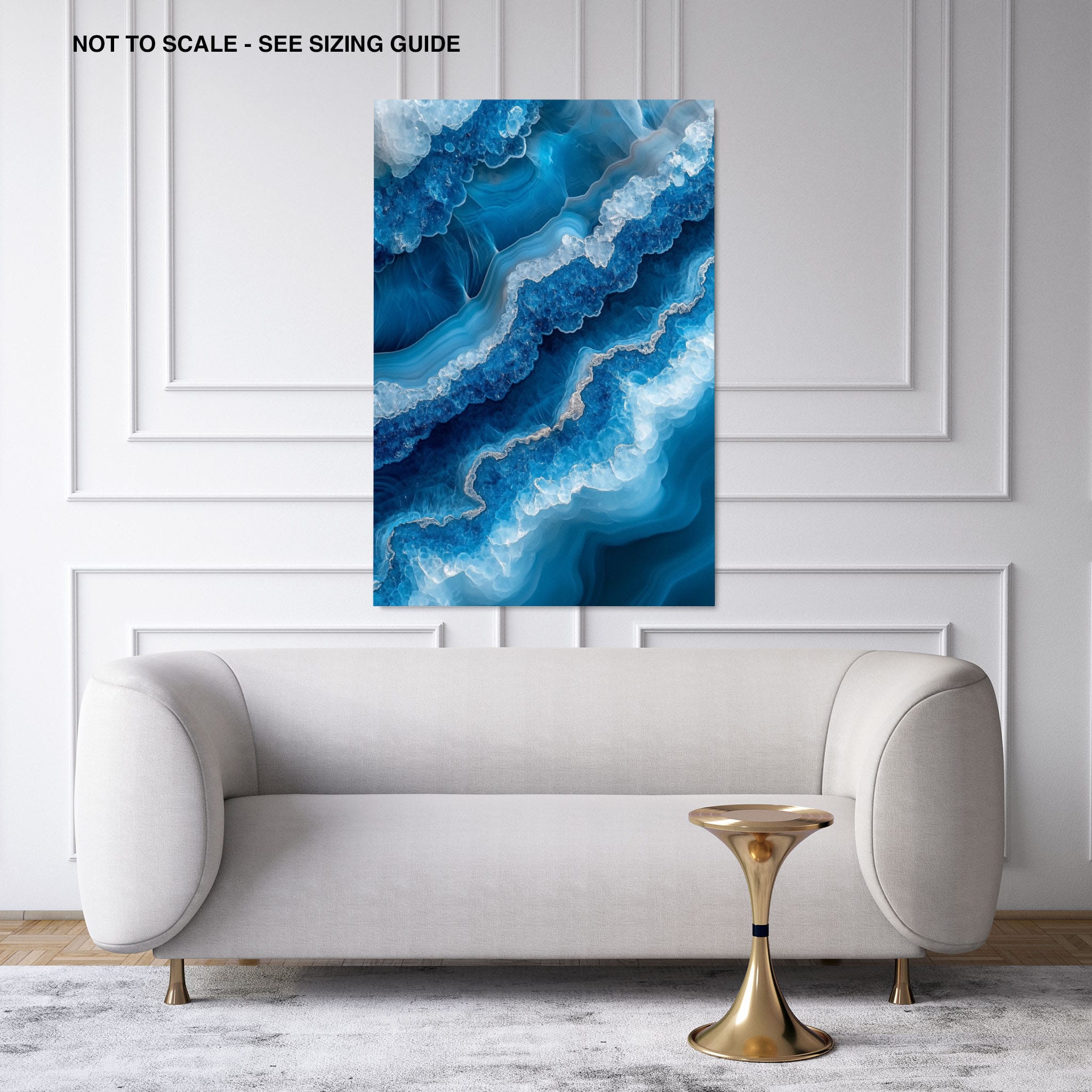 Capturing the essence of an abstract ocean, this digital illustration merges deep blues and transcendent whites to create a stunning visual of crystalline waves and oceanic abysses. The delicate balance of geometric and surreal elements invites viewers into a serene yet dynamic environment. Perfect for both modern decor and lovers of abstract art, this piece complements any space with its cool tones and imaginative design. Add this artwork to your space to introduce a touch of calm sophistication and innovative artistry.