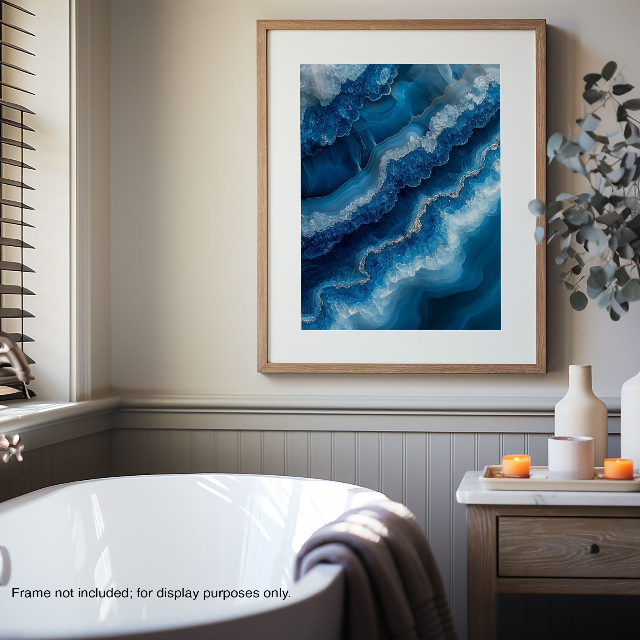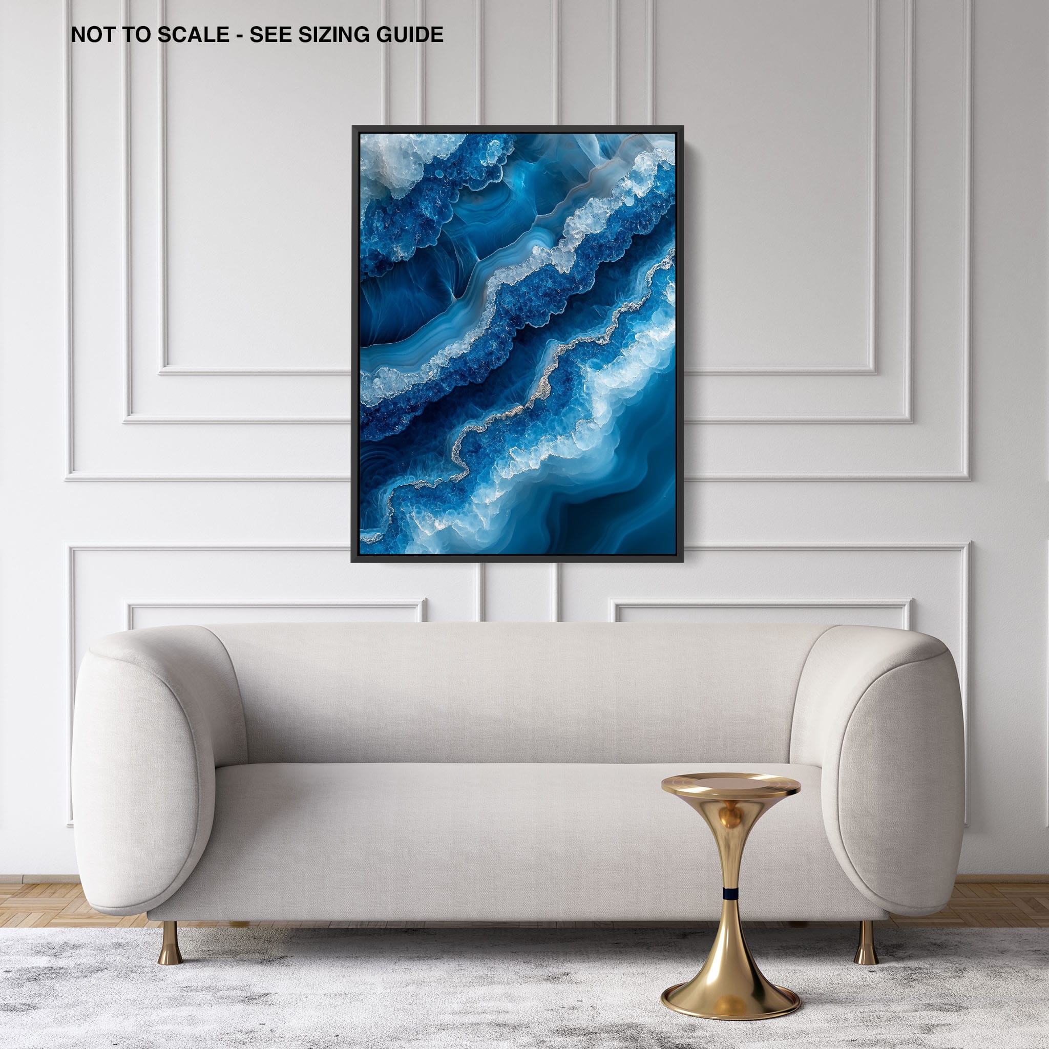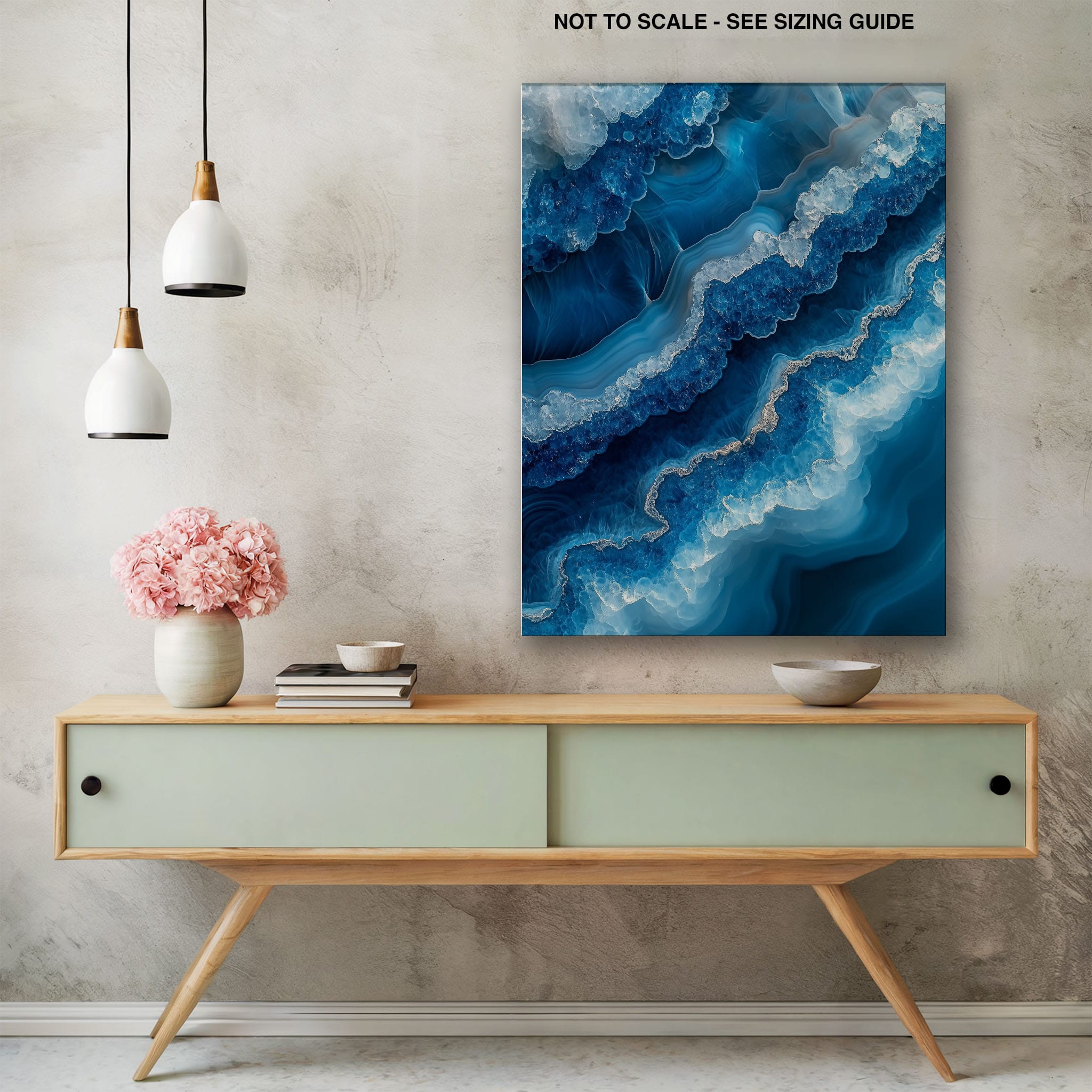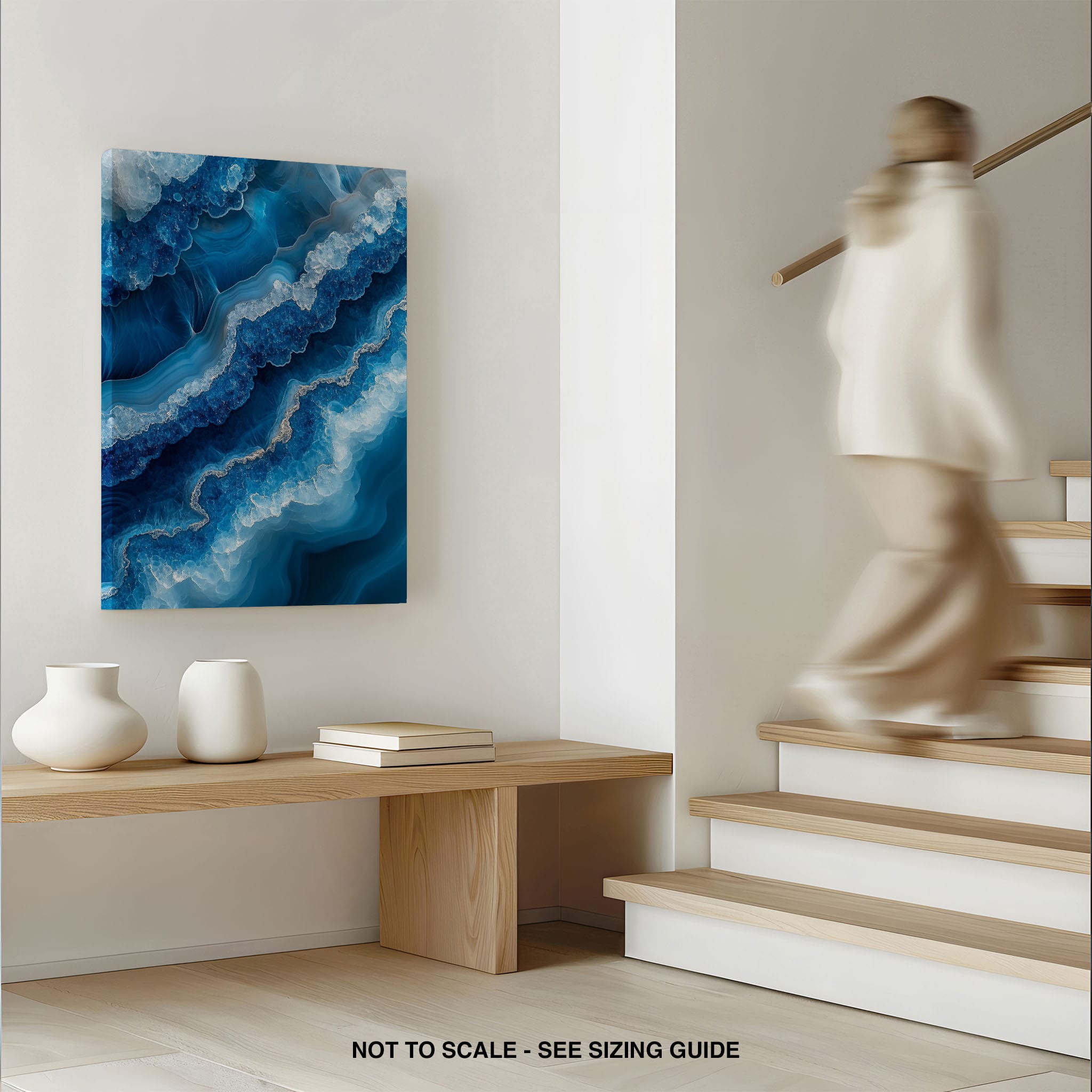 Capturing the essence of an abstract ocean, this digital illustration merges deep blues and transcendent whites to create a stunning visual of crystalline waves and oceanic abysses. The delicate balance of geometric and surreal elements invites viewers into a serene yet dynamic environment. Perfect for both modern decor and lovers of abstract art, this piece complements any space with its cool tones and imaginative design. Add this artwork to your space to introduce a touch of calm sophistication and innovative artistry.