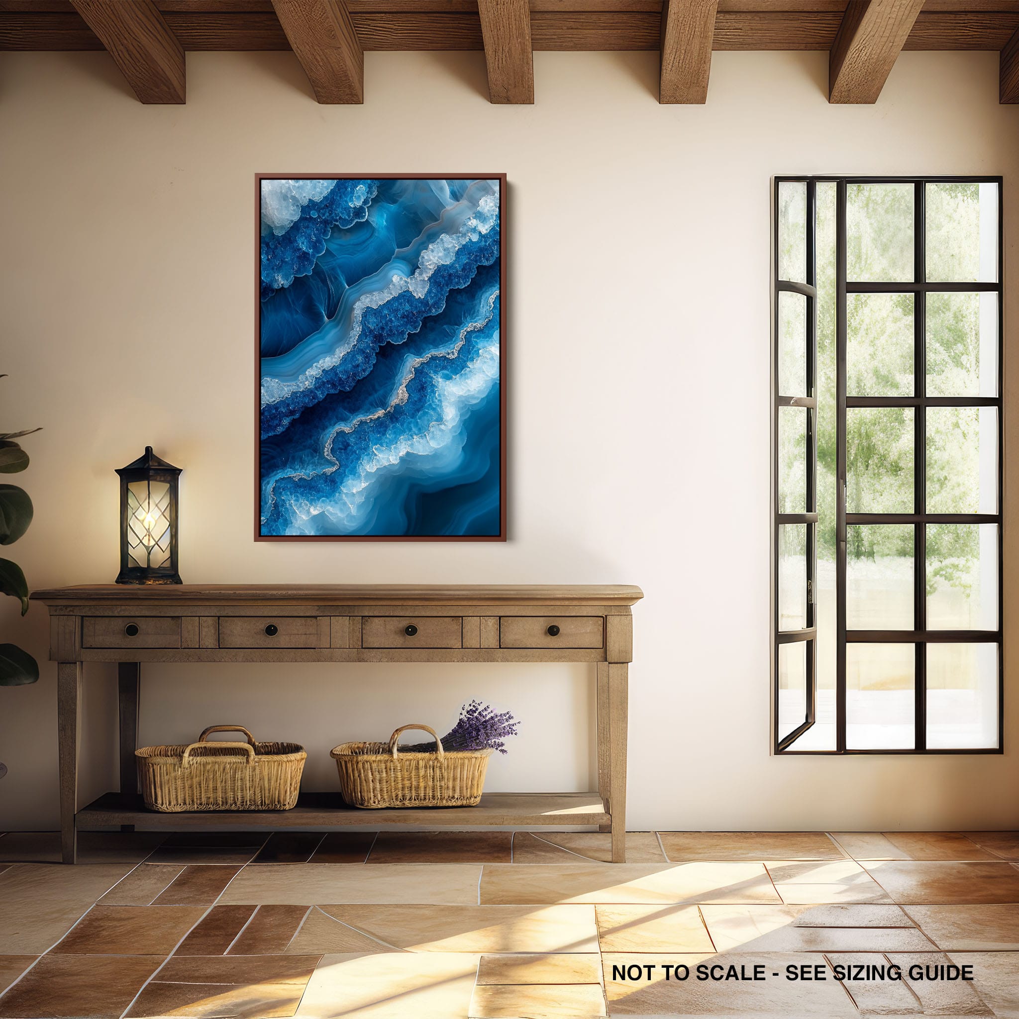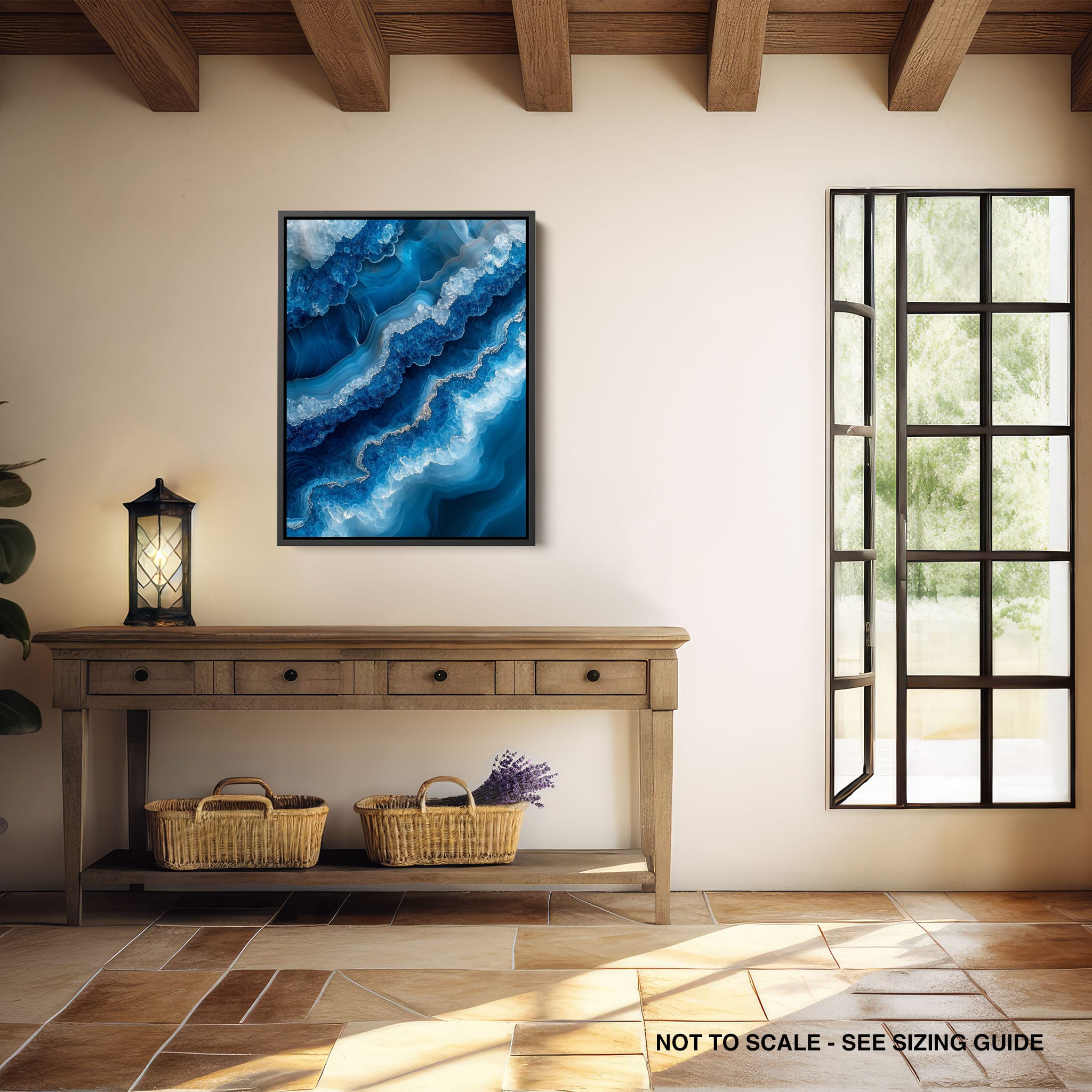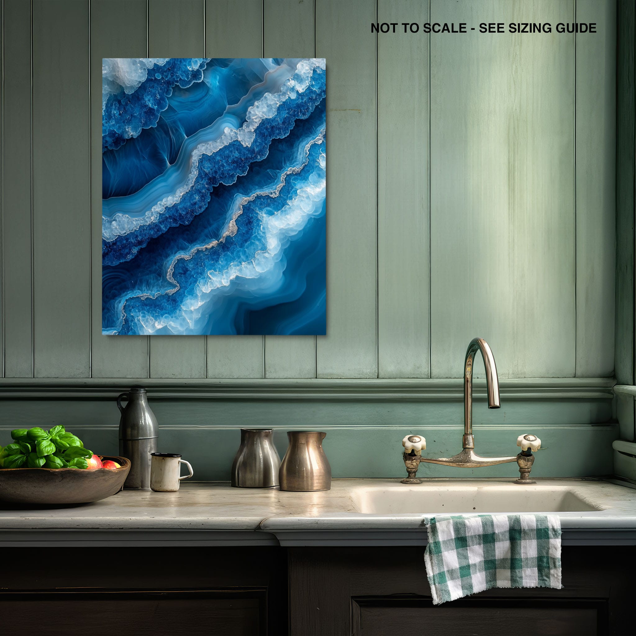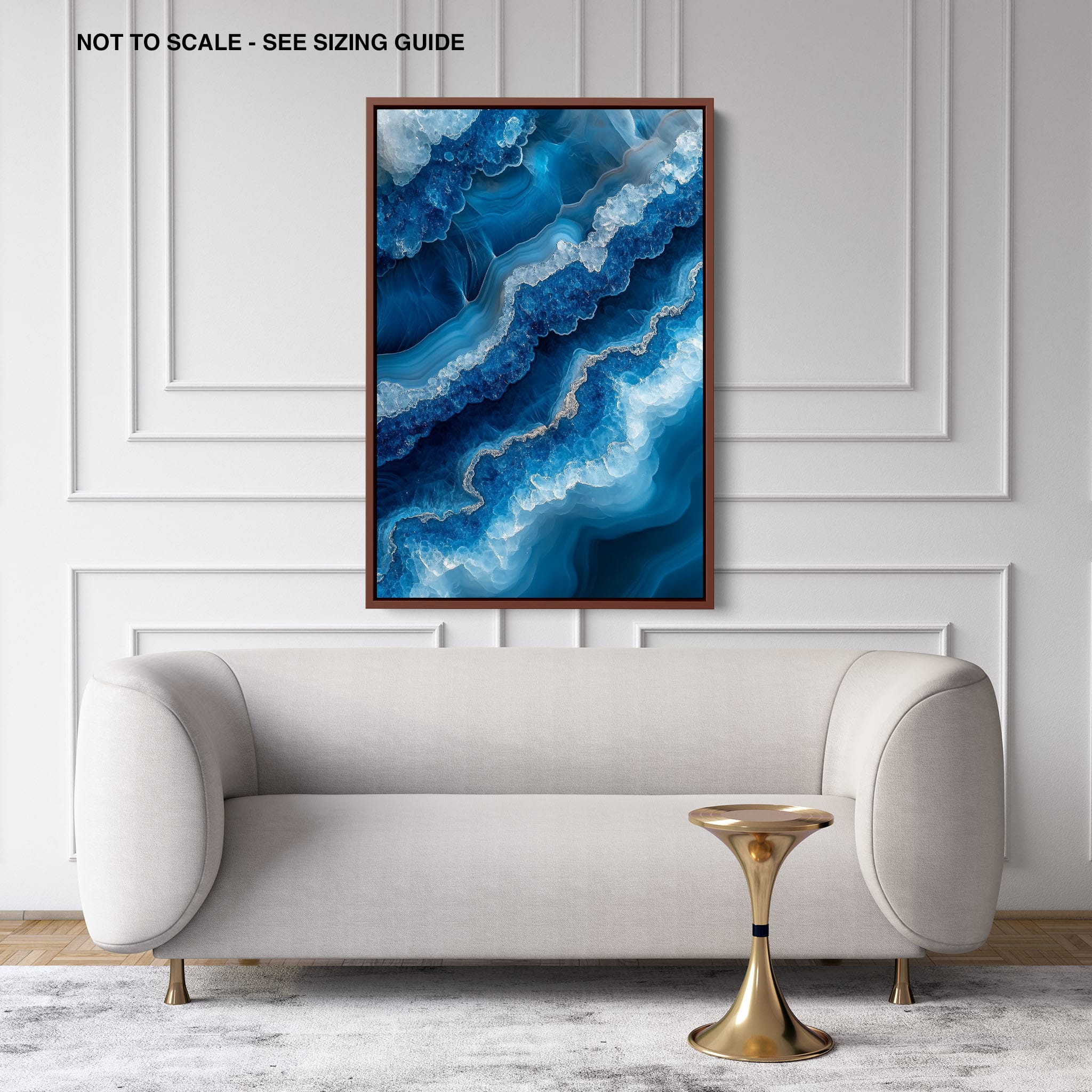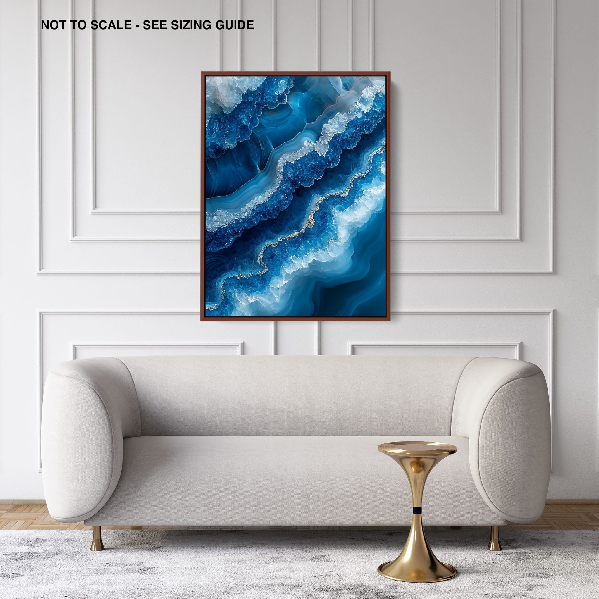 Capturing the essence of an abstract ocean, this digital illustration merges deep blues and transcendent whites to create a stunning visual of crystalline waves and oceanic abysses. The delicate balance of geometric and surreal elements invites viewers into a serene yet dynamic environment. Perfect for both modern decor and lovers of abstract art, this piece complements any space with its cool tones and imaginative design. Add this artwork to your space to introduce a touch of calm sophistication and innovative artistry.