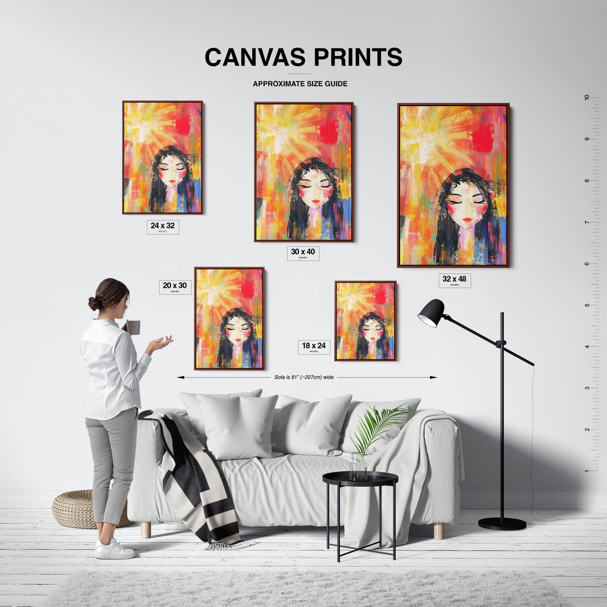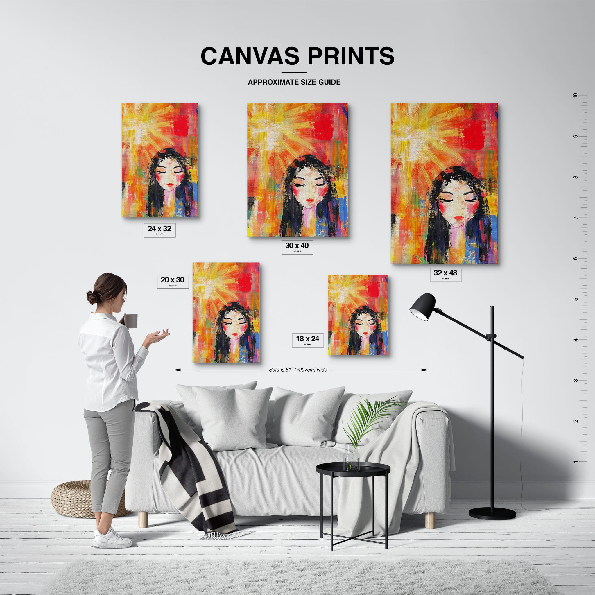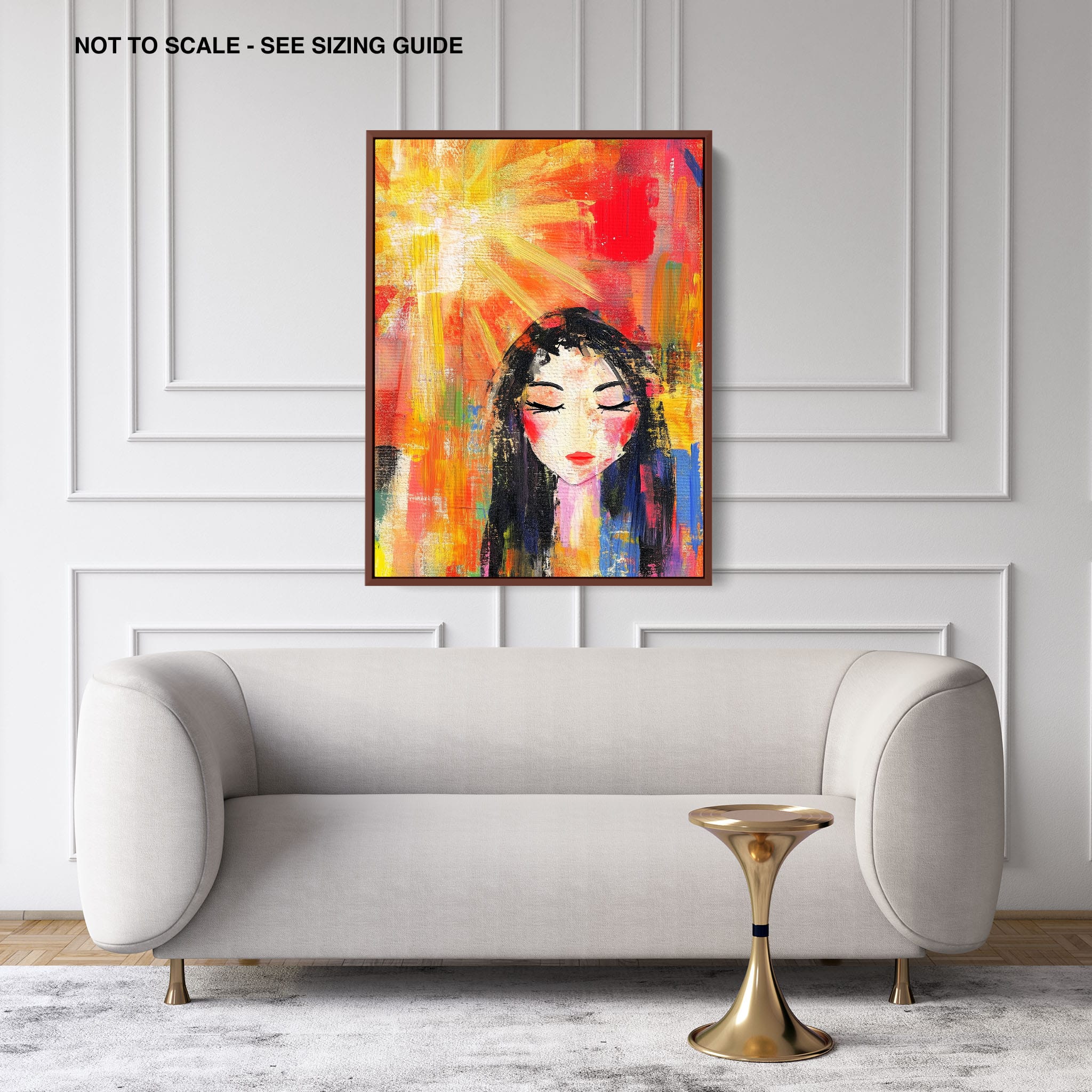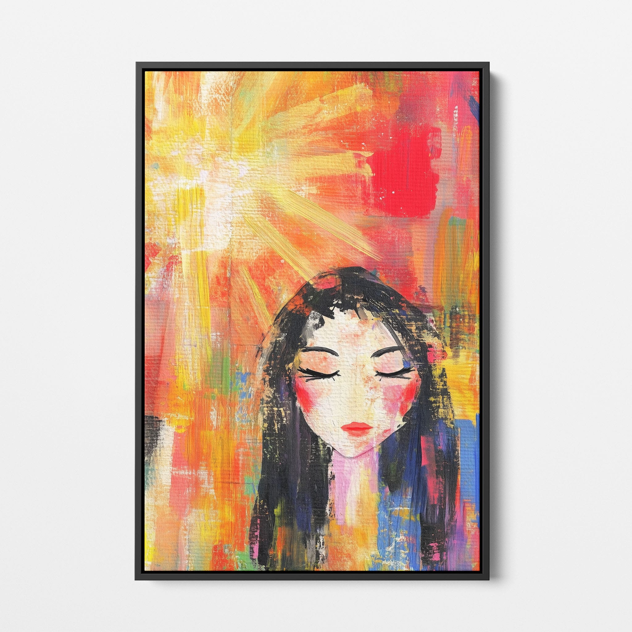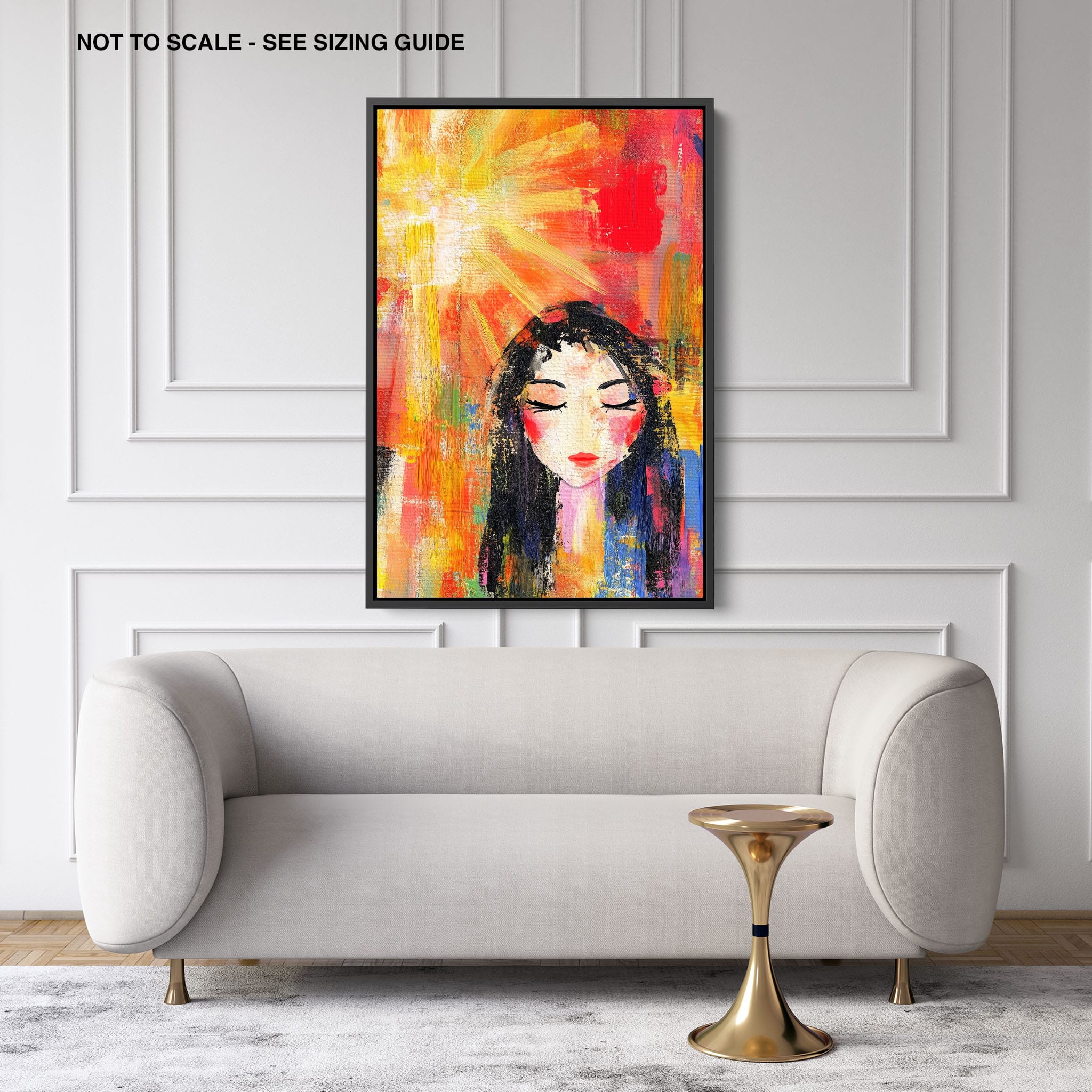This vibrant painting features a figurative representation of a woman, her face painted with a palette of fiery reds, calming blues, and sunlit yellows that evoke a deep emotional response. The expressionist technique uses bold, sweeping strokes to capture the subject's serene expression and closed eyes, suggesting a moment of introspection or dream. Ideal for modern art lovers, this painting can add a burst of color and emotion to any living space or office, drawing viewers into a world where color speaks louder than words.