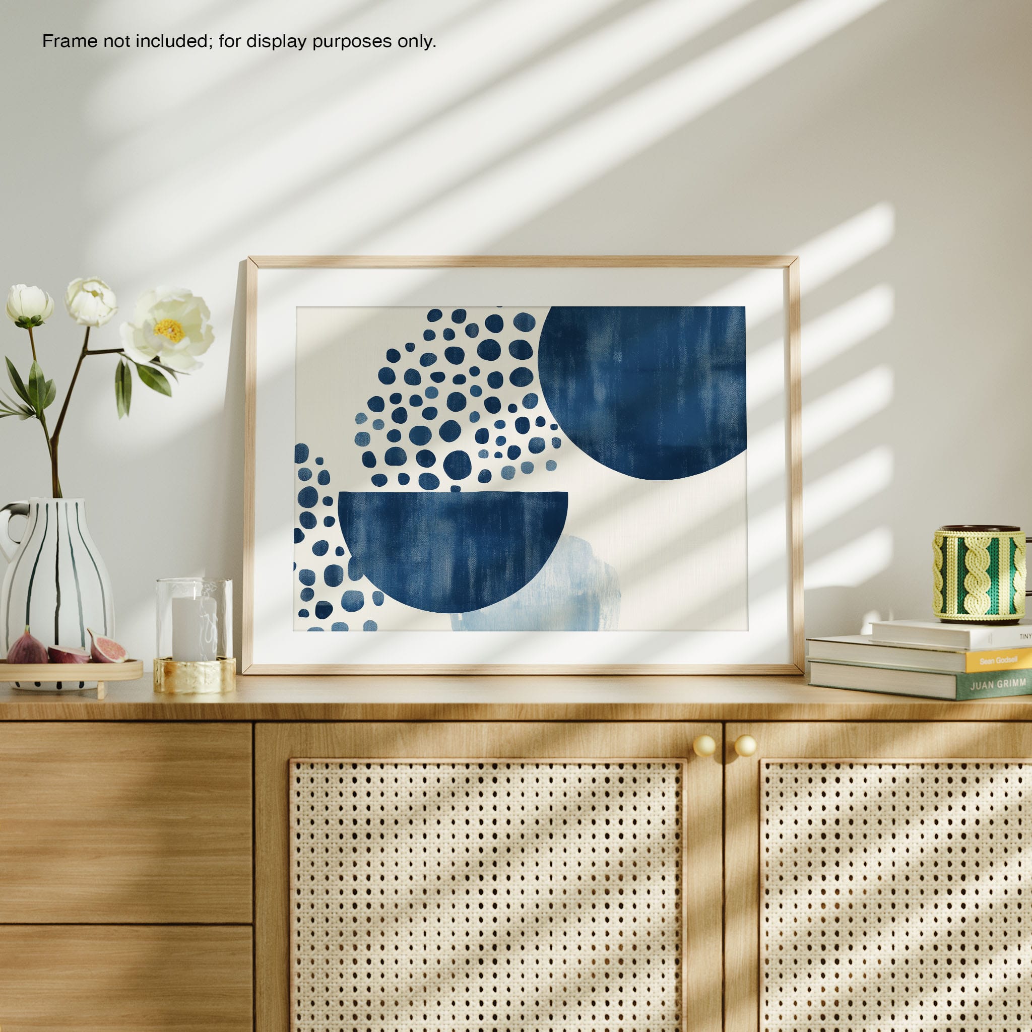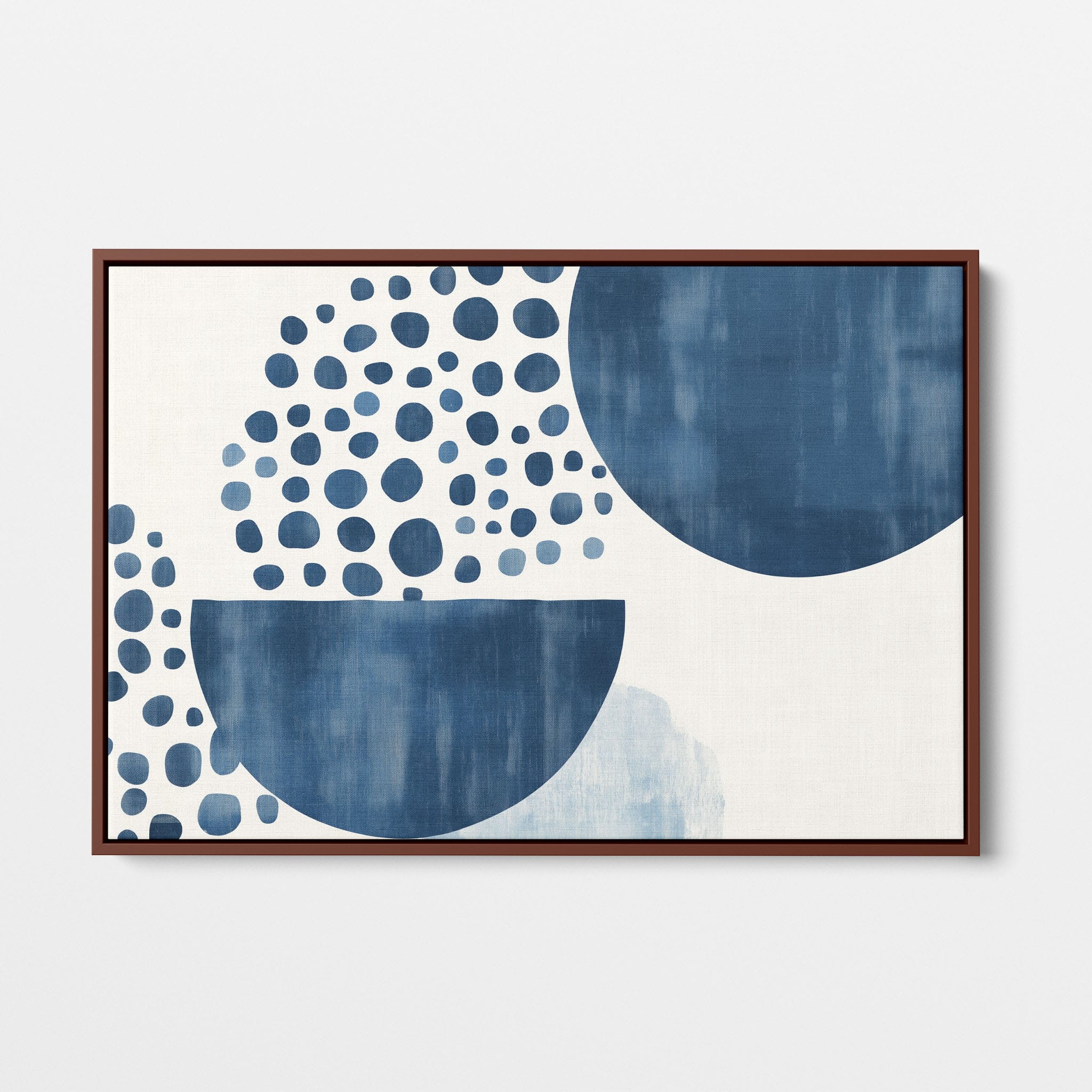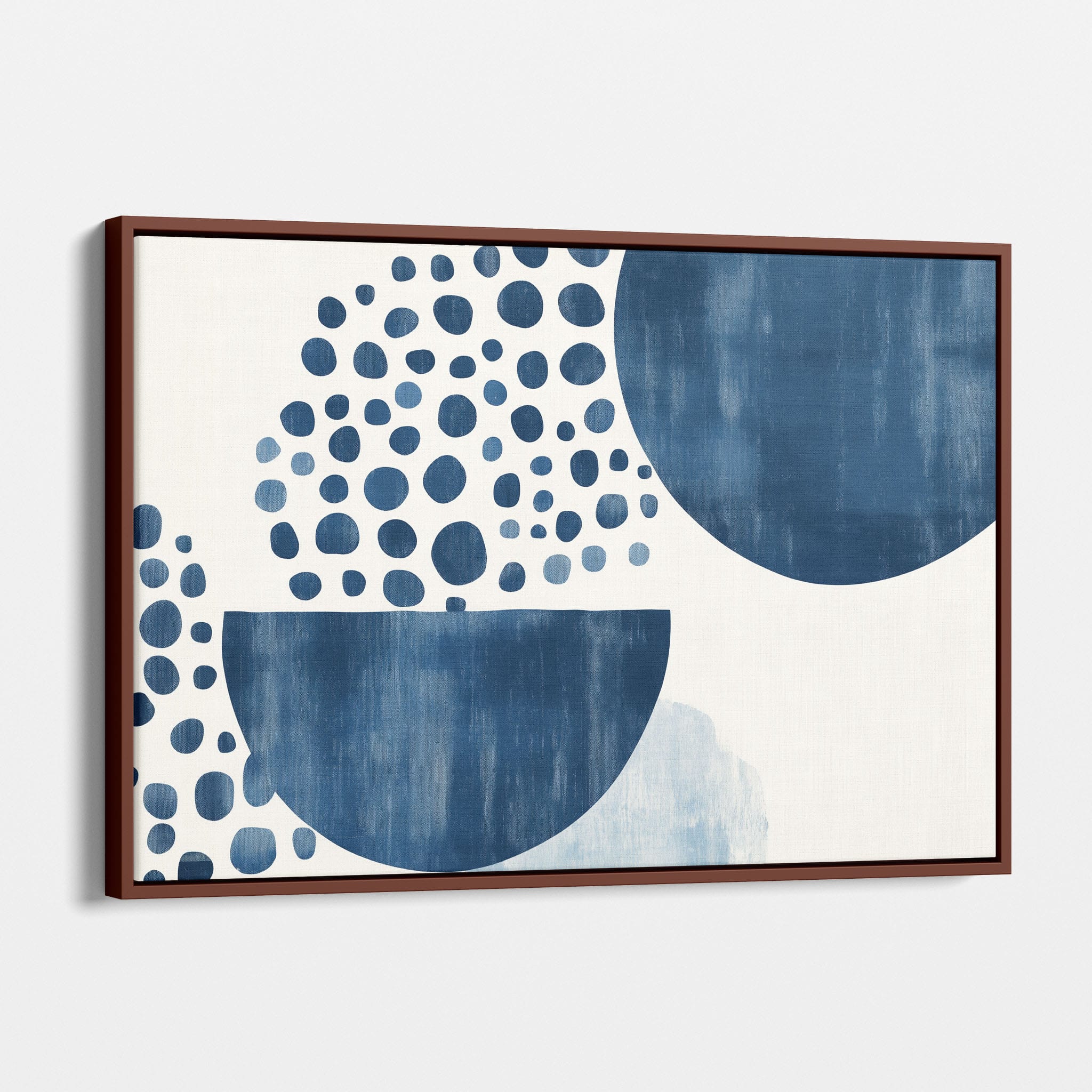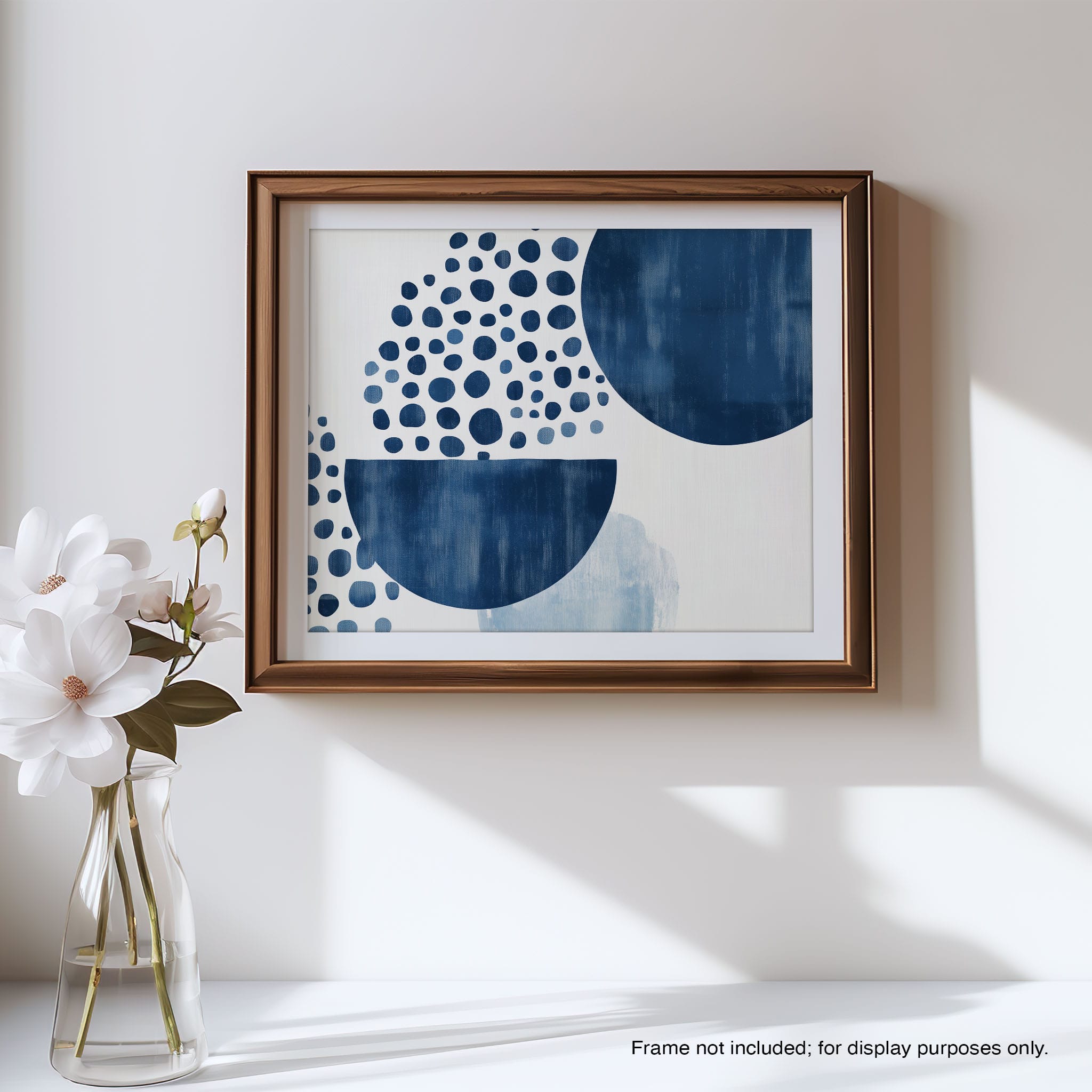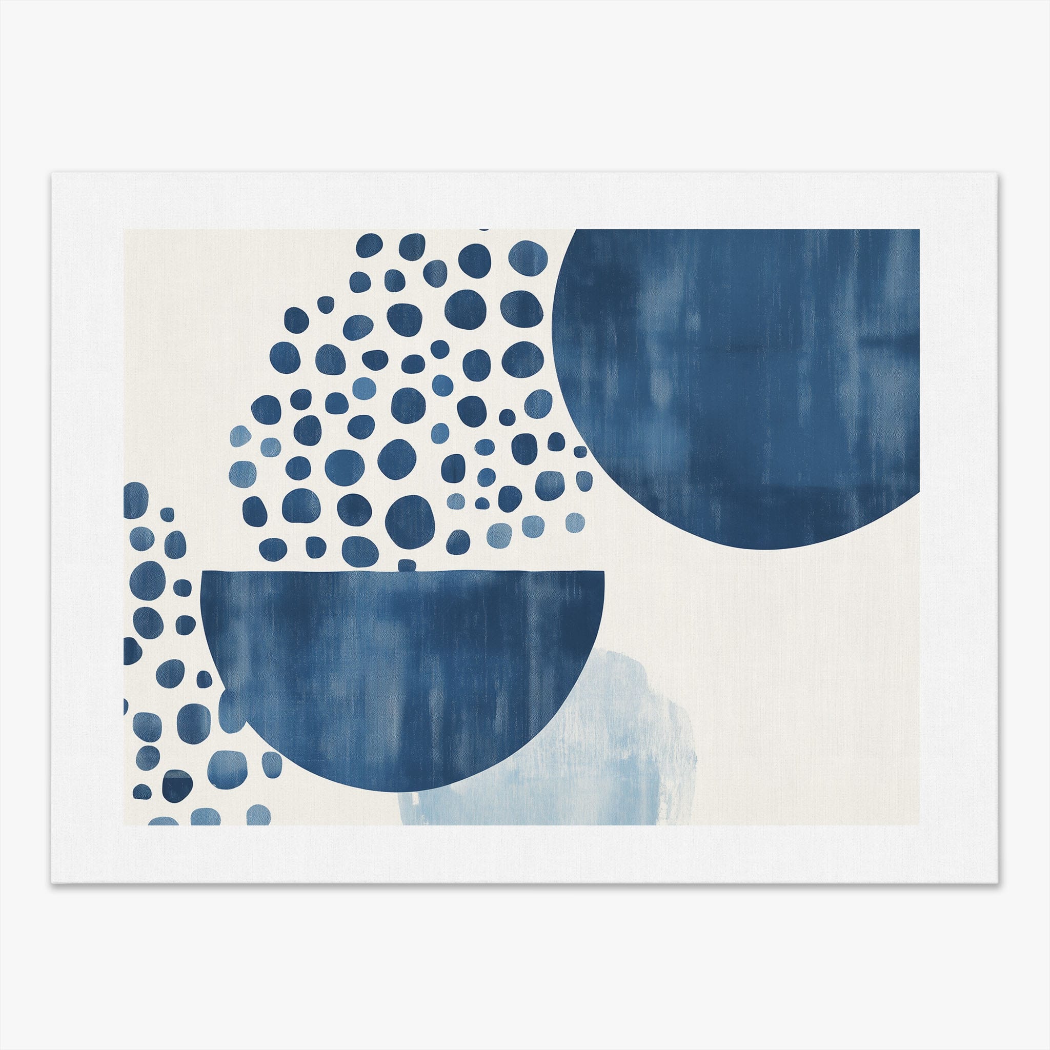 This striking digital illustration invites viewers into a world of geometric abstraction, where shapes and patterns within the Indigo depths play with perception. It showcases a stunning combination of crisp circles, sweeping curves, and deep hues of blue against a serene, muted background. Ideal for those who appreciate art that balances simplicity with visual impact, this piece elevates any living space or office, offering a contemporary vibe that's both calming and intellectually engaging. Add this work to your space for a touch of polished modernity and geometric allure.