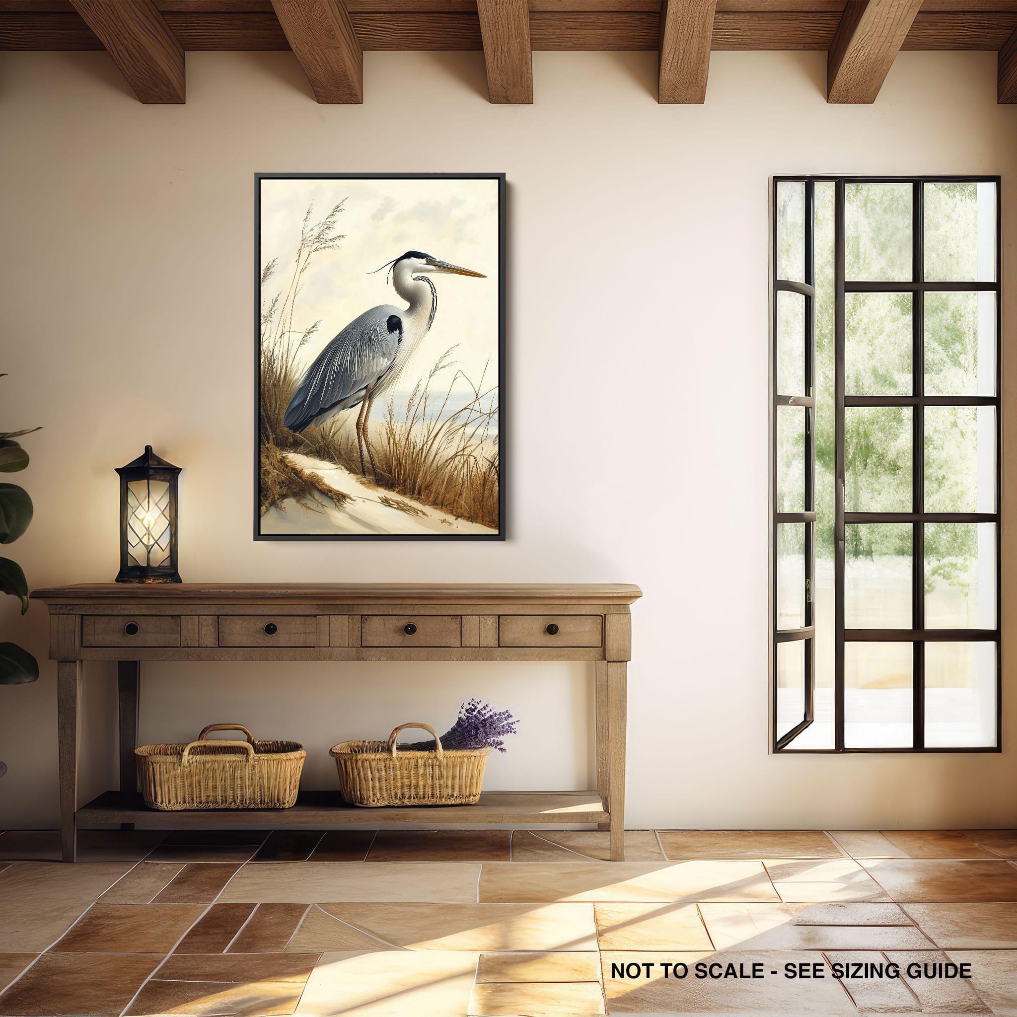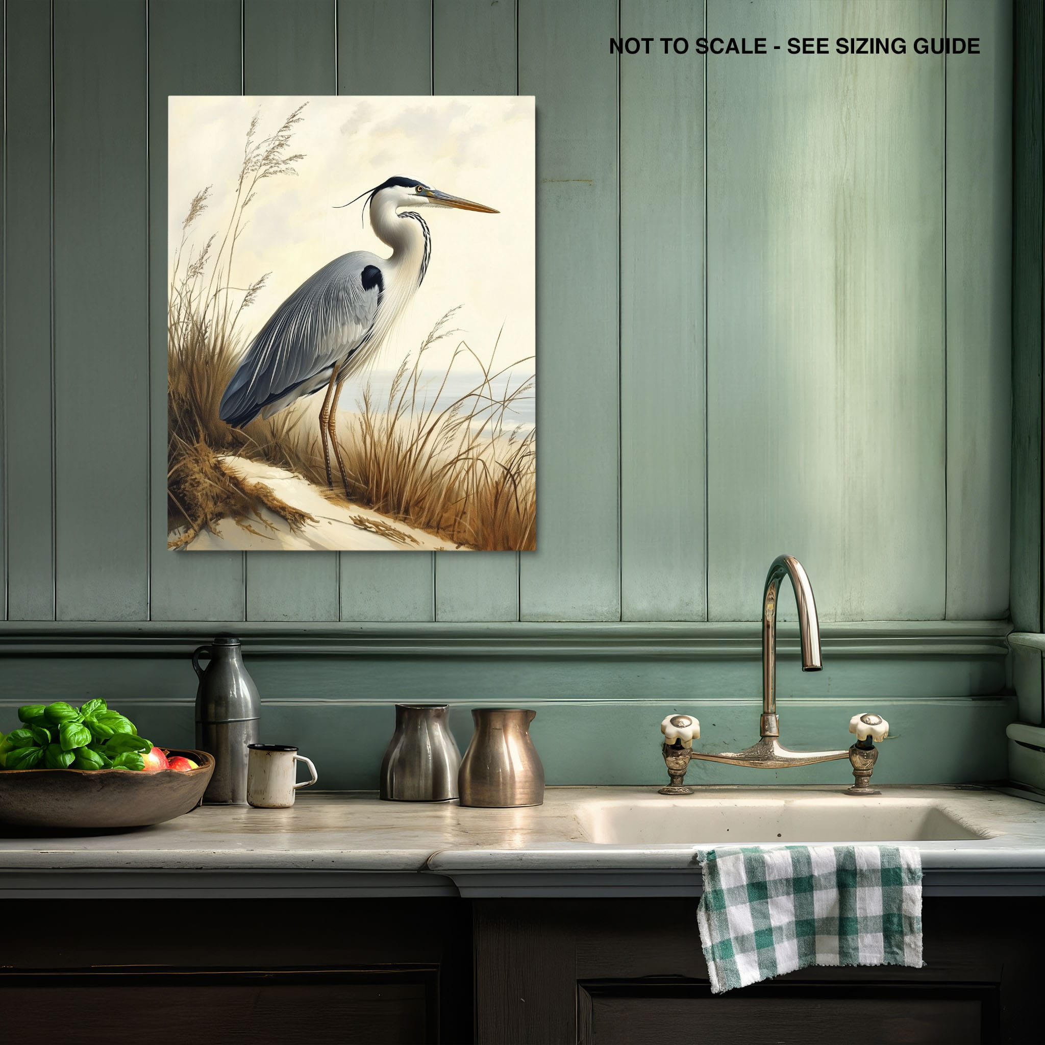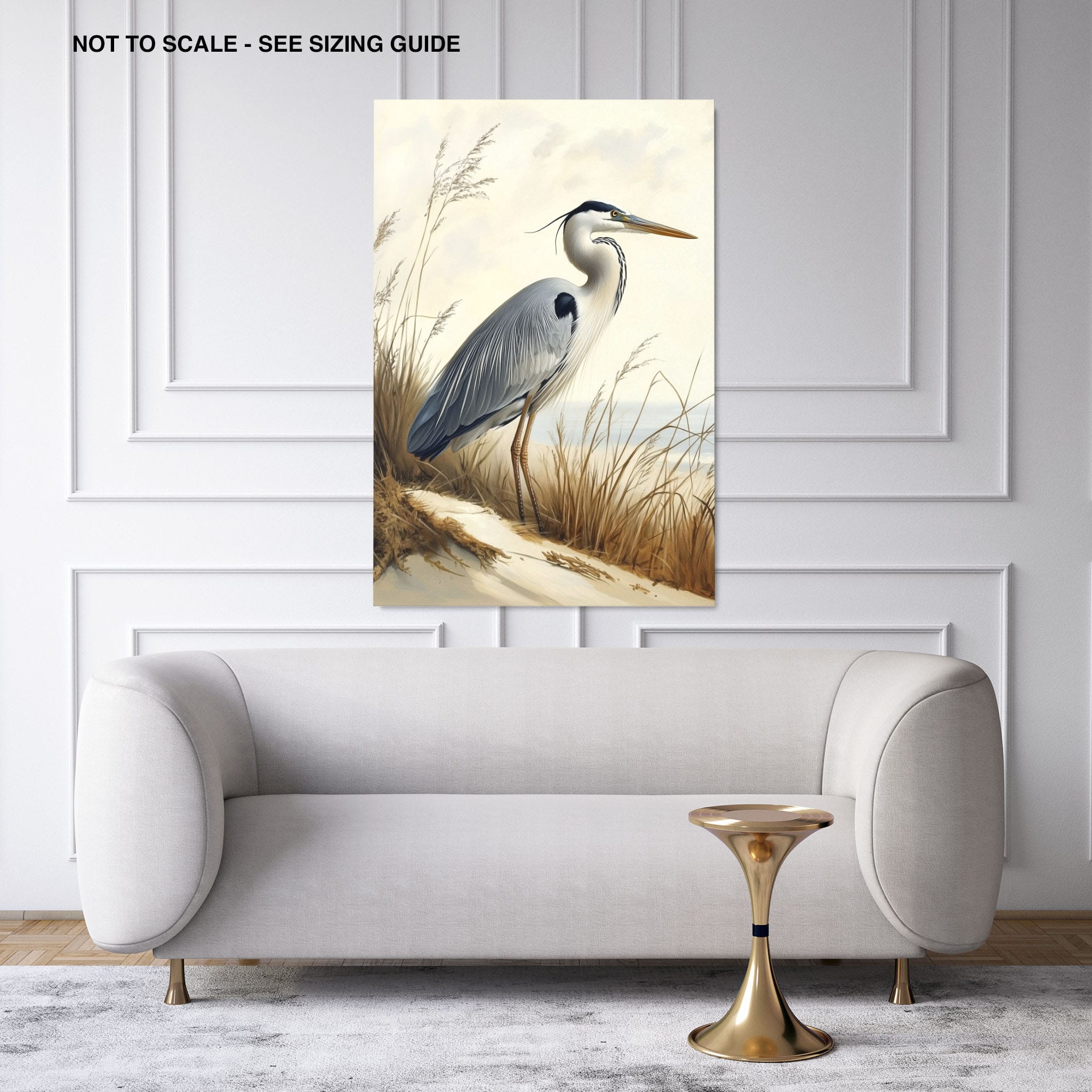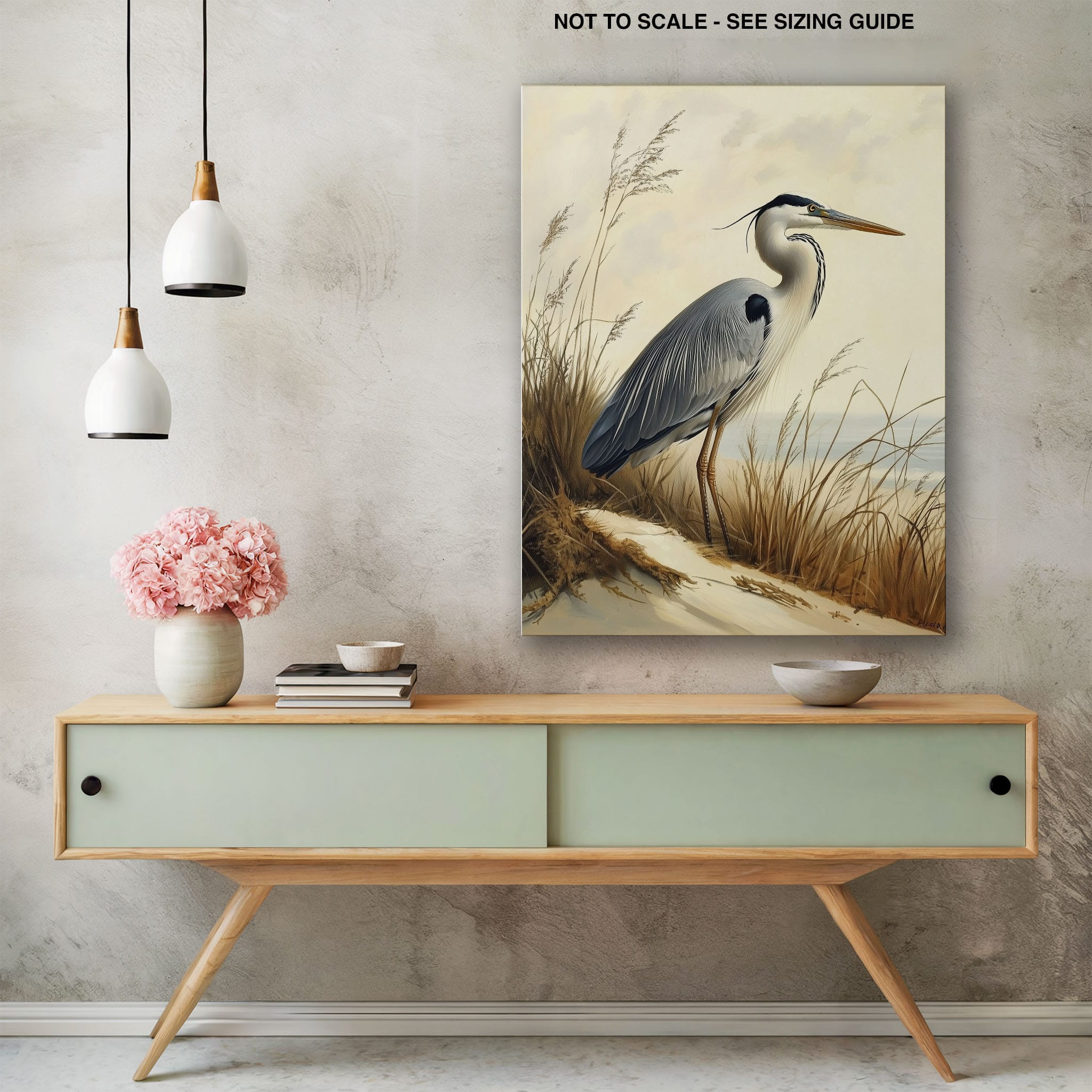 Introduce a touch of grace to your space with Elegant Heron Moment. This exquisite digital illustration captures the poised elegance of a heron standing amidst a tranquil marshland. The detailed feathers, delicate textures, and natural colors blend seamlessly, creating a life-like portrayal that appeals to wildlife and nature enthusiasts. Perfect for adding a serene touch to your home or office, this piece embodies the realistic beauty of nature, infusing any room with calmness and sophistication. Make a statement with this captivating artwork, and let it transport you to a peaceful sanctuary. Ideal for those who appreciate refined realism and the tranquil beauty of coastal landscapes.