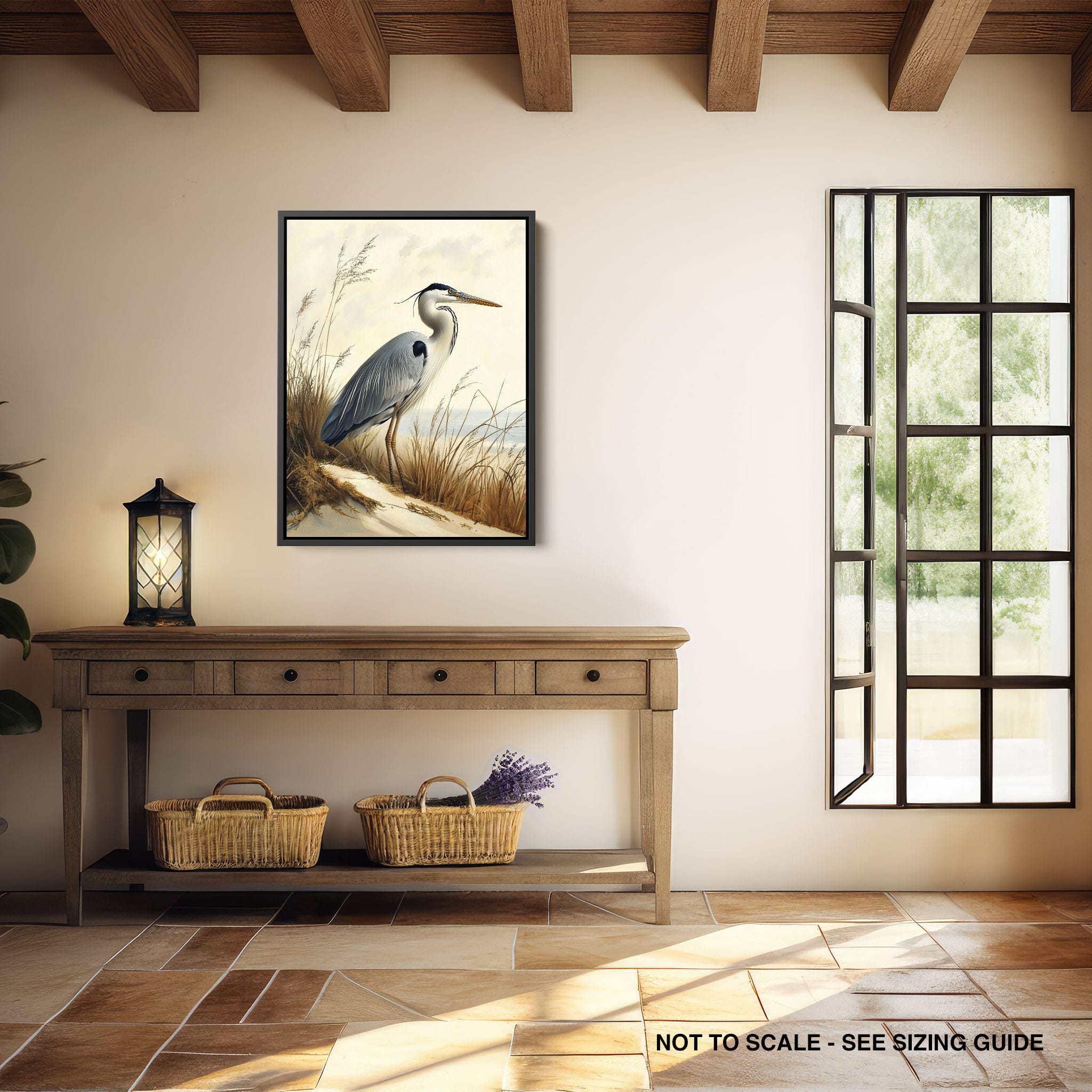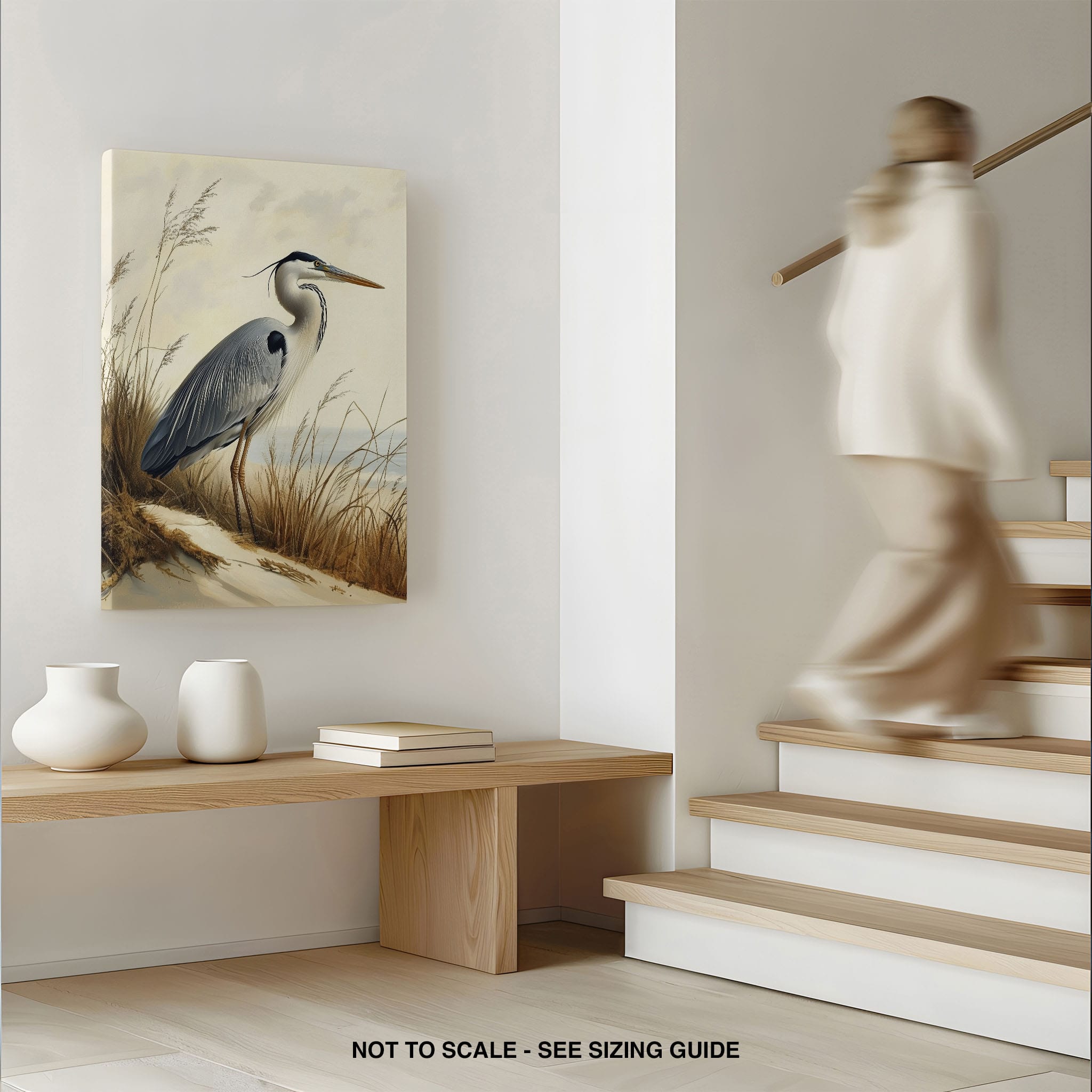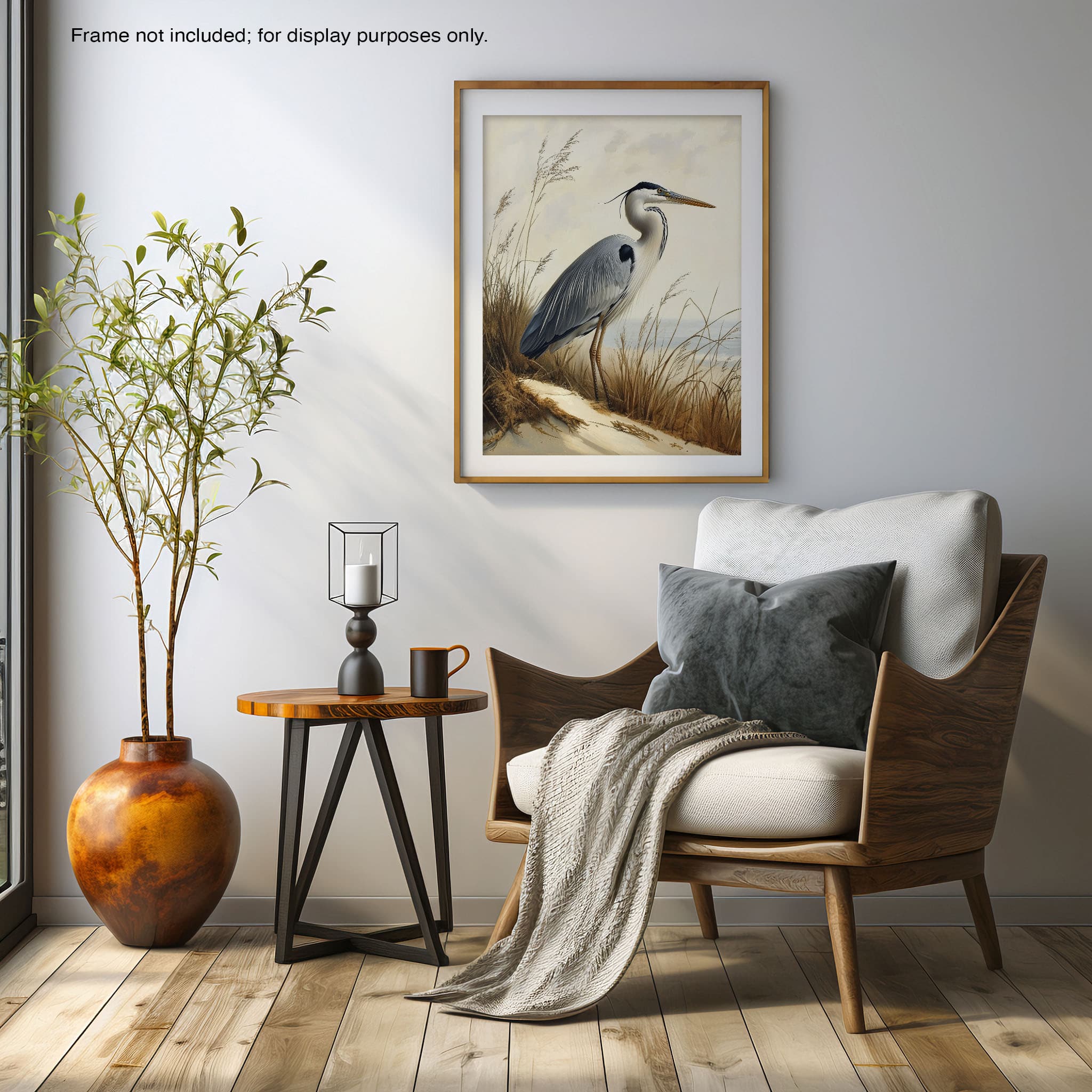 Introduce a touch of grace to your space with Elegant Heron Moment. This exquisite digital illustration captures the poised elegance of a heron standing amidst a tranquil marshland. The detailed feathers, delicate textures, and natural colors blend seamlessly, creating a life-like portrayal that appeals to wildlife and nature enthusiasts. Perfect for adding a serene touch to your home or office, this piece embodies the realistic beauty of nature, infusing any room with calmness and sophistication. Make a statement with this captivating artwork, and let it transport you to a peaceful sanctuary. Ideal for those who appreciate refined realism and the tranquil beauty of coastal landscapes.