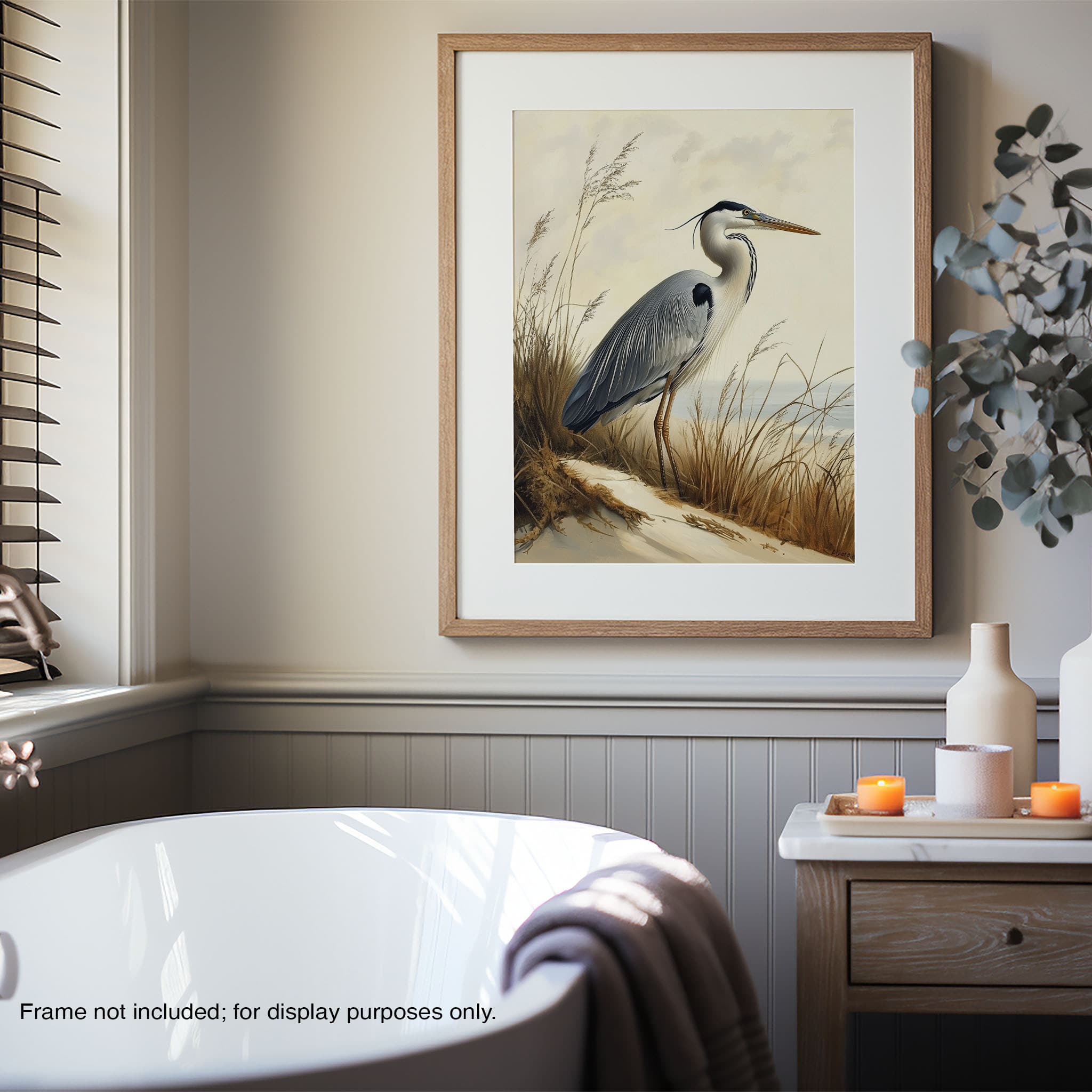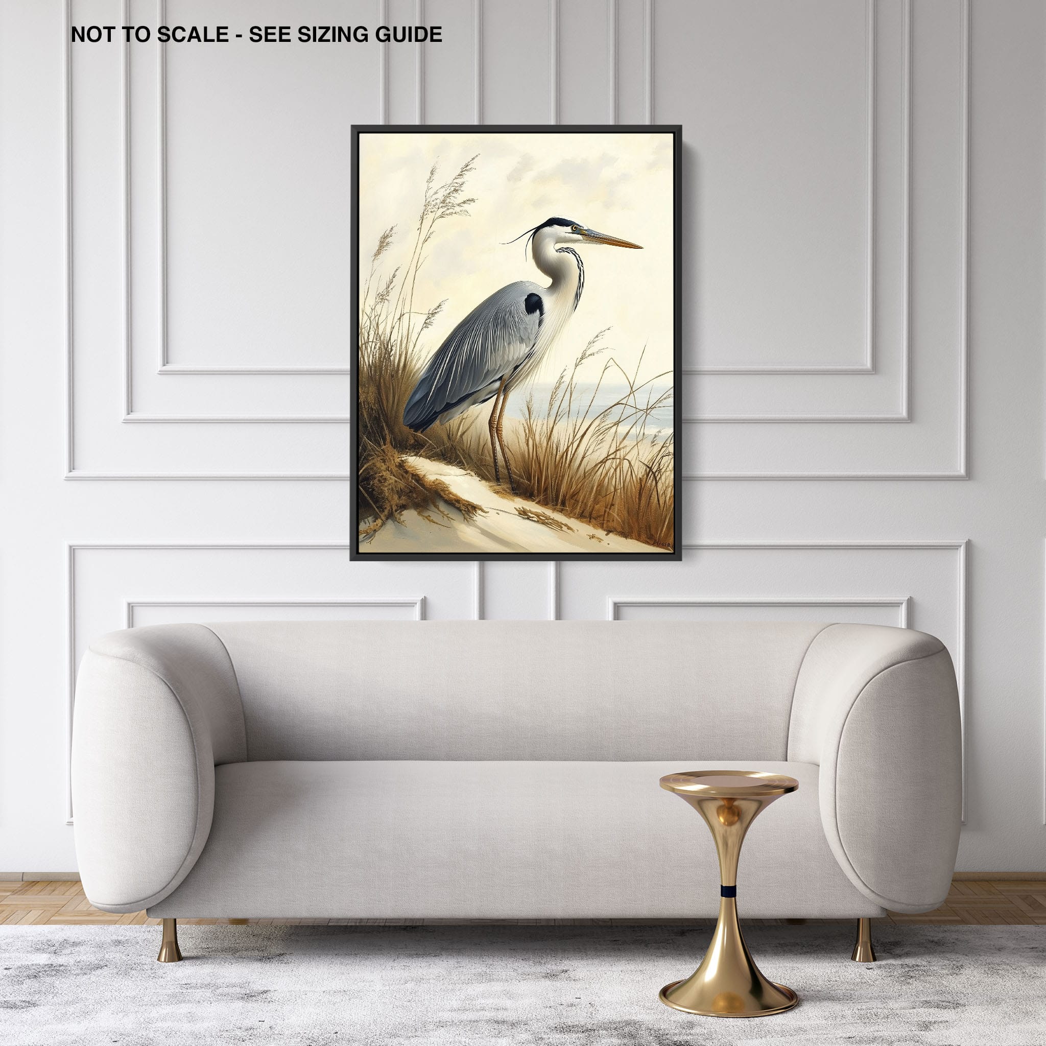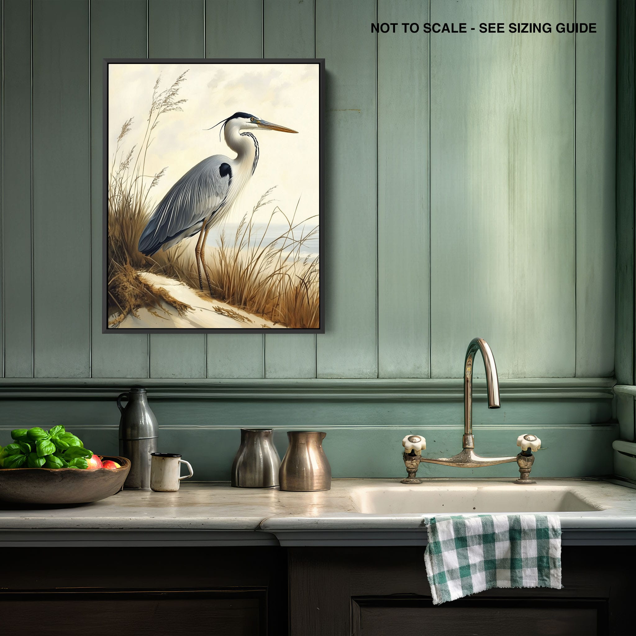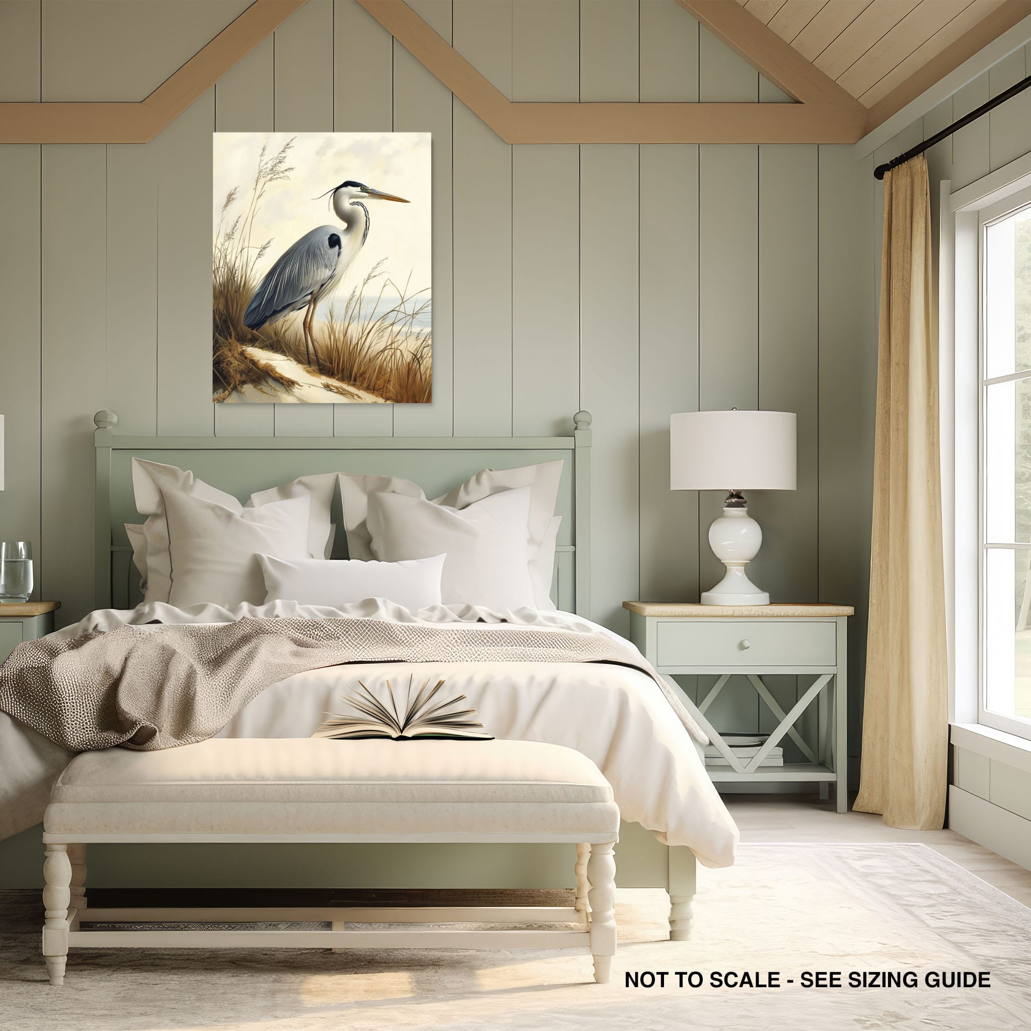 Introduce a touch of grace to your space with Elegant Heron Moment. This exquisite digital illustration captures the poised elegance of a heron standing amidst a tranquil marshland. The detailed feathers, delicate textures, and natural colors blend seamlessly, creating a life-like portrayal that appeals to wildlife and nature enthusiasts. Perfect for adding a serene touch to your home or office, this piece embodies the realistic beauty of nature, infusing any room with calmness and sophistication. Make a statement with this captivating artwork, and let it transport you to a peaceful sanctuary. Ideal for those who appreciate refined realism and the tranquil beauty of coastal landscapes.