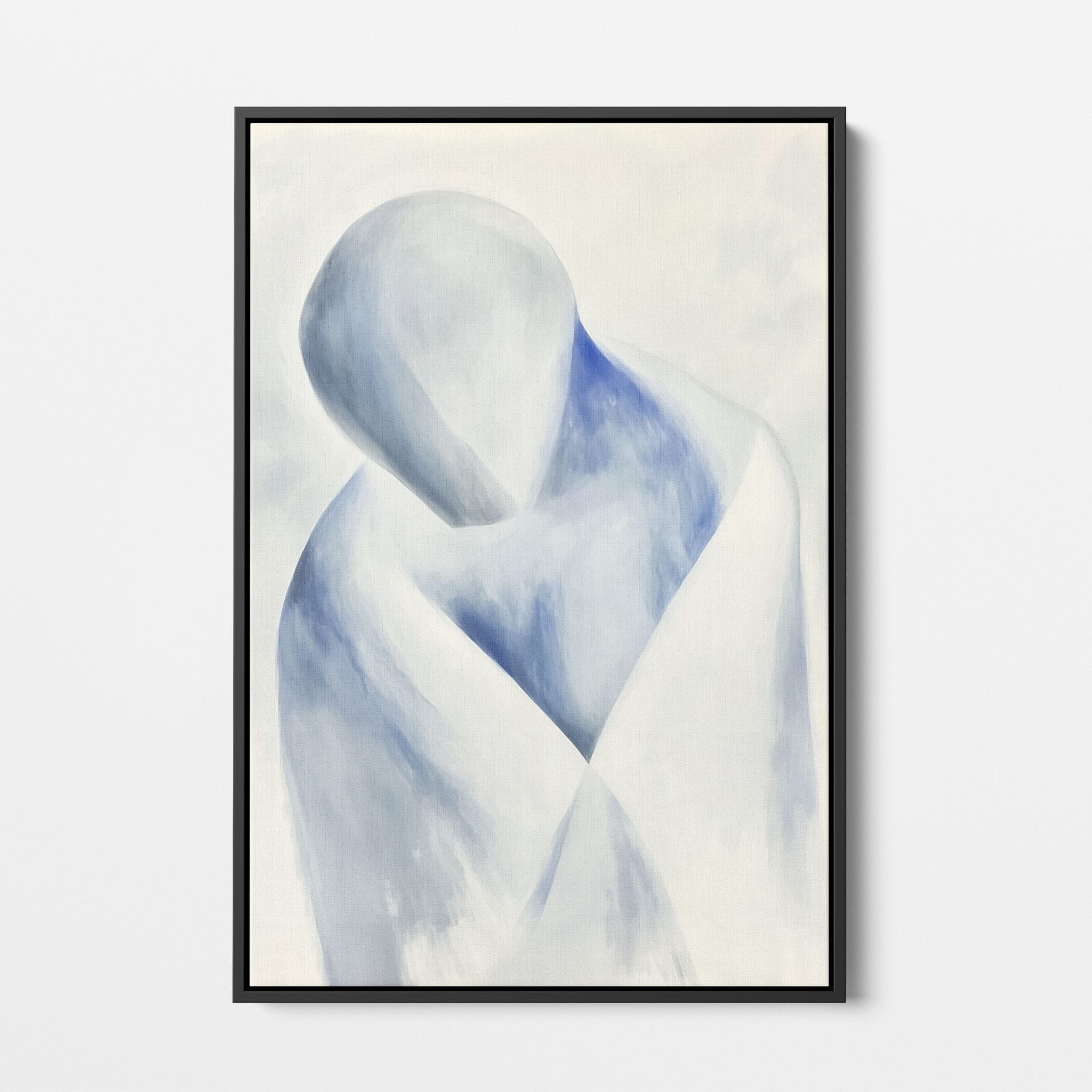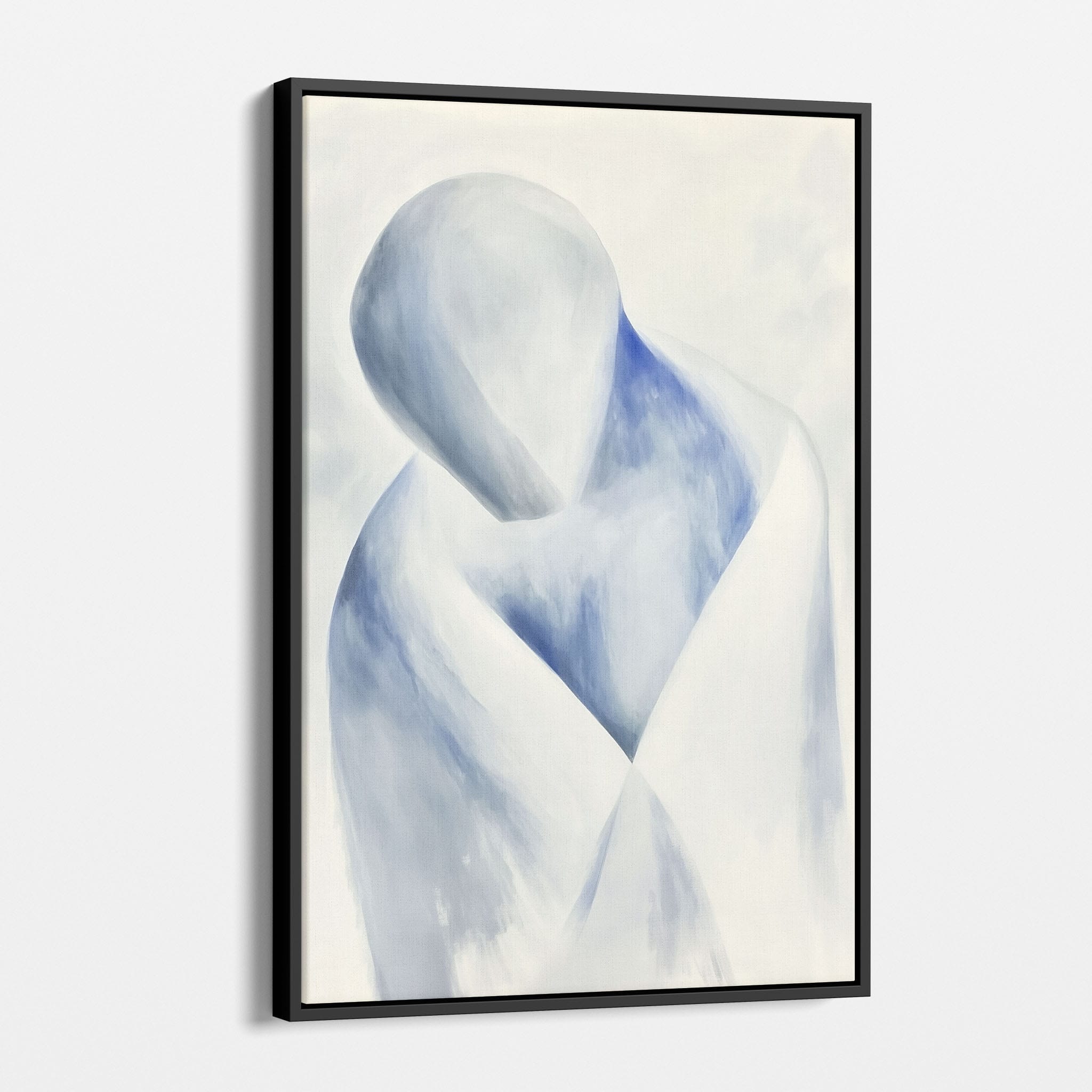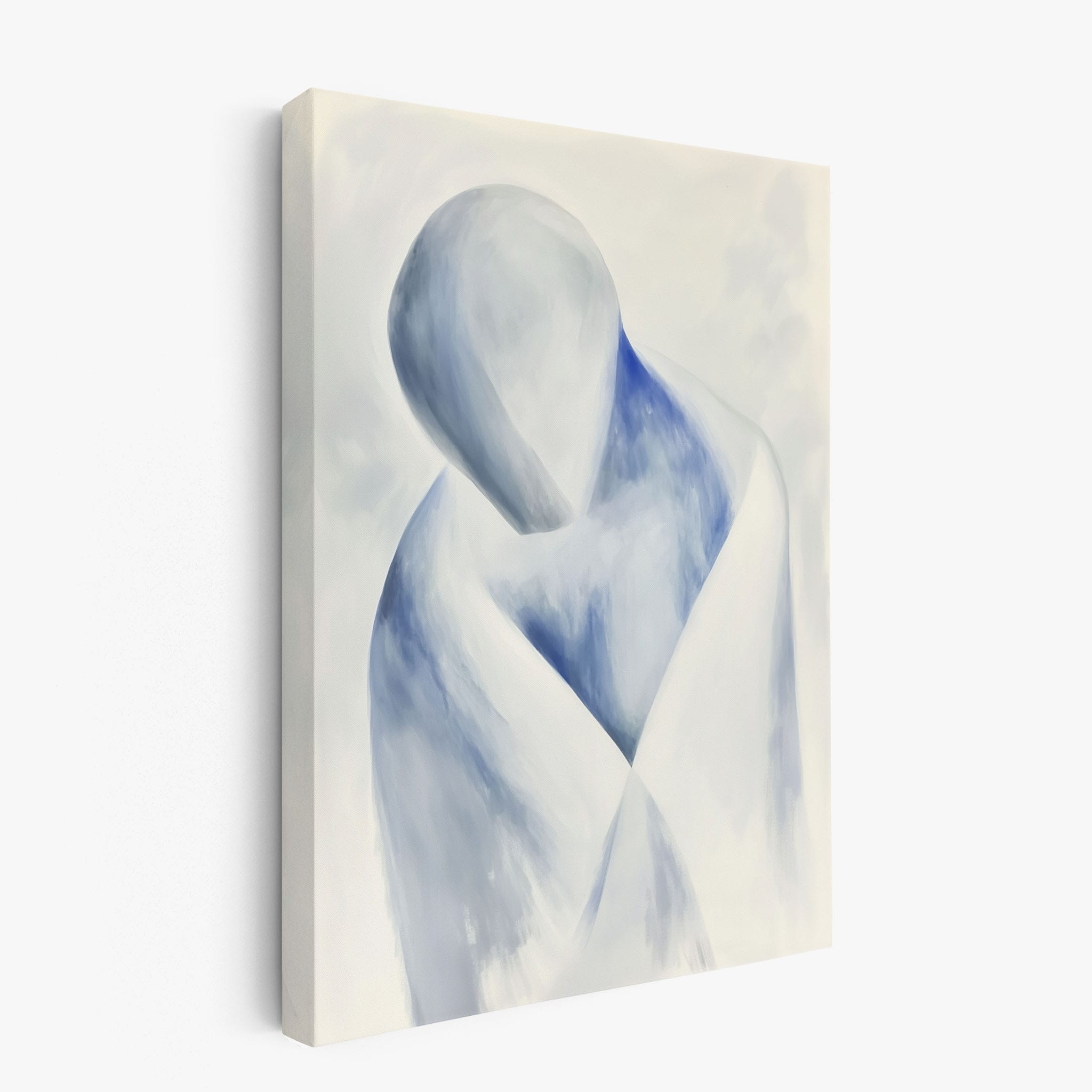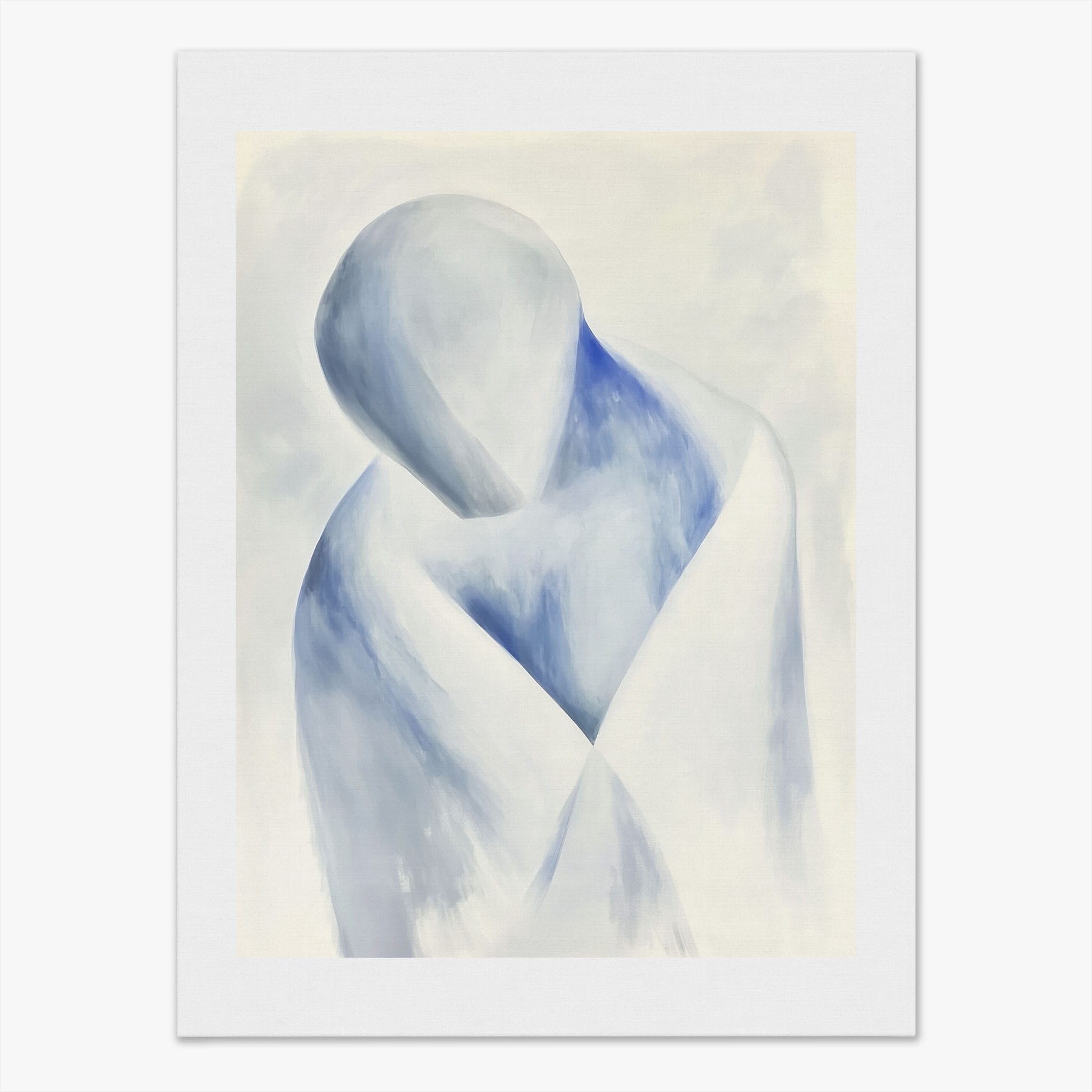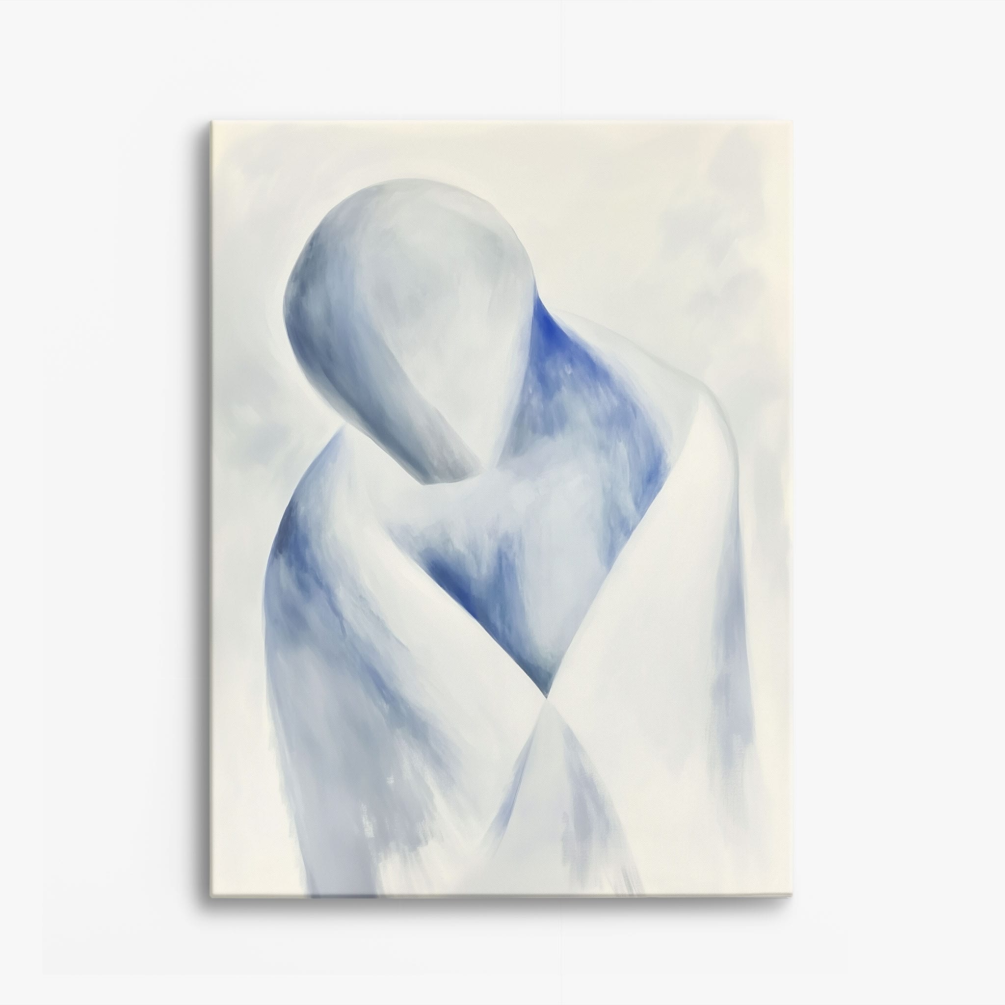 This striking painting features a soft, abstract depiction of a human figure enveloped in hues of calming blue and neutral whites, suggesting a serene introspective moment. The artist skillfully employs a minimalist approach, capturing emotion and presence through uncomplicated strokes and a focused color palette. Perfect for modern home decor, this artwork invites viewers into a tranquil state of mind, enhancing any living space with its peaceful abstraction and contemporary charm. Ideal for art lovers seeking simplicity with a touch of depth in their art collection.