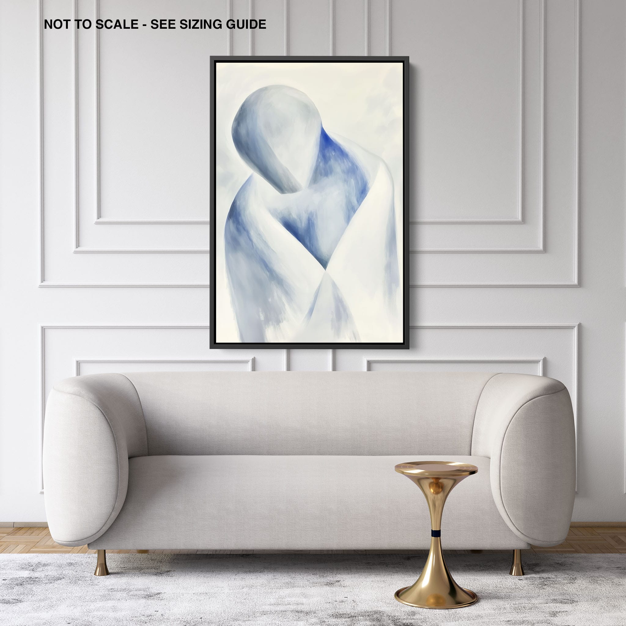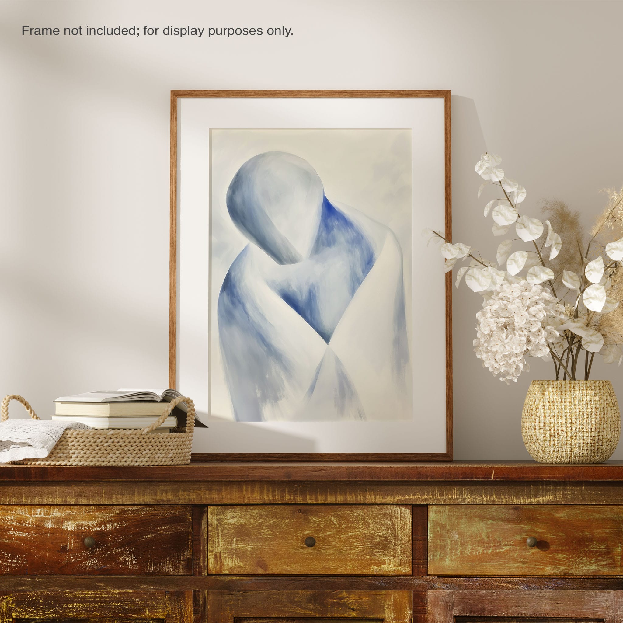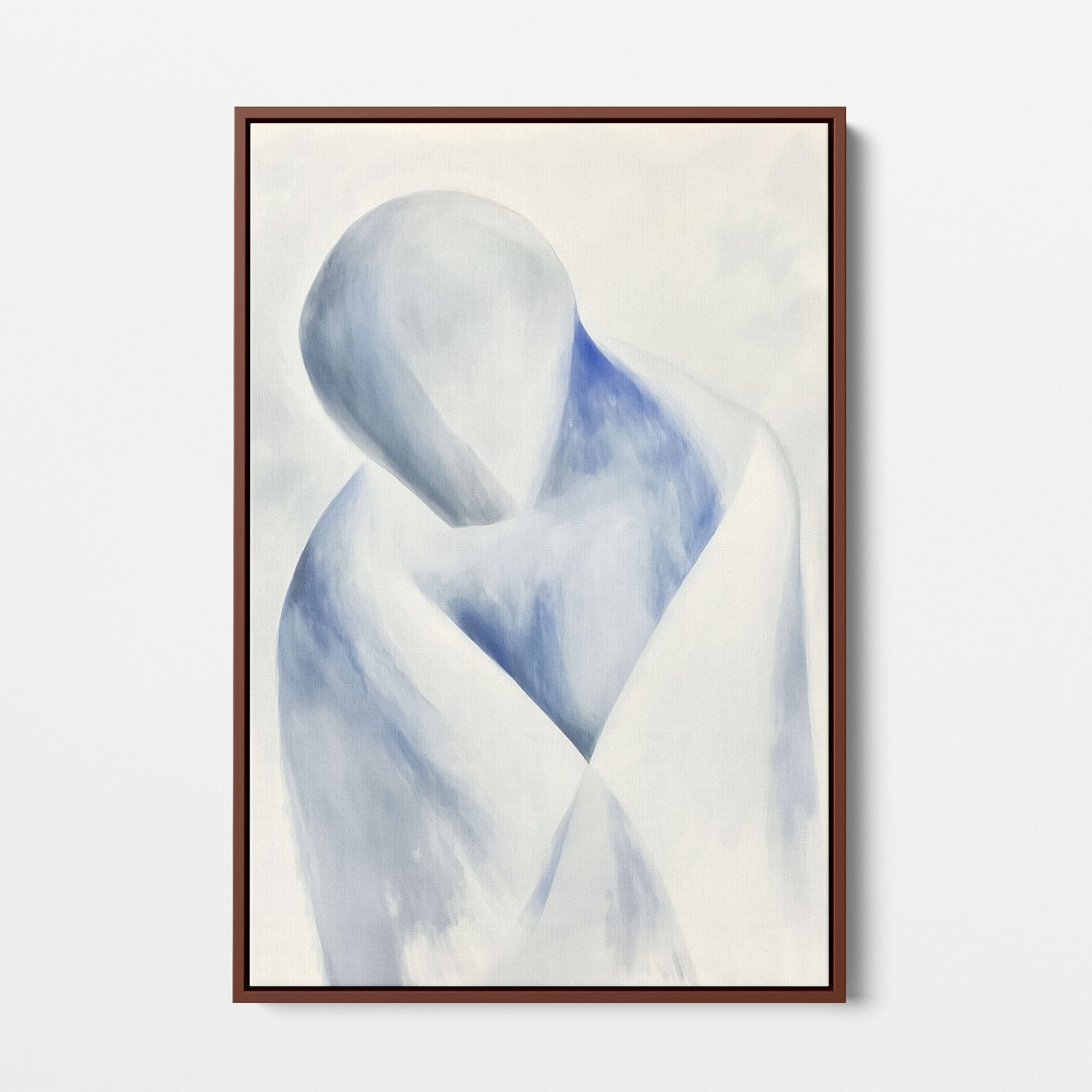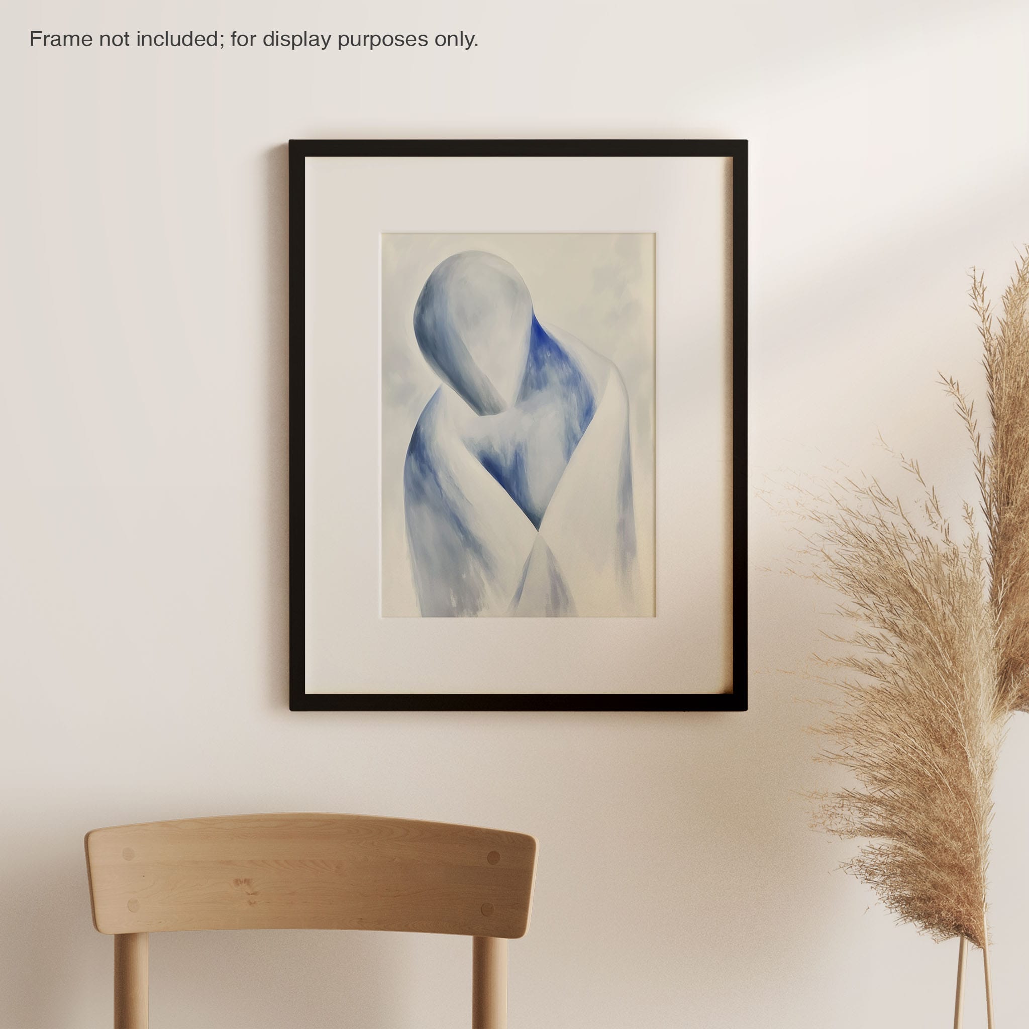 This striking painting features a soft, abstract depiction of a human figure enveloped in hues of calming blue and neutral whites, suggesting a serene introspective moment. The artist skillfully employs a minimalist approach, capturing emotion and presence through uncomplicated strokes and a focused color palette. Perfect for modern home decor, this artwork invites viewers into a tranquil state of mind, enhancing any living space with its peaceful abstraction and contemporary charm. Ideal for art lovers seeking simplicity with a touch of depth in their art collection.