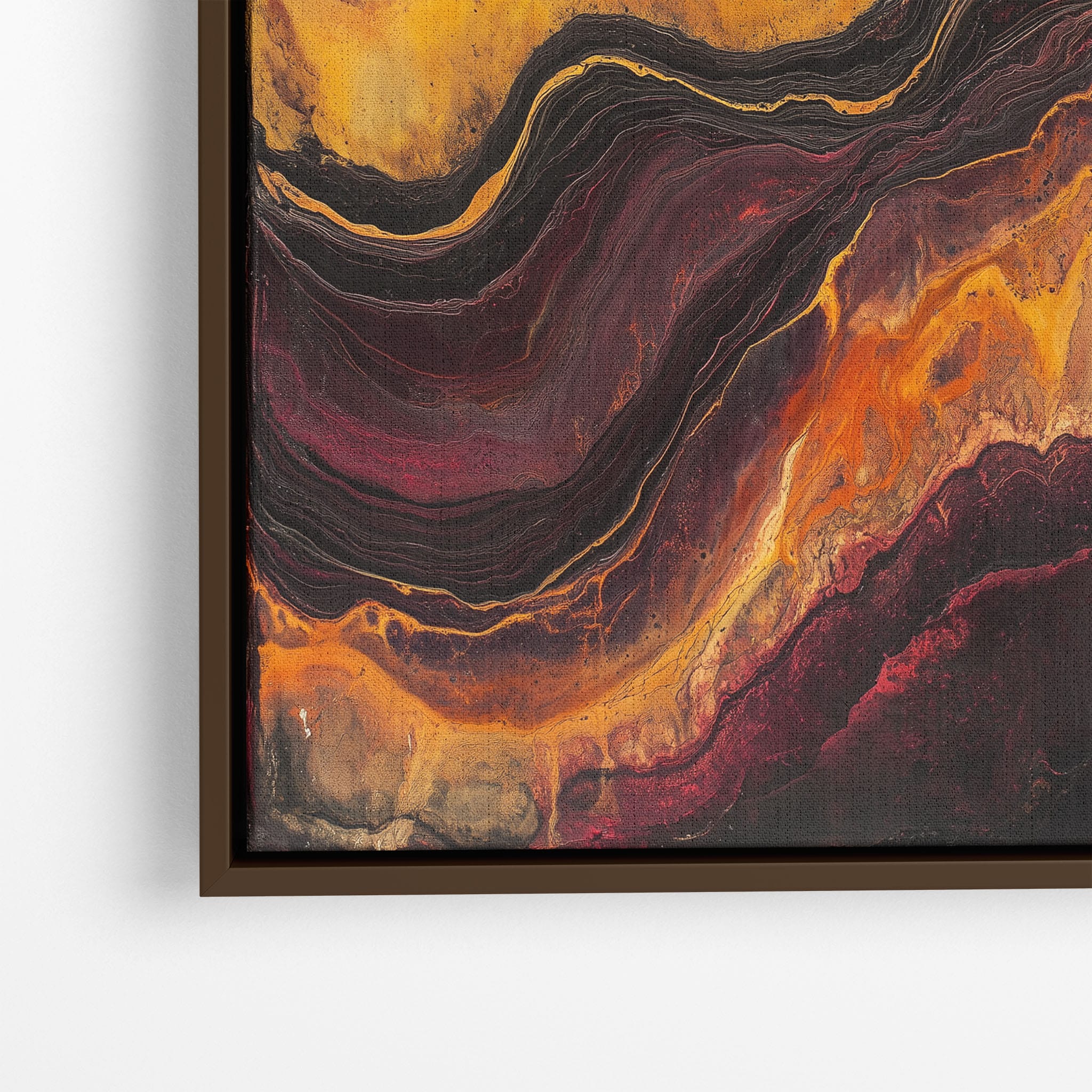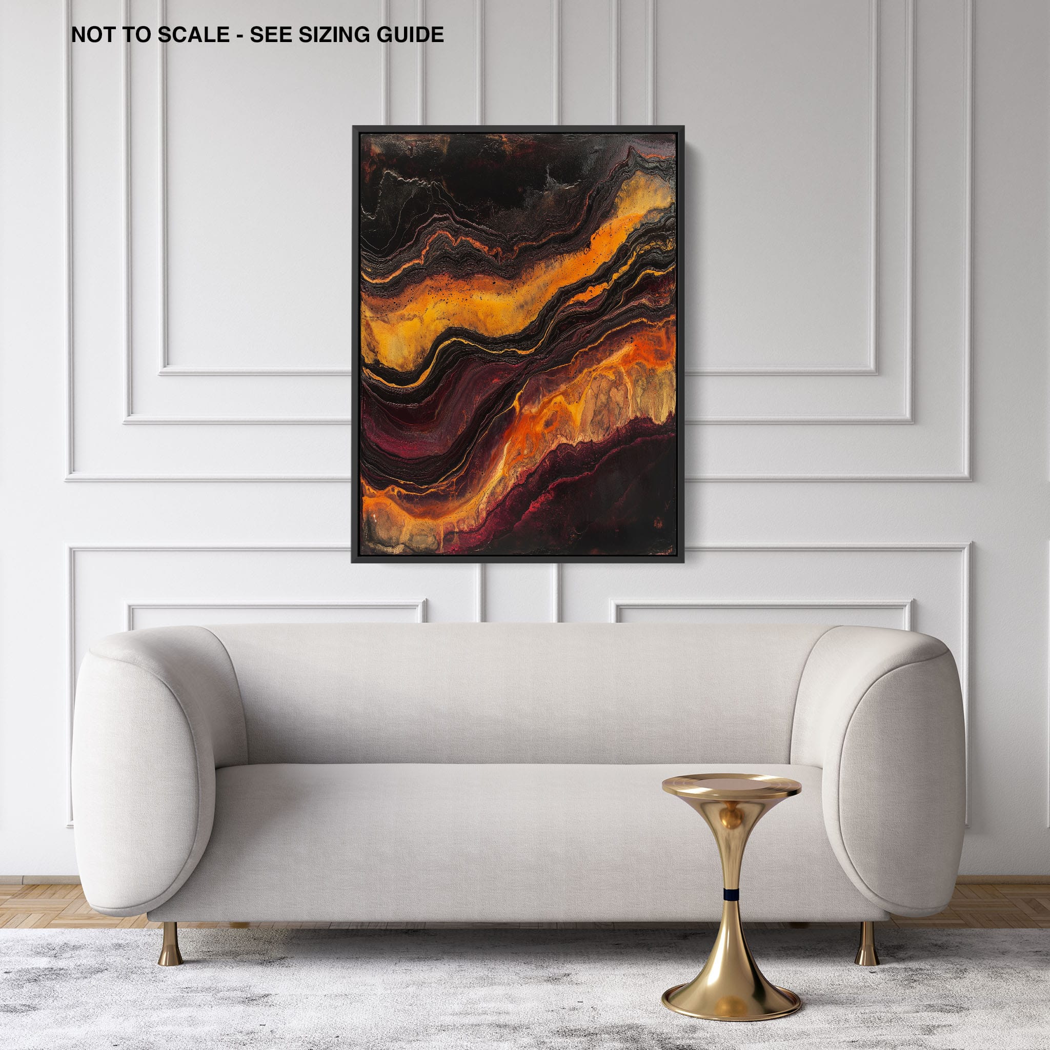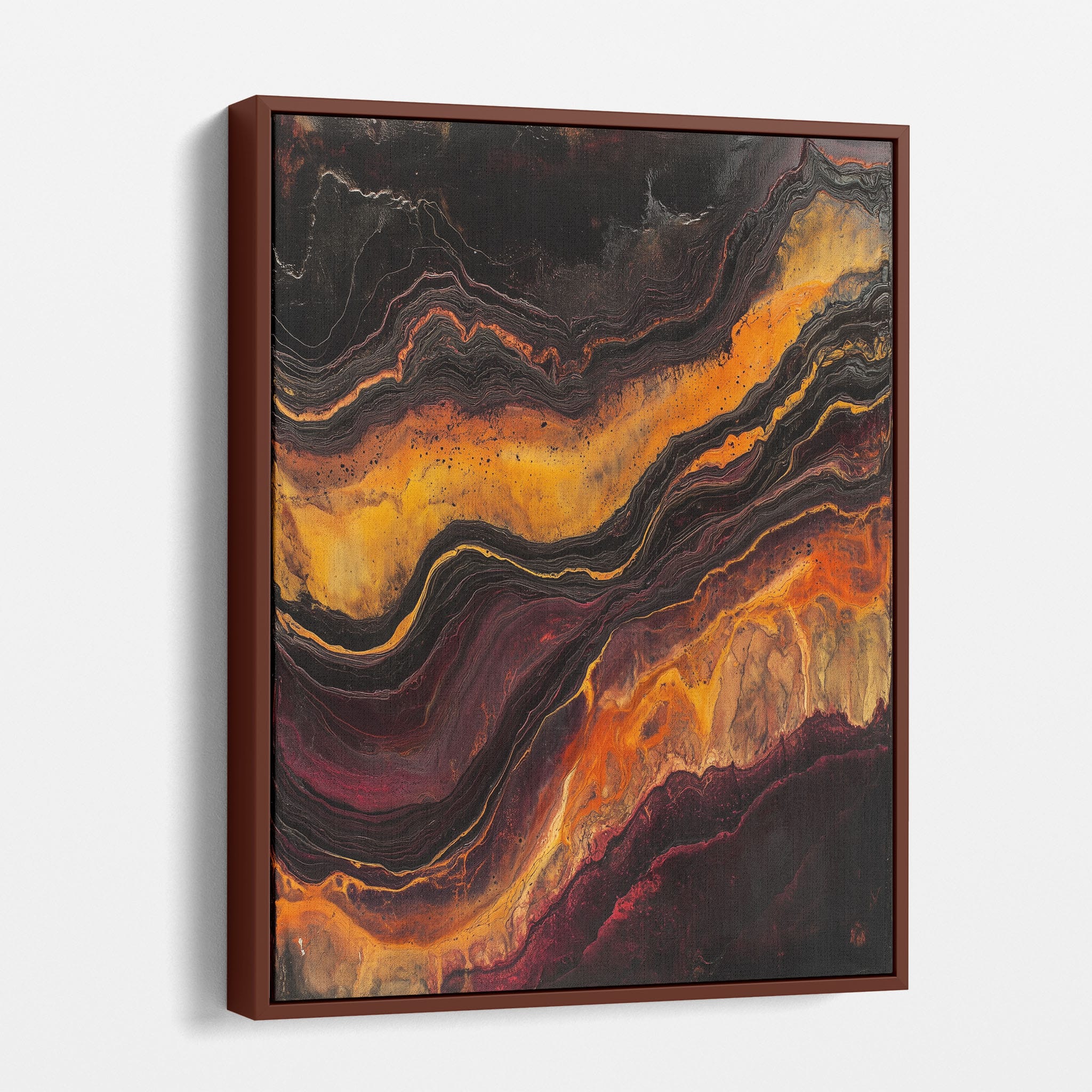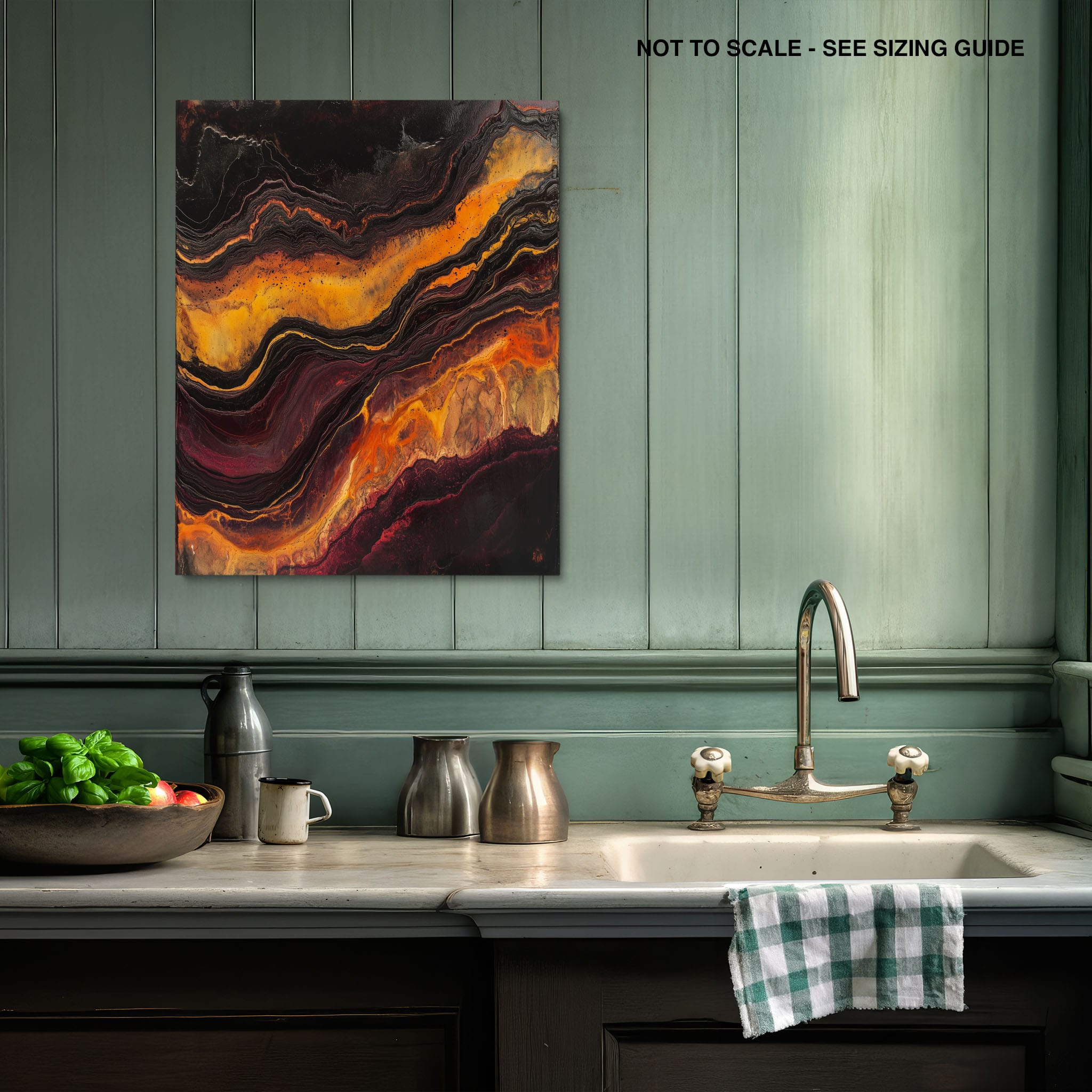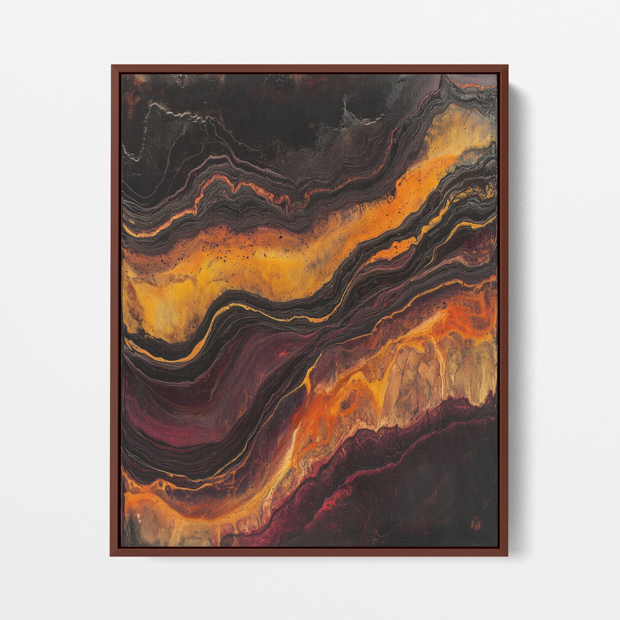 This painting captures the mysterious allure of an abstract volcanic landscape, wherein swirls of black, red, and fiery orange meld together to create a dynamic and mesmerizing view. The fluidity of the colors and the depth of the textures evoke the intense energy and beauty of natural geological formations. Perfect for art lovers looking for a bold statement piece, this artwork brings a touch of surreal heat to any space, making it an ideal centerpiece that commands attention and conversation.